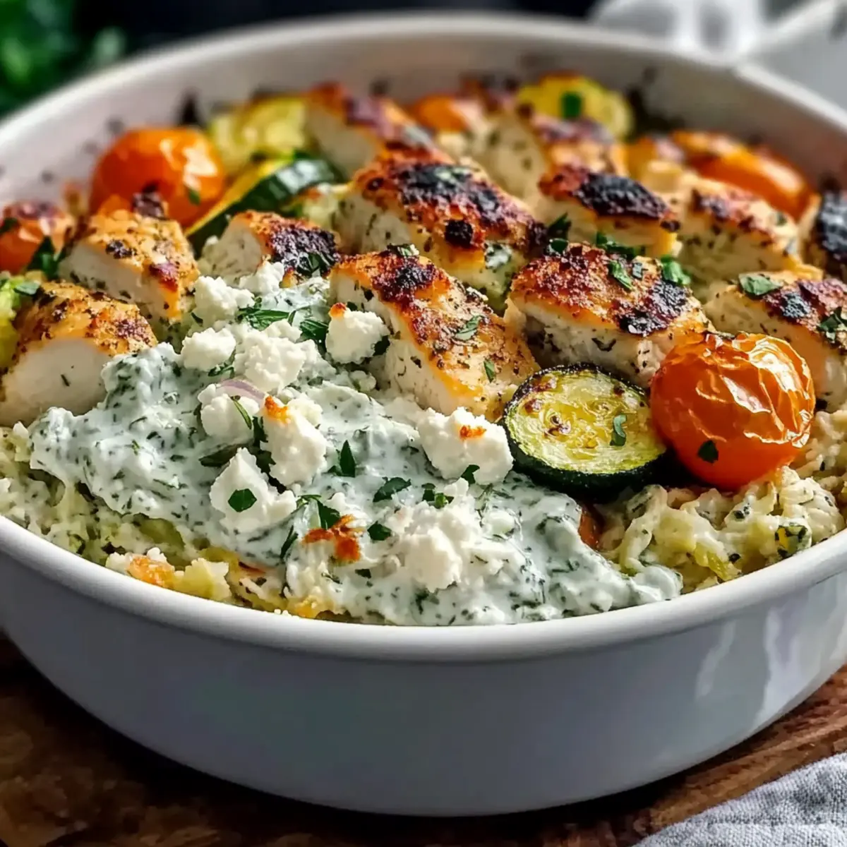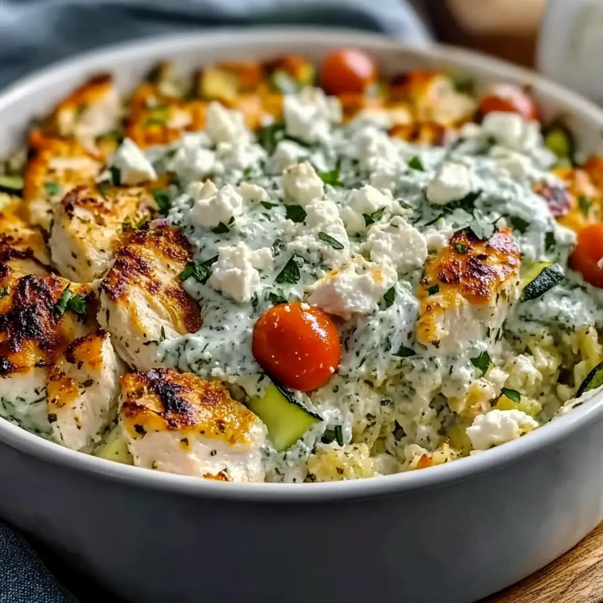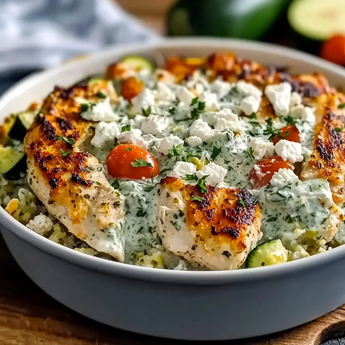 As the scent of garlic and fresh cucumber wafts through my kitchen, I can’t help but feel a wave of comfort wash over me. The Dump-and-Bake Chicken Tzatziki Casserole is more than just a dish; it’s my go-to solution for those hectic weeknights when cooking feels like a chore. With minimal prep and easy-to-find ingredients, this creamy casserole turns raw chicken and vibrant veggies into a delightful meal the whole family will love. Each bite is a heartwarming balance of zesty tzatziki and tender chicken, making it not just quick but also irresistibly satisfying. Better yet, it requires no extensive cleanup—perfect for busy cooks like us. Are you ready to bring this culinary gem into your kitchen? Why is this casserole a must-try? Simplicity redefined: The Dump-and-Bake Chicken Tzatziki Casserole allows you to get dinner on the table without the fuss—just toss everything in the baking dish! Flavor-packed goodness: Each bite bursts with zesty tzatziki and savory chicken, complemented by fresh veggies and feta cheese. Family-friendly: This recipe is a hit with all ages, making it perfect for busy weeknights when everyone needs a satisfying meal. Versatile options: Feel free to mix in spinach or switch up proteins for a delightful twist. Serve it over rice or alongside toasted pita for an extra special touch! Cleanup made easy: With only one dish to wash, this casserole is foolproof for even the most hectic evenings—just pour, bake, and enjoy. Dump-and-Bake Chicken Tzatziki Casserole Ingredients For the Casserole • Chicken Breasts – Boneless, skinless cuts provide a tender and juicy base for this dish. • Tzatziki Sauce – Adds moisture and a burst of flavor; feel free to substitute with homemade tzatziki or any yogurt-based sauce for variety. • Cherry Tomatoes – These little gems contribute freshness and acidity; you can swap for regular tomatoes if needed, just be prepared to chop. • Zucchini – Offers moisture and texture; try yellow squash as a fun alternative for a splash of color. • Red Onion – Brings sweetness and aromatic depth to the casserole; shallots could serve as a milder substitute. • Feta Cheese – This creamy, salty addition elevates the dish’s flavor profile; goat cheese works beautifully as a different option. • Olive Oil – Ensures nothing sticks and adds richness; avocado oil is a fantastic neutral substitute. • Dried Oregano – Infuses the casserole with a hint of herbal goodness; you can opt for Italian seasoning if you prefer a more complex flavor. • Salt and Black Pepper – Essential for enhancing the overall flavor; season according to your taste preference. Step‑by‑Step Instructions for Dump-and-Bake Chicken Tzatziki Casserole Step 1: Preheat and Prepare Begin by preheating your oven to 400°F (200°C). While the oven warms up, lightly grease a 9×13-inch baking dish with olive oil to prevent sticking. This dish will be the flavorful haven for your Dump-and-Bake Chicken Tzatziki Casserole, so ensure it’s ready for all the vibrant ingredients to come. Step 2: Assemble the Ingredients In the greased baking dish, place cut chicken breasts, halved cherry tomatoes, diced zucchini, and chopped red onion in a single layer. This colorful mix not only adds texture but helps to create a scrumptious base. Spread everything out evenly so each piece is surrounded by the zesty flavors that will come next. Step 3: Add Seasonings Drizzle olive oil over the chicken and veggies, ensuring everything is lightly coated for optimum flavor. Next, sprinkle dried oregano, salt, and black pepper over the top, giving your Dump-and-Bake Chicken Tzatziki Casserole a delightful depth. Gently toss the ingredients to coat them evenly, enjoying the vibrant colors and aromas as they mix. Step 4: Spoon in the Tzatziki Take your tzatziki sauce and spoon it generously over the chicken and vegetable mixture. Gently stir everything together, ensuring the tzatziki coats the chicken and veggies without overmixing. This crucial step locks in the moisture and flavor, making for a creamy casserole that’s sure to impress. Step 5: Bake to Perfection Place the baking dish in your preheated oven and let it bake uncovered for 30–35 minutes. You’ll know your Dump-and-Bake Chicken Tzatziki Casserole is ready when the chicken reaches an internal temperature of 165°F (75°C) and the vegetables are tender. Keep an eye out for those bubbly edges signaling deliciousness. Step 6: Finish and Serve Once baked, remove the casserole from the oven and sprinkle crumbled feta cheese on top. Let it sit for a few minutes to cool slightly before serving. This added touch of tangy feta elevates your casserole, making it perfect to share with family and friends. Enjoy warm, and savor each bite of this comforting dish! Expert Tips for Dump-and-Bake Chicken Tzatziki Casserole Consistent Chicken Pieces: Cut chicken breasts into even pieces to ensure uniform cooking, helping your Dump-and-Bake Chicken Tzatziki Casserole reach that perfect tenderness. Tzatziki Temperature: For best results, use tzatziki sauce at room temperature. This prevents cooling the casserole while baking and promotes a creamy texture. Don’t Overmix: After adding tzatziki, gently combine the ingredients without overmixing. Maintaining layers will enhance the flavor and presentation of the casserole. Veggie Substitutions: Feel free to swap veggies based on your preference or what’s in season; roasted bell peppers or spinach can add great flavor and nutrition. Foil Tip: Cover your casserole with foil for the first part of baking to keep it moist, then remove it for the last 10 minutes to achieve a delightful golden finish. Make Ahead: Prepare the casserole the night before, store it in the fridge, and bake when ready for a hassle-free meal. Dump-and-Bake Chicken Tzatziki Casserole Variations Feel free to get creative with your Dump-and-Bake Chicken Tzatziki Casserole—the possibilities are endless! Spinach Bo