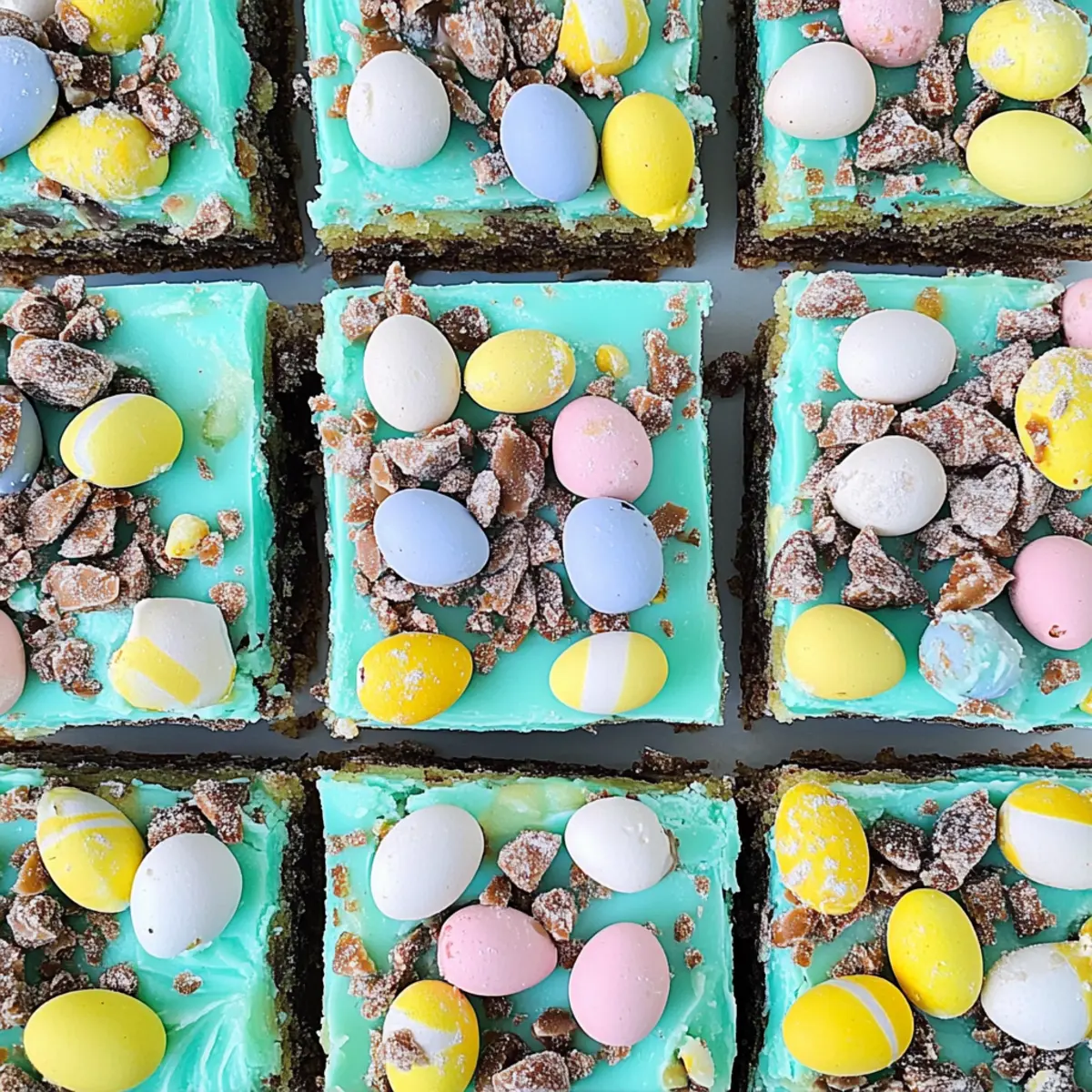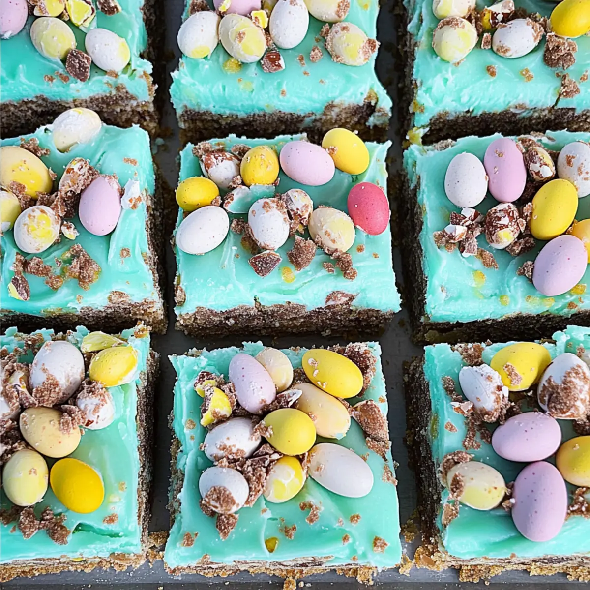 As I opened the kitchen cabinet, a colorful treasure trove came into view—Cadbury Mini Eggs! With Easter around the corner, I couldn’t resist the idea of turning these delightful candies into something special. Enter my Frosted Easter Sugar Cookie Bars, a sweet treat that is both visually stunning and incredibly easy to whip up. These bars combine the buttery goodness of traditional sugar cookies with a rich buttercream frosting, making them the highlight of any spring celebration. Not only do they bring a burst of color and festive flair to your dessert table, but they’re also a fun, no-fuss alternative to classic cookies. Imagine serving these at your next gathering, with everyone delightedly reaching for a piece! Are you ready to dive into this delightful baking adventure? Let’s get started! Why Make Easter Sugar Cookie Bars? Festive Fun: Combining bright, colorful Cadbury Mini Eggs with traditional sugar cookie bars transforms any gathering into a spring celebration! Effortless Baking: Made in one pan, these bars require minimal effort while delivering maximum joy, perfect for those busy days leading up to Easter. Delicious Harmony: The gooey, creamy buttercream frosting perfectly complements the buttery cookie base, ensuring each bite is a delightful experience. Versatility Awaits: Feel free to swap in your favorite chocolate candies or experiment with different frosting flavors for seasonal variations that keep everyone guessing! Crowd-Pleasing Treat: These bars are not only a visual delight; they’re also a guaranteed hit that will have guests coming back for seconds—just like my Nutella Cheesecake Bars! Easter Sugar Cookie Bars Ingredients For the Cookie Base • Salted Butter – Provides richness and flavor; feel free to substitute with unsalted butter and add a pinch of salt. • Brown Sugar – Adds caramel notes and moisture; choose light or dark brown sugar based on your preference. • Granulated Sugar – Boosts sweetness and texture; essential for the recipe and not easily substituted. • Egg Yolks – Contribute to the density and richness of the bars; for a lighter texture, extra egg whites can be used. • All-Purpose Flour – The main structural component; can be swapped for gluten-free flour for those with dietary restrictions. • Baking Powder – Acts as a leavening agent for a light texture; no substitutions recommended. • Vanilla Extract – Enhances the flavor profile; almond extract can be a delightful alternative. For the Frosting • Buttercream Frosting – This creamy topping complements the cookie base beautifully; use a stand mixer for a smooth finish. • Food Coloring – Optional, to brighten up the frosting and make your bars even more festive! For the Topping • Cadbury Mini Eggs – Fun and colorful, they add a delightful crunch; feel free to use any chocolate-coated eggs you enjoy! These Easter Sugar Cookie Bars not only look stunning but are also easy to prepare and bound to spread joy during your spring celebrations! Step‑by‑Step Instructions for Frosted Easter Sugar Cookie Bars Step 1: Preheat the Oven Begin by preheating your oven to 350°F (175°C). While it warms up, prepare a baking pan by lining it with parchment paper, allowing easy removal of the bars later. This simple step ensures your Easter Sugar Cookie Bars bake evenly and don’t stick. Step 2: Cream the Butter and Sugars In a large mixing bowl, combine the salted butter, brown sugar, and granulated sugar. Using an electric mixer, cream the mixture on medium speed until it becomes light and fluffy, about 3-5 minutes. This process aerates the butter, creating a soft and tender base for your cookie bars. Step 3: Add Egg Yolks and Vanilla Next, add the egg yolks and vanilla extract to the creamed mixture. Continue to mix until everything is thoroughly combined and smooth, which will take about 1-2 minutes. This stage introduces richness and flavor, crucial for your delicious Frosted Easter Sugar Cookie Bars. Step 4: Mix in Dry Ingredients Gradually add the all-purpose flour and baking powder to the wet ingredients. Mix on low speed until just combined, and a thick dough forms; be careful not to overmix. Look for a soft but cohesive dough texture that holds its shape when pressed—this is the foundation of your cookie bars. Step 5: Spread the Batter in the Pan Transfer the cookie dough into your prepared baking pan. Use a spatula to spread it evenly, ensuring the dough reaches all corners and is flattened smoothly. This creates a uniform layer of scrumptiousness for your Easter Sugar Cookie Bars. Step 6: Bake the Bars Place the pan in the preheated oven and bake for 20-25 minutes. Keep an eye on the edges as they turn golden brown, while the center should appear slightly set but still soft. This is crucial for achieving that perfect chewy texture as your cookie bars cool. Step 7: Cool and Prepare Frosting Once baked, remove the pan from the oven and let the bars cool completely. During this time, prepare the buttercream frosting by beating softened butter in a stand mixer until creamy. This is the key to achieving that smooth, luscious topping for your Easter Sugar Cookie Bars. Step 8: Frost the Cookie Bars After the bars have cooled, generously spread the creamy buttercream frosting on top. Use a spatula to create a lovely, even layer that resembles a delightful canvas. This frosting contrasts beautifully with the soft, warm cookie base beneath. Step 9: Add Cadbury Mini Eggs Finally, sprinkle crushed Cadbury Mini Eggs atop the frosted cookie bars, pressing them gently into the frosting. The candy adds a vibrant pop of color and a delightful crunch that perfectly complements your Easter Sugar Cookie Bars. Step 10: Slice and Serve Once the toppings are set, slice the dessert into squares for easy serving. Arrange them on a colorful plate to showcase their festive appeal. Your delicious Frosted Easter Sugar Cookie Bars are now ready to wow friends and family at your