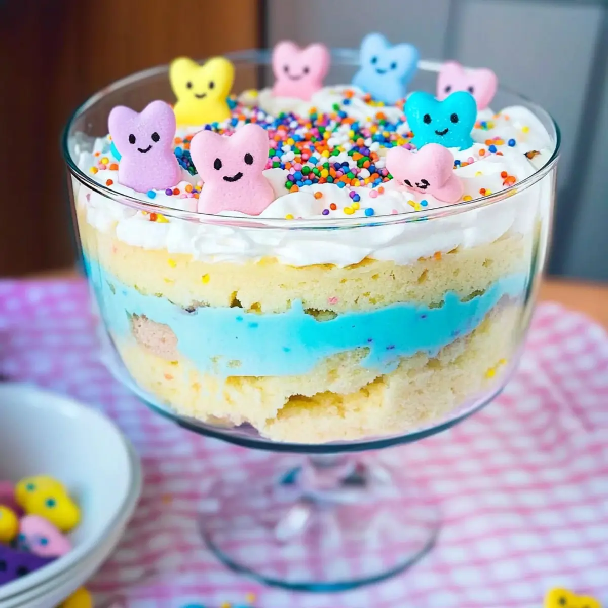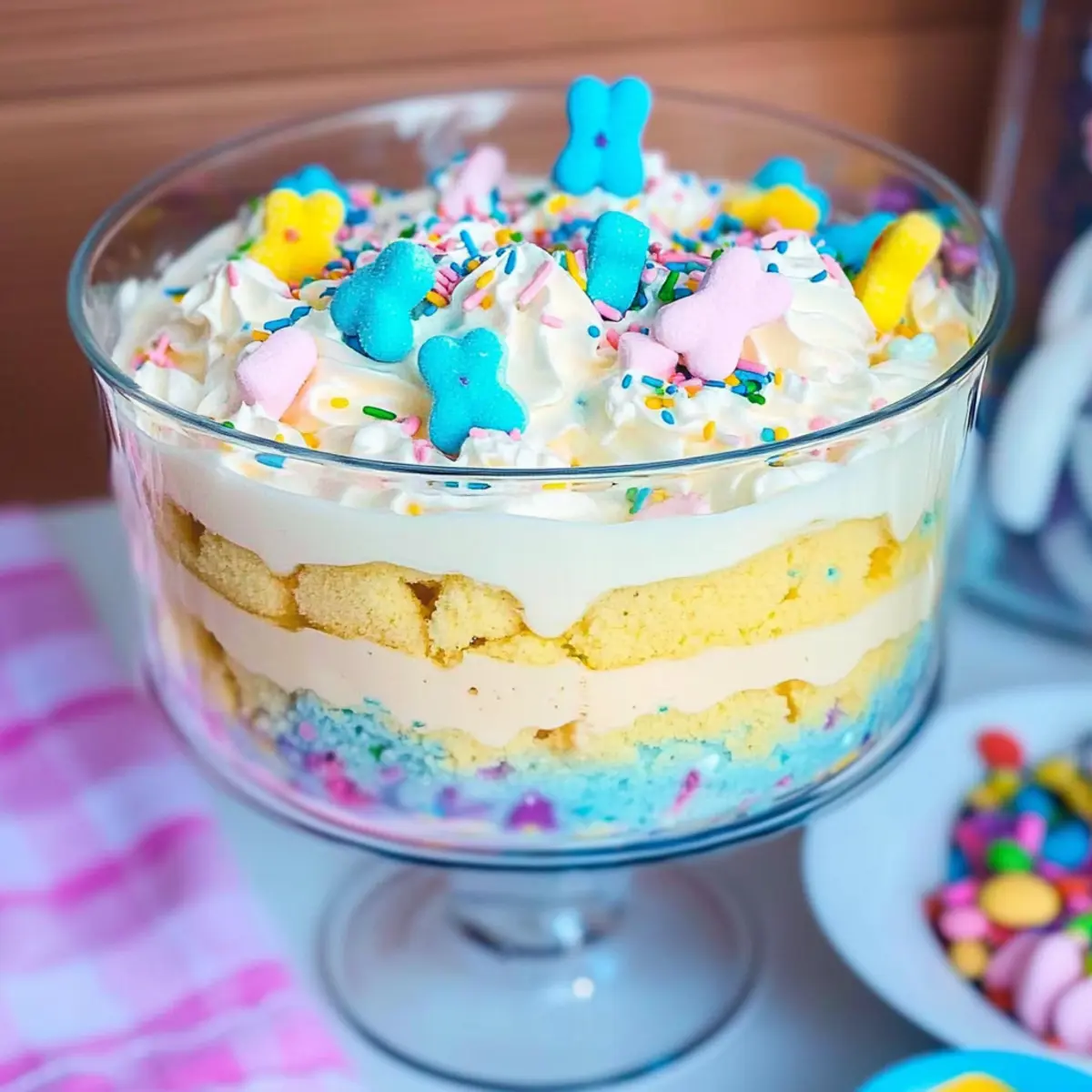 As I was flipping through my favorite cookbook on a sunny spring afternoon, I stumbled upon a recipe that instantly transported me to festive Easter gatherings filled with laughter and love: the Easy and Festive Easter Trifle Dessert. It’s a delightful celebration of colors, with layers of fluffy cake, creamy pudding, and a playful sprinkle of Easter candies that bring joy to both the eyes and the palate. Not only is this trifle a no-fail dessert that can be whipped up in no time, but it also doubles as a stunning centerpiece for your holiday table. With just five simple ingredients, you’ll create a vibrant dessert that will charm your family and friends, leaving them eagerly asking for seconds. What surprises will you layer into your Easter Trifle? Why is this trifle a must-try? Delightfully Colorful: The Easter Trifle bursts with vibrant layers, making it a feast for the eyes. Flavorful Layers: With a blend of sweet cake, creamy pudding, and fluffy Cool Whip, every bite is a harmonious explosion of taste. Quick and Easy: This no-fail recipe is perfect for busy cooks, requiring just five simple ingredients. Customizable: You can personalize your trifle with favorite candies or fresh fruits, making it truly your own. Plus, if you love this idea, check out our delicious Cherry Amaretto Tiramisu for another festive treat! Easter Trifle Dessert Ingredients • Gather these essentials to create your perfect trifle! For the Cake Cake Mix – Choose your favorite flavor like white, lemon, or strawberry; feel free to add food coloring for extra fun! For the Pudding Layer Vanilla Pudding – This adds a creamy texture and sweetness; any instant pudding flavor works well too! For the Whipped Layer Cool Whip – For that light and fluffy finish; substitute with homemade whipped cream if you prefer. For the Color Food Coloring (optional) – A splash can enhance the visual appeal of your cake or Cool Whip layers. For Decorations Decorating Ingredients – Mix in M&Ms, sprinkles, Peeps, coconut, jelly beans, or any favorite candies for that festive touch! With this Easter Trifle Dessert ingredients list, you’re all set to create a beautiful and delicious dessert that will amaze your family and friends! Step‑by‑Step Instructions for Easter Trifle Dessert Step 1: Bake the Cake Preheat your oven according to the cake mix package instructions, usually around 350°F (175°C). Prepare the cake batter in a mixing bowl using the cake mix and water, adding food coloring for a playful touch if desired. Pour the batter into a greased cake pan and bake for 25 to 30 minutes, or until a toothpick inserted in the center comes out clean. Allow the cake to cool completely on a wire rack. Step 2: Prepare the Pudding While the cake cools, follow the package directions to prepare the vanilla pudding. Typically, this involves whisking the pudding mix with cold milk in a bowl for about 2 minutes until thickened. Once ready, set the pudding aside in the refrigerator to firm up further while you prepare the next steps for your Easter Trifle dessert. Step 3: Color the Cool Whip Grab half of the Cool Whip from the container and place it in a mixing bowl. If you’d like to add a splash of color, mix in a couple of drops of food coloring until you achieve your desired hue. This will add a delightful visual element to your Easter Trifle layers. Keep the colored Cool Whip aside as you assemble your trifle. Step 4: Layer the Trifle In a large trifle bowl or individual serving glasses, begin layering your Easter Trifle dessert by breaking the cooled cake into small, uneven pieces and adding the first layer at the bottom. Next, spoon over a generous layer of prepared vanilla pudding, followed by a layer of the colored Cool Whip. Repeat these layers until the bowl or glasses are filled, ensuring the top layer is Cool Whip for a lovely finish. Step 5: Decorate Now that your Easter Trifle is beautifully layered, it’s time to decorate! Top the trifle with your choice of festive candies and sprinkles. For a playful touch, add cute Peeps or other favorite treats on top. This final layer of decorations not only enhances the visual appeal of your Easter Trifle but also adds a burst of flavor, inviting everyone to dive in! Make Ahead Options These Easter Trifle Desserts are a fantastic choice for busy home cooks looking to save time during the holiday rush! You can prepare the cake and pudding up to 24 hours in advance—simply bake the cake and store it covered at room temperature, while the pudding should be refrigerated to maintain its creamy texture. Additionally, you can mix the colored Cool Whip and keep it sealed in the fridge. When you’re ready to serve, just layer the cake, pudding, and Cool Whip in your trifle bowl, and finish with decorations that delight. This way, you’re left with a stunning dessert that’s just as delicious and visually appealing without the last-minute stress! Expert Tips for the Best Easter Trifle Timing is Key: Prepare the Easter Trifle no more than 24 hours in advance. Making it too early can lead to soggy layers. Perfect Layers: For compact layers, ensure you gently press each layer down while assembling. This will help avoid gaps and soggy bottoms in your trifle. Use Individual Servings: For convenience and presentation, consider using small cups or jars instead of a large trifle bowl. This makes serving easier and just as delightful! Flavor Variations: Don’t hesitate to swap vanilla pudding for chocolate or butterscotch for a fun twist. Each flavor will bring new joy to your Easter Trifle dessert. Storage Tips: Keep your trifle covered in the refrigerator to maintain its freshness. Ensure it’s tightly wrapped to prevent it from absorbing any unwanted odors. Fun Decorating: Get creative with your toppings! Use a mix of candies like jelly beans and M&Ms, or even fresh fruits to personalize your Easter Trifle and make it irresistible! Easter Trifle Dessert Variations Let your creativi