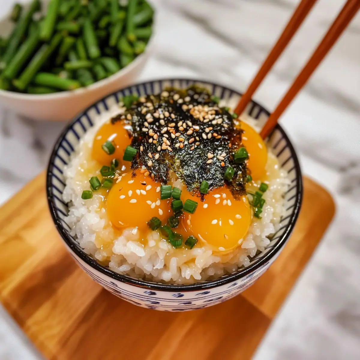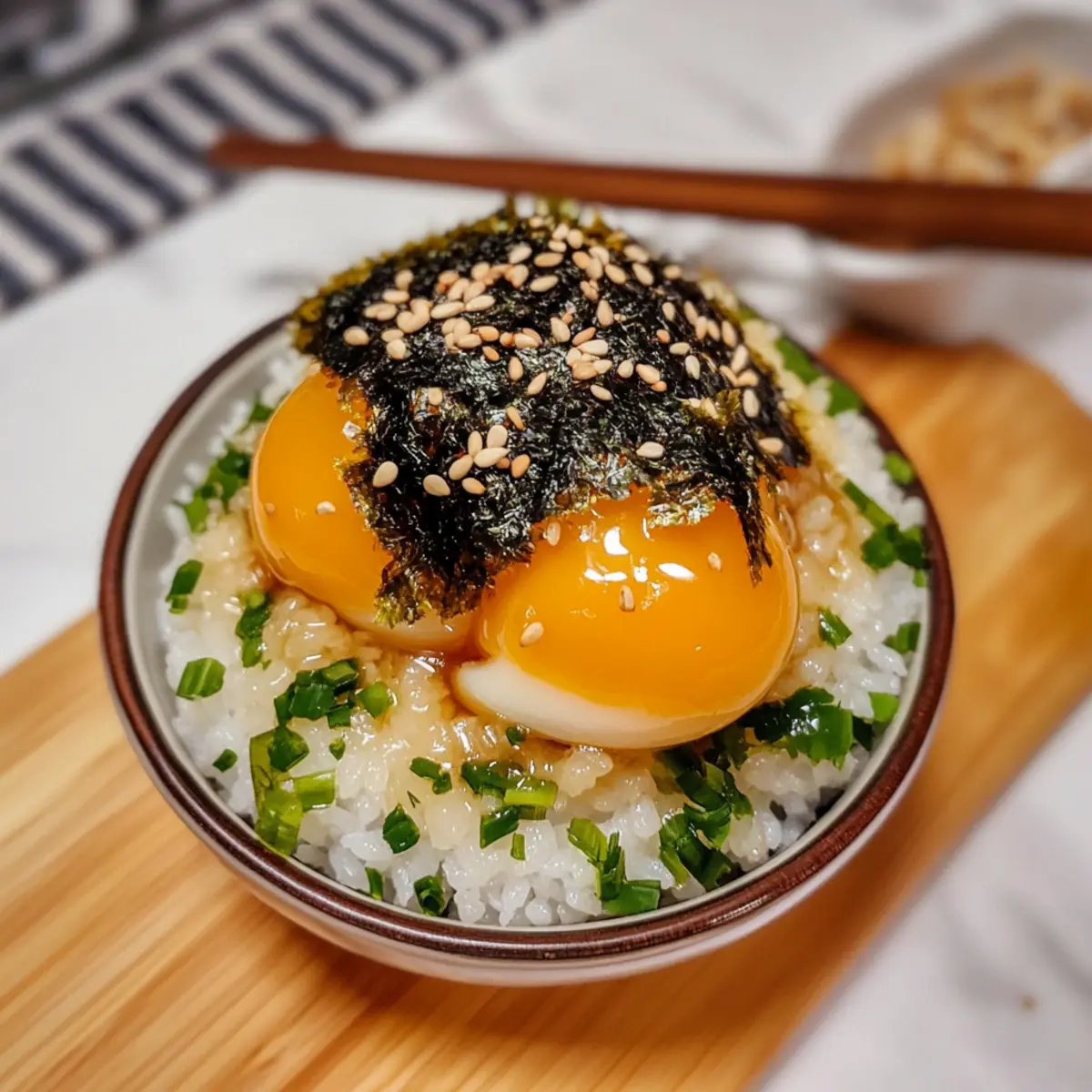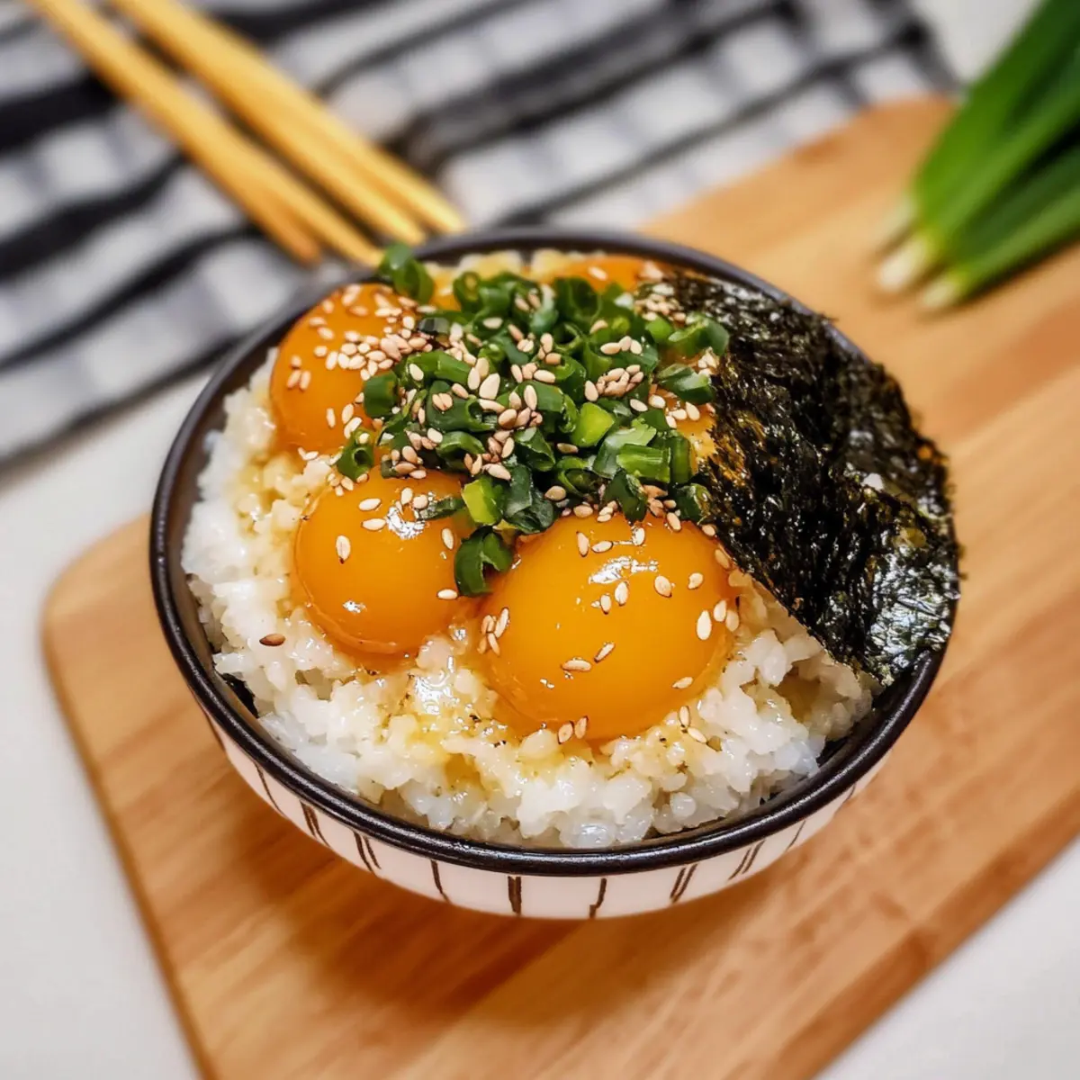 As I stood in my kitchen, the tantalizing aroma of soy sauce mingling with mirin transported me straight to a bustling Tokyo market. The secret gem of Asian cuisine, soy cured egg yolks, complements dishes in the most delightful way, and today I’m excited to share my easy soy cured egg yolks recipe. Not only are these little treasures a simple gourmet delight, but they also add a rich texture and flavor that elevates everything from rice bowls to gourmet toast in mere minutes. With just a handful of ingredients, you can impress your dinner guests or add a touch of luxury to weeknight meals without the fuss. Curious about how this savory pleasure unfolds? Let’s dive into this culinary adventure together! Why Try Soy Cured Egg Yolks? Ease of Preparation: This easy soy cured egg yolks recipe requires nothing more than a few basic ingredients and simple steps, making it perfect for busy cooks. Gourmet Indulgence: Impress your friends with a dish that feels gourmet yet is accessible enough for home kitchens. Versatile Pairing: Use these luxurious yolks to enhance rice, toast, or even ramen, adding a unique twist to your favorite dishes. Flavor Explosion: The combination of sweet and savory flavors creates a balanced umami experience that’s simply irresistible. Customizable: Whether you prefer a touch of spice with chili oil or added crunch with furikake, the possibilities for toppings are endless! Easy Soy Cured Egg Yolks Ingredients For the Marinade • Soy Sauce – Adds a depth of salty umami; consider low-sodium for less saltiness. • Mirin – Contributes a sweetness that balances flavors; can be swapped with sake or rice vinegar mixed with sugar. • Water – Dilutes the soy sauce to achieve a harmonious flavor; no substitutions needed. • Dried Kelp (Kombu) – Enhances umami richness; substitute with bonito flakes or dried shiitake mushrooms if unavailable. • Sugar – Balances saltiness; try brown sugar or wildflower honey as an alternative. For the Egg Yolks • Egg Yolks – The star ingredient; using the freshest, highest quality eggs ensures unparalleled flavor. For Finishing Touches • Sesame Oil – Provides a finishing layer of flavor; no substitutions required. • Chopped Scallions – Adds a fresh pop and color; optional based on your preference. • Crushed Nori – Introduces an umami profile to every bite; can be replaced with furikake or sesame seeds if desired. Dive into this easy soy cured egg yolks recipe and transform simple ingredients into something extraordinary! Step‑by‑Step Instructions for Easy Soy Cured Egg Yolks Recipe Step 1: Prepare Marinade In a medium saucepan, combine soy sauce, mirin, water, dried kelp, and sugar. Heat over medium-high and bring the mixture to a gentle boil. Once bubbling, reduce the heat and let it simmer for 2 minutes until the sugar dissolves. Remove from heat and allow the marinade to cool completely to room temperature before using. Step 2: Separate Eggs Carefully crack the eggs, separating the yolks from the whites with a gentle hand. Place the yolks in a shallow glass container, ensuring they rest in a single layer without touching each other. This arrangement allows for even curing of your easy soy cured egg yolks, which will ensure they absorb all those wonderful flavors. Step 3: Combine Ingredients Once the marinade has cooled, strain it through a fine-mesh sieve to remove the dried kelp. Slowly pour the strained, flavorful brine over the yolks in the glass container, ensuring the yolks are fully submerged. Seal the container with a lid or plastic wrap to keep the marinade contained and secure. Step 4: Cure Yolks Transfer the sealed container to the refrigerator and let the yolks cure for at least 12 hours, up to 48 hours for a richer flavor. Every 12 hours, gently flip the yolks with a spoon to ensure even exposure to the marinade, which enhances the taste and texture of your easy soy cured egg yolks. Step 5: Serve Once the yolks have cured to your liking, remove them from the marinade using a slotted spoon. Serve the yolks on warm cooked rice, drizzled with sesame oil and adorned with chopped scallions and crushed nori. Mix together and indulge in the luxurious flavors that your easy soy cured egg yolks bring to the table! What to Serve with Easy Soy Cured Egg Yolks? Creating a complete meal with these savory indulgences can be a delightful experience for your taste buds. Short-Grain Rice: This classic pairing is ideal; the fluffy rice absorbs the rich flavors of the yolks, creating a truly satisfying bite. Ramen Noodles: Soft ramen provides the perfect base for these creamy yolks, enhancing the umami depth of your broth. Toasted Bread: Transform a simple slice of bread into gourmet magic by spreading the yolks, topped with fresh herbs and a drizzle of sesame oil. Savory Congee: The creamy yolks enhance this comforting rice porridge, bringing an elegant twist perfect for breakfast or a cozy dinner. The combination of textures is heavenly; the velvety yolks meld beautifully into the smooth, warm congee. Asian Slaw: A crisp, refreshing slaw adds brightness and crunchy texture to your meal, balancing the richness of the yolks perfectly. Pickled Vegetables: Tangy pickles introduce a zesty contrast that cuts through the richness, creating a well-rounded flavor profile on your plate. Chili Oil Drizzle: A splash of spicy chili oil elevates the dish, adding warmth and depth that transforms each bite into a sensational experience. Sake or Light Beer: Pair your meal with a chilled glass of sake or a light beer to enhance the savory notes, creating a delightful dining experience. How to Store and Freeze Easy Soy Cured Egg Yolks Fridge: Store cured egg yolks in an airtight container in the refrigerator for up to 3 days after removal from the brine. This keeps them fresh and flavorful. Freezer: If you’ve made a larger batch, you can freeze the cured yolks. Wrap each yolk individually in plastic wrap and place them in a