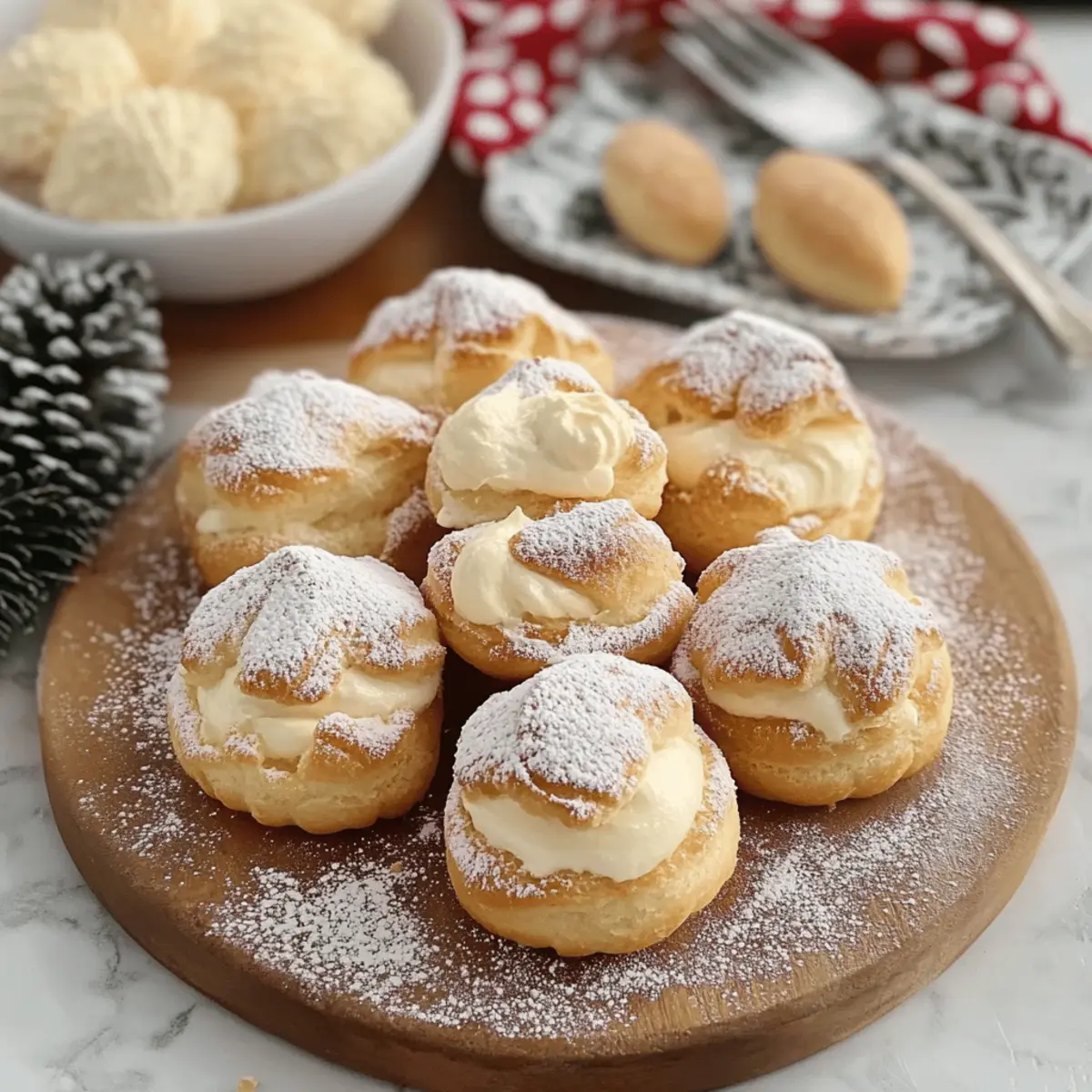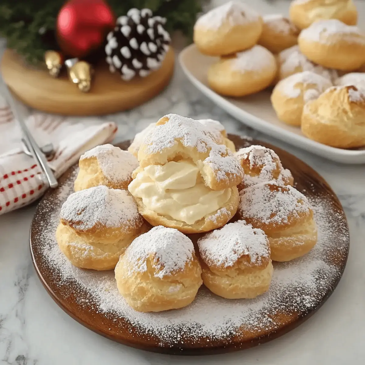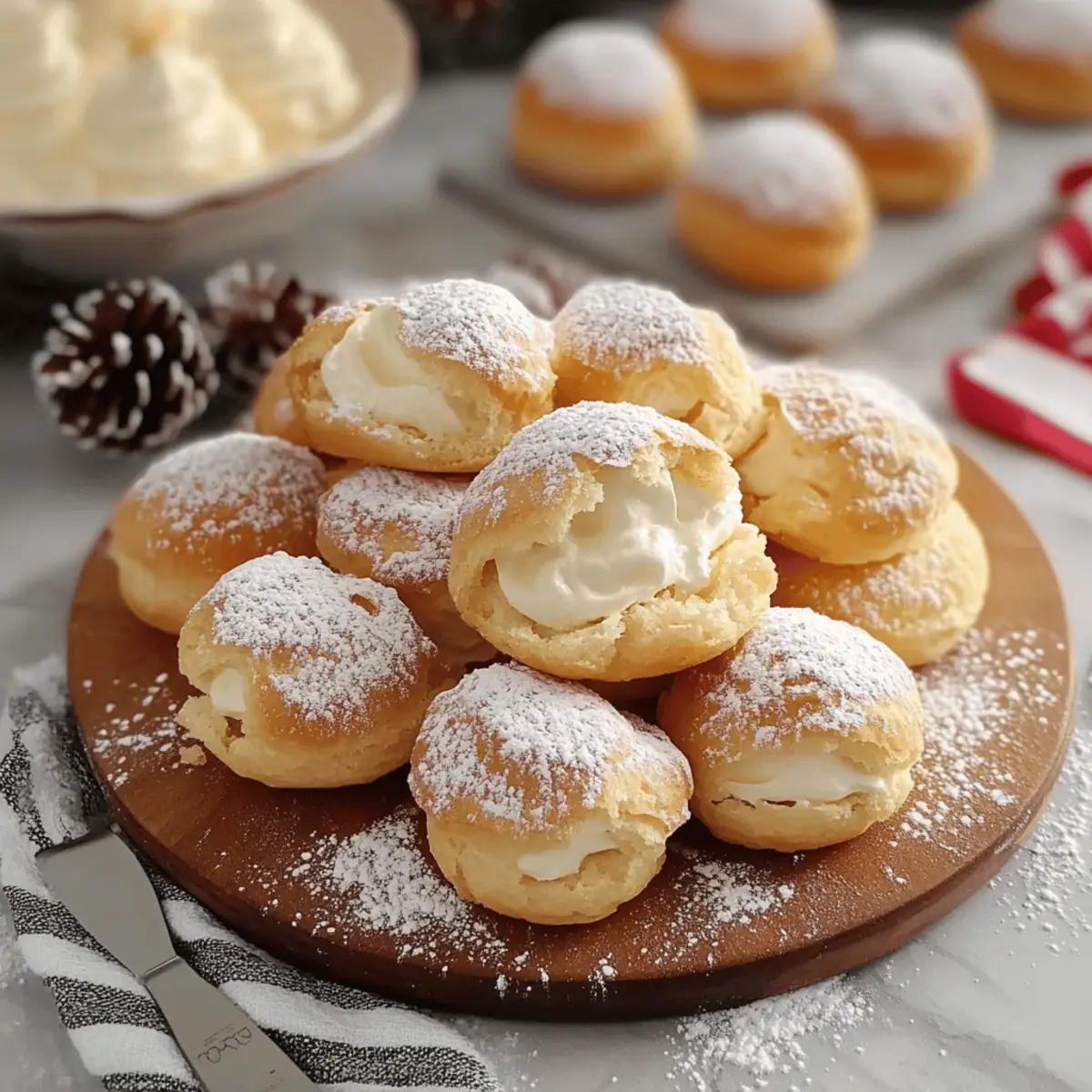Delight in these Eggnog Cream Puffs, handmade pastries filled with a velvety eggnog-infused cream, perfect for your holiday gatherings.