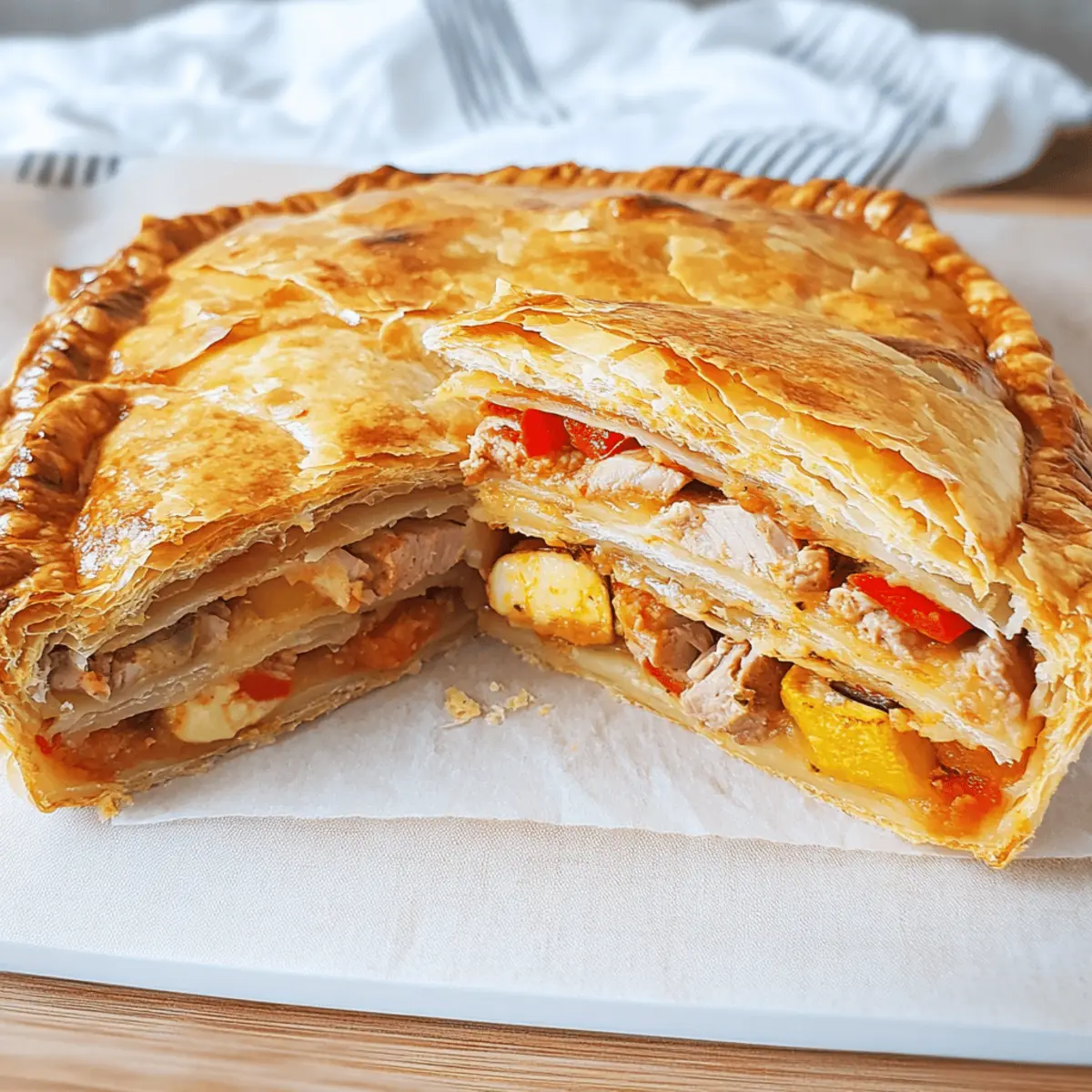 As I rolled out the dough for my Empanada Gallega, the tantalizing aroma of sautéed onions and sweet red peppers filled the kitchen, instantly transporting me to the sun-soaked landscapes of Spain. This savory Spanish pie, with its flaky crust enveloping a scrumptious filling of tuna, vegetables, and hard-boiled eggs, is a definite crowd-pleaser. Not only is it perfect for meal prep and lunchboxes, but it’s also a delightful snack for picnics or gatherings. The beauty of Empanada Gallega is its versatility; you can switch up the protein or add your favorite veggies for a customized twist. Who wouldn’t want to enjoy a slice of this heartwarming comfort food? Curious about how to whip up this delightful pie at home? Let’s get started! Why is Empanada Gallega a Must-Try? Irresistible Flavor: This Empanada Gallega delivers a mouthwatering blend of pork, tender vegetables, and savory tuna that tantalizes the taste buds with every bite. Versatile Option: Feel free to experiment by swapping the tuna for chicken or adding extra veggies. Customize it to suit your family’s preferences! Easy Meal Prep: Ideal for lunchboxes or snack time, you can make it ahead of time and enjoy it warm or at room temperature. That’s convenience at its finest! Crowd-Pleaser: With its golden, flaky crust and satisfying filling, this dish is bound to impress your guests, making it a standout at any gathering. Cultural Connection: Bringing the flavor of Spain right to your kitchen, this traditional dish is steeped in history and makes for an exciting culinary adventure. Get tips on variations and reheating in our full guide! Empanada Gallega Ingredients For the Dough • Active Dry Yeast – Helps leaven the dough slightly for a lighter texture; fresh yeast can be used as a substitute. • Warm Water – Activates the yeast when bloomed; make sure it’s lukewarm, not hot. • All-Purpose Flour – Provides structure to the dough; can substitute with gluten-free flour if needed. • Salt – Enhances flavor; it is essential for a savory taste. • Sweet Paprika – Adds flavor and color to the crust. • Virgin Olive Oil – Provides moisture and richness; you can also use oil from canned tuna for added flavor. • White Wine – Adds depth of flavor; can substitute with additional water. For the Filling • Large Onion – Forms the base of the filling and softens for sweetness when cooked. • Large Red Pepper – Offers flavor and nutrients; consider substituting with green bell pepper. • Tomatoes – Contributes moisture and flavor; can use canned tomatoes if fresh is unavailable. • Tuna in Oil – The primary protein in the filling; go for a quality type like “bonito del norte” for best results. • Additional Olive Oil – Used in cooking the filling to enhance flavor. • Hard Boiled Egg – Adds texture and nutrition; chop just before adding to avoid dryness. For Finishing Touch • Egg (for egg wash) – Provides a golden finish; use a beaten egg to brush on top before baking. Enjoy crafting this delightful Empanada Gallega that will surely be a hit with your family and friends! Step‑by‑Step Instructions for Empanada Gallega Step 1: Prepare the Dough Begin by blooming the active dry yeast in a bowl with lukewarm water for about 10 minutes. In a separate larger bowl, whisk together the all-purpose flour, salt, and sweet paprika. Gradually mix in the yeast-water, olive oil, and white wine to form a soft dough. Knead this dough on a floured surface for 5 minutes until smooth, then cover it with a cloth and let it rest for 30 minutes. Step 2: Make the Filling While the dough is resting, prepare the filling for your Empanada Gallega. Dice the onion and red pepper, then grate the tomatoes to extract their pulp. Heat a skillet over medium heat with some olive oil and sauté the onion and red pepper for about 10 minutes, or until they become translucent. Add the grated tomatoes and cook until everything is soft, before mixing in the drained tuna. Allow this flavorful filling to cool down. Step 3: Assemble the Pie Preheat your oven to 375°F (190°C) as you prepare to assemble your Empanada Gallega. On a floured surface, roll out the dough into a rectangle or divide it into two pieces for the base and top. Line a baking sheet with parchment paper and place the rolled-out base dough on it. Spread the cooled filling evenly over the base, then cover with the top dough layer, crimping the edges to seal in all the deliciousness and vent the top. Step 4: Bake the Empanada To give your Empanada Gallega a beautiful golden finish, brush the top with a beaten egg as an egg wash. Place the pie in the preheated oven and bake for about 40 minutes, or until the crust turns golden brown and flaky. Once baked, allow the pie to cool slightly on a wire rack before slicing it, so the filling sets nicely and oozes gorgeous flavors when cut. Make Ahead Options These Empanada Gallega are a fantastic meal prep option for busy weeknights! You can prepare the filling (onions, peppers, tomatoes, and tuna) and store it in the refrigerator up to 3 days in advance. Additionally, you can make the dough and refrigerate it for up to 24 hours before assembling. When you’re ready to cook, simply roll out the dough, fill with your chilled mixture, and proceed with the baking instructions as directed. This way, you’ll still enjoy the freshness and flavors of this savory pie without the last-minute rush. Your Empanada Gallega will taste just as delicious, making meal planning a breeze! Storage Tips for Empanada Gallega Room Temperature: Enjoy your Empanada Gallega fresh from the oven for a maximum of 1 day at room temperature. Make sure to cover it lightly to prevent it from drying out. Fridge: Store leftover Empanada Gallega in an airtight container in the fridge for up to 3 days. Reheat in the oven at 350°F (175°C) for about 10-15 minutes to restore its crispy texture before serving. Freezer: For longer storage, wrap individu