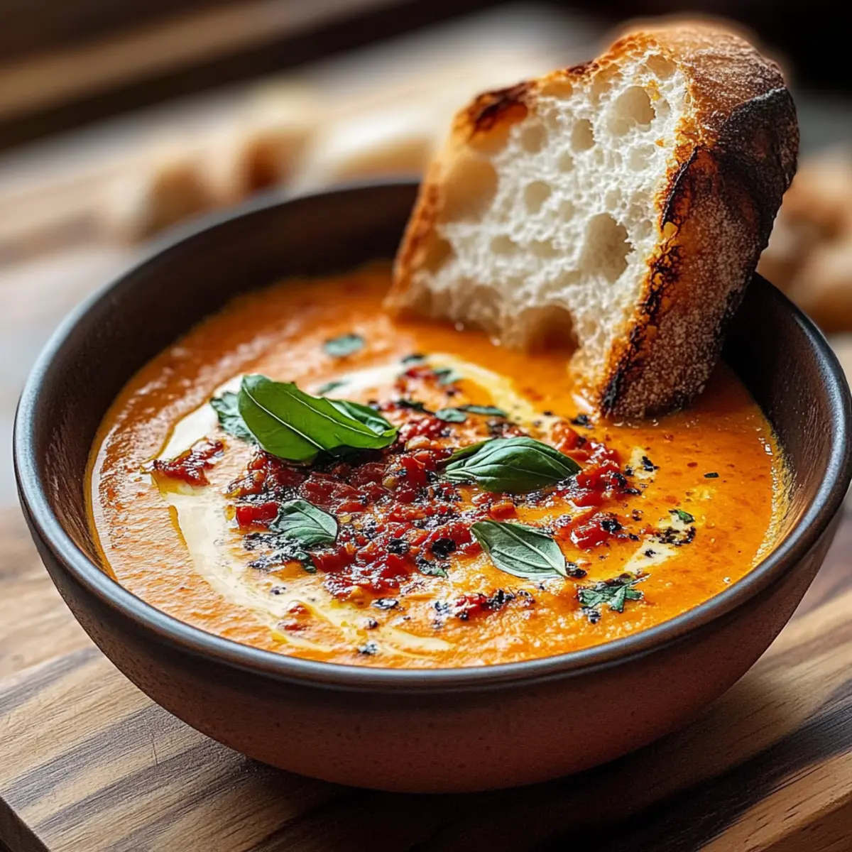 • Chunky Version: Skip the blender and serve the soup as is, allowing the tomatoes to keep their texture for a heartier bite.