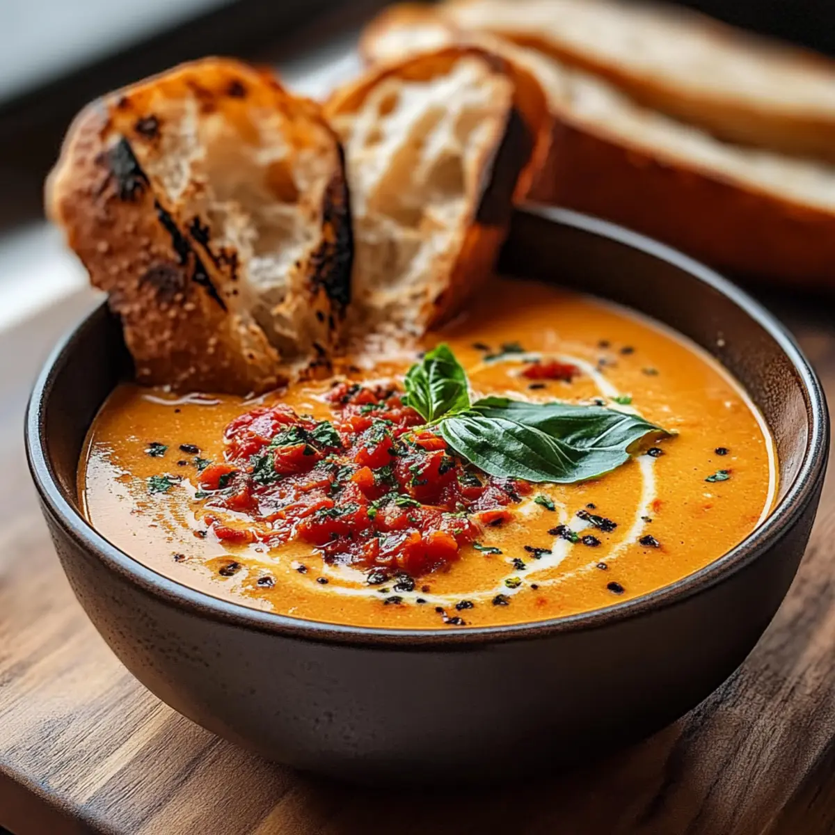 Indulge in this comforting Fire Roasted Tomato Soup, a perfect dish for chilly evenings and gatherings.