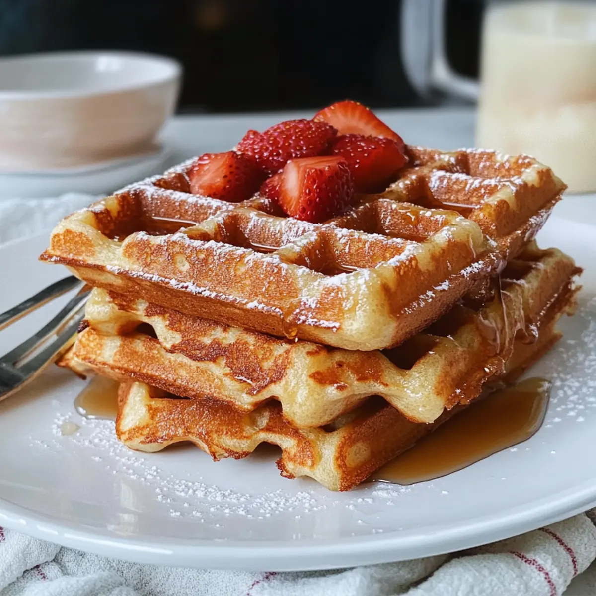 Waking up on a lazy Sunday morning feels like magic, doesn’t it? The aroma of sweet, toasty bread and warm spices fills the air, promising a scrumptious start to the day. With my Crispy French Toast Waffles, we’ll bring together the classics of French toast and waffles in a breakfast dish that’s not only quick to prepare but also a surefire crowd-pleaser. Within just 30 minutes, you’ll have golden, crispy delights that are perfect for families or brunch gatherings. The best part? You only need a few simple ingredients and a waffle iron to create this luscious breakfast treat that will leave everyone asking for seconds. So, what toppings will you choose to elevate your French toast waffles? Why Are These Waffles So Irresistible? Deliciously Unique: Imagine the crunchy exterior of a waffle combined with the sweet, rich flavor of French toast — that’s exactly what you get here! Quick and Easy: With minimal ingredients and just 30 minutes of your time, breakfast becomes a breeze, perfect for those busy mornings. Customizable: Whether you prefer maple syrup, fresh berries, or something more indulgent like Nutella, these waffles work beautifully with your favorite toppings. Family Friendly: Kids and adults alike will love them, making them an ideal choice for family brunches or special occasions. Waffle Iron Magic: All you need is a trusty waffle iron to transform simple brioche into these decadent breakfast delights! For more exciting ideas, don’t miss the twist on classic favorites like Avocado Toast Creative. French Toast Waffles Ingredients For the Batter • Brioche Bread – Provides a rich texture due to its high butter content; substitution with challah works well too. • Heavy Cream – Adds richness and moisture to the batter; whole milk can be used for a lighter version. • Eggs – Essential for structure and moisture; always use fresh eggs for the best flavor. • Cinnamon – Adds warm, aromatic flavor; optional to omit if not preferred. • Nutmeg – Complements cinnamon and enriches flavor; adjust to taste for personal preference. • Vanilla Extract – Enhances sweetness and aroma; consider almond extract for a different flavor profile. • Maple Extract – Provides a strong maple flavor; extra vanilla can substitute if maple extract is unavailable. • Nonstick Cooking Spray – Prevents waffles from sticking during cooking; essential for easy release from the waffle iron. Make your weekends brighter with these delightful French Toast Waffles that are sure to impress! Step‑by‑Step Instructions for French Toast Waffles Step 1: Preheat the Waffle Iron Begin by preheating your waffle iron according to the manufacturer’s instructions. Ensure it’s adequately heated, as a hot iron is key to achieving crispy French toast waffles. This process usually takes about 5 minutes, so use this time to prepare your batter. A preheated iron helps to lock in that delicious golden-brown texture. Step 2: Prepare the Batter In a medium bowl, whisk together heavy cream, eggs, vanilla extract, maple extract, cinnamon, and nutmeg until the mixture is smooth and well combined. Aim for a creamy consistency, and keep whisking for about 1-2 minutes until everything is evenly blended. This aromatic batter adds richness and flavor to your French toast waffles, setting the stage for a delightful breakfast. Step 3: Coat the Brioche Take your brioche slices and dunk each one individually into the batter, ensuring both sides are fully coated. Allow the excess batter to drip off to avoid sogginess. This should take about 10 seconds per slice. The soaked brioche absorbs the flavors beautifully, making your French toast waffles irresistibly rich and tasty. Step 4: Spray the Waffle Iron Lightly spray the preheated waffle iron with nonstick cooking spray to prevent any sticking during cooking. Be generous yet careful to cover the plates evenly without oversaturating. This step is crucial for ensuring your French toast waffles release easily and maintain their crispiness, so don’t skip it! Step 5: Cook the Waffles Carefully place the soaked brioche slices into the hot waffle iron and close the lid. Cook them for approximately 3 to 4 minutes, or until they are golden brown and crispy. Keep an eye on the waffles, as every waffle iron is different, and you want that perfect crunch on the outside while keeping the inside fluffy! Step 6: Repeat the Process Once the first batch is ready, remove the finished French toast waffles from the waffle iron and set them aside. Repeat the dunking and cooking process for the remaining slices of brioche, ensuring to respray the waffle iron if necessary. As the delightful aroma fills your kitchen, you’re just moments away from a delicious breakfast! Step 7: Serve Warm Serve your crispy French toast waffles warm with your choice of toppings. Whether you prefer a drizzle of maple syrup, a dusting of powdered sugar, or fresh fruit, these waffles are sure to impress. Gather your family around the table and watch as they delight in this comforting, unique breakfast creation. Make Ahead Options Busy mornings just got a lot easier with these French Toast Waffles! You can prepare the batter up to 24 hours in advance by whisking together the heavy cream, eggs, vanilla extract, maple extract, cinnamon, and nutmeg, then refrigerating it in an airtight container. When you’re ready to cook, simply dunk your brioche slices into the prepared batter and cook in the waffle iron. Additionally, you can fully cook the French toast waffles and then refrigerate them for up to 3 days. Just reheat in a toaster or waffle iron before serving to regain that crispy texture, ensuring every bite is just as delicious as when freshly made! Expert Tips for French Toast Waffles Batter Consistency: Ensure your batter is well-mixed and smooth for even coating on the brioche. Lumpy batter can lead to uneven flavors. Soaking Time: Avoid soaking the brioche slices for too long; just 10 seco