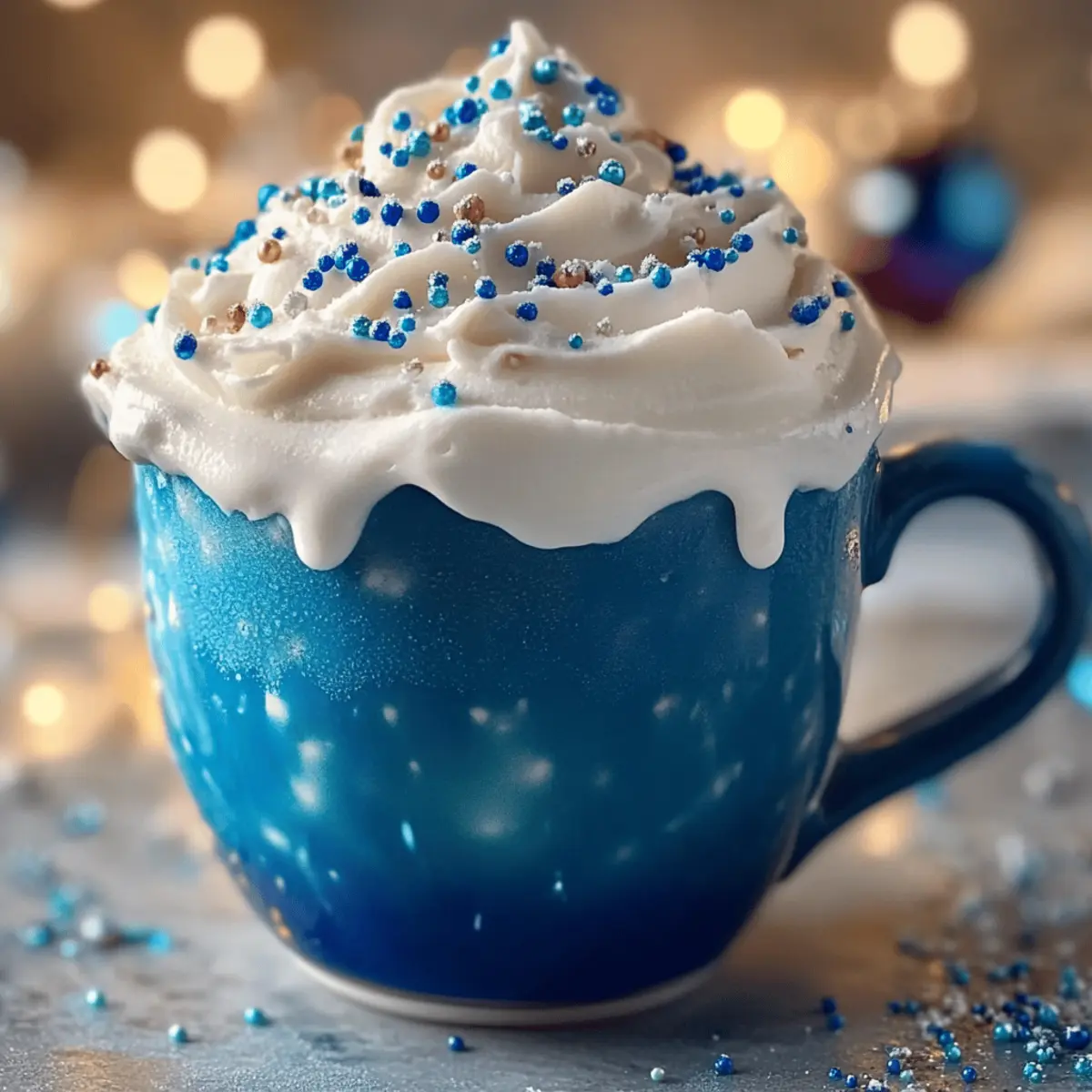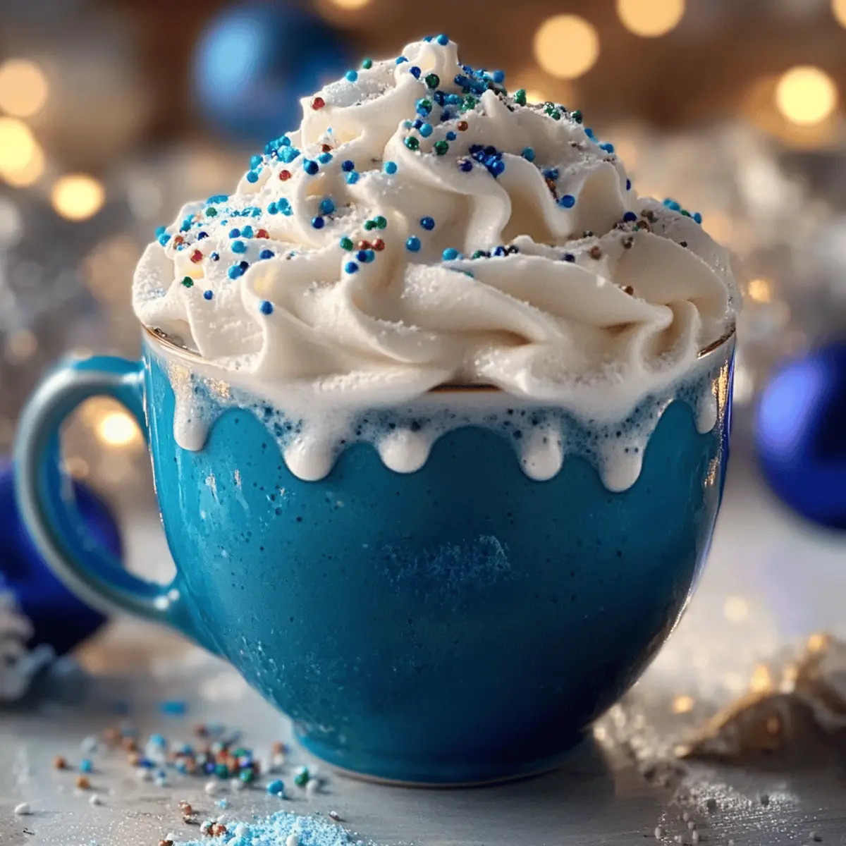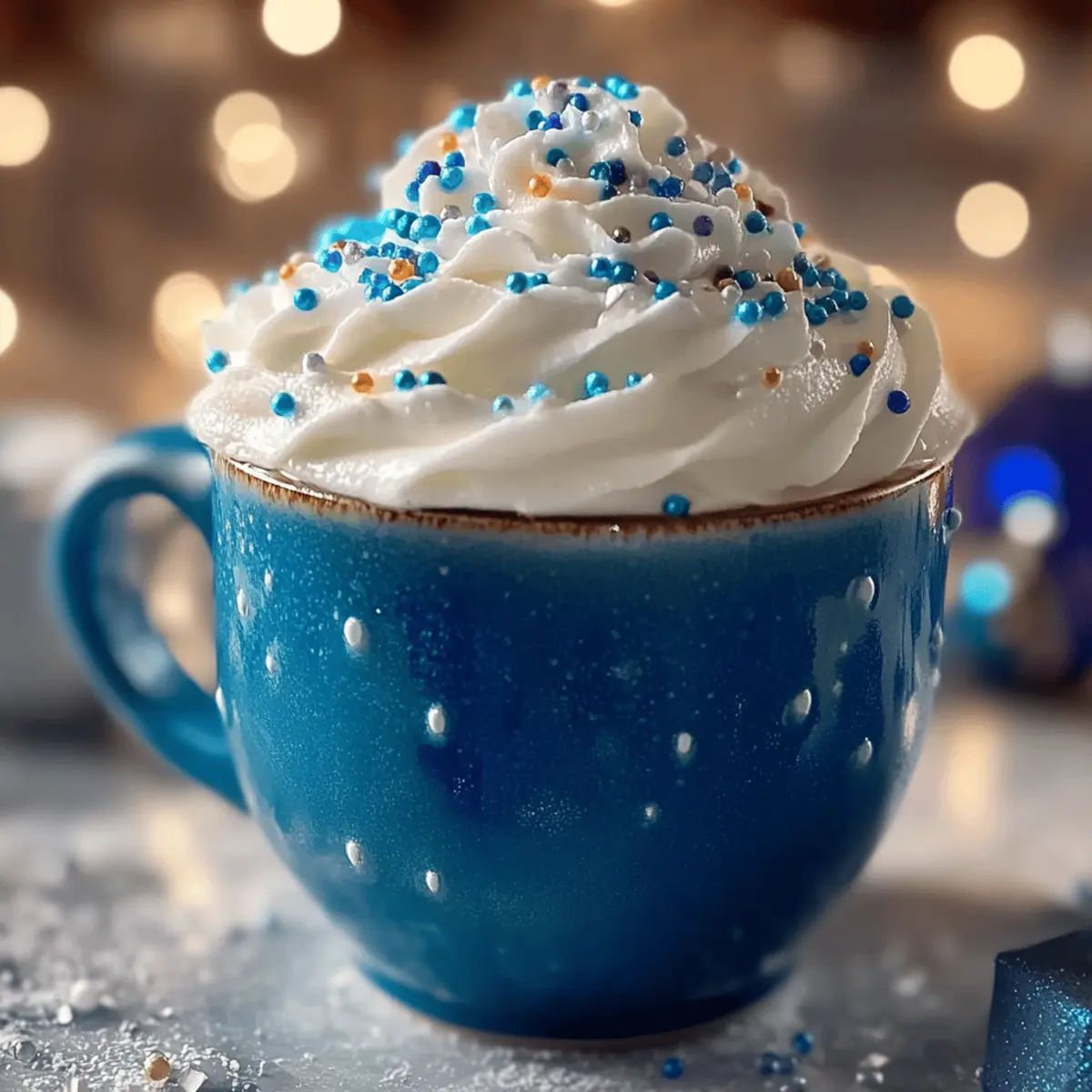 As I stirred the vibrant blue concoction on a chilly winter evening, a wave of nostalgia washed over me. Our timeless family gatherings were always accompanied by the laughter of loved ones, and this year, I’m excited to introduce a festive twist with Frostbite Blue Christmas Cocoa. This holiday drink combines rich white chocolate, creamy milk, and a whisper of peppermint, creating a cozy indulgence that’s sure to enchant guests of all ages. Not only is it a feast for the eyes, but it also makes for a quick prep that can be whipped up in just minutes, leaving you plenty of time to enjoy the festivities. So, are you ready to elevate your holiday gatherings with this magical drink that’s bound to spark joy? Let’s dive into this delightful recipe together! Why is Frostbite Blue Christmas Cocoa Special? Uniquely Festive: This magical drink offers a charming twist on traditional cocoa, making it a striking centerpiece for your holiday gatherings. Quick Prep: You’ll be delighted to know that you can create this velvety delight in just minutes—perfect for those busy holiday nights! Versatile Ingredients: Whether you prefer whole milk or a dairy-free alternative like almond milk, this recipe can easily accommodate different dietary needs. Crowd-Pleasing Flavor: The delightful blend of white chocolate and peppermint captures the essence of the season, warming both hearts and taste buds. Visual Appeal: With its striking blue hue and fluffy whipped cream topping, it’s sure to be a hit, leaving your guests in awe. Pair this festive drink with some homemade treats, like frosted sugar cookies, for an unforgettable holiday experience! Frostbite Blue Christmas Cocoa Ingredients • Dive into this magical drink with these essential ingredients! For the Cocoa Whole Milk – Provides creaminess; substitute with dairy-free milk for a vegan option. White Chocolate Chips – Adds sweetness and richness; opt for dairy-free white chocolate for a vegan alternative. Vanilla Extract – Enhances the aromatic flavor; using pure vanilla extract offers better quality. Peppermint Extract – Brings in a festive mint flavor; adjust to your taste for intensity. Blue Gel Food Coloring – Gives that enchanting visual appeal; keep in mind that liquid blue food coloring can be used but may yield a less vivid color. For the Toppings Whipped Cream – A fluffy topper that adds richness; homemade whipped cream elevates the experience. Chocolate Shavings – Introduce an extra layer of chocolatey goodness; you can use either dark or white chocolate. Sprinkles – A fun, colorful garnish that brings a celebratory vibe; consider using edible glitter for extra sparkle! Get ready to create the perfect Frostbite Blue Christmas Cocoa that will dazzle your holiday gatherings! Step‑by‑Step Instructions for Frostbite Blue Christmas Cocoa Step 1: Heat the Milk In a small saucepan, pour in about 2 cups of whole milk and place it over medium heat. Stir continuously with a whisk for approximately 5 minutes, or until the milk is steaming but not boiling. You’ll know it’s ready when you see tiny bubbles forming around the edges. This initial step sets a creamy base for your Frostbite Blue Christmas Cocoa. Step 2: Melt the White Chocolate Next, add a cup of white chocolate chips into the saucepan with the heated milk. Keep whisking continuously for about 3-4 minutes until the chocolate melts completely and the mixture becomes smooth and velvety. As the white chocolate blends into the milk, enjoy the delightful aroma filling your kitchen, a sign of the indulgent cocoa to come! Step 3: Incorporate Flavors Once the chocolate is melted and the mixture is uniform, remove the saucepan from the heat. Stir in a teaspoon of pure vanilla extract and half a teaspoon of peppermint extract, mixing well to ensure the flavors meld beautifully. This fragrant addition of vanilla and peppermint enhances the sweetness and brings that festive touch to your Frostbite Blue Christmas Cocoa. Step 4: Add Color Now, it’s time to transform your cocoa into its enchanting blue hue! Gradually add a few drops of blue gel food coloring to the mixture, stirring well after each addition. Continue adjusting until you reach your desired shade of frosty blue; around 4-5 drops typically works wonders. The vibrant color will make this drink visually captivating and festive, perfect for holiday gatherings. Step 5: Serve with Toppings Pour the hot Frostbite Blue Christmas Cocoa into your favorite mugs, leaving some room at the top for delightful toppings. Generously dollop homemade whipped cream on each serving, then sprinkle with chocolate shavings and festive sprinkles for that extra sparkle. This final touch not only adds texture but makes your holiday drink an irresistible treat that guests will adore! Expert Tips for Frostbite Blue Christmas Cocoa Whisking Technique: Whisk continuously while heating the milk to prevent it from sticking to the pan and ensure a smooth, creamy texture in your Frostbite Blue Christmas Cocoa. Quality Matters: Always use high-quality white chocolate and vanilla extract for the best flavor. This small detail can truly elevate your drink! Garnish Variety: Create a ‘garnish bar’ for your guests! Offer toppings like extra whipped cream, chocolate shavings, and sprinkles to personalize each mug. Adjust Mint Levels: Peppermint extract can vary in intensity; start with a little and adjust to your taste. You can also omit it for a classic version of the cocoa. Leftover Storage: If you have any cocoa left over, store it in an airtight container in the fridge for up to three days. Reheat gently to maintain creaminess and flavor. Frostbite Blue Christmas Cocoa Variations Feel free to get creative with your Frostbite Blue Christmas Cocoa by trying out these fun and flavorful twists! Dairy-Free: Substitute whole milk with almond milk or coconut milk for a delightful vegan alternative that maintains creaminess. The nutty hints of almond