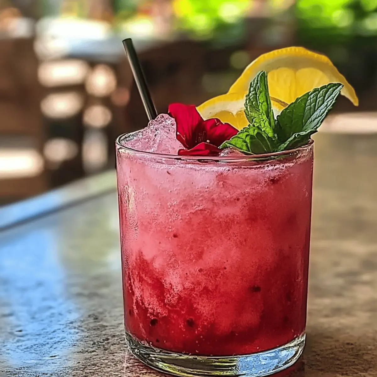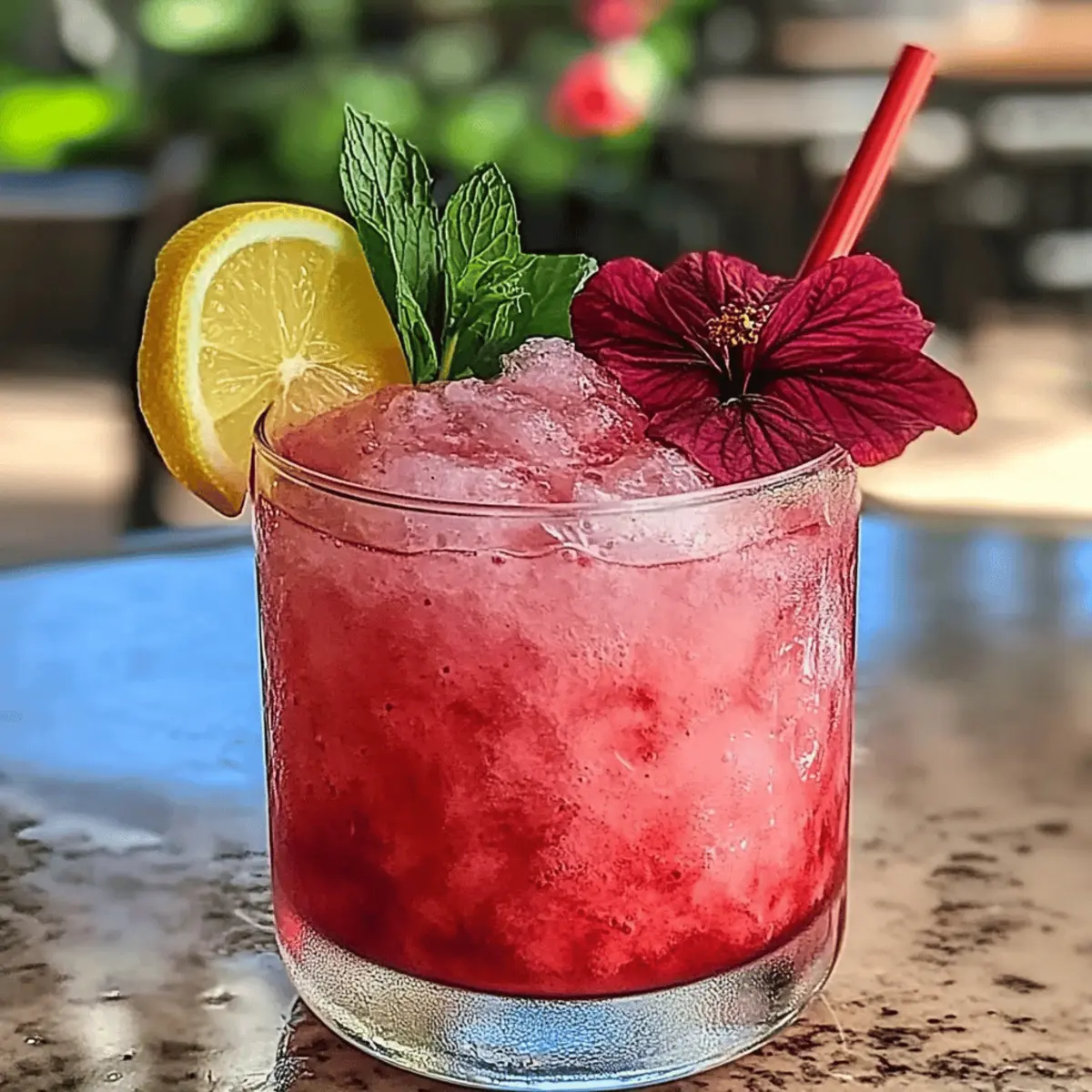 On a sweltering summer afternoon, nothing beats the refreshment of a chilled drink that dances on your taste buds. This Frozen Hibiscus Lemonade is my go-to recipe when the temperature climbs, turning everyday moments into mini celebrations with its vibrant color and tangy taste. Combining the floral notes of hibiscus with the zesty brightness of fresh lemons, this refreshing summer drink is not only incredibly simple to make, but also a guaranteed crowd-pleaser. Imagine serving this icy delight at your next backyard gathering or lounging by the pool—easy to whip up and equally delightful to sip! Curious how this delightful concoction comes together? Let’s dive into the recipe! Why is Frozen Hibiscus Lemonade a Must-Try? Vibrant, Eye-Catching Color: This drink boasts a stunning deep red hue that instantly elevates any summer outing. Deliciously Refreshing: The perfect combination of floral hibiscus and zesty lemon creates a flavor sensation that quenches your thirst. Simple Ingredients: Made with just a few pantry staples, you can whip it up in no time—ideal for spontaneous summer get-togethers! Versatile and Fun: Customize this drink by adding lemon slices or fresh mint leaves, and consider serving it in chilled jam jars for a festive touch. Health-Conscious Option: Lower the sugar or swap it for honey to fit your dietary preferences, especially if you’re in the mood for a lighter drink. For a bubbly twist, try using sparkling water instead! Whether paired with some light snacks or enjoyed on its own, this Frozen Hibiscus Lemonade brings joy to every sip. Don’t forget to check out our refreshing Watermelon Lemonade Beat for more summertime delights! Frozen Hibiscus Lemonade Ingredients For the Hibiscus Tea Water – Essential for brewing hibiscus tea; use filtered water for optimal flavor. Dried Hibiscus Flowers – Provides the base flavor and vibrant color; you can substitute with hibiscus tea bags if they’re hard to find. For the Lemonade Mixture Freshly Squeezed Lemon Juice – Adds bright acidity; fresh juice is preferred as it elevates the overall taste. Granulated Sugar – Sweetens the drink; adjust sweetness to taste or substitute with honey or agave syrup for a healthier option. Ice Cubes – Creates the slushy texture; larger ice cubes work best for blending smoothly. Optional Ingredients Honey – Adds extra sweetness if desired; feel free to omit or replace with agave nectar. Lemon Slices (for garnish) – Enhances presentation and adds a hint of extra flavor; fresh lemon slices are the way to go! Fresh Mint Leaves (for garnish) – Provides a refreshing aroma and beautiful visual appeal. Create this Frozen Hibiscus Lemonade to enjoy a delightful summer drink that is as easy to make as it is refreshing! Step‑by‑Step Instructions for Frozen Hibiscus Lemonade Step 1: Brew the Hibiscus Tea In a small saucepan, bring 2 cups of filtered water to a rolling boil over medium-high heat. Once boiling, remove the pot from the heat and add in the dried hibiscus flowers. Let the mixture steep for 5 to 7 minutes, until it deepens in color and releases its floral aroma, creating a luscious hibiscus tea. Step 2: Sweeten and Cool the Tea After steeping, strain the hibiscus tea into a heatproof bowl or pitcher, discarding the used flowers. Stir in the granulated sugar while the tea is still warm, ensuring it fully dissolves for an evenly sweetened flavor. Allow this mixture to cool to room temperature, making the base for your refreshing Frozen Hibiscus Lemonade. Step 3: Blend the Lemonade Once the hibiscus tea has cooled, gather a blender and add in the cooled tea, freshly squeezed lemon juice, ice cubes, and honey if you prefer a sweeter taste. Blend these ingredients on high speed for about 30 seconds, or until you achieve a smooth, slushy consistency that looks vibrant and inviting. Step 4: Adjust Sweetness Taste your blended Frozen Hibiscus Lemonade to see if additional sweetness is necessary. If it needs more sweetness, you can add a touch more sugar or honey. Blend for a few more seconds to incorporate any additional ingredients, ensuring your drink is perfectly tailored to your liking. Step 5: Serve and Garnish Pour the Frozen Hibiscus Lemonade into chilled glasses to maintain that refreshing temperature. To elevate your presentation, garnish each serving with fresh lemon slices and a sprig of mint for an aromatic touch. Enjoy your delightful creation immediately, savoring the beautiful colors and inviting flavors! Storage Tips for Frozen Hibiscus Lemonade Fridge: Store any leftover Frozen Hibiscus Lemonade in an airtight container for up to 1-2 days. If it separates, simply stir to recombine before serving. Freezer: If you want to keep it longer, freeze the mixture in ice cube trays. Once frozen, transfer cubes to a zip-top bag for easy blending later—perfect for spontaneous summer sips! Reheating: Since this is a refreshing drink, reheating isn’t necessary. Instead, if it melts, give it a good stir or add more ice to re-chill before enjoying. Prep Ahead: You can prepare the hibiscus tea in advance and refrigerate it. This makes blending for your Frozen Hibiscus Lemonade quick and hassle-free on hot days! Expert Tips for Frozen Hibiscus Lemonade Tea Temperature: Always let the hibiscus tea cool to room temperature before blending. This prevents the ice from melting too quickly and keeps your drink refreshing. Flavor Balance: Taste the hibiscus tea before adding sugar; it can vary in sweetness. Adjust gradually to achieve the perfect balance between tartness and sweetness for your Frozen Hibiscus Lemonade. Ice Choice: For a smoother texture, use larger ice cubes or blended ice. Smaller cubes may result in a grainier consistency that can detract from the drink’s enjoyable experience. Garnishing Ideas: Enhance presentation by using vibrant lemon slices and fresh mint leaves. The visual appeal boosts the refreshment factor and adds to the overall drinking experienc