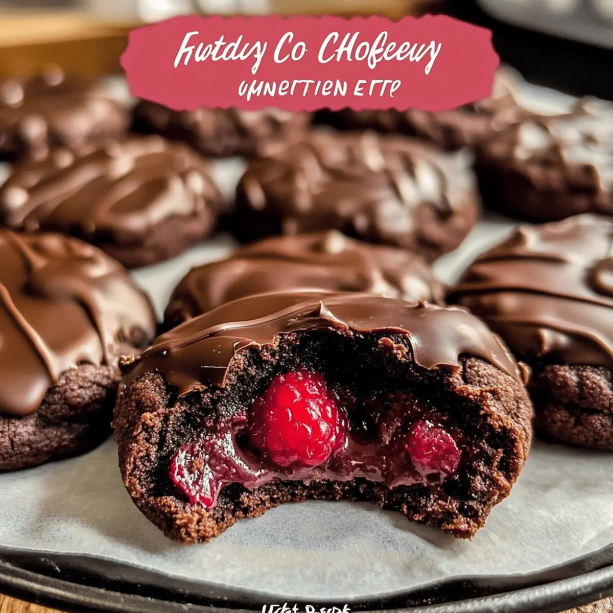 As the aroma of freshly baked cookies fills the air, I can’t help but feel a surge of joy. There’s something incredibly special about creating Fudgy Chocolate Cookies with Raspberry Filling that takes me back to my childhood when my grandmother shared her secrets in the kitchen. With their rich, chewy texture and a hidden, vibrant raspberry center, these cookies strike the perfect balance between sweet and tart. Not only are they a delightful treat to savor, but they’re also surprisingly easy to whip up for any gathering or a cozy night in. Imagine serving these at your next get-together and watching the delight on your guests’ faces! Are you ready to dive into a world of chocolatey bliss with me? Why Are These Cookies So Irresistible? Decadent Flavors: A luscious combination of rich chocolate and tart raspberry creates a truly divine treat. Easy to Make: With straightforward steps, you’ll bake these cookies even if you’re a beginner! Fancy Presentation: The glossy chocolate coating makes them look like gourmet goodies—perfect for impressing guests. Versatile Treat: Feel free to swap the raspberry for strawberries or blackberries for a different flavor! Try pairing them with a scoop of vanilla ice cream for a delightful dessert experience. Crowd-Pleasing: The unique flavor combination and chewy texture ensure that these cookies will be a hit at any gathering. You won’t want to miss out on this recipe, especially if you love indulgent delights like Brown Butter Chocolate or Salted Caramel Chocolate! Fudgy Chocolate Cookies with Raspberry Ingredients For the Cookie Dough • Unsalted Butter – Provides richness and moisture; can substitute with margarine or vegan butter. • Granulated Sugar – Sweetens the dough; reduce or replace with coconut sugar for a lower glycemic index. • Brown Sugar – Contributes moisture and deeper flavor; additional granulated sugar may alter texture. • Large Eggs – Binds ingredients and aids in leavening; replace with flax eggs for a vegan version. • Vanilla Extract – Adds depth of flavor; can be omitted if not available. • All-Purpose Flour – Builds the structure of the cookie; gluten-free flour can be used with adjusted liquid. • Unsweetened Cocoa Powder – Gives the cookies their chocolate flavor; Dutch cocoa works for a darker taste. • Baking Soda – Provides leavening; no direct substitutes recommended. • Salt – Enhances flavor; omit for sodium-restricted diets. For the Raspberry Filling • Fresh Raspberries – Adds tartness and natural fruit flavor; use frozen if fresh is unavailable. • Raspberry Jam – Sweet filling; opt for high-quality or seedless for a smoother texture. • Cornstarch – Adds tenderness to the cookies; no substitutions recommended unless for allergies. • Lemon Juice – Enhances raspberry flavor and adds acidity; can substitute with vinegar if needed. For the Coating • Semi-sweet or Dark Chocolate – Creates a glossy finish; try white chocolate or carob chips for variety. • Coconut Oil – Used for smoothing chocolate coating; vegetable oil can serve as a substitute. Optional Addition • Semi-sweet Chocolate Chips – For extra chocolate flavor; dark or milk chocolate can be used instead. Dive into the world of Fudgy Chocolate Cookies with Raspberry and bring a taste of heaven to your kitchen! Step‑by‑Step Instructions for Fudgy Chocolate Cookies with Raspberry Step 1: Prepare Raspberry Filling In a medium bowl, combine fresh raspberries, raspberry jam, cornstarch, and lemon juice. Gently mash the raspberries with a fork while mixing, ensuring a well-blended filling. This mixture should resemble a thick, fruity sauce. Set the raspberry filling aside to allow the flavors to meld while you prepare the cookie dough. Step 2: Make the Dough In a large mixing bowl, cream together softened unsalted butter, granulated sugar, and brown sugar until light and fluffy, about 3–4 minutes. Next, beat in the large eggs and vanilla extract until fully combined. The mixture should look pale and creamy. This forms the base of your fudgy chocolate cookies with raspberry filling, adding richness and moisture. Step 3: Combine Dry Ingredients In another bowl, whisk together all-purpose flour, unsweetened cocoa powder, baking soda, and a pinch of salt. Gradually add this dry mixture into the wet ingredients, mixing on low speed until just combined. Be cautious not to overmix; the dough should be soft and slightly sticky, ready to hold the delightful raspberry center. Step 4: Assemble Cookies Using a cookie scoop or tablespoon, take a portion of dough and flatten it in your hand. Create a small well in the center and spoon in a dollop of the raspberry filling. Seal the dough around the filling, shaping it into a ball. Repeat this process with the remaining dough and filling, placing each cookie on a lined baking sheet. Step 5: Bake Preheat your oven to 350°F (175°C) and arrange the cookie balls on the lined baking sheet, leaving space between them to allow for spreading. Bake for approximately 10–12 minutes, until the edges are set but the centers remain soft. The cookies will firm up as they cool, creating that perfect fudgy texture. Step 6: Cool and Coat Once baked, remove the cookies from the oven and allow them to cool on the baking sheet for about 5 minutes. Prepare a chocolate coating by melting semi-sweet or dark chocolate with a little coconut oil until smooth. Dip each cookie in the melted chocolate, covering fully, and let them set on a wire rack for a shiny finish. How to Store and Freeze Fudgy Chocolate Cookies Room Temperature: Store the cookies in an airtight container at room temperature for up to 1 week; this keeps them soft and fresh. Refrigeration: For extended freshness, you can refrigerate the cookies, where they will stay good for up to 2 weeks. Just ensure they are securely wrapped to prevent drying out. Freezer: Freeze the cookies in a single layer on a baking sheet bef