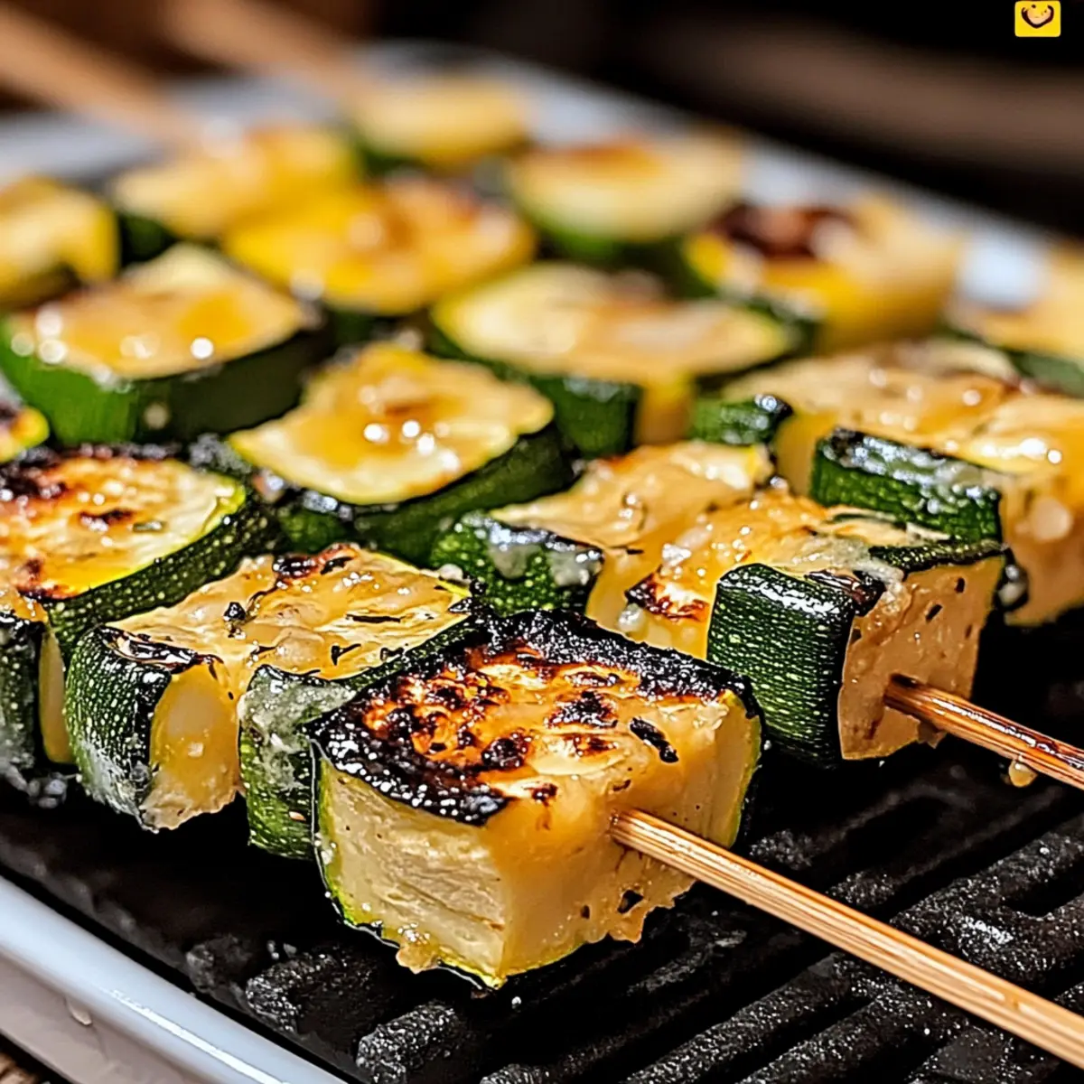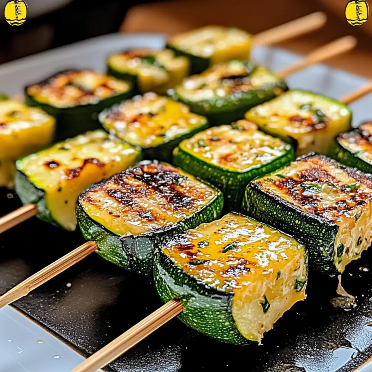 As I lifted the lid of my grill, a captivating aroma swept over me—a warm embrace of garlic and butter mingled with the charred scent of fresh zucchini. These Garlic Butter Zucchini Skewers are more than just a dish; they’re an irresistible ode to summer grilling and the perfect way to bring a burst of flavor to any meal. Designed for both busy weeknights and festive gatherings, this quick vegetarian side dish brings joy to the table without the fuss. Each bite of tender, grilled zucchini coated in rich garlic butter will leave your guests craving more. Ready to elevate your outdoor cooking adventures? Let’s dive into how to make these delectable skewers that promise to spark joy and satisfy! Why Are These Skewers So Irresistible? Bold, Rich Flavors: The combination of garlic and butter creates an irresistible punch that elevates the humble zucchini to new heights. Quick to Prepare: With minimal ingredients and steps, you can bring this delicious side dish to life in just 30 minutes, making it perfect for busy weeknights or last-minute gatherings. Versatility at Its Best: These skewers are not only great on their own, but they also complement grilled meats, like our Garlic Parmesan Chicken or work wonderfully in a veggie platter! Crowd-Pleasing Appeal: Ideal for cookouts, parties, or simply to indulge at home, these skewers will impress family and friends alike—everyone will be asking for seconds! Healthier Option: As a vegetarian dish, these skewers offer a tasty alternative to typical greasy options, focusing on fresh ingredients without sacrificing flavor. Garlic Butter Zucchini Skewers Ingredients For the Skewers • Zucchini – Freshness is key; select firm, vibrant zucchinis for the best results. • Unsalted Butter – Provides a rich base; swap with olive oil for a dairy-free alternative. • Minced Garlic – Essential for that aromatic flavor; adjust based on your love for garlic. For Seasoning • Olive Oil – Ensures a non-stick surface on the grill while enhancing the flavor. • Salt – Use to taste, and remember to adjust if your butter is salted. • Black Pepper – Freshly ground adds depth; a pinch can elevate the entire dish. For a Zesty Finish • Lemon Juice – Just a drizzle brings brightness; opt for fresh lemon for the best flavor. These Garlic Butter Zucchini Skewers promise a delightful experience, making them the perfect addition to your next grill session! Step‑by‑Step Instructions for Garlic Butter Zucchini Skewers Step 1: Prepare Zucchini Begin by washing the zucchini under cool water to remove any dirt, then slice them into thick rounds or half-moons, about 1-inch thick. This ensures even cooking and a satisfying texture. Set the cut zucchini aside on a clean cutting board as you prepare the garlic butter. Step 2: Make Garlic Butter In a small saucepan, melt 1/4 cup of unsalted butter over low heat. Once melted, add 2 tablespoons of minced garlic and simmer for 2-3 minutes until fragrant but not browned. The aroma will be captivating! Remove from heat to keep the garlic flavor fresh, and set the garlic butter aside while you season the zucchini. Step 3: Season Zucchini In a large mixing bowl, toss the sliced zucchini with 2 tablespoons of olive oil, 1 teaspoon of salt, and 1/2 teaspoon of freshly ground black pepper. Drizzle the prepared garlic butter over the zucchini and mix thoroughly, ensuring each piece is well-coated. Let the zucchini sit for a few minutes to absorb the flavors. Step 4: Assemble Skewers Take your soaked wooden skewers (soaked for at least 30 minutes to prevent burning) and thread the zucchini slices onto them. Alternate the orientation if desired for visual appeal. Fill each skewer with 4-5 pieces and leave some space between each slice to ensure even cooking. Step 5: Grill Skewers Preheat your grill to medium-high heat, around 400°F (200°C). Once hot, place the skewers on the grill and cook for 8-10 minutes, turning occasionally. Look for a slight char and tender texture; the zucchini should have grill marks while remaining juicy and flavorful. Step 6: Serve Once grilled to perfection, remove the skewers from the grill and transfer them to a serving platter. To finish, drizzle fresh lemon juice over the skewers to add brightness. Serve these irresistible garlic butter zucchini skewers hot, and enjoy them as a delightful side or appetizer! Make Ahead Options These Garlic Butter Zucchini Skewers are perfect for meal prep enthusiasts looking to save time during busy weeknights! You can slice the zucchini and toss it with olive oil, salt, pepper, and garlic butter up to 24 hours in advance—just store them in an airtight container in the refrigerator to maintain freshness. When you’re ready to grill, simply thread the marinated zucchini onto soaked skewers and grill as directed. This way, the flavors have time to meld, resulting in just as delicious skewers with minimal effort when it’s time to serve. Enjoy the convenience of having a quick, flavorful dish ready at a moment’s notice! Garlic Butter Zucchini Skewers Variations Feel free to customize these skewers to suit your taste buds and kitchen adventures! Dairy-Free: Substitute unsalted butter with olive oil or coconut oil for a deliciously rich flavor without the dairy. Hearty Addition: Thread on bell peppers or cherry tomatoes alongside the zucchini for a colorful and tasty twist. Herb-Infused: Mix in fresh herbs like thyme or basil for an aromatic boost that elevates the flavors beautifully. Spicy Kick: Add a sprinkle of red pepper flakes to the garlic butter for a zesty, spicy finish to your skewers! The addition of heat will tantalize your taste buds, and a little goes a long way in making these skewers memorable. Cheesy Surprise: Top with crumbled feta or fresh parmesan before serving for a creamy richness that pairs beautifully with the garlic butter. Grill ‘Em All: Grill other vegetables like eggplant or mushrooms on the same skewers for a medley of