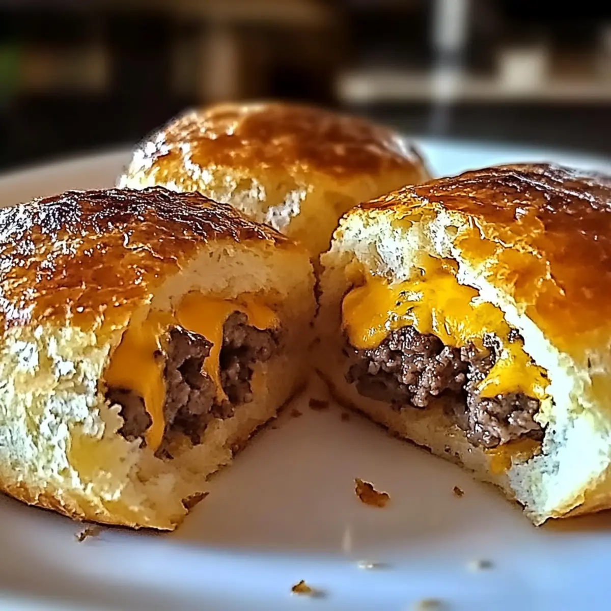 As I stood in my kitchen, the aroma of garlic and melting cheese wafted through the air, instantly transforming my evening routine into something special. Enter the Garlic Parmesan Cheeseburger Bombs—these little pockets of joy bring a delightful twist to traditional comfort food. With a crispy biscuit exterior enveloping a gooey, cheesy beef filling, they’re not just a hit during game days but also a perfect solution for busy weeknights or casual family gatherings. The best part? They’re incredibly customizable so you can easily adapt them to fit different tastes or dietary preferences, whether you choose ground turkey for a healthier option or even try a vegetarian twist. Plus, they’re freezer-friendly, meaning you can have homemade goodness ready whenever cravings strike! Ready to whip up a batch of these irresistible bites? Let’s dive into the recipe! Why are Garlic Parmesan Bombs a Must-Try? Flavor Explosion: Each bite is a burst of savory garlic and cheesy goodness that will leave you craving more. Freezer-Friendly: Prepare a batch and keep them on hand for a quick snack or meal – they’re perfect for those busy days! Customizable Options: From spicy jalapeños to vegetarian mushrooms, you can easily tailor these bombs to suit any taste preference. Kid-Approved: Their fun shape and delicious filling make them a hit with children and adults alike. For more easy crowd-pleasers, check out our Garlic Parmesan Chicken or Honey Garlic Glazed Salmon. Simple Ingredients: With minimal components needed, you can whip these up without a hassle, making cooking enjoyable and stress-free! Garlic Parmesan Cheeseburger Bombs Ingredients For the Filling • Ground Beef – Provides a hearty filling; feel free to substitute with ground turkey or plant-based meat for a lighter version. • Shredded Cheese – Adds melty goodness; switch it up with cheddar or pepper jack for unique flavors. • Minced Garlic – Infuses a robust flavor; fresh garlic is recommended for the best taste. For the Dough • Biscuit Dough – Forms the outer layer; you can also use crescent dough for a flakier texture. • Butter – Creates a flavorful garlic topping; unsalted butter is the best choice for flavor control. For Topping • Parmesan Cheese – Sprinkled on top for an extra cheesy layer; try vegan cheese for a dairy-free alternative. • Fresh Parsley – An optional garnish for enhanced presentation; you may omit it for simplicity. With these ingredients ready, you’re just steps away from indulging in these delightful Garlic Parmesan Cheeseburger Bombs! Step‑by‑Step Instructions for Garlic Parmesan Cheeseburger Bombs Step 1: Preheat the Oven Preheat your oven to 375°F (190°C) and prepare a baking sheet by lining it with parchment paper. This step is crucial for achieving that golden-brown crispy exterior on your Garlic Parmesan Cheeseburger Bombs. Make sure the oven reaches the desired temperature before placing your bomb creations inside for optimal baking. Step 2: Cook the Beef Filling In a skillet over medium heat, add the ground beef and cook for about 7-10 minutes, stirring occasionally, until it is browned and fully cooked. Once browned, drain any excess fat to keep the filling nice and hearty. This savory beef will form the delicious core of your Garlic Parmesan Cheeseburger Bombs. Step 3: Add Cheese and Cool Reduce the heat to low and stir in the shredded cheese with the cooked beef until it’s melted and gooey; this should only take a couple of minutes. Once combined, remove the mixture from heat and let it cool slightly. This helps prevent the biscuit dough from becoming soggy when you seal the bombs. Step 4: Prepare the Biscuit Dough While the filling cools, take your biscuit dough and flatten each round to about 4 inches in diameter. Make sure your workspace is clean and dusted with a little flour if needed for easier handling. Each flattened piece will encase the flavorful filling, ensuring a delightful burst of flavor with every bite. Step 5: Assemble the Bombs Spoon about 1 tablespoon of the cooled beef and cheese mixture onto the center of each dough round. Carefully pinch the edges of the dough to seal completely, forming a pocket. Place each sealed bomb seam-side down on your prepared baking sheet. This method ensures that the filling stays tucked away during baking. Step 6: Brush with Garlic Butter In a small bowl, melt the butter and mix in the minced garlic and optional parsley for extra flavor. Using a brush, generously apply this garlic butter mixture over the tops of each bomb to help achieve a golden color and infuse a rich taste. This step enhances the visual appeal and aroma of your Garlic Parmesan Cheeseburger Bombs. Step 7: Sprinkle with Parmesan Before baking, sprinkle a little Parmesan cheese on top of each bomb for an extra cheesy finish. This adds both flavor and a lovely texture to your Garlic Parmesan Cheeseburger Bombs. Make sure the cheese is distributed evenly to maximize that melty goodness. Step 8: Bake to Perfection Transfer the baking sheet to your preheated oven and bake for 15-18 minutes, or until the bombs are puffed up and golden brown. Keep an eye on them during the last few minutes—when they look crispy and smell heavenly, they’re ready to come out and be savored. Step 9: Cool and Serve Once baked, allow the Garlic Parmesan Cheeseburger Bombs to cool slightly on the baking sheet for about 5 minutes. This brief cooling period helps maintain the integrity of the filling while also making them easier to handle. Serve warm with your favorite dipping sauces for the ultimate comfort food experience. How to Store and Freeze Garlic Parmesan Cheeseburger Bombs Fridge: Keep any leftovers in an airtight container for up to 3 days. When ready to enjoy, reheat in the oven to restore that delightful crispness. Freezer: Assemble the bombs but do not bake them. Place them on a baking sheet until firm, then transfer to a freezer-safe bag or container. Th