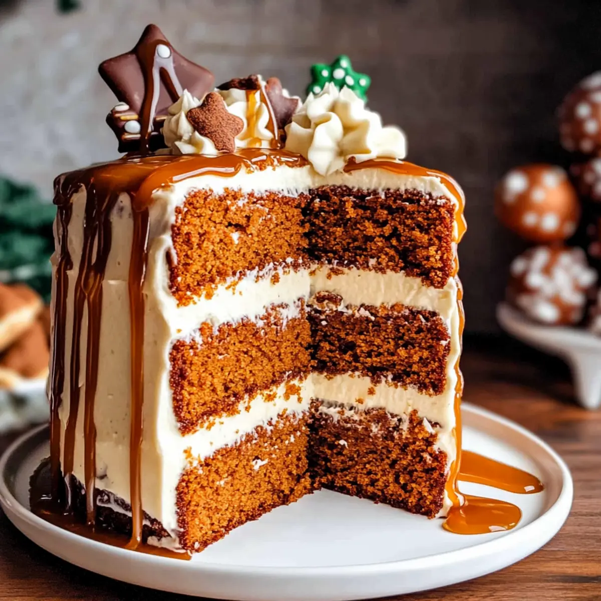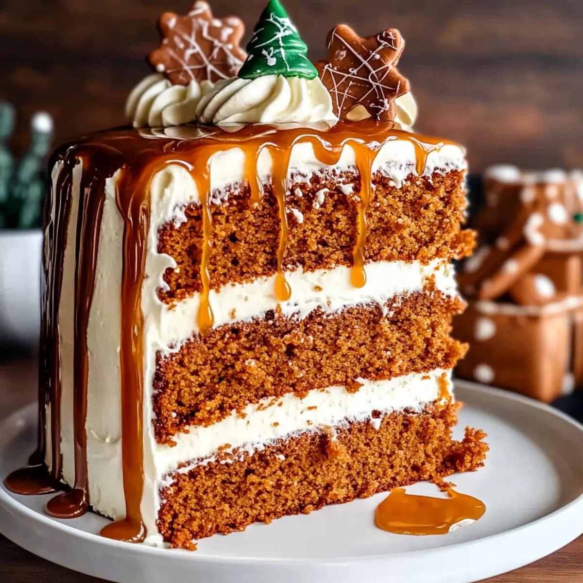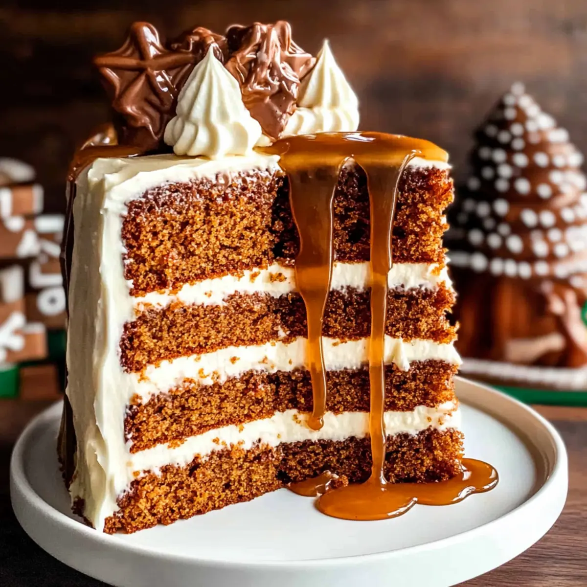 As the first hint of winter rolls in, the sweet aroma of freshly baked treats fills the air, evoking memories of cozy holidays spent with loved ones. This is the magic of my Soft Gingerbread Layer Cake with White Chocolate Cream Cheese Frosting—a festive dessert that captures the heart of Christmas in every mouthful. Combining warm spices like ginger, cinnamon, and nutmeg, this cake elevates traditional holiday flavors to new heights, making it a cozy crowd-pleaser for gatherings. One of the best perks? It’s surprisingly straightforward to whip up, meaning you can spend less time in the kitchen and more time making memories. Plus, it can easily be made ahead—set it aside in your freezer until you’re ready to impress family and friends. Curious about how to bring this delightful creation to life? Let’s dive into the recipe! Why is this gingerbread cake a must-try? Irresistible Flavor: This Soft Gingerbread Layer Cake packs a punch with warm spices like ginger and cinnamon, creating the ultimate festive dessert. Crowd-Pleasing Delight: Perfect for holiday gatherings, its delicious white chocolate cream cheese frosting and luscious caramel drizzle make it a showstopper. Easy to Make: With straightforward steps, even novice bakers can impress their guests with this delicious cake. Make-Ahead Magic: Prepare it in advance and freeze, allowing you to enjoy your holiday festivities without stress. For more cozy flavors, check out my recipe for Tres Leches Cake or indulge in a slice of Basque Cheesecake Indulgence. Gingerbread Layer Cake Ingredients • Discover the cozy components that make this cake truly special! For the Cake Granulated Sugar – Provides sweetness to perfectly balance the holiday spices. Unsalted Butter – Adds richness and moisture; ensure it’s softened for easy mixing. Unsulphured Molasses – Contributes deep flavor and moisture; essential for authentic gingerbread taste. Light Brown Sugar – Adds moisture with a hint of caramel; swap for dark brown sugar if you desire a richer flavor. All-Purpose Flour – Forms the cake’s structure; measure accurately by spooning and leveling. Baking Powder & Baking Soda – Essential leavening agents that help your gingerbread layer cake rise beautifully. Eggs – Act as binders, adding richness; always use room temperature for best results. Buttermilk – Ensures tenderness; substitute with regular milk plus a dash of vinegar for a quick fix. Ground Spices (ginger, cinnamon, nutmeg, allspice, cloves) – Infuse signature gingerbread flavor; feel free to adjust for a stronger spice kick. Salt – Balances sweetness between the cake and caramel; customize to taste. For the Frosting Cream Cheese – Creates a smooth, tangy frosting base; use cold for optimal consistency. High-Quality White Chocolate – Ensures a sweet, creamy texture for the frosting; avoid low-quality options for the best results. Powdered Sugar – Sweetens the frosting; sift it to prevent clumps. Vanilla Extract – Enhances the overall flavor of the frosting; feel free to swap with almond extract for a twist. For the Caramel Drizzle Heavy Cream – Creates that rich, luscious caramel sauce; room temperature works best. Granulated Sugar – The base for caramel; heat until melted and golden for the perfect drizzle. Unsalted Butter – Adds richness to the caramel sauce; combine it with cream for a smooth finish. Salt – Just a pinch elevates the caramel’s flavor, making it wonderfully balanced. Step‑by‑Step Instructions for Gingerbread Layer Cake Step 1: Prepare the Oven and Pans Preheat your oven to 350°F (175°C). While it warms up, take three 6-inch cake pans and grease them well with non-stick spray. To ensure the cakes come out smoothly, line the bottoms with parchment paper. You’ll want these pans ready to hold the delicious batter of your Gingerbread Layer Cake. Step 2: Whisk the Dry Ingredients In a large mixing bowl, combine all-purpose flour, baking powder, baking soda, salt, and your spice medley of ginger, cinnamon, nutmeg, allspice, and cloves. Whisk these ingredients thoroughly for about 1-2 minutes until they are well-blended and aerated. This step ensures that the warm spices are evenly distributed throughout your Gingerbread Layer Cake. Step 3: Cream the Butter and Sugars In a separate bowl, add softened unsalted butter, granulated sugar, and light brown sugar. Using an electric mixer, cream them together on medium speed for about 3-4 minutes until the mixture is light and fluffy, appearing pale in color. This is key to achieving a moist and tender Gingerbread Layer Cake, so take your time with this step. Step 4: Add Wet Ingredients To the creamed mixture, add room temperature eggs, vanilla extract, and unsulphured molasses. Mix on low speed until all ingredients are well incorporated and the batter is smooth, approximately 1-2 minutes. This blend of flavors enhances the rich, warm profile of your Gingerbread Layer Cake. Step 5: Combine Dry and Wet Ingredients Gradually add the dry ingredient mixture into the wet mixture, alternating with buttermilk. Begin with dry ingredients and mix gently until just combined — this should take about 1-2 minutes. Be careful not to overmix; the batter should be smooth and slightly thick, ready to transform into a delightful Gingerbread Layer Cake. Step 6: Bake the Cakes Equally divide the batter among the prepared cake pans. Bake in the preheated oven for 28-30 minutes, or until a toothpick inserted in the center comes out clean. You’ll notice a lovely golden-brown color on top, signaling that the layers are ready to cool. Step 7: Cool the Cakes Once baked, remove the cakes from the oven and let them cool in the pans for about 2 minutes. Carefully invert each cake onto a wire rack to cool completely. This cooling is essential for easy frosting later when creating your mouthwatering Gingerbread Layer Cake. Step 8: Prepare the Caramel Drizzle In a saucepan over medium heat, pour granulated