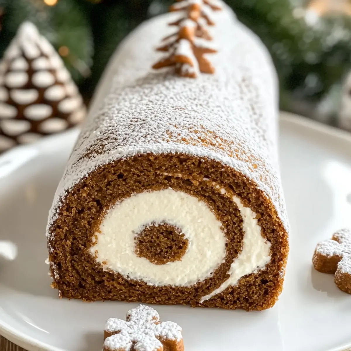 There’s something magical about the scent of gingerbread wafting through the house during the holiday season. The delightful process of creating my Gingerbread Swiss Cake Roll brings me back to cozy winters spent in the kitchen crafting treats that warm the soul. This unique twist on traditional desserts combines a soft, spiced cake with a luscious cream cheese filling, perfect for impressing guests at festive gatherings or simply indulging yourself. Not only is this recipe a crowd-pleaser, but it also comes together quickly, allowing you to spend more time enjoying the festivities and less time stressed in the kitchen. Are you ready to elevate your holiday dessert game and create something unforgettable? Let’s dive into this deliciously festive experience! Why is this cake roll a must-try? Uniquely Festive: This Gingerbread Swiss Cake Roll offers a beautiful presentation that’s perfect for holiday gatherings. Moist and Spicy: The blend of ginger, cinnamon, and cloves fills your home with comforting aromas. Quick to Prepare: With straightforward steps, you’ll have this delightful dessert ready in no time! Versatile Filling Options: Feel free to swap the cream cheese for whipped cream or add a hint of orange zest. Want more festive recipes? Check out my Tres Leches Cake for another crowd-pleaser or try the Basque Cheesecake Indulgence for a twist on classics. This roll is sure to impress everyone at your table! Gingerbread Swiss Cake Roll Ingredients For the Cake • Eggs – Provide structure and moisture in the cake; using room-temperature eggs promotes better emulsification. • All-purpose flour – Acts as the base for the cake’s structure; substitutions are not recommended for the best results. • Ground cinnamon – Adds warmth and spice to the gingerbread flavor profile. • Ground cloves – Enhances the aromatic complexity of the cake, making every bite irresistible. • Ground ginger – Essential for capturing the distinct gingerbread flavor; fresh ginger can be used but might alter the cake’s texture. • Kosher salt – Balances sweet and savory flavors, enhancing the overall taste of the Gingerbread Swiss Cake Roll. • Baking soda – Provides the leavening necessary for the cake to rise properly. • Molasses – Contributes both moisture and a rich flavor to the cake; dark corn syrup can be substituted in a pinch. • Butter – Adds richness and depth of flavor; unsalted is preferred for better control over salt levels. • Sugar – Sweetens the cake and supports browning; brown sugar adds moisture and complexity. For the Filling • Cream cheese – Provides a rich, tangy filling; full-fat is recommended for the best taste and texture. • Unsalted butter (for filling) – Adds creaminess to the frosting; ensure it’s softened for easy mixing. • Vanilla extract – Enhances the overall flavor profile of the filling, rounding out the taste beautifully. • Minced crystallized ginger – Adds a chewy texture and bursts of ginger flavor in the filling; optional but highly recommended for an extra kick. For Garnish (Optional) • Gingerbread cookies – These can be used for garnish, adding charm and a decorative touch to your Gingerbread Swiss Cake Roll. Step‑by‑Step Instructions for Gingerbread Swiss Cake Roll Step 1: Preheat and Prepare the Baking Pan Begin by preheating your oven to 350°F (175°C). While the oven warms, take a 13×18 inch baking pan and line it with parchment paper, ensuring it covers the bottom and sides. This will help your Gingerbread Swiss Cake Roll release easily once baked. Step 2: Combine Dry Ingredients In a medium bowl, whisk together the all-purpose flour, ground cinnamon, ground cloves, ground ginger, kosher salt, and baking soda. This mixture of dry ingredients adds the essential warmth and spice for your gingerbread cake. Set it aside as the next step unfolds, visualizing that fragrant aroma soon to envelop your kitchen. Step 3: Mix Wet Ingredients In a large mixing bowl, beat the egg yolks until they become thick and pale, approximately 4 minutes. Then, mix in the molasses and melted unsalted butter. The combination will create a rich, flavorful base for your Gingerbread Swiss Cake Roll. Ensure there are no lumps before moving to the next step. Step 4: Whip Egg Whites In a separate, clean mixing bowl, whip the egg whites until they reach soft peaks, about 2-3 minutes. Gradually add the sugar while continuing to beat until the mixture becomes glossy and holds stiff peaks. This airy base will help give volume to your cake and create a lovely texture. Step 5: Combine Mixtures Gently fold the whipped egg whites into the egg yolk mixture using a rubber spatula, being careful not to deflate the egg whites. Once combined, fold in your prepared dry ingredients until just blended. The batter will be thick and spiced; ensure there are no white streaks remaining. Step 6: Bake the Cake Pour the batter into the prepared baking pan, spreading it evenly with a spatula. Bake in the preheated oven for 9-12 minutes until the cake springs back when gently pressed. Watch for a slightly golden top, signaling it’s time to remove your Gingerbread Swiss Cake Roll from the oven! Step 7: Cool and Roll the Cake Allow the cake to cool for a few minutes before inverting it onto a sugar-dusted tea towel. Starting at one end, carefully roll the cake up with the towel until it forms a log shape. This helps shape the cake while cooling and prevents cracking later. Place it seam-side down and let it cool completely. Step 8: Prepare the Filling In a mixing bowl, beat the cream cheese, softened unsalted butter, vanilla extract, and minced crystallized ginger until smooth and fluffy, about 3 minutes. This rich and tangy filling will complement the warm spices of your Gingerbread Swiss Cake Roll beautifully. Taste and adjust sweetness to your preference. Step 9: Assemble the Roll Once the cake is completely cool, gently unroll it and spread the cream c