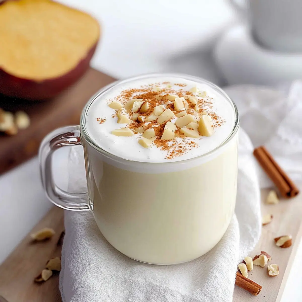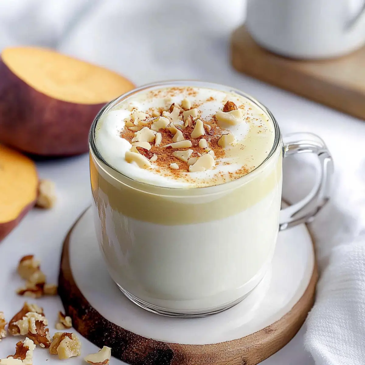 As I lingered over a steaming cup at my favorite local café, I stumbled upon something magical: Goguma Latte, a delightful Korean sweet potato drink that radiated comfort like a warm blanket. With its creamy texture and subtle sweetness, this caffeine-free treat is versatile enough to enjoy hot on chilly mornings or iced during hot summer afternoons. Imagine the joy of serving this unique Goguma Latte (Korean Sweet Potato Latte) to friends and family, a delightful alternative to ordinary beverages packed with artificial flavors. It not only elevates your coffee game but also brings a taste of Korea to your kitchen! Plus, it’s packed with nutrients from the sweet potatoes, making it a healthy choice. Are you ready to blend some comfort into your day with this creamy delight? Why is Goguma Latte So Special? Comforting flavor that wraps you in warmth. This creamy Goguma Latte is a delightful fusion of sweet potatoes and milk, making it a unique treat for any time of year. Healthy yet indulgent, you’re treating yourself without the guilt, thanks to nutrient-rich sweet potatoes. Versatile enough to be served hot or iced, it’s perfect for every season. Plus, it’s an impressive twist on your typical latte, ensuring your friends and family will be asking for seconds. If you’re looking for more delicious drinks, explore our Honey Butter Salmon or treat yourself to delectable Honey Cookies! Goguma Latte Ingredients Discover the essential components needed to create this delightful Goguma Latte (Korean Sweet Potato Latte). For the Latte Korean Sweet Potato – This provides the latte’s natural sweetness and creamy texture; choose between yellow or purple-fleshed for the best flavor. Milk – Acts as the base, making the drink smooth and creamy; feel free to adjust the quantity for your preferred thickness. Sugar – Adds sweetness to balance the earthy flavor of the sweet potato, and can be replaced or omitted based on your dietary needs. Ground Cinnamon – Introduces a warm spice that beautifully complements the sweet potato’s natural taste. For the Cheese Foam Cream Cheese – Creates a luscious, creamy topping; can be swapped for milk froth if you prefer a lighter option. Whipping Cream – Enhances the richness of the cheese foam, making it luxuriously thick. Optional Toppings Shaved Almonds or Chopped Walnuts – Add a delightful crunch and boost the flavor profile of your drink. Step‑by‑Step Instructions for GOGUMA LATTE (KOREAN SWEET POTATO LATTE) Step 1: Prepare the Sweet Potato Preheat your oven to 220°C (425°F). Poke holes in the Korean sweet potato with a fork to allow steam to escape. Place it on a baking tray lined with parchment paper and roast for approximately 45 minutes, or until tender. You can also steam the sweet potato for about 30 minutes if you prefer that cooking method. Step 2: Peel the Sweet Potato Once the sweet potato is fully cooked and cool enough to handle, carefully peel off the skin. The flesh should be soft and easily mashes. Use a fork or your fingers to ensure all the skin is removed, leaving you with a creamy, pureed texture ideal for your Goguma Latte. Step 3: Blend the Latte Ingredients In a high-speed blender, combine the peeled sweet potato with your choice of milk and sugar. Blend until completely smooth, scraping down the sides as needed. Adjust the milk quantity based on your desired thickness; adding more milk will create a thinner consistency. The mixture should be vibrant and creamy once blended. Step 4: Heat the Sweet Potato Mixture Pour the blended sweet potato mixture into a medium pot and place over medium-high heat. Gently stir while warming for about 5–7 minutes. You’ll know it’s ready when it’s steaming but not boiling. Take care to prevent scorching; continuously stirring helps maintain a smooth consistency. Step 5: Make the Cheese Foam In a mixing bowl, add cream cheese, whipping cream, a splash of milk, and sugar. Use an electric mixer to whip the mixture until it thickens and becomes creamy, about 3–5 minutes. The cheese foam should be rich and smooth, providing a decadent topping for your Goguma Latte. Step 6: Assemble Your Goguma Latte Pour the warmed sweet potato mixture into your favorite cup, filling it to about three-quarters full. Generously dollop the cheese foam on top, creating a lovely layer. For a finishing touch, sprinkle ground cinnamon and optional chopped walnuts or shaved almonds for extra crunch and flavor. Step 7: Serve Warm or Cold Enjoy your homemade Goguma Latte warm, or if you prefer a chilled treat, pour the sweet potato mixture over ice. This deliciously creamy Korean sweet potato latte is the perfect alternative to traditional coffee drinks and makes for an impressive beverage to share with friends and family. Make Ahead Options These Goguma Latte (Korean Sweet Potato Latte) are perfect for busy home cooks looking to save time! You can prepare the sweet potato up to 3 days in advance by roasting or steaming it, then refrigerating in an airtight container. The blended sweet potato mixture can also be made ahead and stored in the refrigerator for up to 24 hours. To maintain quality, ensure that the mixture is sealed tightly to prevent oxidation. When you’re ready to serve, simply warm it gently on the stove for about 5-7 minutes, whip up your cheese foam fresh, and top your latte for that delightful, creamy finish. It’s a warm hug in a cup, ready in just minutes! GOGUMA LATTE (KOREAN SWEET POTATO LATTE): Variations & Substitutions Feel free to personalize your Goguma Latte and make it your own, celebrating unique flavors and dietary needs. Sweetener Swap: Replace sugar with honey or maple syrup for a natural sweetness that complements the sweet potato beautifully. Dairy-Free Delight: Use oat or almond milk in place of regular milk to create a deliciously creamy vegan version. Vanilla Infusion: Add a splash of vanilla extract for a lovely aromatic twist that elevates the sweet potato