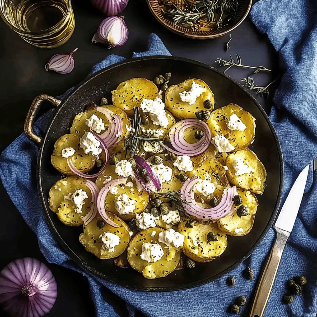 Stumbling upon a vibrant Mediterranean dish has never been easier than with Quick Greek Smashed Potatoes with Feta! The moment I first tasted these crispy-edged beauties topped with creamy feta and fragrant rosemary, I knew I’d found my new go-to side dish. This recipe delights the senses while effortlessly transforming everyday potatoes into a scrumptious treat. In just over half an hour, you can whip up this gluten-free, vegetarian dish, making it a fantastic option for weeknight meals or entertaining friends. Imagine sitting down to dinner, only to uncover a meal that feels special yet requires minimal effort. Ready to elevate your potato game? Let’s dive into this irresistible recipe! What makes these Greek Smashed Potatoes special? Bold, Flavorful Ingredients: The combination of crispy potatoes with creamy feta and savory rosemary creates a mouthwatering taste experience. Quick & Easy Preparation: This recipe takes just over half an hour, allowing you to whip up a gourmet side with minimal effort. Versatile Serving Options: Pair these potatoes with grilled meats or add them to salads for extra nutrition, just like in Chicken Biscuits Butter. Perfect for Any Occasion: Whether it’s a weeknight dinner or a festive gathering, these potatoes are guaranteed to impress your guests. Gluten-Free Delight: If using gluten-free feta, this dish caters effortlessly to various dietary needs, making it an inclusive choice for everyone. Get ready to savor the delightful flavors of these Greek Smashed Potatoes with Feta! Greek Smashed Potatoes with Feta Ingredients For the Potatoes • Roasting Potatoes – Medium potatoes like King Edward or Yukon Gold offer the ideal texture for smashing. • Olive Oil – Drizzling this ingredient helps achieve those wonderfully crispy edges. • Salt and Pepper – Essential for seasoning, enhancing all the savory flavors of the dish. For the Toppings • Feta Cheese – Crumbled for rich creaminess and tang; opt for low-fat feta if you want a lighter option. • Garlic – Sliced cloves add an aromatic punch that elevates the dish’s savory profile. • Red Onion – Thin rounds contribute subtle sweetness during roasting. • Capers – These little briny bursts deepen the flavor, bringing that Mediterranean flair. • Rosemary – Torn sprigs infuse earthiness; feel free to substitute with thyme or oregano if you prefer. • Lemon – Quarters brighten the dish with acidity; squeezing fresh lemon juice over the potatoes just before serving is a must! These Greek Smashed Potatoes with Feta are not just delicious; they’re a wholesome addition to any meal, ready to conquer weeknight dinners or festive gatherings! Step‑by‑Step Instructions for Greek Smashed Potatoes with Feta Step 1: Preheat the Oven Begin by preheating your oven to 200°C (400°F). While the oven warms up, rinse your medium roasting potatoes thoroughly under cold water to remove any dirt. Use a sharp knife to pierce each potato a few times, preventing them from bursting in the microwave. Place them in a microwaveable bowl and cover with damp paper towels. Step 2: Microwave the Potatoes Cook the potatoes in the microwave on high for 7 to 12 minutes, depending on their size. Check for doneness by inserting a knife; they should be easily pierced yet firm enough to hold their shape. Once done, carefully remove the bowl from the microwave and let the potatoes cool for a couple of minutes before transferring them to a baking tray or skillet. Step 3: Smash the Potatoes On your baking tray, place the softened potatoes and use a potato masher to gently smash each one, ensuring you break the surface to expose the fluffy interior while keeping their structure intact. This step creates perfect crannies for the oil and seasoning to cling to, contributing to the crispy texture of the Greek Smashed Potatoes with Feta. Step 4: Season and Add Aromatics Drizzle the smashed potatoes generously with olive oil, sprinkling salt and pepper over the top to enhance the flavors. Scatter the sliced garlic and torn rosemary evenly on the potatoes, allowing the aromas to begin infusing. Nestle the lemon wedges around the potatoes, providing extra flavor as they roast in the oven. Step 5: Roast the Potatoes Place the tray in the preheated oven and roast the potatoes for about 10 minutes. You’ll know they’re ready when the skin starts to turn golden brown and crisp up around the edges. This roasting step is crucial for achieving that delightful exterior texture in your Greek Smashed Potatoes with Feta. Step 6: Add Toppings After the initial roasting, take the tray out of the oven and sprinkle the crumbled feta, red onion rings, and capers over the potatoes. Return the tray to the oven and bake for an additional 5 minutes, allowing the feta to warm and slightly melt into the cracks of the potatoes, enriching the overall flavor profile. Step 7: Serve Fresh Once out of the oven, give the potatoes a generous squeeze of fresh lemon juice for a zesty touch. Serve your Greek Smashed Potatoes with Feta immediately while they’re hot, crispy, and bursting with flavor, perfect as a side dish to accompany your favorite grilled meats or as a standout centerpiece of a light meal. What to Serve with Greek Smashed Potatoes with Feta Imagine a lovely gathering where every dish enhances the delightful crunch of your smashed potatoes, bursting with flavor and comfort. Lemon Grilled Chicken: This zesty chicken dish complements the vibrant flavors of the smashed potatoes, making your meal irresistibly fresh and light. The brightness of lemon echoes the lemon juice served over the potatoes, creating a beautiful harmony. Mediterranean Chickpea Salad: A colorful mix of chickpeas, cucumbers, and tomatoes adds a refreshing crunch and balances rich flavors. With a tangy vinaigrette, it’s the perfect antidote to the creaminess of feta. Roasted Vegetables: Seasonal roasted veggies, like zucchini and bell peppers, bring a sweet earthin