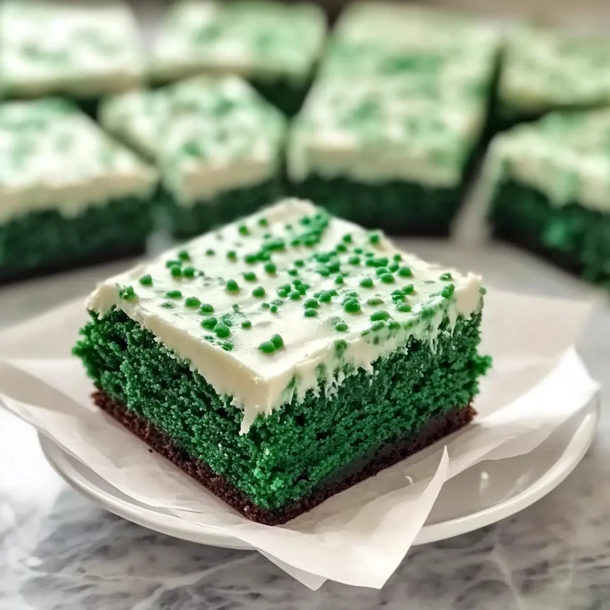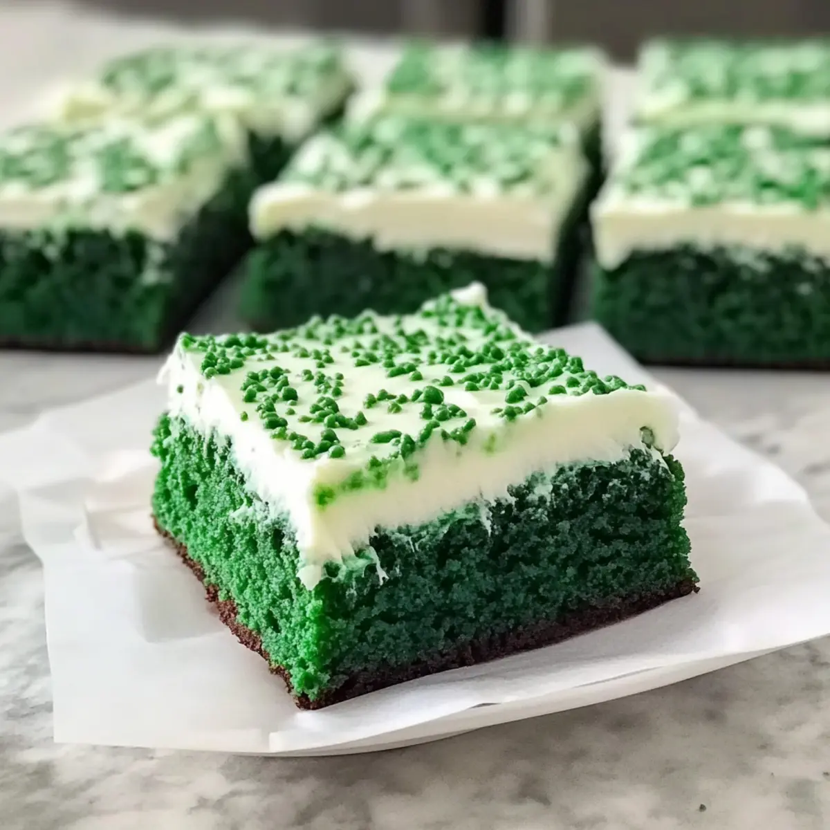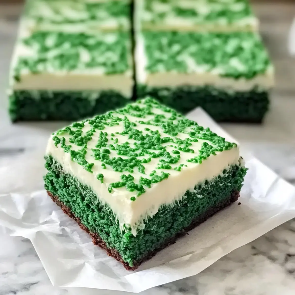 As I stood in my kitchen, the scent of melting chocolate filled the air, and my heart raced with anticipation. I was about to create something magical: Green Velvet Brownies with Cream Cheese Frosting. These vibrant beauties are not just eye-catching; they offer rich, fudgy decadence that melts in your mouth. Perfect for St. Patrick’s Day or any festive gathering, this dessert strikes the perfect balance between sweet creaminess and rich chocolate flavor. Plus, they whip up in a flash, making them an easy choice for busy bakers eager to impress. So, are you ready to bring a touch of joy and color to your dessert table with these delightful brownies? Let’s dive in! Why are Green Velvet Brownies a Must-Try? Vibrant colors: These brownies boast a stunning green hue that instantly elevates any festive gathering. Decadent taste: With a rich chocolate base and creamy cream cheese frosting, they offer a mouthwatering experience that melts in your mouth. Simple preparation: Perfect for both novice and seasoned bakers, the steps are straightforward and quick, ensuring you spend less time in the kitchen. Versatile delight: Whether for St. Patrick’s Day or any festive occasion, these brownies will impress guests of all ages. Crowd-pleaser appeal: Their unique color and delicious flavor make them a guaranteed hit at parties, just like my Tiramisu Brownies Indulge or Red Velvet Strawberry. Get ready to brighten your dessert lineup with this irresistible treat! Green Velvet Brownies Ingredients Here’s everything you need to create these delightful Green Velvet Brownies! For the Brownies Semi-sweet chocolate chips – Adds rich chocolate flavor; can be substituted with chopped bittersweet chocolate for a deeper taste. Unsalted butter – Provides moisture and richness; use room temperature butter for easy blending. Granulated sugar – Sweetness and chewiness; no substitutions recommended. Large eggs – Binds ingredients and contributes to fudgy texture; ensure they are at room temperature. All-purpose flour – Gives structure to brownies; if gluten-free, use a suitable blend. Green liquid food coloring – Delivers the signature vibrant hue; for less artificial coloring, consider matcha for a natural alternative. Baking powder – Slightly leavens the brownies without making them cake-like; ensure it’s fresh for the best results. Vanilla extract – Enhances flavor depth; pure vanilla is recommended for a more aromatic flavor. Salt – Balances sweetness; a pinch is sufficient. For the Cream Cheese Frosting Cream cheese, softened – Forms the base of the creamy frosting; make sure it’s at room temperature for smooth mixing. Additional butter (for frosting) – Adds richness to the frosting; use unsalted butter. Powdered sugar – Sweetens frosting and gives it a light texture; avoid any lumps for smooth frosting. Vanilla extract (for frosting) – Adds warmth to the frosting; can substitute with almond extract for a unique flavor twist. Salt (for frosting) – Balances the sweetness of the frosting. Now you’re all set to experience the joy of making these Green Velvet Brownies! Step‑by‑Step Instructions for Green Velvet Brownies Step 1: Preheat the Oven and Prepare the Pan Begin by preheating your oven to 350°F (175°C). Meanwhile, line a 9-inch square baking pan with aluminum foil, allowing some overhang for easy removal later. Grease the foil with cooking spray or a thin layer of butter to prevent the brownies from sticking. This step is essential for achieving perfectly baked Green Velvet Brownies. Step 2: Melt Butter and Chocolate Chips In a microwave-safe bowl, add the unsalted butter and semi-sweet chocolate chips. Microwave on high for 30 seconds, then stir. Repeat this process until the mixture is fully melted and smooth, taking about 1 to 2 minutes total. Allow it to cool slightly; the melted chocolate will give your brownies their rich flavor. Step 3: Combine Chocolate Mixture with Sugar and Eggs Once the chocolate mixture has cooled, incorporate the granulated sugar and stir until well combined. Next, add in the large eggs one at a time, mixing smoothly after each addition. Continue stirring until the mixture is glossy and homogenous—this adds to the fudgy texture of your Green Velvet Brownies. Step 4: Fold in Dry Ingredients and Food Coloring Gently fold in the all-purpose flour, green food coloring, baking powder, vanilla extract, and a pinch of salt. Be cautious not to overmix; you want everything just combined. The vibrant green color will start to emerge, enhancing the festive appeal of your brownies—this is the moment you realize how special they’ll be! Step 5: Pour and Spread the Batter Transfer the brownie batter into the prepared baking pan, scraping the bowl to ensure no delicious mixture is left behind. Use a spatula to spread it evenly, making sure it reaches all corners of the pan. This will ensure your Green Velvet Brownies bake uniformly, resulting in an irresistibly fudgy treat. Step 6: Bake Until Set Place the pan in the preheated oven and bake for 44-48 minutes. Start checking around the 44-minute mark. Insert a toothpick into the center; it should come out with a few moist crumbs attached. This indicates that your brownies are perfectly baked and ready for cooling. Step 7: Cool Brownies Completely Once baked, carefully remove the pan from the oven and let the brownies cool in the pan on a wire rack. Allow them to cool completely for about 2 hours. This cooling period is crucial before frosting, ensuring the brownies maintain their structure without melting the frosting. Step 8: Prepare the Cream Cheese Frosting While waiting for the brownies to cool, prepare the frosting. In a mixing bowl, beat together the softened cream cheese and additional unsalted butter until smooth and creamy. Gradually mix in the powdered sugar and a pinch of salt, followed by the vanilla extract. This step creates a rich and creamy frosting that complements your Green 