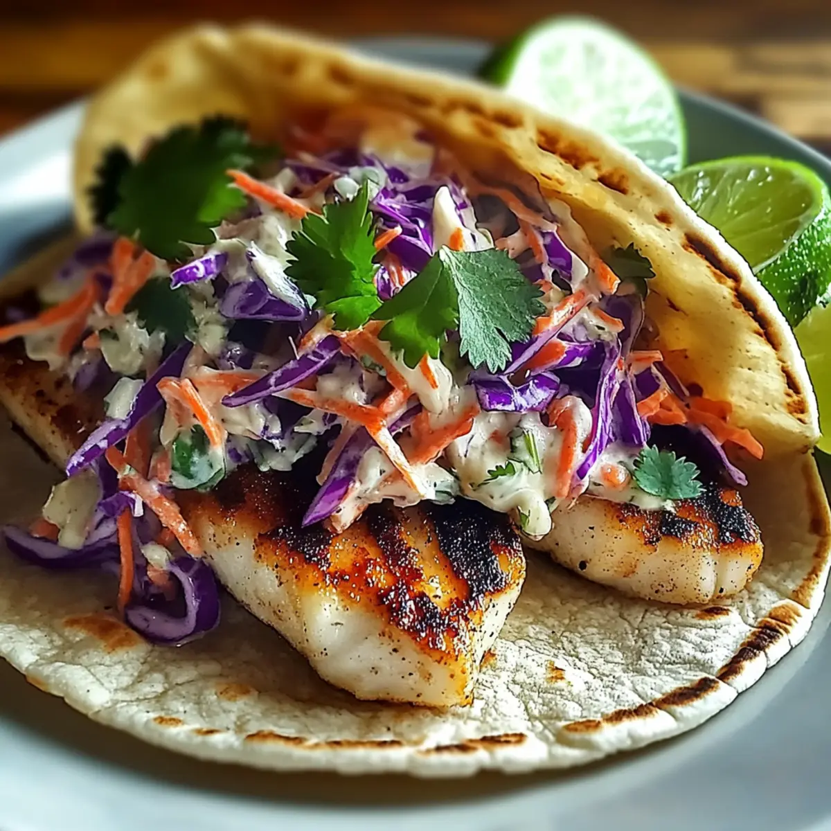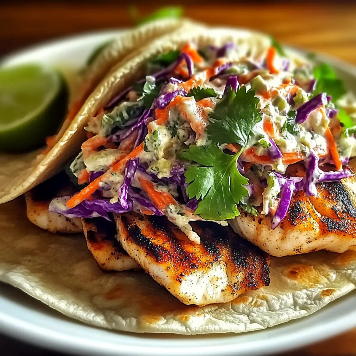 The sizzle of fish hitting the grill fills the air, and with it, the promise of a mouthwatering meal. My flavorful Grilled Fish Tacos with Chipotle Slaw bring together fresh ingredients and vibrant tastes that shake things up from your usual weeknight fare. In just 30 minutes, you can whip up this family-friendly dish that offers quick prep and tons of versatility—feel free to swap out the fish or customize your slaw to suit your tastes! Whether you’re looking for a healthier alternative to fast food or simply craving something quick and delightful, these tacos deliver on all fronts. Who’s ready to spice up dinner with a plateful of joy? Why Choose Grilled Fish Tacos? Simplicity at Its Core: The easy-to-follow steps ensure that even novice cooks can create a delicious meal without stress. Endless Versatility: Feel free to substitute your favorite fish, or mix in veggies for the slaw to match your family’s preferences. Quick and Easy: In just 30 minutes, these tacos can transform your weeknight routine from mundane to exciting. Healthier Fast Food Option: With fresh ingredients and lean proteins, you’re making a healthier choice compared to takeout. Flavor Explosion: The combination of grilled fish and zesty chipotle slaw creates a mouthwatering taste that will leave everyone wanting more. Pair these tacos with a refreshing side like Grilled Salmon Burgers for an unforgettable meal! Grilled Fish Tacos with Chipotle Slaw Ingredients For the Fish • Fish Fillets – 1 lb. (Cod, tilapia, or mahi-mahi) – Choose firm, fresh fillets with a mild scent for the best flavor. • Olive Oil – 2 tbsp. – Used for marinating the fish, enhancing moisture and flavor. • Lime Juice – 2 tbsp., freshly squeezed – Adds acidity and brightness to the marinade. • Chili Powder – 2 tsp. – For heat and depth; adjust according to preference. • Cumin – 1 tsp. – Introduces a warm, earthy flavor. • Smoked Paprika – 1 tsp. – Adds a subtle smoky flavor; regular paprika can serve as a substitute. • Garlic Powder – 1 tsp. – Boosts overall flavor; fresh garlic may also be used. • Salt & Pepper – To taste – Essential for seasoning. For the Slaw • Shredded Cabbage – 2 cups – Provides crunch and texture; using coleslaw mix is a convenient option. • Mayonnaise – 1/2 cup – The creamy base for the slaw; Greek yogurt can be used as a healthier alternative. • Minced Chipotle Peppers in Adobo Sauce – 2 tbsp. – Delivers smokiness and heat; adjust for the desired spiciness. • Honey – 1 tbsp. – Adds a touch of sweetness; agave nectar or sugar can be used as substitutes. With these Grilled Fish Tacos with Chipotle Slaw ingredients, get ready to awaken your taste buds and create a meal that your family will love! Step‑by‑Step Instructions for Grilled Fish Tacos with Chipotle Slaw Step 1: Prepare Marinade In a shallow dish, whisk together 2 tablespoons of olive oil, 2 tablespoons of freshly squeezed lime juice, 2 teaspoons of chili powder, 1 teaspoon of cumin, 1 teaspoon of smoked paprika, 1 teaspoon of garlic powder, and salt and pepper to taste. Stir until the mixture is smooth and well combined, creating a vibrant marinade that will infuse your grilled fish with flavor. Step 2: Marinate Fish Coat your 1 pound of firm fish fillets, like cod or tilapia, thoroughly in the marinade while ensuring all surfaces are covered. Allow the fish to marinate for at least 15 minutes at room temperature—this quick soak intensifies the flavors, giving you that mouthwatering taste in your Grilled Fish Tacos. Step 3: Make Slaw In a medium bowl, combine 2 cups of shredded cabbage, 1/2 cup of mayonnaise, 2 tablespoons of minced chipotle peppers in adobo sauce, 1 tablespoon of honey, and an additional squeeze of lime juice for brightness. Mix thoroughly until the ingredients are well blended, then cover and refrigerate for about 10 minutes. This step enhances the flavors of your chipotle slaw, making it the perfect topping for your tacos. Step 4: Grill Fish Preheat your grill or grill pan to medium-high heat, ensuring it’s well-oiled for easy release. Once hot, place the marinated fish on the grill, cooking for 3-5 minutes on each side. You’ll know they’re done when the fish is flaky and has attractive grill marks. This step is essential for achieving the smoky flavor profile of your Grilled Fish Tacos. Step 5: Warm Tortillas While the fish is grilling, warm your tortillas by placing them directly on the grill or in a skillet for about 30 seconds per side. The tortillas should be soft and pliable, making them the perfect vessel for your fish and slaw. This quick step ensures every bite is delicious and inviting. Step 6: Assemble Tacos Once the fish is grilled to perfection, break it into chunks and place it on the warmed tortillas. Generously top each taco with the prepared chipotle slaw, adding a vibrant layer of flavor and crunch. For an extra touch, garnish with fresh cilantro and lime wedges to elevate your Grilled Fish Tacos with Chipotle Slaw to the next level. What to Serve with Grilled Fish Tacos with Chipotle Slaw These delicious tacos create the perfect centerpiece for a vibrant and flavorful meal that will bring everyone together. Creamy Avocado Dip: Smooth and rich, this dip complements the spiciness of the tacos, providing a cooling contrast. Fresh Mango Salsa: Sweet, spicy, and refreshing, it balances the smoky flavors of the fish and adds a tropical flair. Crispy Tortilla Chips: Light and crunchy, these chips serve as a fun side for scooping up any leftover slaw or salsa. Grilled Street Corn: Charred and slathered with lime and cheese, the sweetness and creaminess of the corn enhance the taco experience. Zesty Cilantro Lime Rice: Fluffy and fragrant, this rice makes a satisfying base that pairs beautifully with the flavorful tacos. Classic Margarita: Refreshing and tangy, this cocktail is a perfect beverage partner to elevate your taco night. Watermelon Sa