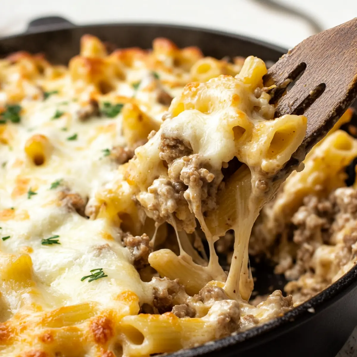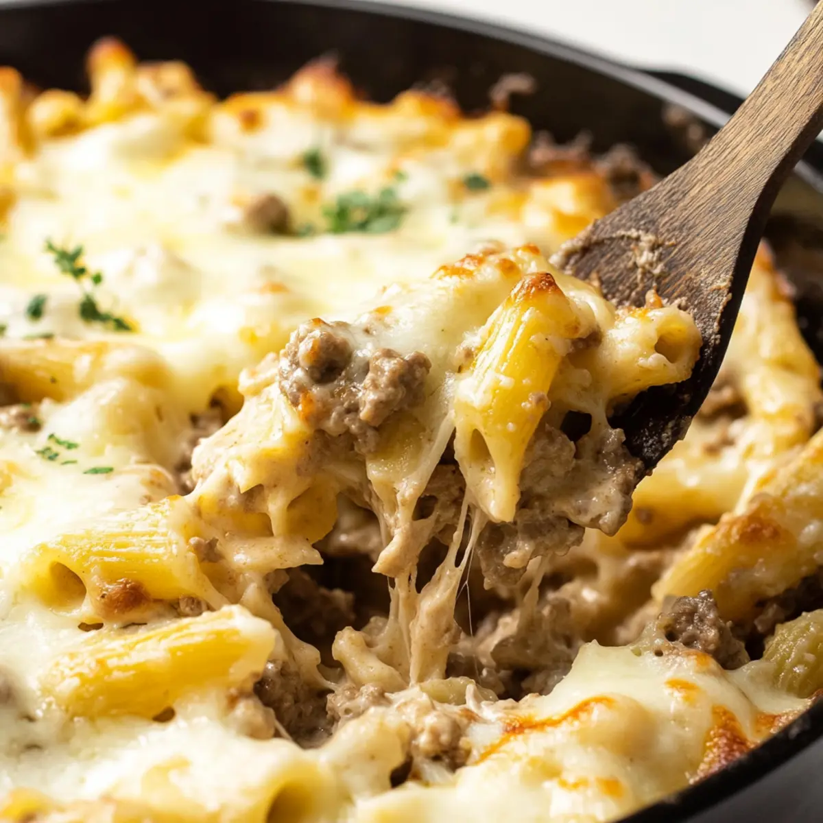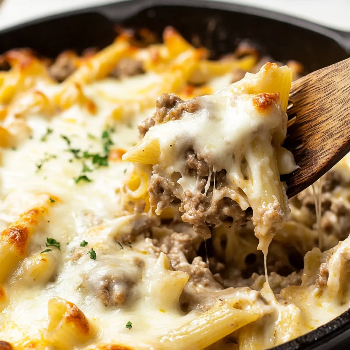As the aroma of bubbling cheese wafted through my kitchen, I felt a sense of comfort wash over me. This Ground Beef Alfredo Bake isn’t just a meal; it’s a warm embrace after a long day. With its creamy Alfredo sauce, tender ground beef, and melted cheeses, this dish captures the essence of family dinner nights, making it a winner among kids and adults alike. It’s an easy-to-make, one-pot meal that demands only everyday ingredients, ensuring you can whip it up without a hassle. Plus, who can resist the allure of a crowd-pleasing casserole that’s as simple to prepare as it is satisfying? Are you ready to dive into a bowl of pure comfort? Let’s get cooking! Why is this recipe a must-try? Comforting Casserole: This Ground Beef Alfredo Bake is your ultimate comfort food, perfect for family dinners or cozy nights in. One-Pot Wonder: Minimal cleanup is required, making it ideal for busy weeknights! Kid-Approved: Packed with cheesy goodness, even the pickiest eaters will love it. Quick and Easy: With everyday ingredients and simple steps, you can whip this up in no time. Endless Flexibility: Customize by adding veggies, or swap ground beef for turkey or chicken for a lighter touch. Serve it alongside a fresh salad or crusty garlic bread for the complete experience! Ground Beef Alfredo Bake Ingredients For the Pasta • 8 ounces uncooked penne pasta – Provides structure and heartiness; substitute with rotini or rigatoni if desired. For the Meat • 16 ounces lean ground beef – The primary protein source for the dish; ground turkey can be used for a leaner option. For the Flavor Base • 2-3 cloves garlic, minced – Adds depth and flavor; garlic powder is a substitute if fresh isn’t available. • 1/2 teaspoon Italian seasoning – Enhances overall flavor; fresh herbs can be used for a more robust taste. • 1/4 teaspoon crushed red pepper flakes (optional) – Introduces a mild heat; omit for a milder taste. • Salt & pepper to taste – Essential for seasoning; adjust based on personal preference. For the Sauce • 1 (15 oz) jar Alfredo sauce – Provides creaminess and flavor; homemade Alfredo sauce can be used for a fresher taste. For the Cheese Topping • 1.5 cups shredded mozzarella cheese, divided – Offers creaminess and melty texture; cheddar can be used for a different flavor. • 1/2 cup freshly grated parmesan cheese – Adds a salty, nutty flavor; Pecorino Romano can be substituted. Enjoy preparing this delightful, satisfying Ground Beef Alfredo Bake that the whole family will love! Step‑by‑Step Instructions for Ground Beef Alfredo Bake Step 1: Preheat the Oven Start by preheating your oven to 375°F (190°C). Position the oven rack in the top third to ensure even cooking. This initial step is key to achieving a perfectly baked casserole, so give yourself a moment to get the temperature just right while you prepare the other components of the Ground Beef Alfredo Bake. Step 2: Cook the Pasta In a large pot, bring salted water to a rolling boil. Add the uncooked penne pasta and cook it for 1 minute less than the package instructions indicate, targeting a slightly firm texture, or al dente. Once ready, drain the pasta, but be careful not to overcook it as it will continue to soften while baking in the casserole. Step 3: Brown the Ground Beef Using an oven-safe skillet, heat over medium-high heat and add the 16 ounces of lean ground beef. Cook for about 8 minutes, stirring occasionally and breaking the meat into small pieces as it browns. It’s done when it’s no longer pink and slightly caramelized. If there’s excess fat, drain it off to keep your Ground Beef Alfredo Bake from becoming greasy. Step 4: Enhance with Flavors To the browned beef, stir in the minced garlic, 1/2 teaspoon of Italian seasoning, and optional crushed red pepper flakes. Cook this mixture for about 1 minute, stirring frequently until the garlic is fragrant and begins to soften. This step infuses the beef with wonderful flavors that will enhance your casserole. Step 5: Combine Sauce and Cheese Reduce the heat to medium and pour in the jar of Alfredo sauce, mixing well. Add half of the shredded mozzarella cheese, stirring until everything is evenly coated in the creamy goodness. This flavorful mixture forms the heart of your Ground Beef Alfredo Bake, ensuring every bite is deliciously rich. Step 6: Mix in the Pasta Now, add the drained penne pasta to the skillet and toss everything together gently to ensure all pasta is evenly coated in the cheesy beef mixture. Spread it out evenly in the skillet, creating a nice layer that will achieve a perfect bake in the oven. Step 7: Add the Topping and Bake Sprinkle the remaining mozzarella cheese and the grated parmesan cheese generously over the pasta mixture. Place the skillet in your preheated oven for about 10 minutes, or until everything is hot and the cheese is beautifully melted and bubbly. For an added touch, switch to broil for the last minute to get that enticing golden-browning on top. Step 8: Let it Rest Once your Ground Beef Alfredo Bake is out of the oven, let it sit for a few minutes before serving. This brief resting period allows the flavors to settle and the dish to firm up slightly, making it easier to serve. Enjoy this comforting, cheesy layered casserole with your family! Expert Tips for Ground Beef Alfredo Bake Oven-Safe Skillet: Ensure your skillet is oven-safe to avoid the unnecessary hassle of transferring to a baking dish. Al Dente Pasta: Cook the pasta just under al dente; this prevents it from becoming mushy as it bakes in the cheese sauce. Flavor Boost: For added depth, consider mixing in vegetables like spinach or bell peppers into the beef mixture before combining with the sauce. Cheese Variations: Don’t hesitate to mix different cheeses! Incorporating some sharp cheddar can give an exciting twist to your Ground Beef Alfredo Bake. Make Ahead: Assemble the casserole a day in advance and refrigerate. Just pop it in the 