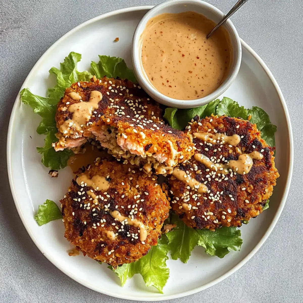 As I rummaged through my fridge one evening, I stumbled upon some fresh salmon and a jar of harissa that beckoned me to create something special. That’s when the idea for Harissa Sesame Salmon Patties hit me—quick, flavorful, and a delightful option for anyone craving a break from fast food. Packed with protein and a satisfying crunch, these patties are not only simple to whip up but also perfect for meal prep or weeknight dinners. With a creamy chipotle tahini sauce drizzled on top, each bite is a bold explosion of taste that transforms a typical salmon dish into something extraordinary. Want to impress your loved ones while keeping your meals fresh and exciting? Let’s dive into this delicious journey! Why Are These Patties So Irresistible? Flavor Explosion: These Harissa Sesame Salmon Patties burst with spicy and savory goodness, thanks to the unique blend of harissa and chipotle tahini. High in Protein: Packed with skinless salmon, these patties are a nutritious option that keeps you feeling full and satisfied. Quick Preparation: In just 30 minutes, you can whip up a delicious meal, making it ideal for busy weeknights or meal prep. Versatile Serving Options: Whether in a bun, on a salad, or on their own, these patties pair beautifully with a variety of sides. Try them with a refreshing salad or even Grilled Salmon Burgers for a flavorful twist! Crowd-Pleasing Appeal: The crispy exterior and tender inside make them a hit among family and friends, ensuring everyone will be coming back for seconds! Harissa Sesame Salmon Patties Ingredients For the Patties • Skinless Salmon – the main protein source, providing rich flavor and moisture. • Harissa – adds a spicy depth; substitute with sriracha for milder heat. • Egg, whisked – binds the ingredients; for a vegan version, use a flax egg (1 tbsp flaxseed meal + 2.5 tbsp water). • Lemon Juice – brightens flavors and adds acidity; lime juice works as a good substitute. • Dijon Mustard – enhances flavor complexity; yellow mustard can be a substitute. • Panko Crumbs – gives delightful texture and crunch; you can use regular breadcrumbs if needed. • Yellow Onion – adds sweetness and moisture; shallots can be substituted for a milder taste. • Parsley, chopped – fresh herb for a burst of flavor; cilantro works well as a substitute or you can omit it. • Scallions, chopped – adds a mild onion flavor; chives can replace them or omit if desired. • Garlic Powder – adds depth; use fresh minced garlic (1 clove) if you prefer. • Salt & Black Pepper – essential for flavor enhancement; adjust to personal taste. • Smoked Paprika – introduces subtle smokiness; regular paprika is a decent substitute, though less smoky. • Olive Oil – used for sautéing and cooking; swap for avocado oil if preferred. • Sesame Seeds – coating for crunch and nutty flavor; omit if allergic. For the Chipotle Tahini Sauce • Tahini (sesame paste) – a key ingredient for a creamy sauce; use sunflower seed butter for a nut-free option. • Chipotle pepper in adobo sauce – adds a spicy kick; mix smoked paprika with a tiny bit of hot sauce for an alternative. • Cold Water – helps achieve the desired consistency for the tahini sauce. These Harissa Sesame Salmon Patties are sure to make your meals vibrant and fulfilling! Step‑by‑Step Instructions for Harissa Sesame Salmon Patties Step 1: Sauté Onions Begin by dicing the yellow onion finely. In a skillet, heat 1 tablespoon of olive oil over medium heat. Add the onion and sauté for 3-4 minutes until softened and translucent, stirring occasionally to prevent browning. Once ready, remove from heat and let it cool slightly as you prepare the remaining ingredients. Step 2: Prepare Salmon While the onion cools, take your skinless salmon and chop it into small pieces using a sharp knife or pulse it briefly in a food processor until it becomes mostly ground but still chunky. This texture is essential for your Harissa Sesame Salmon Patties, as it helps provide a satisfying bite. Step 3: Mix Ingredients In a large mixing bowl, combine the minced salmon, sautéed onions, 2 tablespoons of harissa, one whisked egg, 1 tablespoon of lemon juice, 1 tablespoon of Dijon mustard, and 1 cup of panko crumbs. Add your chopped parsley, scallions, garlic powder, smoked paprika, salt, and black pepper. Mix everything gently until fully incorporated, but avoid overmixing to keep the patties light. Step 4: Form Patties With your hands, scoop about 1/4 cup of the mixture and shape it into palm-sized patties. Aim for a uniform thickness to ensure even cooking. Place the formed patties onto a parchment-lined plate, making it easier to transfer them to the skillet later without sticking. Step 5: Coat Patties In a shallow bowl, combine 1/2 cup of panko crumbs with 1/4 cup of sesame seeds. Carefully coat each patty in this mixture, pressing it gently onto both sides to adhere well. This crunchy exterior is what makes your Harissa Sesame Salmon Patties truly irresistible. Step 6: Cook Patties Heat 2 tablespoons of olive oil in a skillet over medium-low heat. Once the oil is shimmering, carefully add the patties to the skillet without overcrowding. Cook for 2-3 minutes on each side, or until they become golden brown and crispy. Keep an eye on them to prevent burning, adjusting the heat if necessary. Step 7: Make Chipotle Tahini While the patties cook, prepare the chipotle tahini sauce. In a blender, combine 1/2 cup of tahini, one chipotle pepper in adobo sauce, 1 tablespoon of lemon juice, and a couple of tablespoons of cold water. Blend until the mixture is smooth and creamy, adjusting the water as needed to reach your preferred consistency. Step 8: Serve Patties Once the Harissa Sesame Salmon Patties are perfectly golden and crispy, transfer them to a serving dish. Drizzle them generously with the chipotle tahini sauce while hot. Pair with your favorite sides, such as a fresh salad or grains, to compl