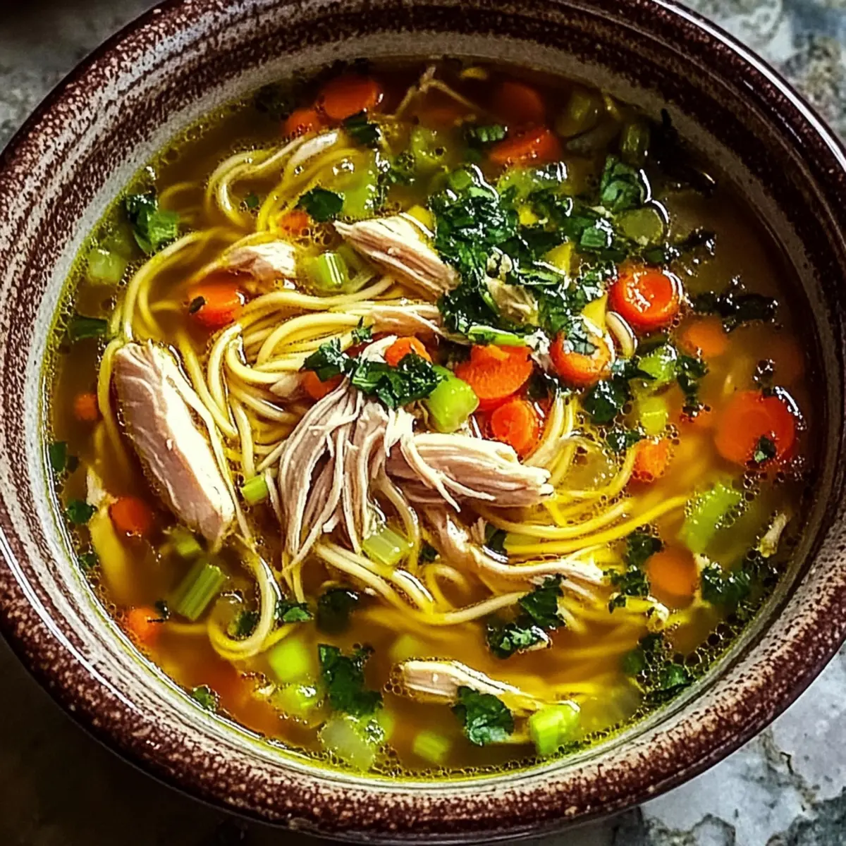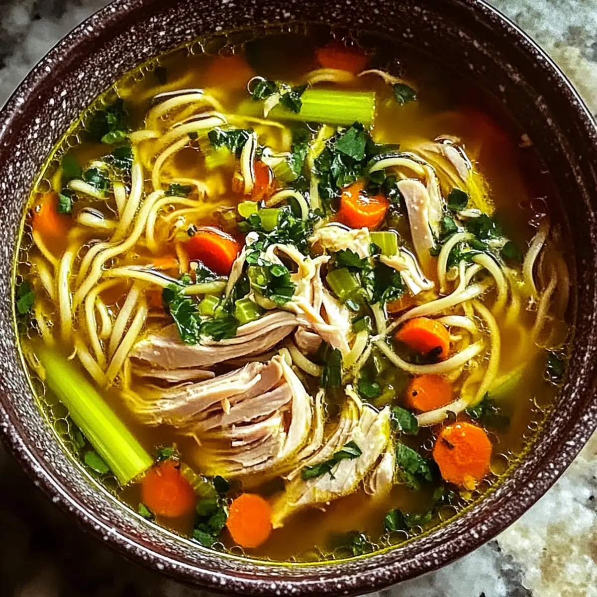 As I gingerly peeled back the layers of my grandmother’s recipe book, the comforting aroma of warm spices filled the air, a nostalgic reminder of chilly evenings spent together. It was then that I rediscovered the healing power of my Healing Ginger Garlic Chicken Noodle Soup, a dish that combines simple ingredients into a nourishing masterpiece. Each bowl offers an immune-boosting embrace that not only feels good but also provides a quick meal solution on those busy weeknights. With customizable options ranging from gluten-free to vegan, this soup is perfect for everyone, ensuring that no one is left behind on this delightful culinary journey. So, what do you say—are you ready to stir up some love and warmth in your kitchen? Why is this soup a must-try? Comforting Warmth: Each bowl of this Healing Ginger Garlic Chicken Noodle Soup wraps you in a cozy hug, blending aromatic spices with tender chicken. Quick to Prepare: Perfect for busy nights, this recipe transforms simple ingredients into a satisfying meal in under 30 minutes. Customizable Delight: Make it your own! Swap chicken for tofu for a vegan option, or try rice noodles for gluten-free fun. Immune-Boosting Benefits: Packed with garlic and ginger, this soup isn’t just tasty—it’s a health booster! Crowd-Pleaser: Whether it’s a family dinner or a casual gathering, this soup is sure to impress everyone at the table. Give it a try alongside Cream Cheese Chicken for an irresistible meal combo! Healing Ginger Garlic Chicken Noodle Soup Ingredients • Elevate your soup experience with these essential ingredients! For the Broth Chicken broth – A flavorful base for the soup; opt for homemade for richer taste. Chicken breast – Adds heartiness and protein; substitute with tofu for a vegan twist. For the Aromatics Ginger – Infuses warmth and is known for its health benefits; fresh ginger is best, grated or sliced for more flavor. Garlic – Delivers a robust flavor and countless health advantages; crush before adding to release potent oils. Onion – Provides an aromatic foundation; shallots work well for a milder flavor. For the Vegetables Carrots – Brings sweetness and color; feel free to use any root vegetable as a substitute. Celery – Adds freshness and depth; can also be replaced with bell peppers for a different twist. For the Noodles Noodles – Offers substance to the soup; consider gluten-free or zucchini noodles for a health-conscious option. Each ingredient plays a pivotal role in crafting the ultimate Healing Ginger Garlic Chicken Noodle Soup that comforts and nourishes. Grab your supplies, and let’s get cooking! Step‑by‑Step Instructions for Healing Ginger Garlic Chicken Noodle Soup Step 1: Simmer the Broth In a large pot, bring 6 cups of chicken broth to a gentle simmer over medium heat, stirring occasionally. Look for small bubbles forming on the surface, indicating that it’s ready. This will create a flavorful base for the Healing Ginger Garlic Chicken Noodle Soup. Step 2: Add the Chicken and Aromatics Once the broth is simmering, add 1 pound of diced chicken breast, along with 2 tablespoons of sliced fresh ginger, 4 cloves of minced garlic, 2 chopped carrots, 2 stalks of chopped celery, and 1 diced onion. Stir well to combine, allowing the aromatic goodness to infuse the broth, and cook for about 15-20 minutes until the chicken is cooked through and vegetables are tender. Step 3: Prepare the Noodles While the soup simmers, in a separate pot, cook your choice of noodles according to the package instructions—this usually takes around 8-10 minutes. Drain the noodles in a colander when done, ensuring to shake off excess water, and set them aside for when your soup is ready. Step 4: Combine Noodles with Soup Once the chicken and vegetables are tender, gently fold the cooked noodles into the soup pot. Stir carefully to ensure the noodles are coated in the aromatic broth of the Healing Ginger Garlic Chicken Noodle Soup, allowing everything to mingle together for about 2-3 minutes on low heat. Step 5: Season and Serve Finally, taste your soup and season with salt and pepper to your liking. For added freshness, consider garnishing with chopped herbs such as cilantro or parsley. Serve the soup hot, allowing the warmth of the ginger and garlic to embrace you with every comforting bowl. Healing Ginger Garlic Chicken Noodle Soup Variations Feel free to customize your Healing Ginger Garlic Chicken Noodle Soup to suit your tastes and dietary needs! Vegan Option: Swap the chicken for tofu to create a heartwarming vegan version. Just be sure to slice your tofu into bite-sized cubes and sauté it separately before adding to the soup. It’ll soak up all the delicious broth! Seafood Twist: Use shrimp in place of chicken for a delightful seafood variation. Simply toss in clean, deveined shrimp during the last few minutes of cooking to ensure they’re perfectly tender. Creamy Addition: Stir in a splash of coconut milk for a rich, creamy texture that pairs beautifully with the spices. It creates an incredible harmony of flavors and adds an exotic twist to your soup. Extra Veggies: Add a handful of spinach or kale for an extra boost of nutrients and color. These greens add freshness and enhance the overall health benefits of the soup. Gluten-Free Noodles: Substitute regular noodles with gluten-free options or try zucchini noodles for a low-carb delight. The zucchini will soften perfectly in the broth and add a unique twist! Flavor Booster: For an umami-packed punch, add a tablespoon of soy sauce or tamari. This will elevate the flavor profile and complement the ginger and garlic beautifully. Spicy Kick: Add red pepper flakes or fresh sliced chili for an extra layer of heat. Adjust according to your spice tolerance for a personalized kick that warms you from the inside out. Turmeric Infusion: Enhance the health benefits by incorporating a teaspoon of turmeric. Not only will it add vibrant color, but it’s also rever