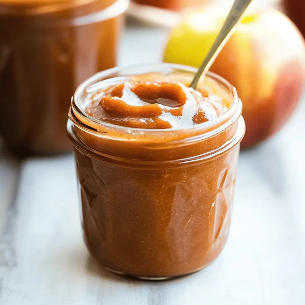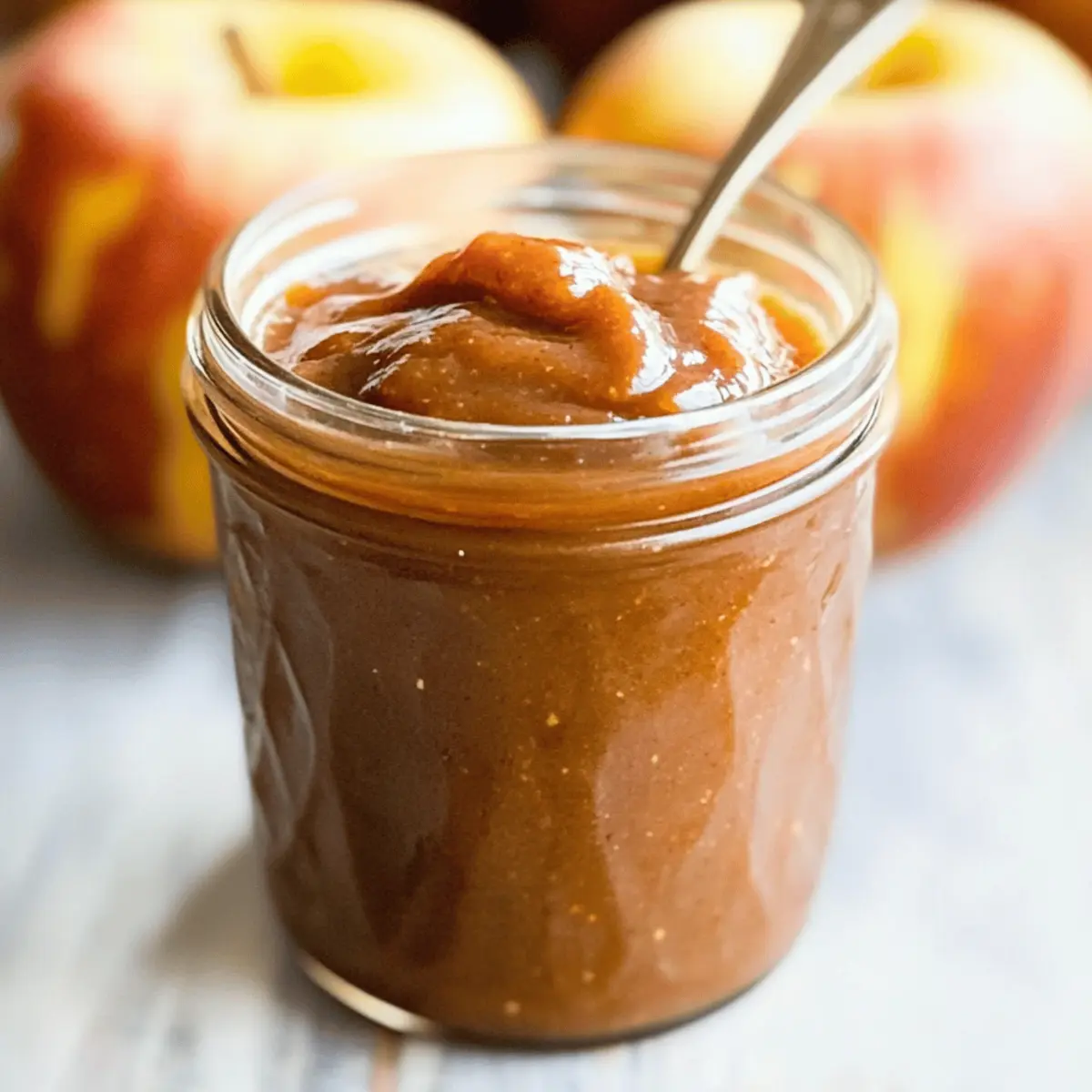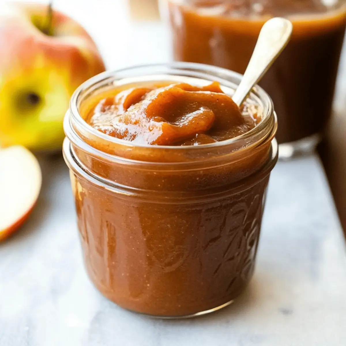 As the chilly breeze of autumn sweeps in, I find myself searching for that warm hug in a jar—cue my Healthy Slow Cooker Apple Butter. This homemade delight transforms simple apples into a velvety spread, rich with the comforting scents of cinnamon and cloves, all without an ounce of added sugar. Not only is it effortlessly made in your slow cooker, but it also brings a wholesome, guilt-free alternative to your breakfast table that’s both vegan and naturally sweet. Picture it slathered on warm toast or swirled into your morning oatmeal, offering a delicious way to savor the season’s bounty. Are you ready to fill your kitchen with the irresistible aroma of this fall staple? Let’s dive in! Why You’ll Adore This Apple Butter Recipe Simplicity at Its Finest: You only need a few basic ingredients to whip up this healthy apple butter, making it accessible for everyone. Naturally Sweet Flavor: Thanks to the ripe apples, there’s no need for added sugar. This spread is perfect for those seeking a guilt-free treat! Versatile Usage: Spread it on toast, swirl it into oatmeal, or use it in your favorite baked goods. The possibilities are endless! Time-Saving Magic: Pop everything into your slow cooker and let it do the work for you. It’s a set-it-and-forget-it recipe that fits effortlessly into your busy schedule. Crowd-Pleasing Comfort Food: Pumpkin spice lattes have their season, but this apple butter will have everyone coming back for more, whether it’s breakfast or brunch. Take a look at Butternut Squash Soup for another comforting fall treat! Healthy Apple Butter Ingredients For the Apple Base • Medium Apples – Choose sweet varieties like Gala or Honeycrisp for the best natural sweetness. • Apple Cider Vinegar or Water – Adds acidity to balance the sweetness; water can easily be used if needed. For the Flavor • Ground Cinnamon – Essential for that warming, classic apple butter taste. • Pure Vanilla Extract – Enhances the sweet undertones and adds depth to your healthy apple butter. • Ground Cloves – Offers a hint of earthiness; feel free to substitute with allspice for a different flavor twist. • Ground Nutmeg – Complements the other spices with its warm, nutty flavor. • Sea Salt – A pinch helps to balance flavors and enhances the sweetness in your spread. Step‑by‑Step Instructions for Healthy Apple Butter Step 1: Prepare Apples Begin by core and slice the medium apples—feel free to leave the skin on for extra fiber. Place the apple pieces into your large slow cooker, arranging them evenly to ensure even cooking. The apples should fill about two-thirds of the slow cooker, allowing enough space for them to break down during cooking. Step 2: Add Ingredients Pour in apple cider vinegar or water to add a refreshing acidity that will balance the sweetness of the apples. Next, sprinkle in the ground cinnamon, pure vanilla extract, ground cloves, ground nutmeg, and a pinch of sea salt. Stir everything together well using a large spoon until the apples are nicely coated with the spices and vinegar. Step 3: Cooking Cover the slow cooker with its lid and set it to low heat. Let the mixture cook for 5-6 hours, checking occasionally. You will know it’s ready when the apples are incredibly soft and have turned a deep, caramelized color. The heavenly aroma of the Healthy Apple Butter should fill your kitchen during this time. Step 4: Blend Once the apples have cooked down, turn off the slow cooker and carefully use an immersion blender to puree the mixture until it’s smooth and creamy. If you don’t have an immersion blender, transfer the apple mixture to a standing blender in batches for blending. Be cautious of the hot liquid while blending. Step 5: Final Cooking Pour the blended apple butter back into the slow cooker and switch it to high heat. Cook uncovered for another 1-2 hours, stirring occasionally, until the mixture thickens to your desired consistency. Aim for a rich, spreadable texture that resembles a thick caramel sauce, perfect for your toast or breakfast dishes. Step 6: Cool & Store After achieving the perfect consistency, turn off the slow cooker and allow the Healthy Apple Butter to cool at room temperature for about 30 minutes. Then, transfer the apple butter into airtight containers or jars for storage. It can be stored in the refrigerator for up to three weeks, or frozen for up to a year, allowing you to enjoy this delightful spread whenever you want. Healthy Apple Butter Variations Feel free to explore different twists on this delightful apple butter to suit your taste and dietary needs! Tartness Boost: Use a mix of Granny Smith and Honeycrisp apples for a balanced flavor profile that combines tartness and sweetness. Sweeten with Honey: Drizzle in a tablespoon of honey while blending for a touch of natural sweetness, perfect for those who crave a sweeter spread. Ginger Kick: Add 1 teaspoon of ground ginger during cooking for a warm, zesty undertone that beautifully complements the apple flavor. Cardamom Touch: Incorporate a dash of ground cardamom for an exotic flair; its floral notes bring a unique depth to the apple butter. Nutty Flavor: Stir in some chopped nuts or nut butter after blending for added texture and richness; think almond or pecan for a delicious twist. Spiced Apple Butter: For a classic holiday flavor, consider adding ground allspice along with the other spices; it will evoke warm memories of autumn gatherings. Maple Infusion: A splash of pure maple syrup can enhance the natural sweetness without complicating the recipe: it’s a delightful pairing with the apples. Coconut Cream: For a creamier texture, mix in some coconut cream after blending–it will add a tropical flair that’s simply divine. If you’re looking for more tasty ideas, why not check out my Peanut Butter Blossoms or try introducing this apple butter into other recipes! Make Ahead Options These Healthy Apple Butter preparations are perfect for busy ho