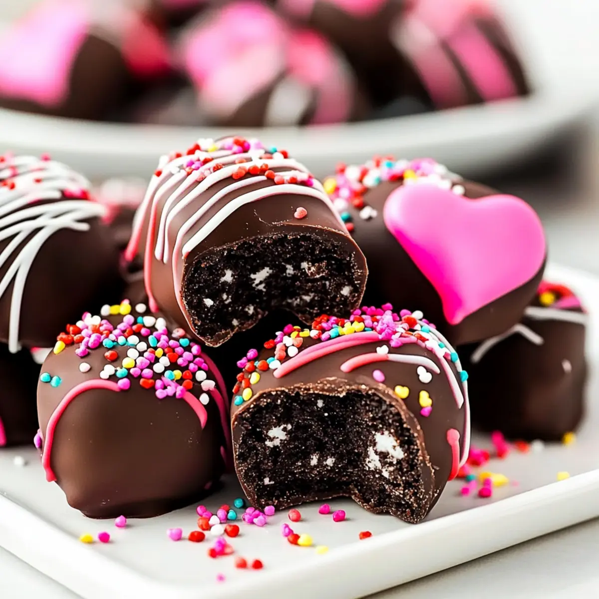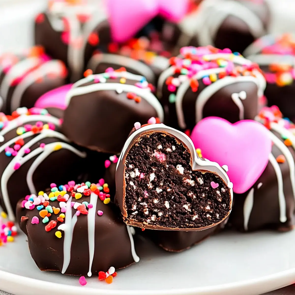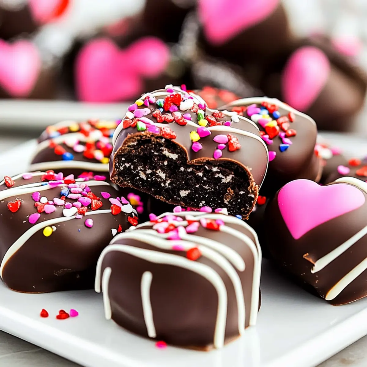 There’s something magical about the flutter of excitement that comes with Valentine’s Day—especially when chocolate is involved! These Easy No-Bake Heart OREO Balls are not only a delightful treat but also a fantastic way to spread joy without spending hours in the kitchen. Packed with the irresistible combination of cream cheese and crushed OREO cookies, these cute little truffles are a breeze to prepare. They’re perfect for kids and adults alike, making them an ideal option for parties or cozy celebrations at home. Imagine the smiles on your loved ones’ faces when they discover these sweet, heart-shaped surprises—an undeniably charming addition to your Valentine’s festivities! Ready to indulge in a simple yet scrumptious recipe? Let’s dive in! Why Make Heart OREO Balls? Simplicity: This recipe requires no baking, making it an easy and quick sweet treat for anyone, regardless of skill level. Decadent Flavor: The blend of creamy cream cheese and rich OREO cookies creates a flavor explosion that’s hard to resist. Perfect for Sharing: Their heart shape makes them an ideal choice for gifting, be it to friends, family, or a special someone on Valentine’s Day. Kid-Friendly Fun: Not only are these truffles delicious, but they’re a fun activity to make with kids, sparking creativity with decorating options. Versatile Options: Feel free to customize these by adding different toppings or drizzles, allowing you to mix things up for any occasion. Ready in No Time: With minimal ingredients and simple steps, you can whip these up in under an hour, perfect for those last-minute treats! For more delicious inspiration, check out these Italian Meatballs Savory and Teriyaki Turkey Meatballs! Ingredients for Heart OREO Balls • Focus Keyword: Heart OREO Balls For the Truffles Oreo Cookies – These are the base ingredient providing the perfect sweetness and chocolatey flavor; you can substitute with any chocolate sandwich cookie for a similar taste. Cream Cheese – Acts as a binder, creating a rich and creamy texture; make sure it’s softened for easier mixing. For the Coating Melting Chocolate Wafers – Provides a smooth, rich chocolate coating; you can replace with chocolate chips or any chosen melting chocolate. White Chocolate – Used for drizzling on top, enhancing both flavor and decoration; colored melting wafers can also be fun for variety. For Decoration Sprinkles – These add a festive touch to your truffles; choose your favorite colors or seasonal shapes to celebrate the holiday. Enjoy making these delightful Heart OREO Balls that will bring smiles to everyone’s faces! Step‑by‑Step Instructions for Heart Oreo Balls Step 1: Crush the Cookies Start by placing your OREO cookies into a food processor. Pulse until they are finely ground; this should take about 30 seconds to a minute. The texture should resemble fine crumbs, ensuring an easy blend with the cream cheese. If you don’t have a food processor, you can place cookies in a zip-top bag and crush them with a rolling pin. Step 2: Mix with Cream Cheese In a large mixing bowl, combine the crushed OREO cookies with softened cream cheese. Using a spatula or your hands, mix thoroughly until the mixture is fully combined and smooth; this should take around 2-3 minutes. The result will be a creamy, thick mixture that holds together well, perfect for shaping into the heart form of your Heart OREO Balls. Step 3: Shape the Truffles Spoon the cookie mixture into heart-shaped candy molds, pressing down firmly to ensure they maintain their shape. Make sure to fill each mold completely and level off the top. This process should take about 5-7 minutes, as you want each truffle to have a nice, defined heart shape. Once done, set the molds in the freezer for 25-30 minutes to firm up. Step 4: Melt the Chocolate While the heart truffles are firming up, melt your chocolate wafers. Place them in a microwave-safe bowl and heat them in 30-second intervals, stirring after each session until they’re smooth and fully melted. This should take around 1-2 minutes. Ensure the melted chocolate is at a slightly warm temperature, as this will help when dipping the Heart OREO Balls. Step 5: Dip the Truffles After 30 minutes, remove the heart truffles from the molds. Dip each one into the melted chocolate, fully coating it before gently shaking off any excess. This step is vital to achieve a glossy finish on your Heart OREO Balls. Place the dipped truffles on a parchment-lined baking sheet, ensuring they don’t touch each other. Step 6: Set the Dipped Truffles Refrigerate the dipped Heart OREO Balls for about 5 minutes to allow the chocolate to set properly. You should see the chocolate become firm and glossy as it cools, which adds to the finished appearance of these tasty treats. This quick cooling time helps ensure that they’re ready to be decorated. Step 7: Add White Chocolate Drizzle Melt white chocolate in the same manner as the dark chocolate, using short intervals in the microwave. Once melted, drizzle the white chocolate over the set truffles using a fork or piping bag for a decorative touch. Make sure to sprinkle your favorite colored sprinkles immediately afterward, as the white chocolate will set quickly. Step 8: Store and Serve Once decorated, place the finished Heart OREO Balls back into the refrigerator for a final chill, ideally for 10-15 minutes. Store any leftovers in an airtight container in the fridge, where they’ll keep fresh for up to a week. When ready to serve, pop them out as a delightful surprise for your loved ones! Heart OREO Balls Variations You’ll Love Feel free to personalize these scrumptious treats, adding your own twist to delight your taste buds and impress loved ones! Peanut Butter Surprise: Mix in a few tablespoons of creamy peanut butter for a delightful flavor boost. The combination of chocolate and peanut butter is always a hit! Gluten-Free Adaptation: Swap out traditional OREO cookies for gluten