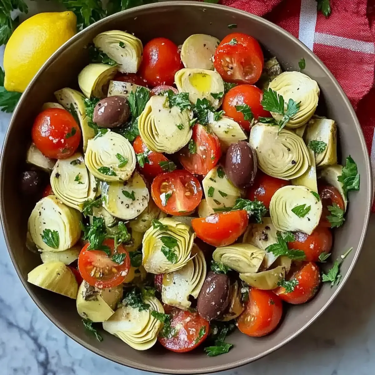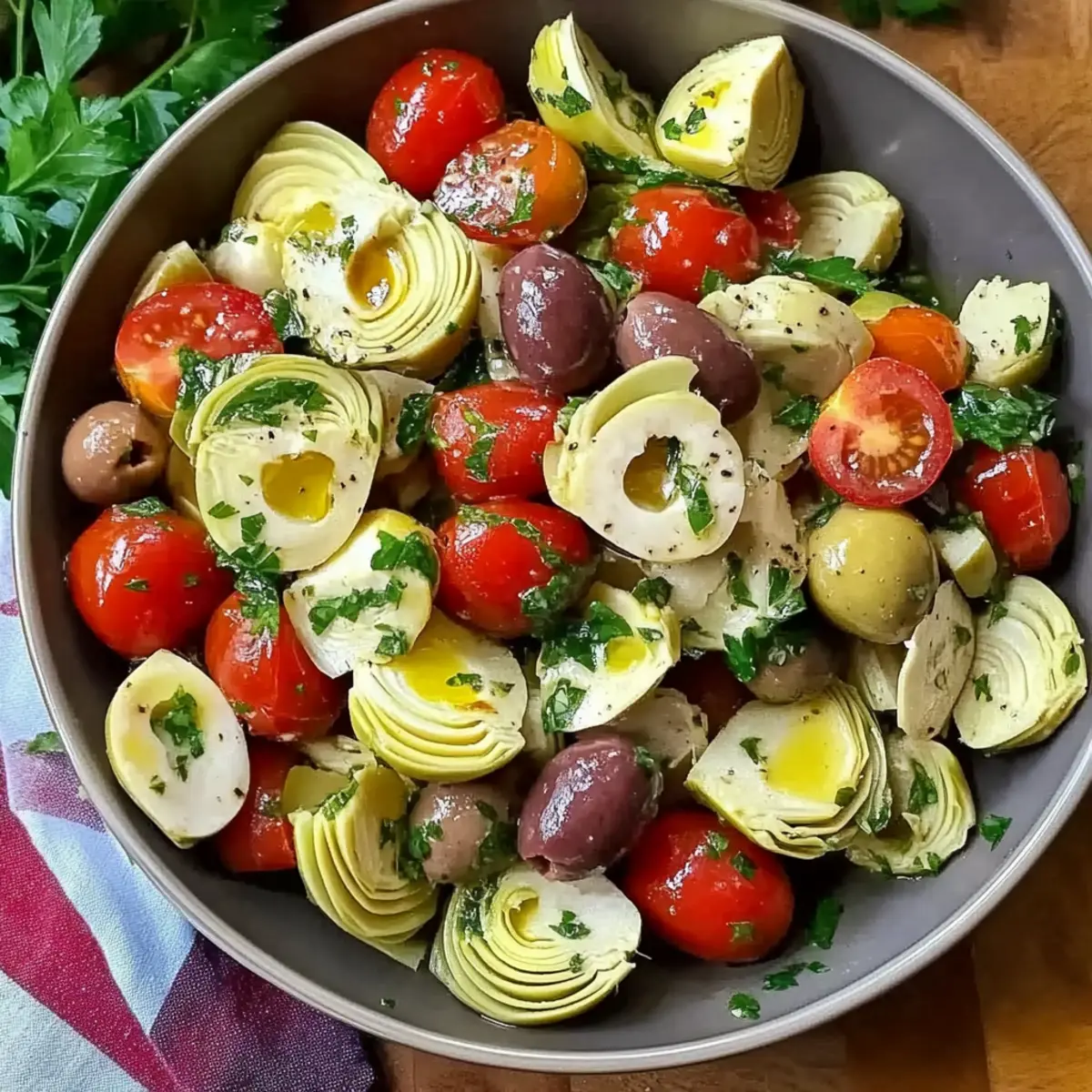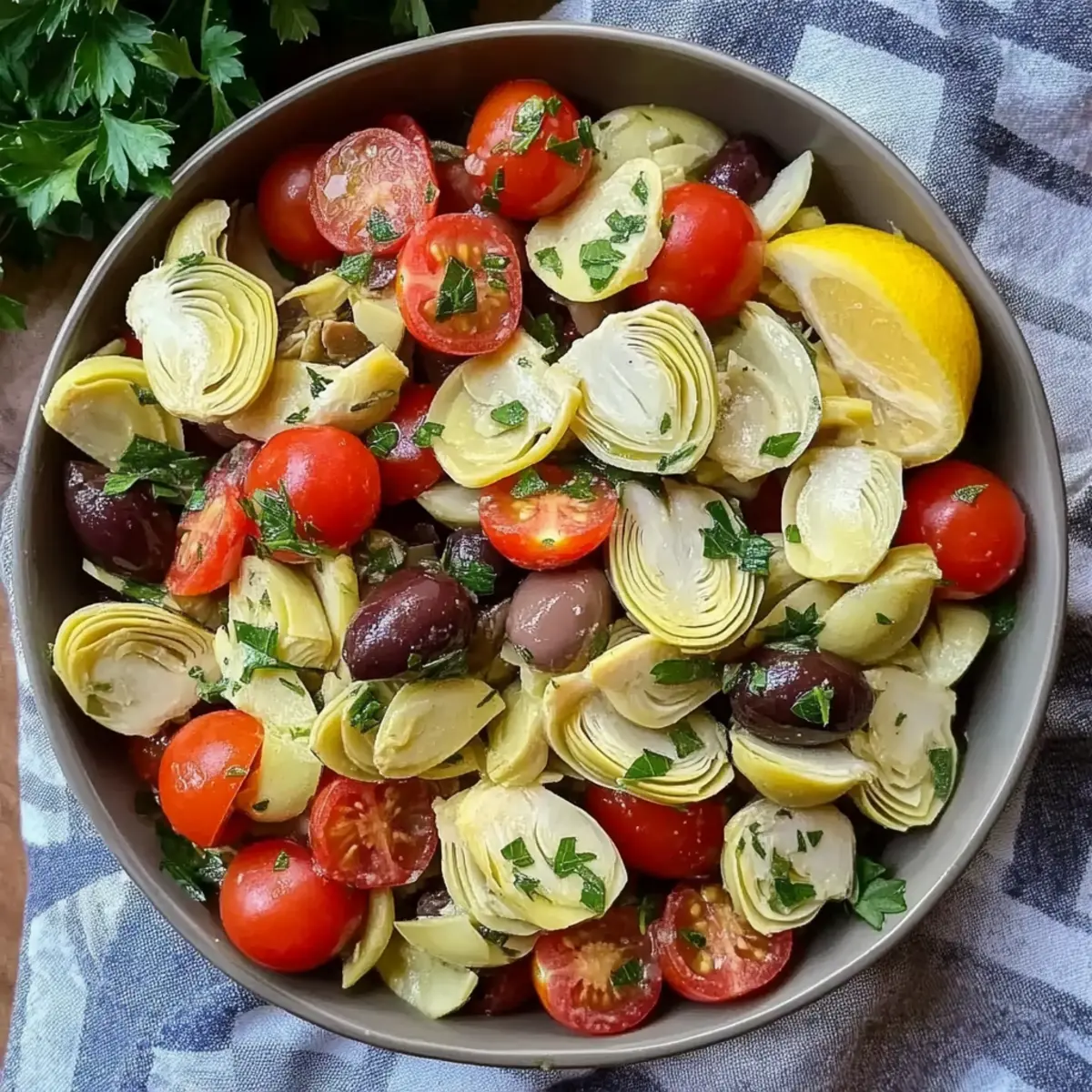 Absolutely! When choosing your ingredients, look for canned hearts of palm that are firm, without dark spots or discoloration. For artichokes, choose those that are tender and packed in water or oil, instead of brine. Cherry tomatoes should be vibrant and slightly firm to the touch. Always opt for fresh parsley with vibrant green leaves; wilted or browning leaves can affect the flavor of your salad.