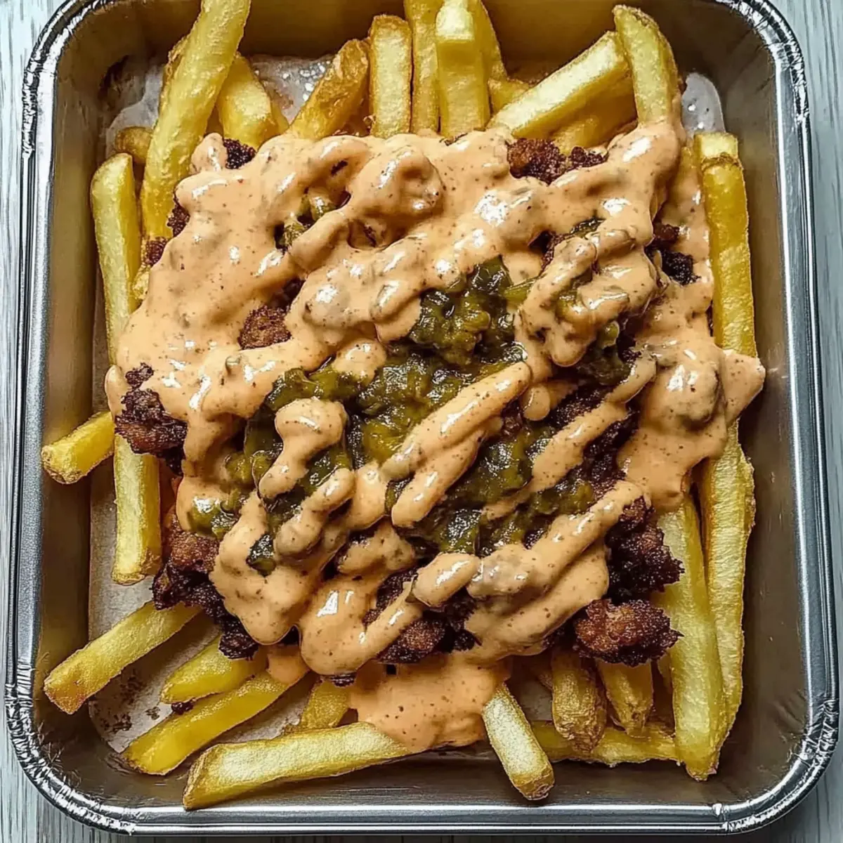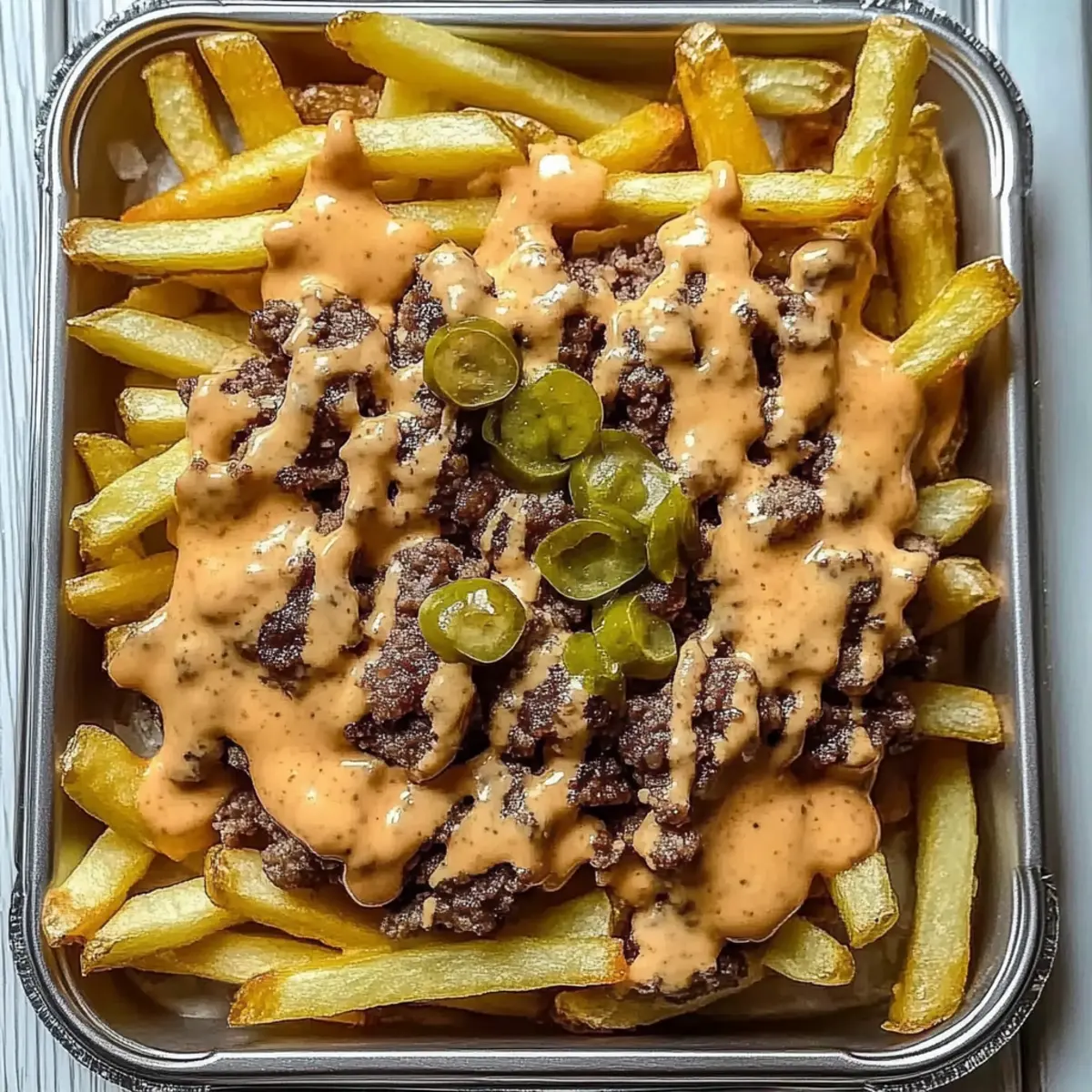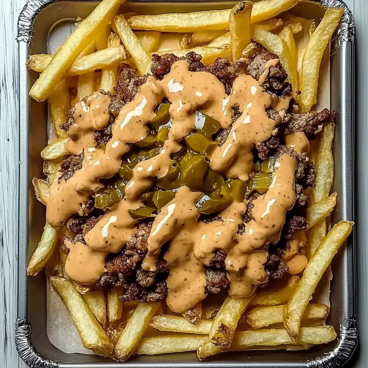 As I opened the fridge, I spotted the bag of frozen fries that had somehow become my go-to weeknight secret weapon. With a bit of ground beef hanging around, I knew I was just moments away from crafting something delicious: Hearty Smash Burger Fries. This dish is perfect for those busy evenings when you crave a comforting meal without the hassle of elaborate preparations. Not only does it come together in one pan, but it’s also entirely customizable, allowing everyone to pile on their favorite toppings. So gather your loved ones, because this scrumptious creation is bound to be a hit at your dinner table! What would you top your smash burger fries with? Why Are Smash Burger Fries So Irresistible? Hearty Taste: The rich flavor of seasoned ground beef combined with crispy fries creates an unbeatably delicious dish. One-Pan Wonder: Enjoy efficiency – everything cooks in just one pan, minimizing cleanup time. Customizable: Mix and match toppings like avocado, jalapeños, or crispy onion rings to suit every taste. Quick & Easy: Perfect for a weeknight meal, this recipe comes together in about 30 minutes! Crowd-Pleaser: Who can resist a plate of cheesy, loaded fries? You’ll be the star of dinner! For more delicious ideas, check out my recipes for Grilled Salmon Burgers and Summer Grilled Burger. Hearty Smash Burger Fries Ingredients • Here’s everything you need to whip up this tasty dish! For the Fries Frozen Crispy Fries – The crunchy base of the dish; choose a brand that you love for the best flavor. For the Beef Ground Beef (80/20 blend) – Ideal for juicy, flavorful patties; substitute with ground turkey for a lighter option. Kosher Salt and Pepper – Essential seasonings; adjust to your preference for optimal taste. Butter or Oil (optional) – Enhances browning of the beef while cooking. For the Cheese Sauce Cheese (freshly grated) – Creates a creamy experience; go for cheddar or your favorite melting cheese for best results. For the Special Sauce Special Sauce Ingredients (grated onion, mayonnaise, ketchup, etc.) – Adds that zing; drain onions well to avoid making the sauce too watery. This combination will lead you to deliciously satisfying Hearty Smash Burger Fries that everyone will love! Step‑by‑Step Instructions for Hearty Smash Burger Fries Step 1: Prep and Bake Fries Preheat your oven to 450°F and line a baking sheet with parchment paper. Spread the frozen crispy fries in an even layer, ensuring they’re not overcrowded. Bake for 20-25 minutes, flipping halfway through, until golden brown and crispy. Keep an eye on them to achieve that perfect crunch! Step 2: Prepare Ground Beef While the fries are baking, season your ground beef with kosher salt and pepper to enhance the flavor. Heat a large skillet over medium-high heat and optionally add a bit of butter or oil for extra browning. Divide the beef into even portions, pressing each into thin patties. Cook for about 1-2 minutes on each side until they are beautifully browned. Step 3: Assemble Dish Once your fries are perfectly crispy and your beef patties are cooked, it’s time to layer! Arrange the fries on an oven-safe platter, creating a delicious base. Drizzle a generous amount of cheese sauce over the fries, and crumble the cooked beef patties on top. Add more cheese sauce, then pop it back into the oven for 5-10 minutes to allow the flavors to meld beautifully. Step 4: Final Touches After the cheese has melted and everything is bubbly, it’s time to add your finishing touches. Drizzle the special sauce over the loaded fries and add your favorite toppings, like pickles, jalapeños, or diced onions. Serve warm right away, and watch your family dig into these satisfying Hearty Smash Burger Fries! What to Serve with Hearty Smash Burger Fries Craving the perfect accompaniments to elevate your hearty smash burger fries into a complete meal experience? Crispy Coleslaw: This crunchy, tangy slaw provides a refreshing contrast to the rich flavors of the fries, lightening the meal beautifully. Garlic Breadsticks: Soft, buttery breadsticks are perfect for dipping into the melted cheese sauce, creating a delightful flavor combination. Pickle Spears: Adding zesty pickles complements the savory profile of the smash burger, bringing a satisfying crunch and acidity to each bite. Grilled Corn on the Cob: Sweet, charred corn cuts through the richness of the dish while adding a burst of summertime flavor. Spicy Jalapeño Poppers: If you love a little heat, these creamy, spicy bites add excitement to the meal and enhance the flavor journey of your fries. Chilled Lemonade: A glass of refreshing lemonade balances the meal’s heartiness and provides a burst of citrusy flavor that quenches thirst perfectly. Chocolate Milkshake: Indulge your sweet tooth by pairing with a creamy milkshake that contrasts with the savory notes of your smash burger fries—pure bliss! Mixed Green Salad: A light side with fresh greens, tomatoes, and citrus vinaigrette offers a healthy balance, adding color and crunch to your dinner table. Make Ahead Options These Hearty Smash Burger Fries are perfect for meal prep enthusiasts seeking time-saving options! You can prepare the special sauce up to 3 days in advance; simply mix the ingredients, store in an airtight container, and refrigerate. Additionally, the ground beef patties can be seasoned and formed up to 24 hours ahead; keep them covered in the fridge to lock in moisture. When you’re ready to serve, just cook the patties in a hot skillet for 1-2 minutes per side, layer them over freshly baked fries, and drizzle with the cheese sauce. This way, you’ll enjoy the joy of a homemade feast without the last-minute rush! Storage Tips for Hearty Smash Burger Fries Fridge: Store leftover Hearty Smash Burger Fries in an airtight container for up to 2 days. Reheat in the oven to maintain crispiness, avoiding sogginess. Freezer: For longer storage, freeze assembled fries before baking. Wrap tightly in