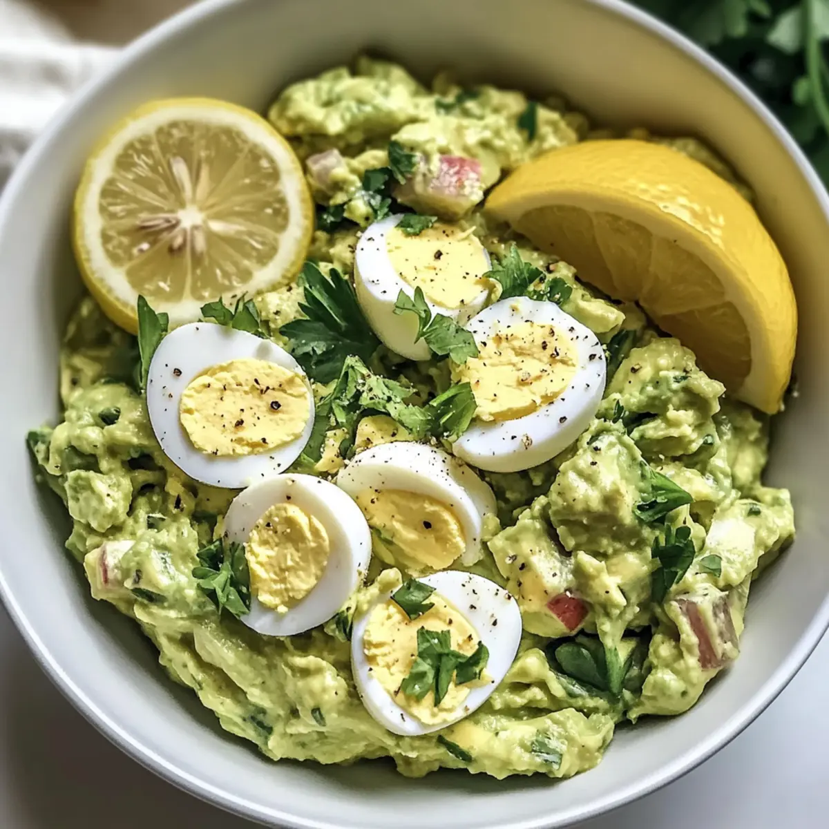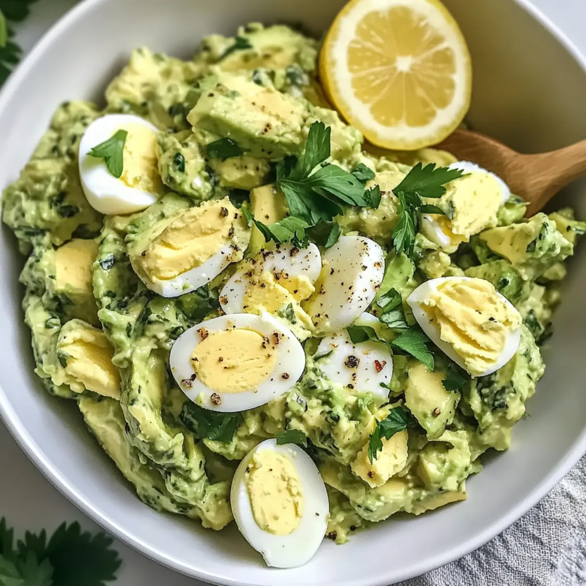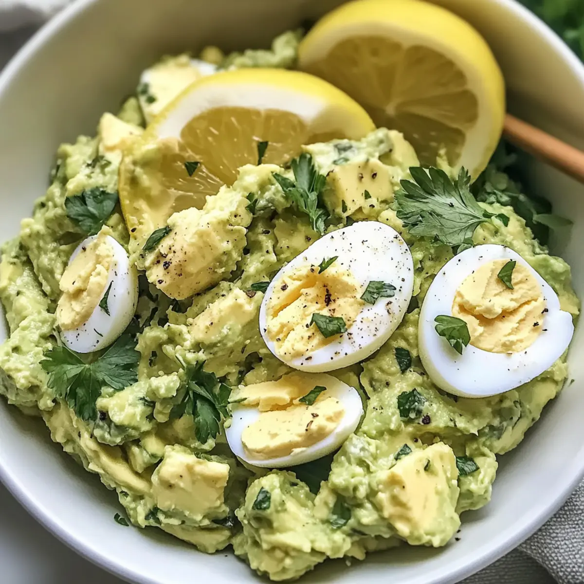 As I stood in my kitchen, the smell of fresh herbs mingled with ripe, creamy avocados, I knew I had just stumbled upon something special—my Herby Avocado Egg Salad. This delightful recipe is both healthy and quick, taking just 10 minutes to whip up. Imagine indulging in a creamy blend of hard-boiled eggs and vibrant herbs, perfect for those busy lunch hours or a light dinner that doesn’t skimp on flavor. With its protein-packed goodness and guilt-free twist, it transforms any mealtime into a fresh experience that you’ll look forward to savoring. Ready to elevate your lunch game? Let’s dive into this easy and delicious recipe! Why is this salad a game-changer? Quick and Easy: This Herby Avocado Egg Salad comes together in just 10 minutes, making it a perfect option for those hectic days. Guilt-Free Indulgence: With creaminess from ripe avocados and Greek yogurt, you can enjoy this dish without any reservation. High Protein Boost: Loaded with protein from hard-boiled eggs, it not only fills you up but keeps you energized throughout the day. Versatile Serving Options: Whether served on whole grain bread or enjoyed over a fresh bed of greens, the possibilities are endless! Need more ideas? Try pairing it with Taco Stuffed Avocados for a creative twist. Fresh Herb Flavor: The addition of zesty herbs like parsley takes this salad from ordinary to extraordinary, delivering a burst of freshness in every bite. Herby Avocado Egg Salad Ingredients • To create this delightful Herby Avocado Egg Salad, gather a few simple, wholesome ingredients that harmonize beautifully. For the Salad Ripe Avocados – Provides creamy texture and healthy fats; choose avocados that yield slightly to gentle pressure for optimal flavor. Greek Yogurt – A healthier mayo alternative that adds creaminess; substitute with coconut or almond yogurt for a dairy-free option. Hard-Boiled Eggs – The essential protein source for keeping you full; use the Instant Pot method for easy peeling. Lemon Juice – Adds acidity and brightness to the salad; freshly squeezed juice enhances the overall flavor. Dijon Mustard – Gives a zesty flavor kick; adjust the quantity to suit your taste preferences. Minced Red Onion – Offers a delightful crunch; replace with green onions for a milder taste if desired. Chopped Fresh Parsley – Elevates the dish with freshness and flavor; feel free to experiment with dill or cilantro for a twist. Salt and Pepper – Essential for seasoning; adjust to taste for the perfect balance. Final Touches Whole Grain Bread or Crackers – Ideal for serving; use your favorite kind for a wholesome base. Fresh Greens – A great alternative for serving; place the salad on a bed of spinach or mixed greens for a light, nutritious meal. Step‑by‑Step Instructions for Herby Avocado Egg Salad Step 1: Hard-Boil Eggs Start by adding 4 large eggs to your Instant Pot. Set it to the Manual setting for 4 minutes and allow for a 4-minute natural release afterward. Once the timer goes off, carefully transfer the eggs into an ice bath for at least 5 minutes—this not only cools them quickly but also makes peeling a breeze. Step 2: Prepare Avocado Mixture In a mixing bowl, mash 2 ripe avocados with ½ cup of Greek yogurt, the juice of 1 lemon, and 1 tablespoon of Dijon mustard until creamy yet slightly chunky. The avocados should be smooth without any large lumps, bringing a rich texture to your Herby Avocado Egg Salad. Next, add ¼ cup of minced red onion and ¼ cup of chopped fresh parsley, stirring until well combined. Step 3: Combine Ingredients Once the eggs are completely cooled, gently peel and chop them into bite-sized pieces. Fold the chopped eggs into the avocado mixture, ensuring that the eggs are evenly distributed without breaking them down too much. This step brings all the elements of your Herby Avocado Egg Salad together for a delightful blend of flavors and textures. Step 4: Season and Serve Taste the mixture and add salt and pepper according to your preferences—about ¼ teaspoon of each is a good starting point. For an inviting presentation, serve the Herby Avocado Egg Salad on whole grain bread, crackers, or over a bed of crisp greens. This dish is best enjoyed immediately to savor all the fresh flavors, but can be stored in the fridge for later. Make Ahead Options Creating your Herby Avocado Egg Salad ahead of time is a fantastic way to save precious moments during busy weeknights! You can prepare the avocado mixture (excluding the eggs) up to 24 hours in advance; just remember to add a splash of lemon juice to prevent browning. Store it in an airtight container in the refrigerator for optimal freshness. The hard-boiled eggs can also be made up to 3 days ahead and stored separately in the fridge, making it easy to combine everything just before serving. When you’re ready, simply fold the chopped eggs into the avocado mixture, adjust seasoning if needed, and enjoy a delicious, no-fuss meal that’s just as delightful as when freshly made! Herby Avocado Egg Salad Variations Feel free to get creative with this recipe and make it your own, enhancing flavors and textures to suit your taste buds. Dairy-Free: Substitute Greek yogurt with coconut or almond yogurt for a creamy, vegan alternative. This swap keeps the lush texture while maintaining all the delightful flavors. Herb Twist: Swap parsley for dill or cilantro for a fresh flavor change. These herbs will brighten the dish, adding an exciting twist to the traditional salad. Crunchy Add-ins: Toss in some chopped bell peppers or cucumbers for extra crunch. These vibrant additions not only make the salad more satisfying but also add a delightful burst of color. Spice It Up: Add a pinch of cayenne or some diced jalapeños for a spicy kick. This will elevate your Herby Avocado Egg Salad to new heights of flavor, tantalizing your taste buds with heat. Whole Grain Goodness: Serve on multigrain or sourdough toast for a heartier meal. The nutty flavor