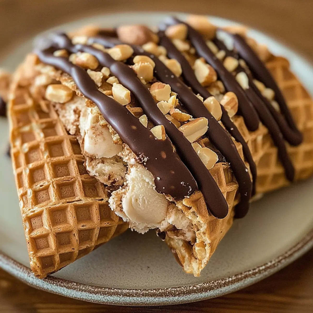 As I strolled down memory lane, the unmistakable sound of the ice cream truck echoed through my neighborhood, igniting a rush of nostalgia. Among the vibrant choices, the Homemade Choco Tacos always caught my eye, tempting me with their crispy, inviting shells. This no-bake recipe brings that carefree summer vibe right into your kitchen, allowing you to whip up an easy dessert that’s sure to impress. Not only is it customizable to suit your taste buds—think chocolate, strawberry, or even coconut ice cream—but it also offers a delicious way to relive those childhood moments without the hassle of baking. So, are you ready to satisfy your sweet tooth and create a delightful treat that will transport you back to sunny days? Let’s get started! Why Are Homemade Choco Tacos So Irresistible? Nostalgic flavors take you back to childhood, making every bite a trip down memory lane. Easy to prepare, this no-bake dessert comes together in a flash, leaving you more time to enjoy. Customizable with your favorite ice cream and toppings, you can make them unique for every occasion. Crowd-pleaser status means these treats disappear quickly at gatherings, just like they did from the ice cream truck! Plus, they’re a fun activity to create together with friends or family, making memories as sweet as the dessert itself. Ready to indulge? These Homemade Choco Tacos are waiting! Homemade Choco Tacos Ingredients For the Taco Shells Waffle Cones – A sturdy base for your homemade choco tacos; slightly dampen them to mold easily. For the Filling Vanilla Ice Cream – The creamy, classic choice; feel free to substitute with your favorite flavor for a twist! For the Chocolate Coating Chocolate Chips – Melted for a delicious outer layer; choose dark or milk chocolate based on preference, or go with dairy-free for a vegan option. For the Topping Peanuts – Adds a crunchy finish and nutty flavor; swap in sprinkles or other nuts for a fun variation! Step‑by‑Step Instructions for Homemade Choco Tacos Step 1: Prep Waffle Cones Begin by lightly dampening the waffle cones under running water or with a damp cloth until they are slightly moist but not soggy. This helps make them pliable. Carefully shape each cone into a taco shell by pressing the sides together gently. Set the molded cones aside on a clean surface to maintain their shape while you prepare the filling. Step 2: Fill with Ice Cream Using a sturdy ice cream scoop, fill each taco shell with generous scoops of creamy vanilla ice cream. Press the ice cream in firmly, ensuring the shells are packed to the brim for a delightful bite. Once filled, you may want to smooth the tops with a spatula, creating a rounded shape that resembles a traditional taco. This step transforms the waffle cones into delectable Homemade Choco Tacos. Step 3: Coat with Chocolate In a microwave-safe bowl, melt your chocolate chips in 30-second intervals, stirring in between until smooth and fully melted. Once melted, take each filled taco and dip the outer edge into the warm chocolate, coating it thoroughly. Hold it for a moment to let excess chocolate drip off before placing it on a parchment-lined baking sheet. This decadent layer adds a rich flavor to your Homemade Choco Tacos. Step 4: Add Toppings Before the melted chocolate sets, quickly sprinkle the crunched peanuts (or your choice of toppings like sprinkles) over the chocolate-coated tacos. Make sure to cover them evenly while the chocolate is still tacky, allowing the toppings to stick. This adds a delightful crunch to each bite, elevating your Homemade Choco Tacos to a whole new level of deliciousness. Step 5: Freeze Carefully place the completed Homemade Choco Tacos in the freezer for about 15 to 30 minutes, allowing the chocolate to harden and the ice cream to firm up. This step is crucial for that perfect texture, ensuring every taco is crunchy outside while soft and creamy inside. Keep an eye on them, and once set, they’re ready to be served and enjoyed! Make Ahead Options These Homemade Choco Tacos are perfect for busy weeknights and can be prepared in advance for a quick dessert whenever your sweet tooth strikes! You can shape the taco shells and fill them with ice cream up to 24 hours ahead of time—just make sure to wrap them tightly in plastic wrap or store them in an airtight container to prevent freezer burn. If you’re coating them with chocolate, it’s best to do that right before serving for the best texture and flavor. Simply dip the pre-filled tacos into melted chocolate and add your favorite toppings moments before enjoying this nostalgic delight. With these make-ahead options, you’ll have delicious, customizable desserts ready in no time! How to Store and Freeze Homemade Choco Tacos Fridge: Keep leftover Homemade Choco Tacos in the refrigerator for up to 3 days, but they’re best enjoyed fresh to maintain crunchiness. Freezer: Store your Homemade Choco Tacos in an airtight container in the freezer for up to two weeks. This prevents freezer burn and maintains their delightful texture. Wrapping: For added protection, wrap each taco separately with plastic wrap before placing them in the container. This helps preserve their flavors and crunch. Reheating: Enjoy straight from the freezer! There’s no need to reheat; just let them sit at room temperature for a few minutes for easy handling. Homemade Choco Tacos Variations Feel free to get creative with these delightful twists, making each bite just as unique as you are! Dairy-Free: Use coconut, almond, or cashew ice cream to keep it creamy yet vegan-friendly. You’ll maintain that rich flavor without any dairy! Flavorful Ice Creams: Swap out vanilla for chocolate, strawberry, or even coffee ice cream for delicious new flavor profiles. Each variety brings its own delightful twist. Crunchy Alternatives: Replace peanuts with crushed cookies, such as Oreos or graham crackers, for a fun texture change. Imagine the sweet cookie crunch paired with choc