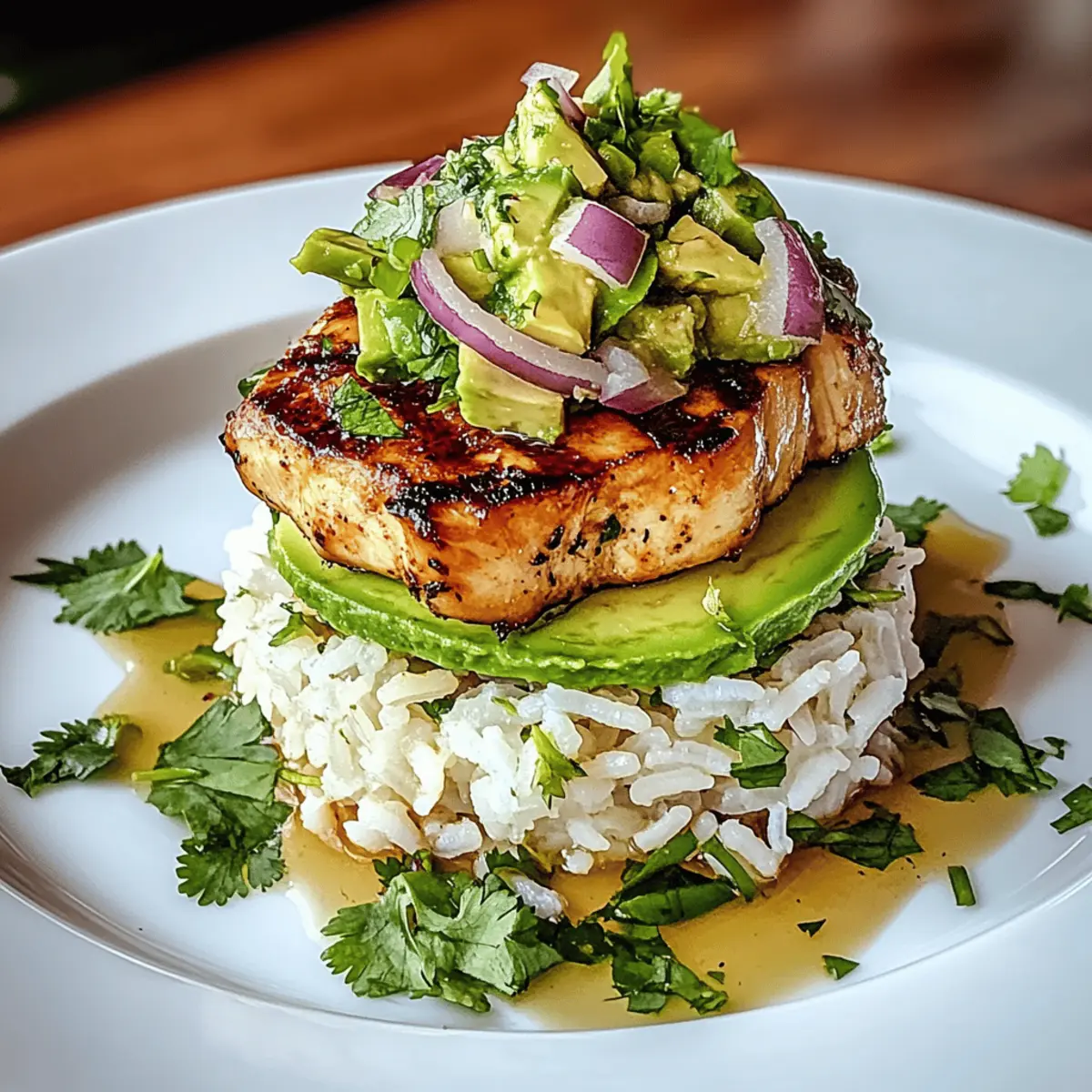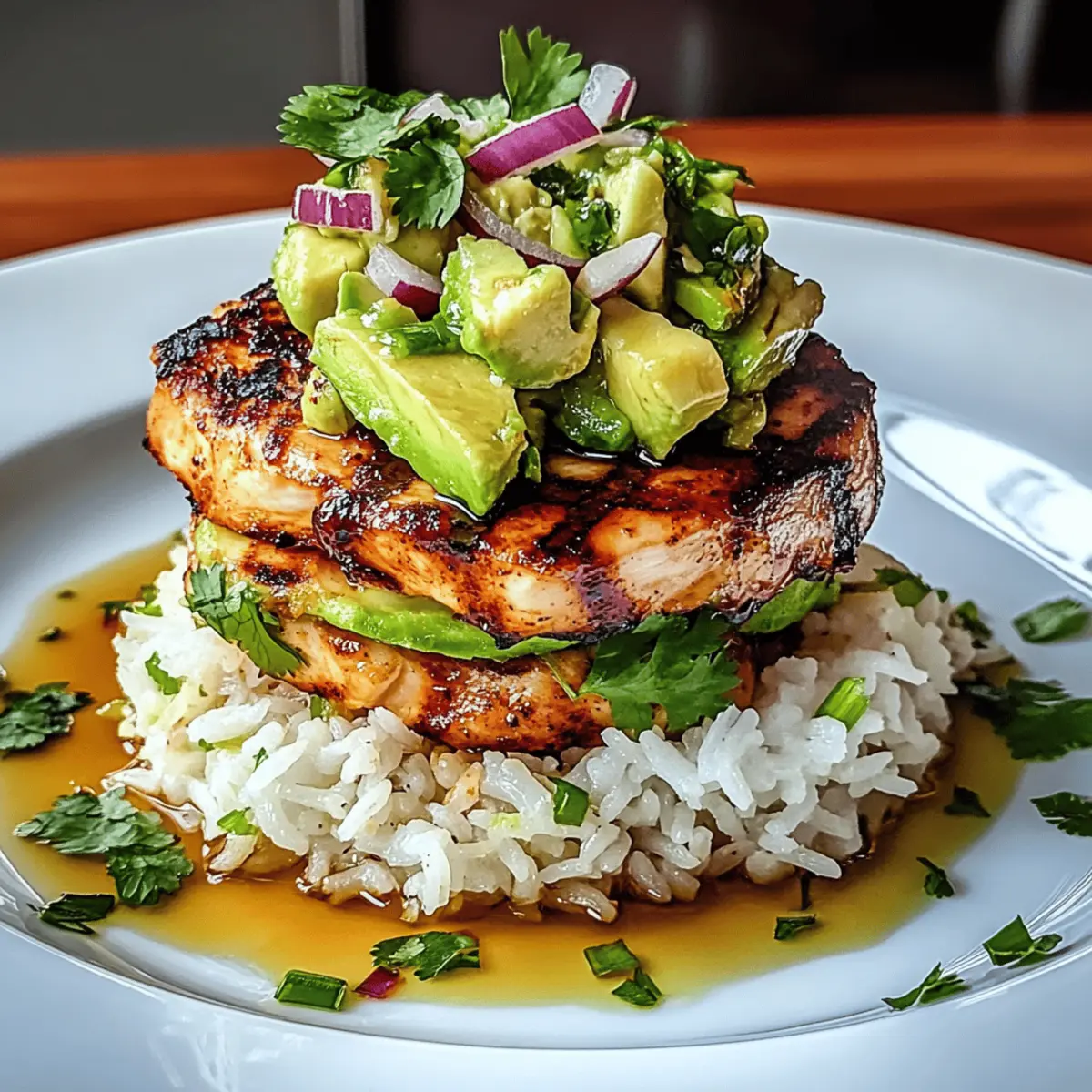 As the aroma of sizzling chicken wafts through the kitchen, my mouth begins to water in anticipation. This Honey Lime Chicken & Avocado Rice Stack is not just a dish; it’s a celebration of vibrant flavors and colorful ingredients that come together effortlessly. Perfect for those busy weeknights, this recipe is beginner-friendly, taking only 30 minutes to prepare! Imagine quick dinners that don’t skimp on taste—this dish is a crowd-pleaser that combines the sweetness of honey with the zesty punch of lime, topped off with creamy avocado. Plus, it’s a healthy, gluten-free option that you can feel good about serving to family and friends. Ready to elevate your dinner game? Let’s dive into this mouthwatering stack! Why is this Honey Lime Chicken so special? Flavor Explosion: The zesty combo of honey and lime creates a vibrant marinade that’s bursting with flavor! Quick & Easy: Just 30 minutes from prep to plate, making it perfect for weeknight dinners. Healthy Choice: This gluten-free dish prioritizes fresh ingredients, ensuring guilt-free indulgence. Versatile Delight: Serve it on its own or pair it with our Cream Cheese Chicken Taquitos for a full feast! Crowd-Pleaser: Ideal for family meals or entertaining guests, everyone will love this colorful stack! Texture Harmony: The tender chicken, fluffy rice, and creamy avocado create a delightful mix that you won’t forget. Honey Lime Chicken & Avocado Rice Stack Ingredients For the Chicken Marinade Boneless, skinless chicken breasts – A lean protein base that absorbs all that delightful honey-lime flavor. Honey – This natural sweetener adds a glossy finish to your chicken; swap with agave syrup for a vegan marinade. Juice of 2 limes – Freshly squeezed for the best tangy punch that enhances the marinade’s depth. Zest of 1 lime – A little zest goes a long way to intensify that vibrant citrus aroma. Minced garlic (2 cloves) – Adds savory depth to balance the sweetness of the honey. Ground cumin (1 tsp) – Introduces warm, earthy notes; feel free to omit for a milder flavor. Salt and pepper – Essential for accentuating all flavors in this Honey Lime Chicken & Avocado Rice Stack. For the Rice Jasmine rice (1 cup) – This fragrant grain provides a soft, fluffy base for the dish; try basmati rice for a different flavor twist. Chicken broth (2 cups) – Used for cooking the rice, adding savory richness and enhancing the overall taste. For the Avocado Mixture Diced avocado (1) – Brings creaminess that beautifully contrasts the grilled chicken. Red onion (1/4 cup, finely chopped) – Adds a crunchy bite and vibrant color to the avocado mix. Fresh cilantro (1/4 cup, chopped) – Offers a refreshing herbal note; parsley can be a great substitute. Olive oil (1 tbsp) – Helps bind the avocado mixture and brings out all the delightful flavors. For Serving Lime wedges – Serve them on the side for an extra boost of acidity that brightens the dish! Step‑by‑Step Instructions for Honey Lime Chicken & Avocado Rice Stack Step 1: Prepare Marinade In a bowl, whisk together the honey, juice and zest of 2 limes, minced garlic, cumin, salt, and pepper until well combined. The mixture should be smooth and slightly thickened. This vibrant marinade will infuse your chicken with flavor, creating the perfect base for the Honey Lime Chicken & Avocado Rice Stack! Step 2: Marinate Chicken Place the boneless, skinless chicken breasts into a resealable bag or a shallow dish, then pour the marinade over the chicken. Ensure each piece is thoroughly coated, then seal or cover and refrigerate for 30 minutes to 2 hours. This allows time for the chicken to absorb the sweet and tangy flavors while you prepare the rest of the dish. Step 3: Cook Rice Rinse the jasmine rice under cold water to remove excess starch, giving it a fluffier texture. In a saucepan, bring 2 cups of chicken broth to a boil. Once boiling, add the rinsed rice, cover, and simmer on low heat for about 15 minutes until all the liquid is absorbed and the rice is tender. Fluff with a fork once done for the perfect base of your Honey Lime Chicken & Avocado Rice Stack. Step 4: Heat Grill Preheat your grill or grill pan to medium-high heat. You’ll know it’s ready when you can hold your hand about 6 inches above the grill for only 2-3 seconds. While the grill heats, remove the chicken from the marinade, allowing any excess to drip off. This step will ensure a nice caramelized exterior while grilling. Step 5: Grill Chicken Place the marinated chicken onto the grill and cook for 6-7 minutes on each side. Use a meat thermometer to ensure the internal temperature reaches 165°F (75°C). The chicken should have a beautiful golden-brown color with grill marks. After grilling, let the chicken rest for 5 minutes to allow the juices to redistribute, making it tender and juicy for your stack. Step 6: Mix Avocado Ingredients In a mixing bowl, combine the diced avocado, finely chopped red onion, chopped cilantro, and olive oil. Gently toss the ingredients together until coated without mashing the avocado. This creamy mixture adds a fresh, delicious contrast to the grilled chicken in your Honey Lime Chicken & Avocado Rice Stack, enhancing the overall flavor profile. Step 7: Assemble Stack Begin assembling your Honey Lime Chicken & Avocado Rice Stack by layering the cooked jasmine rice at the bottom of your serving dish. Next, slice the grilled chicken and place it atop the rice, followed by a generous spoonful of the avocado mixture. This creates a beautiful presentation that showcases the vibrant colors and textures of your meal. Step 8: Serve Garnish your stack with lime wedges and any extra chopped cilantro if desired. Serving these on the side allows everyone to customize their flavor, adding a zesty punch when drizzled over the top. Your Honey Lime Chicken & Avocado Rice Stack is now ready to enjoy—perfect for impressing family and friends! Expert Tips for Honey Lime Chicken Marinade Time 