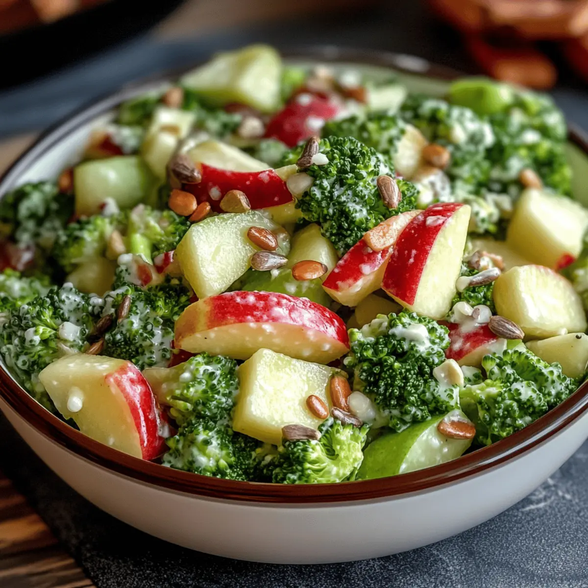As the sun sets and the air turns crisp, I find myself reaching for vibrant ingredients that mirror the season’s bounty. This Crunchy Honeycrisp Apple Broccoli Salad effortlessly brings together the sweetness of Honeycrisp apples and the satisfying crunch of fresh broccoli, creating a refreshing no-cook side dish that’s simply irresistible. Not only is it quick and easy to whip up, but it also makes for a colorful crowd-pleaser that impresses at any gathering—or serves as a delightful solo indulgence. With familiar and wholesome ingredients, this salad is a wonderful testament to how simple can be extraordinary. Are you ready to add a splash of freshness to your table? Why is this salad a must-try? Colorful, this Honeycrisp Apple Broccoli Salad brings vibrancy to your table, making it visually appealing and perfect for gatherings. Effortless to prepare, you can whip it up in minutes, freeing you to enjoy quality time with your guests. Crisp and refreshing, the combination of broccoli and juicy apples offers a delightful crunch in every bite. Versatile, it pairs beautifully with grilled meats or serves as a light lunch option. For those who love quick, no-cook solutions, this salad is a winner! Don’t forget to explore other options like Spring Confetti Salad for even more fresh ideas! Honeycrisp Apple Broccoli Salad Ingredients For the Salad Broccoli – Provides structure and a crisp texture; chop into bite-sized florets for optimal crunch. Honeycrisp Apples – Adds sweetness and a juicy texture; alternatives include Gala or Fuji apples. Red Onion – Introduces a sharp bite; adjust based on your preference for intensity. Sunflower Seeds – Adds a nutty crunch; substitute with walnuts or almonds if desired. Dried Cranberries – Offers chewy sweetness; you can replace with raisins for a different flavor note. For the Dressing Greek Yogurt – Acts as a creamy dressing base, contributing tanginess; may swap with mayonnaise for a richer flavor. Honey (or Maple Syrup) – Provides sweetness to balance the dressing; adjust according to your taste preference. Apple Cider Vinegar – Adds acidity and brightness; can substitute with white wine vinegar or lemon juice if needed. Salt and Pepper – Enhance flavor; adjust to taste. With these delightful ingredients, your Honeycrisp Apple Broccoli Salad is all set to impress at any gathering! Step‑by‑Step Instructions for Honeycrisp Apple Broccoli Salad Step 1: Prepare the Vegetables Begin by washing and chopping the broccoli into small bite-sized florets. Aim for uniform pieces to ensure even crunch. Next, core the Honeycrisp apples and cut them into small cubes, leaving the skin on for color and texture. Finely chop half a red onion and set all the chopped ingredients aside in a large mixing bowl. Step 2: Combine the Salad Ingredients In the bowl with the broccoli, Honeycrisp apple cubes, and chopped red onion, add a generous handful of sunflower seeds and dried cranberries. Gently toss the mixture using your hands or a large spoon until all the ingredients are well distributed, creating a colorful harmony of flavors and textures in your Honeycrisp Apple Broccoli Salad. Step 3: Whisk the Dressing In a separate mixing bowl, combine the Greek yogurt (or mayonnaise), honey, and apple cider vinegar. Add a pinch of salt and pepper to taste. Using a whisk, blend the ingredients together until the dressing is smooth and creamy. Taste, and adjust the sweetness or acidity according to your preference for a balanced flavor. Step 4: Dress the Salad Pour the creamy dressing over the salad mixture in the large bowl. Using a spatula or tongs, gently toss everything together until all the ingredients are evenly coated with the dressing. The creamy texture should beautifully blanket the crisp broccoli and sweet apples, creating a delightful finish for your Honeycrisp Apple Broccoli Salad. Step 5: Chill and Serve Cover the bowl with plastic wrap or a lid, and refrigerate the salad for at least 30 minutes. This chilling time allows the flavors to meld together beautifully. Once ready to serve, give it a final gentle toss, and it will be perfectly ready to impress your family or guests as a refreshing side dish! Expert Tips for Honeycrisp Apple Broccoli Salad Chop Properly: Ensure broccoli florets are bite-sized for easy eating and optimal crunch. This avoids large pieces, which can be overwhelming. Fruit Freshness: Use the freshest Honeycrisp apples for the best sweetness and crunch. Check for firmness and vibrant color to enhance flavor. Adjusting Onion: Start with a smaller amount of red onion if you’re unsure about the intensity; you can always add more after tasting! Nutty Alternatives: If you prefer a nut-free salad, feel free to skip sunflower seeds or substitute them with pumpkin seeds for a similar crunch. Chill Time: Don’t rush the refrigeration! Allowing the salad to chill for at least 30 minutes helps meld the flavors and enhances your Honeycrisp Apple Broccoli Salad. Leftover Storage: Store any leftovers in an airtight container in the fridge, but consume them within three days for the best taste and texture. What to Serve with Honeycrisp Apple Broccoli Salad Elevate your meal with delightful pairings that beautifully complement the crunchy textures and sweet flavors of this refreshing salad. Grilled Chicken: Juicy, seasoned chicken balances the salad’s sweetness while adding protein—perfect for a satisfying meal. Roasted Sweet Potatoes: Their warm, earthy flavor contrasts nicely with the crisp salad, creating a comforting and wholesome plate. Quinoa Pilaf: Nutty quinoa adds a hearty element, making your meal delightful and providing extra fiber and protein. Pesto Pasta: The rich, garlicky flavor of pesto pasta enhances the salad’s freshness. It’s a flavorful combo that won’t disappoint! Toasted Bread: Serve this salad alongside crunchy crostini or garlic bread for a wonderful texture contrast at the table. Sparkling Water: 