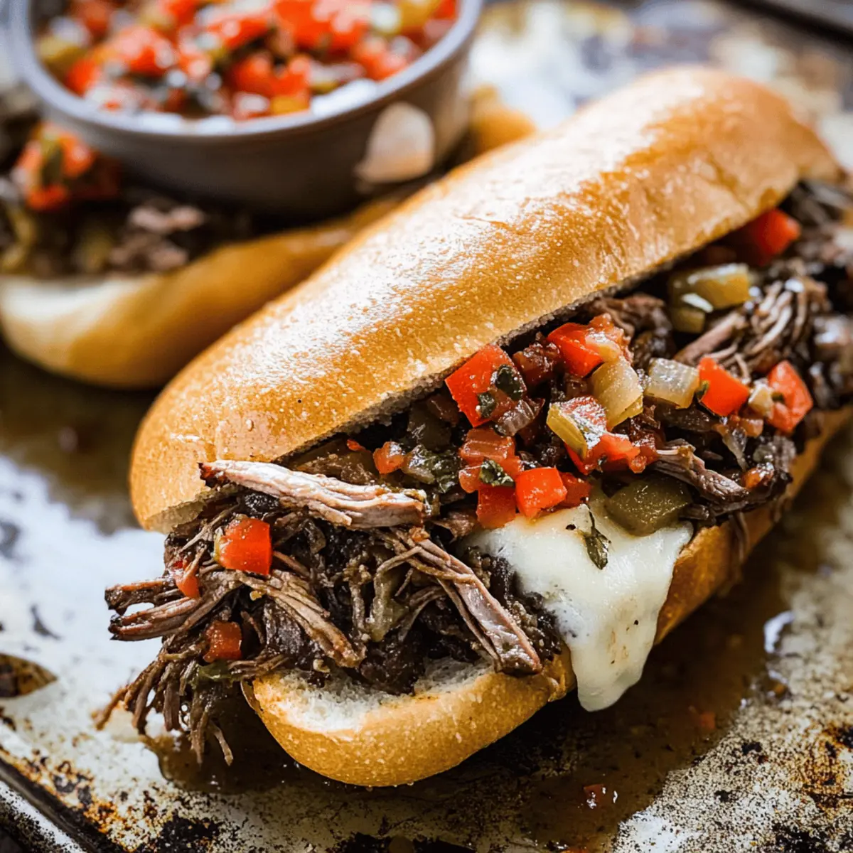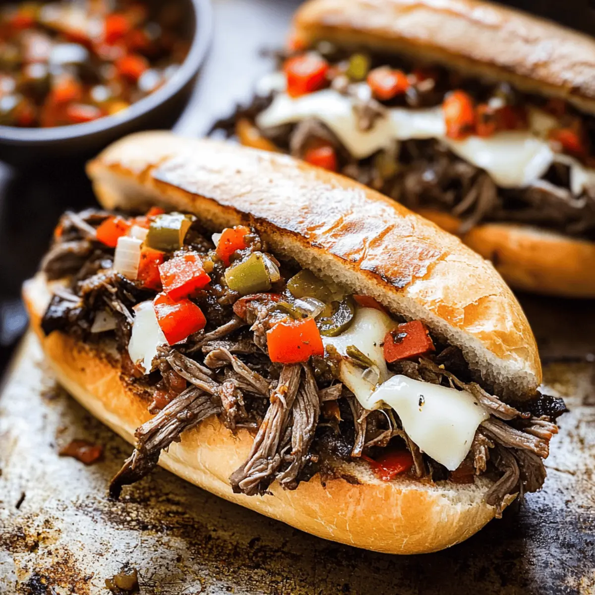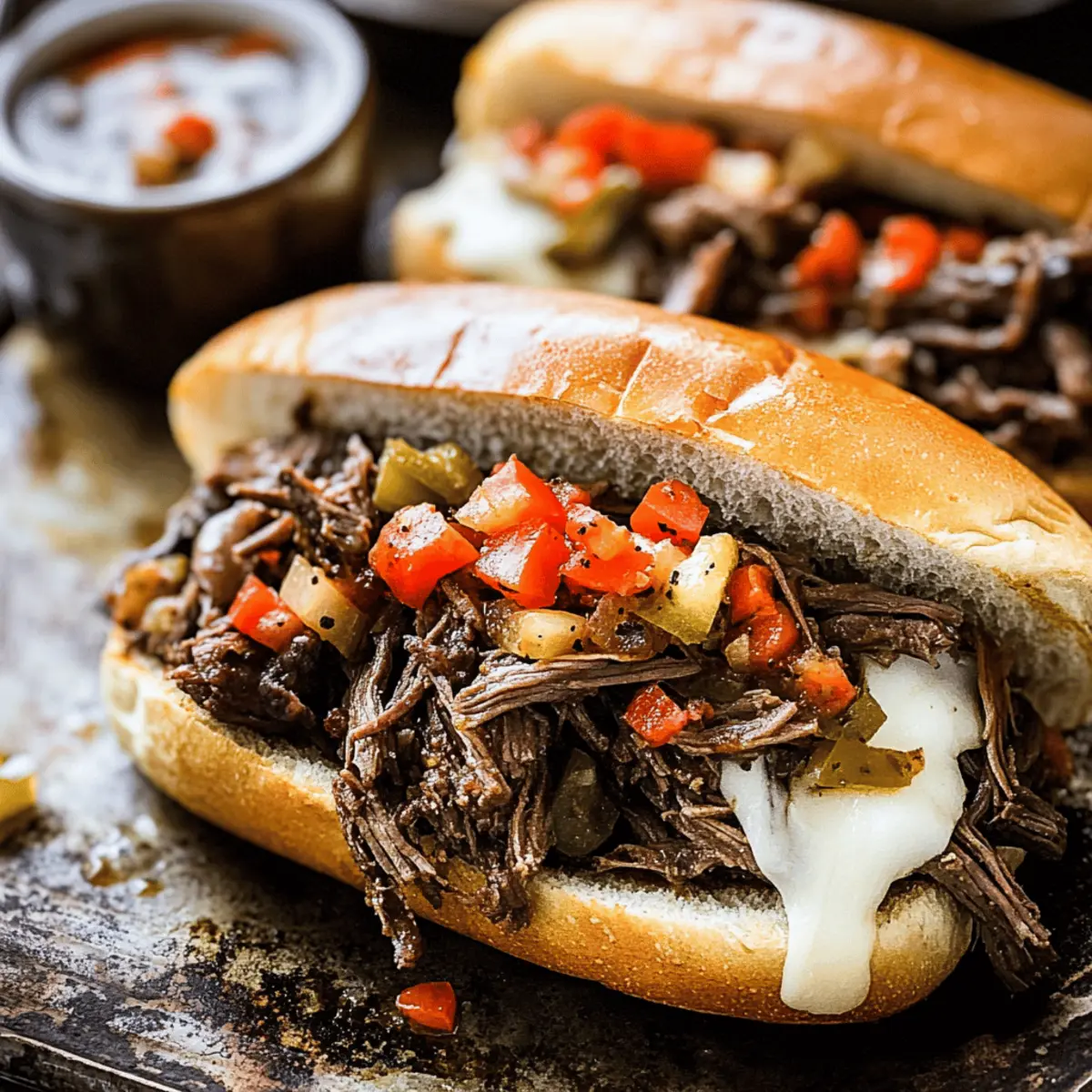The aroma of slow-cooked meat wafting through the kitchen can transform any ordinary day into a comforting feast. That’s exactly what you’ll experience with my Tender Slow Cooker Italian Beef Sandwiches—a delightful blend of juicy beef, zesty spices, and tangy pickled vegetables. This recipe is not just comfort food; it’s an easy, party-friendly hit that allows you to serve a crowd without breaking a sweat. With gluten-free options available, everyone can join in on the deliciousness! Whether it’s a game day gathering or a cozy family dinner, you’ll find that each bite brings joy and satisfaction. Ready to dive into your new favorite slow cooker creation? Why are these Italian beef sandwiches irresistible? Tender, Juicy Meat: The slow cooking process makes the beef incredibly tender, practically melting in your mouth. Zesty Flavor Explosion: Infused with rich Italian seasonings and tangy pepperoncini, each bite is a celebration of bold flavors. Effortless Cooking: Simply set it and forget it! Perfect for busy days or casual get-togethers, allowing you to enjoy time with loved ones. Crowd-Pleasing Appeal: Serve these sandwiches at your next gathering, and watch as they become the star of the show—just like Cheesy Beef Chimichangas and Italian Stuffed Meatloaf! Versatile Options: Adapt the recipe with different cheeses or veggies, making it customizable for everyone’s tastes. Get ready to create a memorable dish that’s sure to impress! Italian Beef Ingredients For the Beef • Chuck Roast or Round Roast – This is your main protein source; it becomes tender and flavorful when slow-cooked. Substitute with top sirloin or bottom round if desired. • Kosher Salt – Enhances flavors and tenderizes meat; feel free to adjust to your taste. • Beef Broth – Adds depth and moisture to the dish; using low-sodium varieties can help manage salt levels. For the Spice Blend • Pepperoncini Pepper Slices – Offers heat and acidity; adjust the quantity based on your spice tolerance. • Italian Seasoning – Provides a homemade flavor profile that complements the beef beautifully; consider store-bought mixes for convenience. • Granulated Sugar – A touch of sweetness can balance out the savory flavors. • Garlic Powder – Adds a robust aroma and taste to the dish; fresh garlic could also work if you prefer. • Onion Powder – Brings a depth of flavor; interchangeable with fresh onion salsa if desired. • Black Pepper – Enhances taste; adjust according to personal preference. • Thyme – Adds a lovely herbal note to the mix, enriching the overall flavor. For the Toppings • Giardiniera (drained) – Gives a crunchy, tangy bite; swap for other pickled vegetables if you wish to change things up. • Provolone Cheese Slices – Adds creaminess when served; mozzarella is a great substitute if you prefer. For Serving • Hoagie Buns – Serve as the sandwich base; gluten-free options are available for those with dietary restrictions. Delve into these fantastic Italian beef ingredients and prepare for a delightful culinary adventure! Step‑by‑Step Instructions for Tender Slow Cooker Italian Beef Sandwiches Step 1: Prepare the Beef Start by letting your chuck roast rest for 15 minutes at room temperature. While it’s resting, generously season the meat with kosher salt to enhance the flavors. This step is crucial for achieving that juicy, savory profile you crave in your Italian beef. Step 2: Sear the Meat Heat a large skillet over medium-high heat, adding a touch of oil. Once hot, sear the beef for about 10 minutes, turning occasionally until it’s golden brown. This caramelization adds depth to the flavor. Once done, transfer the browned meat to your slow cooker for the next step. Step 3: Deglaze the Skillet In the same skillet, pour in about a cup of beef broth and scrape the bottom with a wooden spatula to release the flavorful browned bits. This creates a delicious base for your dish. Pour this broth mixture over the beef in the slow cooker, ensuring it’s well-coated. Step 4: Mix the Seasonings In a small bowl, combine garlic powder, onion powder, Italian seasoning, granulated sugar, black pepper, and thyme. Mix well and then sprinkle this aromatic blend evenly over the beef, ensuring all sides are covered. These spices will infuse the beef with a robust flavor as it cooks. Step 5: Add the Peppers Now, it’s time to add in the pepperoncini peppers along with their juice, as well as the drained giardiniera. This will contribute to the tangy punch that makes your Tender Slow Cooker Italian Beef so delightful. Pour any remaining beef broth over everything, just to ensure the meat stays moist throughout the cooking process. Step 6: Slow Cook the Beef Cover your slow cooker and set it on LOW for 8 to 10 hours. You’ll know it’s ready when the beef shreds easily with a fork. The long cooking time allows the flavors to meld beautifully—imagine the aroma filling your kitchen as it transforms into a comforting dish. Step 7: Shred the Beef Once cooked, carefully remove the beef from the slow cooker and shred it using two forks. Return the shredded beef to the slow cooker and let it simmer in its own juices for an additional 30 minutes. This final touch ensures every bite of your Italian beef is saturated with flavor. Step 8: Serve and Enjoy To serve, toast your hoagie buns until golden brown. Load them up with the flavorful Italian beef, adding slices of provolone cheese, extra pepperoncini, and giardiniera if desired. This creates a beautifully satisfying sandwich that’s perfect for your next gathering! How to Store and Freeze Italian Beef Fridge: Store leftover Italian beef in an airtight container for up to 3 days; make sure it’s completely cooled before sealing to maintain freshness. Freezer: For longer storage, freeze the beef in an airtight container or freezer bag for up to 3 months; label it with the date for reference. Reheating: Thaw overnight in the ref
