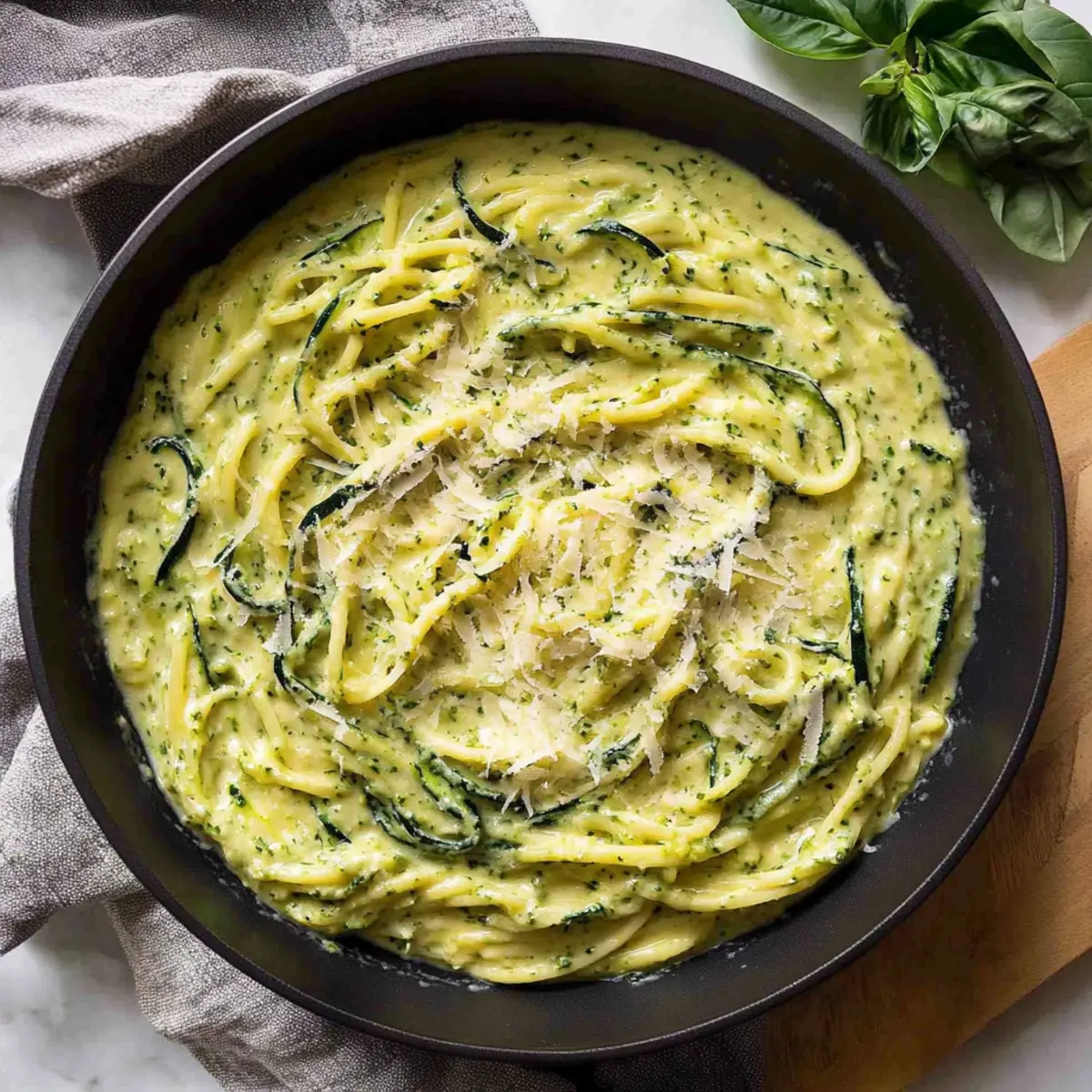 As I stood in my kitchen, the vibrant green of the fresh zucchini caught my eye—it was begging to be transformed into something delicious. Enter my Italian Zucchini Sauce, a game-changer that’s not only a fantastic way to use up that summer bounty but also a healthy twist on a classic favorite. With its creamy texture and rich flavors, this sauce serves as a perfect stand-in for traditional tomato sauce, making it a hit for both kids and adults alike. The best part? It’s quick to whip up in just one skillet, so busy weeknights don’t turn into a frantic race against time. Plus, you can freeze leftovers for a cozy homemade meal any night of the week. Are you ready to elevate your pasta game with this scrumptious sauce? Let’s dive into the recipe! Why is this sauce irresistible? Fresh Ingredients: This Italian Zucchini Sauce bursts with the goodness of fresh zucchini and aromatic herbs, turning simple ingredients into a delightful feast. Creamy Texture: The addition of heavy cream creates a velvety consistency that beautifully coats your pasta, making every bite a pleasure. Health-Conscious: Offering a guilt-free alternative to traditional sauces, it’s packed with fiber and nutrients—perfect for those seeking a healthier lifestyle. Versatile & Adaptable: Whether you’re tossing it with gluten-free pasta or adding protein like ground turkey, this sauce accommodates any dietary need effortlessly. Quick & Easy: With just one skillet needed, cleanup is a breeze, allowing you to enjoy a homemade meal without the hassle. Pair it with a side of Zucchini Soup Comforting for a complete dining experience! Italian Zucchini Sauce Ingredients For the Sauce Zucchini – Use medium-sized, firm zucchini for the best flavor and texture; large zucchinis can be watery. Extra-Virgin Olive Oil – This healthy fat enhances the sauce’s flavor and richness. Sweet Onion (Vidalia) – Sautéing sweet onion adds a deliciously sweet flavor base. Crushed Red Pepper Flakes – Adjust the heat to your taste; a little goes a long way! Minced Fresh Garlic – Fresh garlic brings a robust aroma and flavor profile to the sauce. Kosher Salt & Ground Black Pepper – Essential for seasoning; balance the dish’s flavors perfectly. Fresh Basil, Oregano, and Mint – Use half during cooking for depth and save the rest for garnishing. Heavy Cream – Adds the creamy texture that makes this Italian Zucchini Sauce a comfort food favorite; substitute with dairy-free options if desired. Romano Cheese – For a savory, umami boost; replace with dairy-free cheese for a vegan dish. Optional Add-ins Protein – Consider ground turkey or Italian sausage for a heartier meal. Extra Veggies – Spinach or bell peppers can easily be incorporated for added nutrition. This Italian Zucchini Sauce is not just an alternative; it’s a flavorful embrace of vegetables that even the pickiest eaters will love! Step‑by‑Step Instructions for Italian Zucchini Sauce Step 1: Cook Pasta Begin by bringing a large pot of salted water to a rolling boil over high heat. Once boiling, add your dry pasta and cook until al dente, usually about 8–10 minutes depending on the type. Reserve 1 cup of the pasta cooking water before draining the rest, and toss the drained pasta with a splash of extra-virgin olive oil to prevent sticking. Step 2: Prep Zucchini While your pasta cooks, take the medium-sized zucchini and trim off the ends. Slice them in half lengthwise, then use a box grater or a food processor to shred the zucchini thoroughly. Set the shredded zucchini aside; it will provide the bulk for your creamy Italian Zucchini Sauce. Step 3: Sauté Aromatics In a large skillet, heat a couple of tablespoons of extra-virgin olive oil over medium heat for about 1 minute. Add finely chopped sweet onion (such as Vidalia) and sauté for 3 minutes until it turns translucent and fragrant. Toss in the minced garlic and crushed red pepper flakes, stirring for an additional minute to unleash their aromatic flavors. Step 4: Cook Zucchini Add the shredded zucchini to the skillet and season with kosher salt and ground black pepper to taste. Sprinkle in half of the fresh basil, oregano, and mint. Cover the skillet and let everything simmer on low heat for about 15 minutes, stirring occasionally, until the zucchini softens and releases its juices. Step 5: Finish Sauce Once the zucchini is tender, uncover the skillet and stir in the heavy cream and the remaining fresh herbs. Allow the mixture to heat through, then mix in the Romano cheese until it melts and the sauce thickens slightly. If the sauce is too thick, adjust the consistency with the reserved pasta water until desired. Step 6: Combine Finally, add the cooked pasta directly to the skillet with your luscious Italian Zucchini Sauce. Gently toss everything together until well coated, allowing the flavors to meld beautifully. Serve the dish warm, garnished with fresh herbs for a vibrant finish, and enjoy the delightful flavors of your homemade sauce! Expert Tips for Italian Zucchini Sauce • Choose the Right Zucchini: Opt for medium-sized zucchini for best texture; large zucchinis can lead to a watery sauce. • Prep Wisely: Remove seeds from larger zucchini to prevent sogginess and ensure a creamier sauce. • Season Gradually: When adding cream, taste and adjust seasoning slowly; the flavors develop beautifully when you take your time. • Freezing Tips: Store sauce separately from pasta when freezing to maintain texture. It can last up to 3 months! • Add Extra Flavor: Feel free to include vegetables like spinach or bell peppers in your Italian Zucchini Sauce for added nutrition and flavor. • Garnish Generously: Don’t skimp on the fresh herbs for garnishing; they add a pop of color and a burst of freshness to your dish! Italian Zucchini Sauce: Creative Twists Customize your Italian Zucchini Sauce to make it even more delightful and suited to your taste! Each variation adds its own unique touch, bri