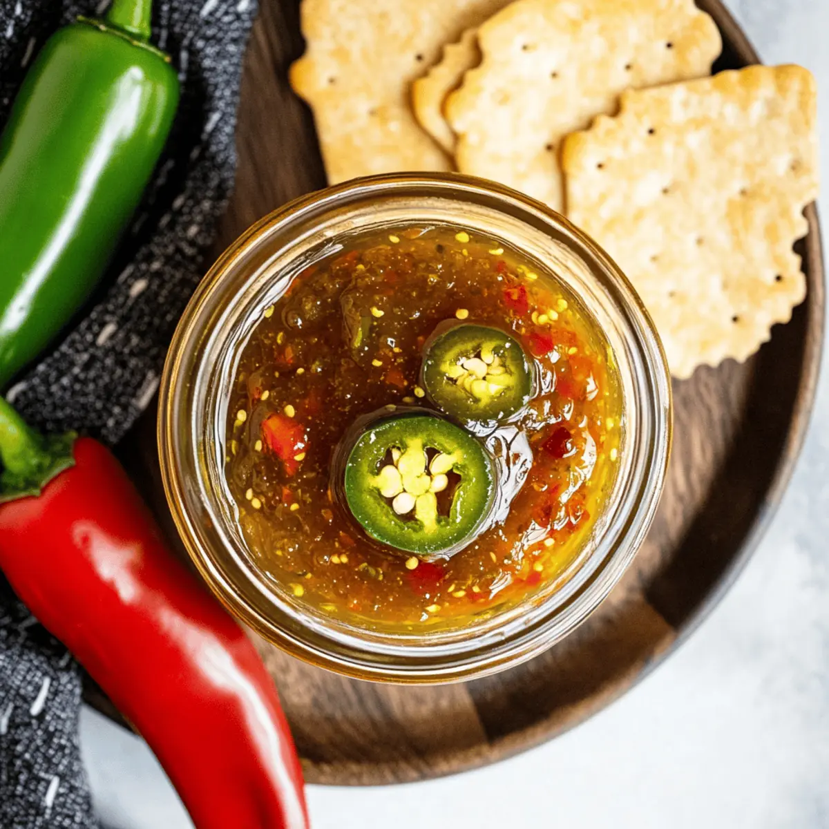 Stepping into my kitchen with a handful of fresh jalapenos, I felt that familiar rush of inspiration. The thought of transforming those vibrant green beauties into a jar of homemade Jalapeno Jam ignited my imagination. This classic sweet and spicy jam not only strikes a perfect balance of flavors but also elevates any meal with its delightful kick. What I love most is how easy it is to whip up, making it an effortless addition to my culinary repertoire. Whether you’re spreading it on a savory burger or pairing it with cheese and crackers for a gathering, this velvety condiment makes for an impressive homemade treat. Plus, with the ability to customize the heat level, every batch can be uniquely yours. Ready to impress your friends and family with this bold creation? Let’s dive in! Why is Jalapeno Jam a Must-Try? Irresistible sweetness: This jam harmoniously blends sweet and spicy flavors, making it the perfect condiment to elevate burgers, grilled meats, or cheese platters. Quick and easy: With a straightforward recipe, you can whip up this delightful treat in no time, impressing guests and family alike! Customizable heat: Tailor the heat by adjusting the jalapenos and bell peppers, ensuring each batch suits your taste—perfect for everyone! Gift-worthy: Homemade jalapeno jam is a thoughtful gift that stands out at any gathering; it’s a true crowd-pleaser. Explore other savory creations like homemade salsa to pair beautifully alongside your Jalapeno Jam! Jalapeno Jam Ingredients For the Jam Jalapenos – Fresh jalapenos provide the heat for the jalapeno jam; opt for unpickled for the best texture. Red Bell Pepper – This ingredient adds sweetness and color, balancing the heat from the jalapenos; you can use more bell pepper for a milder flavor. Apple Cider Vinegar – Necessary for its acidity, which preserves the jam; white vinegar can be used as a suitable substitute. Sure Jell Powdered Pectin – Essential for thickening the jam; make sure it’s fresh to achieve optimal results. Granulated Sugar – Sweetens the jam beautifully; for a healthier option, consider using sugar substitutes designed for making jam. Step‑by‑Step Instructions for Jalapeno Jam Step 1: Prepare the Peppers Begin by washing 8–10 fresh jalapenos and 1 large red bell pepper under cool running water. Pat them dry with a clean towel. Cut off the stems and slice the peppers in half, removing the seeds if you prefer less heat. Chop them into large chunks to prepare for the next step—these vibrant peppers will shape your delicious jalapeno jam. Step 2: Mince the Peppers Next, place the chopped jalapenos and red bell pepper into a food processor. Pulse until finely minced, ensuring you have a homogeneous mixture that yields about 4 cups in total. This stage is crucial, as the consistency of your jalapeno jam depends on how well you mince the peppers, so take care to achieve a fine texture. Step 3: Combine Ingredients In a large, heavy-bottomed pot, combine the minced peppers with 1 cup of apple cider vinegar and 5 cups of granulated sugar. Use a wooden spoon to stir the mixture until everything is well combined. This will create a colorful, aromatic base for your jalapeno jam, prepping it for the cooking process. Step 4: Bring to a Boil Set the pot over medium-high heat and stir continuously as the mixture comes to a boil. Once it reaches a rolling boil, reduce the heat to medium-low and let it simmer for about 10 minutes. Keep an eye on the jam, ensuring it thickens slightly while stirring occasionally, allowing the flavors to meld beautifully. Step 5: Add Pectin After simmering, it’s time to add 1 package of Sure Jell powdered pectin to the pot. Stir well until the pectin is completely dissolved into the mixture. Return the pot to medium-high heat and bring it back to a rolling boil for 1–2 minutes, stirring constantly to prevent burning at the bottom—this is where your jalapeno jam gets its desirable thickness! Step 6: Test for Thickness To check the consistency of your jalapeno jam, perform a gel test. Place a spoonful of the jam on a chilled plate and tilt it. If it holds its shape without running, it’s ready to be jarred. If it’s still too runny, boil it for an additional minute, testing again until you achieve the desired gel-like thickness. Step 7: Jar and Cool Remove the pot from heat and carefully pour the hot jalapeno jam into sterilized jars, leaving about 1/4 inch of headspace. Use a funnel for a clean pour, and wipe the rims of the jars to ensure a proper seal. Allow the jars to cool to room temperature before refrigerating, which will help preserve that delightful sweet and spicy flavor. What to Serve with Classic Sweet and Spicy Jalapeno Jam Transform your dining experience with delightful pairings that elevate the sweet and spicy notes of your homemade jam. Creamy Soft Cheese: The rich, velvety texture pairs beautifully with the kick of jalapeno, creating a balanced bite. Serve it on a charcuterie board for an elegant touch. Grilled Chicken Tacos: Use jalapeno jam as a zingy topping for grilled chicken tacos, adding a vibrant twist that complements the savory flavors perfectly. Savory Crackers: These crunchy delights provide a satisfying contrast to the smooth jam, making them an excellent vehicle for dipping or spreading. Honey-Glazed Roasted Vegetables: The sweetness of honey-roasted veggies pairs wonderfully with the spicy-sweet jalapeno jam, enhancing both flavors in a stunning side dish. Pulled Pork Sandwiches: Slather jalapeno jam on pulled pork sandwiches for a punch of flavor that cuts through the richness of the meat—your guests will rave about it! Charred Corn on the Cob: Brush roasted corn with jalapeno jam for a burst of sweetness and spice that elevates this summer classic to new heights. Chilled Sauvignon Blanc: This crisp, refreshing wine complements the heat of jalapenos, offering a delightful contrast that enhances your dining experience. Zesty Fruit Salad: T