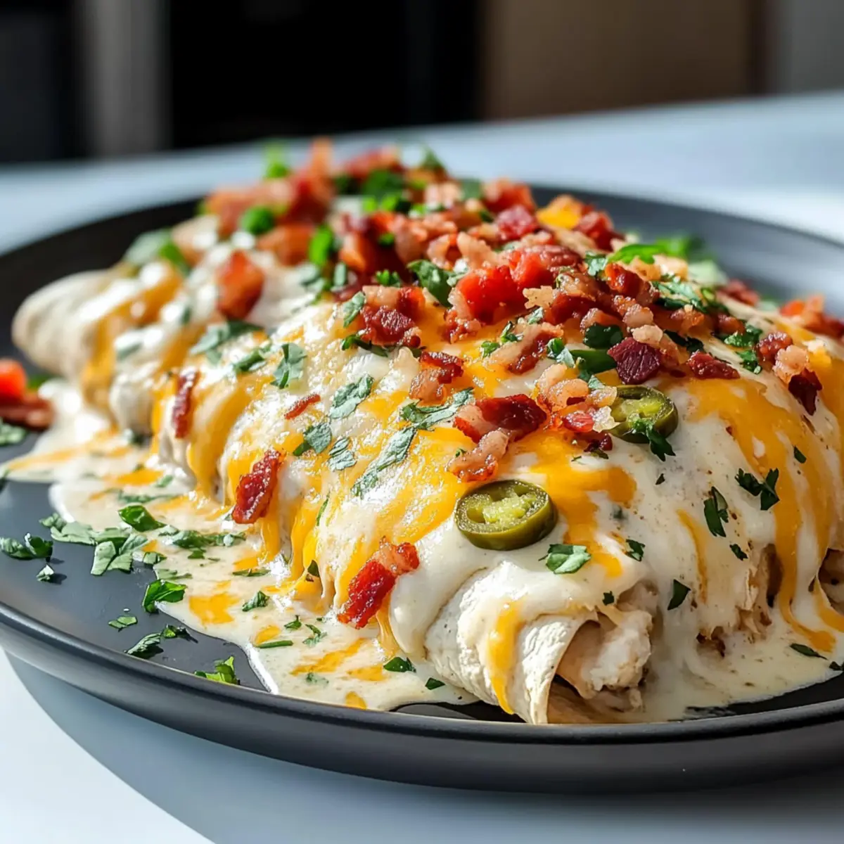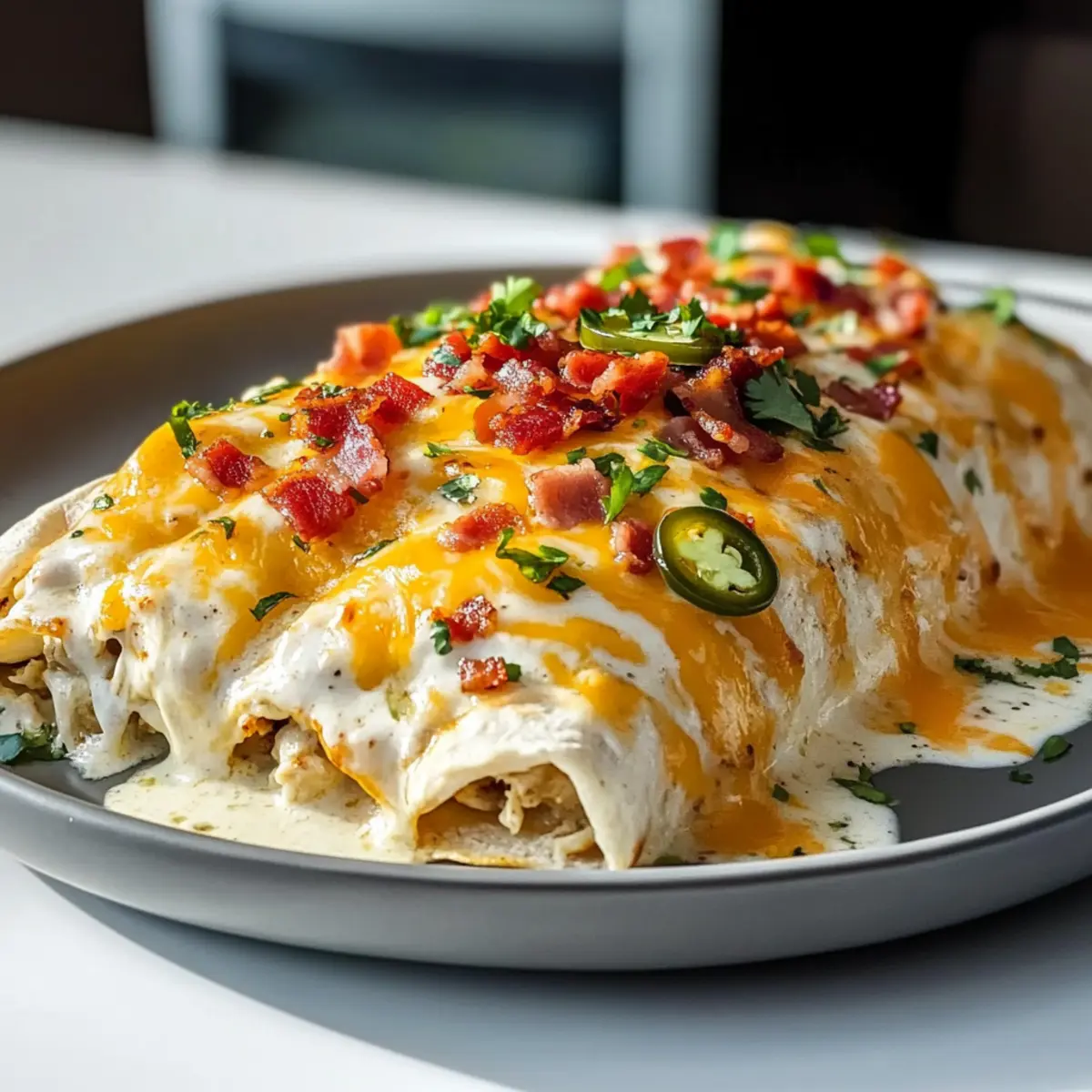 You wouldn’t believe how a simple weeknight dinner can turn into a crowd-pleasing fiesta! My Jalapeño Popper Cheesy Chicken Enchiladas are the ultimate comfort food, blending the bold flavors of Tex-Mex with the creamy indulgence of a classic popper. These customizable beauties come together quickly, making them a lifesaver on busy evenings or a hit at gatherings. Picture soft tortillas wrapped around savory shredded chicken, spicy jalapeños, and rich cheese, all smothered in a velvety cheese sauce. The smoky crunch from bacon adds a delightful twist that keeps everyone coming back for seconds. Are you ready to dive into this cheesy delight and discover how easy it is to impress your loved ones? Why Are These Enchiladas So Special? Creamy Indulgence: The rich combination of cream cheese and melted cheddar creates an irresistible, velvety sauce that coats each enchilada beautifully. Spicy Kick: Jalapeños give just the right amount of heat, perfect for those who love a flavorful bite! Customizable: Feel free to swap chicken for shredded beef or even add in your favorite veggies for added freshness and color. Time-Saver: These enchiladas can be prepped ahead of time, making them ideal for busy weeknights or impromptu gatherings. Consider serving with some Garlic Parmesan Chicken on the side for a satisfying meal! Crowd-Pleaser: Whether it’s a family dinner or a potluck, these enchiladas are sure to be a hit that keeps everyone smiling and satisfied. Jalapeño Popper Cheesy Chicken Enchiladas Ingredients For the Filling Shredded Chicken – Provides protein and substance; rotisserie chicken makes it quick and easy. Flour Tortillas – Soft wraps that hold everything together; corn tortillas can be used if softened properly. Cream Cheese – Adds creaminess and richness; opt for full-fat for the best texture. Shredded Cheddar Cheese – Offers sharpness and tang; freshly grated melts more evenly. Shredded Monterey Jack Cheese – Delivers a mild, creamy texture; you can use more cheddar as a substitute. Jalapeños – Adds heat and flavor; deseed for a milder taste if preferred. Bacon – Introduces a delicious smoky crunch; turkey bacon is a leaner alternative. For the Cheese Sauce Butter – Acts as the base for the cheese sauce; olive oil can be substituted for a lighter version. Flour – Thickens the sauce; cornstarch works as a gluten-free alternative. Milk – Creates that creamy texture; almond or oat milk can be used for a dairy-free option. Garlic Powder – Enhances the overall flavor; fresh minced garlic can serve as a fresher alternative. Onion Powder – Adds savoriness; finely chopped onions also work well. Salt and Pepper – Season to taste; adjust based on your personal preference. For Garnishing Fresh Cilantro – Adds a burst of freshness; feel free to adjust the amount based on your taste. Tomatoes – Provides color and a hint of sweetness; diced or sliced works perfectly. Green Onions – Finely chopped for that extra crunch and flavor boost. Now that you have all the components ready, let’s bring the joy of making Jalapeño Popper Cheesy Chicken Enchiladas to life! Step‑by‑Step Instructions for Jalapeño Popper Cheesy Chicken Enchiladas Step 1: Preheat the Oven Begin by preheating your oven to 350°F (175°C). Grease a 9×13-inch baking dish with non-stick spray or a light coating of butter, ensuring that the tortillas won’t stick as they bake. This will create a perfect vessel for your scrumptious Jalapeño Popper Cheesy Chicken Enchiladas. Step 2: Prepare the Filling In a large mixing bowl, combine shredded chicken, cream cheese, 1 cup each of shredded cheddar and Monterey Jack cheeses, diced jalapeños, and half of the crumbled bacon. Use a fork to mix thoroughly until the ingredients are creamy and well-blended, resulting in a rich and flavorful filling that will elevate your enchiladas. Step 3: Assemble the Enchiladas Take a flour tortilla and spoon about two to three tablespoons of the chicken mixture onto the center. Roll it tightly and place the seam-side down in the greased baking dish. Continue this process until all tortillas are filled and arranged side by side in the dish, ensuring they are snug but not overly packed. Step 4: Make the Cheese Sauce In a medium saucepan, melt 4 tablespoons of butter over medium heat. Once melted, add 4 tablespoons of flour, whisking continuously for about 1-2 minutes until it forms a roux. Gradually whisk in 2 cups of milk until the sauce thickens and bubbles, showing that it’s ready for the cheese to melt. Step 5: Add Cheese to the Sauce Remove the saucepan from heat and stir in the remaining shredded cheddar and Monterey Jack cheeses, garlic powder, onion powder, salt, and pepper. Mix until the cheese is completely melted and the sauce is smooth. This creamy sauce will envelop your jalapeño popper enchiladas with cheesy goodness. Step 6: Pour Sauce Over Enchiladas Carefully pour the cheese sauce evenly over the rolled enchiladas in the baking dish, ensuring that every inch is covered. Sprinkle the remaining crumbled bacon on top, along with any leftover cheese, creating a delectable layer that will melt beautifully in the oven. Step 7: Bake to Perfection Place the baking dish in the preheated oven and bake for about 25 minutes, or until the cheese sauce is bubbly and the top is golden brown. As the enchiladas bake, the aroma will fill your kitchen, making it hard to resist an early taste! Step 8: Garnish and Serve Once baked, remove the enchiladas from the oven and let them sit for about 5 minutes. This resting time allows the cheese to set slightly. Serve warm, garnished with freshly chopped cilantro, diced tomatoes, and green onions to brighten up the flavors of your Jalapeño Popper Cheesy Chicken Enchiladas. Expert Tips for Jalapeño Popper Cheesy Chicken Enchiladas Advance Preparation: Assemble enchiladas up to 24 hours in advance, cover, refrigerate, and simply bake when ready to serve. Choosing Tor