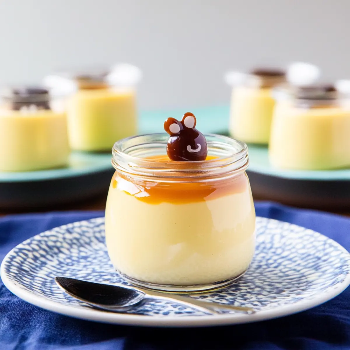 As I removed the silky custard from the fridge, a delightful aroma wafted through my kitchen, igniting a wave of nostalgia for my last trip to Japan. Today, I’m bringing a taste of that journey home with my Japanese Custard Pudding, or purin, a dessert that embodies simplicity and elegance in every bite. This creamy caramel custard is not only a make-ahead marvel, perfect for hosting dinner parties, but it also provides individual servings, making each guest feel extra special. With a beautiful balance between the rich caramel and the delicately sweet custard, even those who might typically shy away from caramel will find it irresistible. Ready to impress your loved ones with a dessert that’s sure to become a new favorite? Let’s dive into this deliciously classic recipe together! Why is Purin the Ultimate Dessert? Simplicity Meets Elegance: This Japanese Custard Pudding is incredibly easy to make, offering a delightful dish with minimal fuss. Silky Texture: The velvety custard, combined with the rich caramel, creates a mouthwatering contrast that melts in your mouth. Make-Ahead Marvel: Easily prepare this dessert up to three days in advance, ensuring you have more time to enjoy your dinner party. Gorgeous Presentation: Serving in individual jars not only looks appealing but also adds a personal touch to your gatherings. For another easy make-ahead treat, check out my delicious Cheese Banana Pudding. Japanese Custard Pudding Ingredients For the Caramel Sauce • Sugar – Sweetens and creates the signature caramel flavor; ensure careful heating to avoid burning. • Water – Helps in the caramelization process; add carefully to achieve the right consistency. For the Custard Pudding • Whole Milk – Acts as the main liquid base, bringing a creamy consistency to the pudding. • Heavy Cream – Infuses richness and smooth texture, making each bite indulgent. • Sugar – Enhances the sweetness of the custard; feel free to adjust according to your taste. • Whole Large Eggs – Important for structure, adding creaminess to the purin. • Large Egg Yolk – Increases richness and helps the custard set perfectly. • Vanilla Bean Paste/Extract – Adds a warm, aromatic complexity; use the paste for a more intense flavor boost. Experience the delight of making your own Japanese custard pudding, and watch how this light yet satisfying dessert steals the spotlight on your dinner table! Step‑by‑Step Instructions for Japanese Custard Pudding Step 1: Preheat and Prepare Begin by preheating your oven to 300°F (150°C). While the oven heats up, gather five 4-ounce glass jars or ramekins and place them in a baking dish. This is where your Japanese Custard Pudding will be baked. Make sure they’re clean and ready for the delicious custard that’s on its way! Step 2: Make the Caramel Sauce In a medium saucepan, combine 1 cup of sugar with 1 teaspoon of water over medium heat. Stir continuously until the sugar melts and transforms into a dark amber color, which should take about 5-8 minutes. Carefully add another teaspoon of water to the bubbling caramel to stop the cooking process, then swiftly divide the caramel into the prepared jars before it hardens. Step 3: Whisk the Egg Mixture In a separate mixing bowl, whisk together the whole large eggs and the egg yolk until frothy, which will take about 1-2 minutes. This rich egg mixture is essential for the creamy texture of your Japanese Custard Pudding. Set aside as you prepare the milk mixture that will soon enhance this creamy delight. Step 4: Heat the Milk and Cream In a saucepan over medium heat, combine 1 cup of whole milk and 1 cup of heavy cream with ¾ cup of sugar. Stir gently until the sugar is completely dissolved, which should take around 3-5 minutes. As it heats, allow the mixture to steam but don’t let it boil; you want it warm and ready to mix with the eggs. Step 5: Mix and Combine Gradually pour the warm milk mixture into the egg mixture while whisking continuously to prevent curdling. This step is crucial for achieving a silky texture in your custard. Once fully combined, stir in 1 tablespoon of vanilla bean paste or extract to add that hint of aromatic sweetness that rounds out the flavors beautifully. Step 6: Strain the Mixture To ensure your Japanese Custard Pudding is super smooth, strain the combined mixture through a fine-mesh sieve into a large measuring cup or bowl. This step removes any bubbles and ensures an even texture. Now, you’re ready to pour this velvety custard into the jars you prepared earlier. Step 7: Prepare the Water Bath Pour boiling water into the baking dish around the jars until it reaches halfway up the sides. This water bath will gently steam your custards in the oven, resulting in a perfectly set pudding. Carefully place the baking dish in the preheated oven, ensuring it remains steady and safe as you do so. Step 8: Bake to Perfection Allow your Japanese Custard Pudding to bake for 30-35 minutes. Check for doneness by gently shaking the jars; they should slightly jiggle in the center but appear puffed and set around the edges. Once done, carefully remove the baking dish from the oven, being cautious of the hot water. Step 9: Cool and Chill Let the custards cool at room temperature for about 15-20 minutes. After they’ve cooled, transfer the jars to the refrigerator and chill for at least 3 hours. This waiting period not only enhances the flavor but also allows the pudding to firm up just right for serving. Step 10: Serve Delightfully When ready to serve, gently run a knife around the edge of each custard to release it if needed, then invert onto a plate. The beautiful caramel sauce will flow over the top, creating a delightful presentation. Your Japanese Custard Pudding is now ready to impress your guests! Make Ahead Options Japanese Custard Pudding is a fantastic option for meal prep, allowing you to create a delightful dessert up to 3 days in advance. You can make the caramel sauce and p