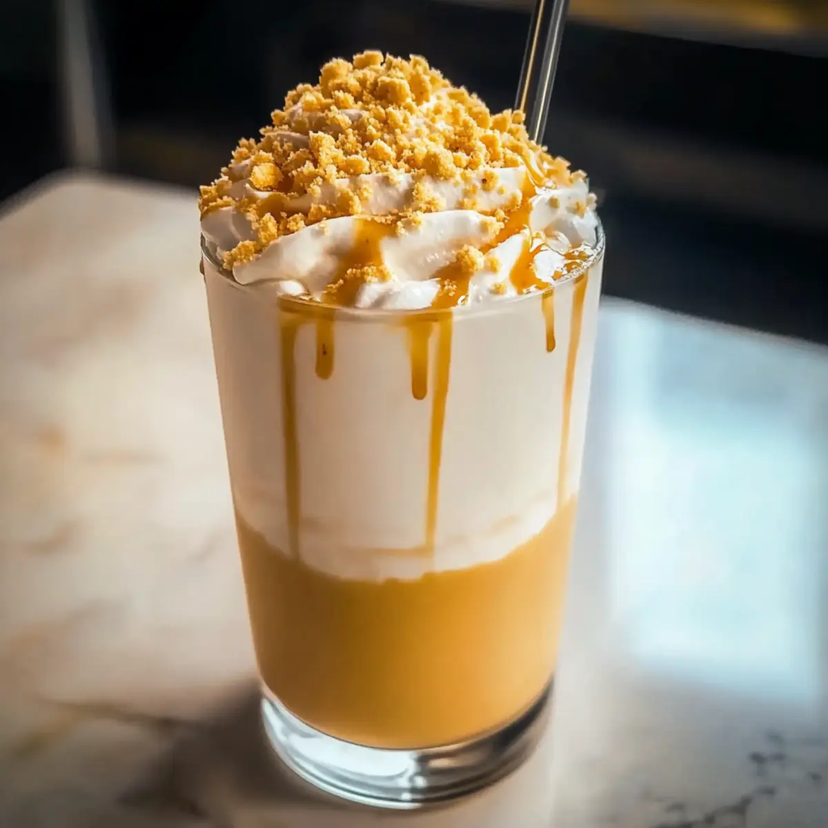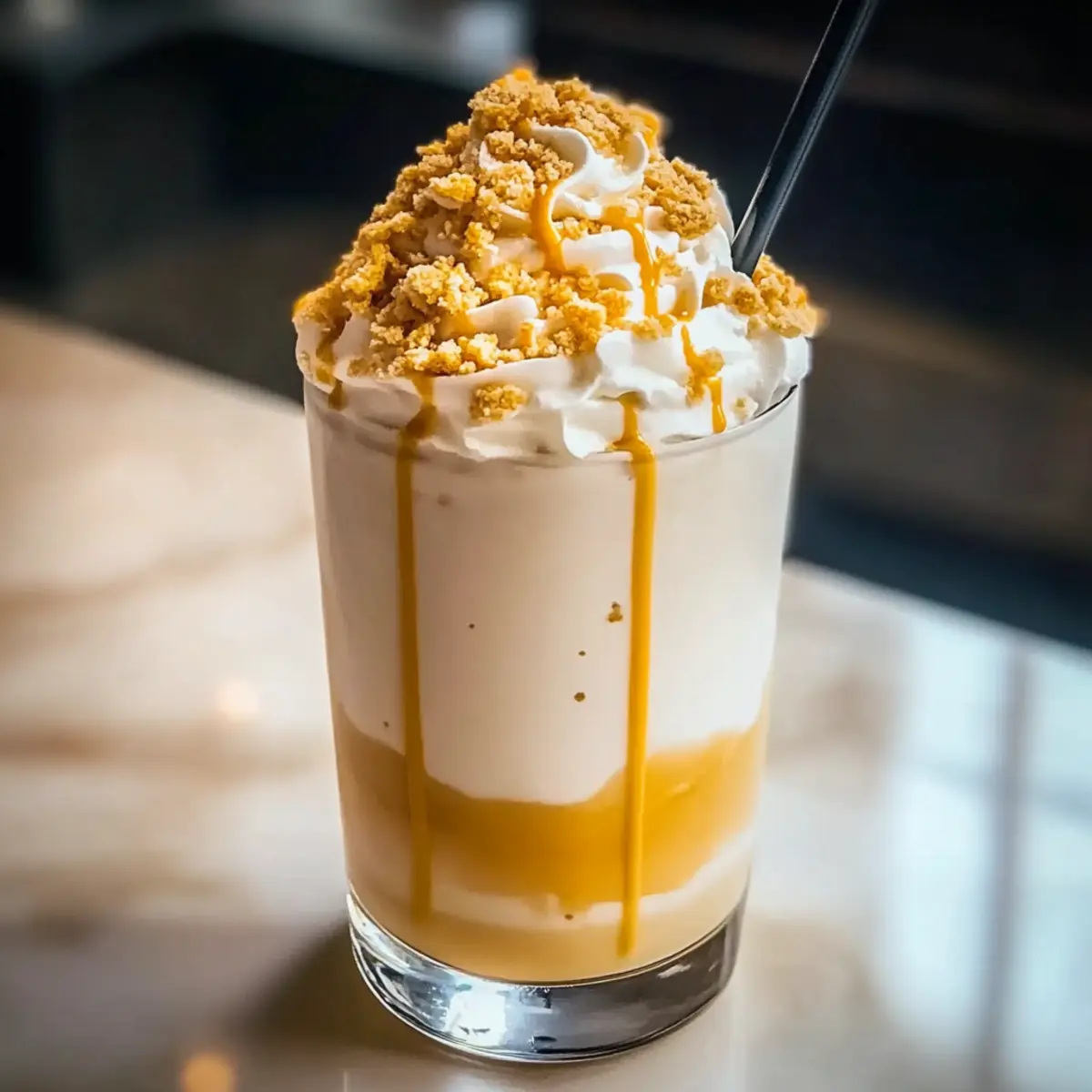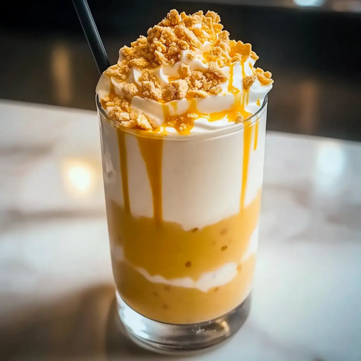 As I gazed out the window at the sun-drenched summer day, a thought danced in my mind—a refreshing break from the ordinary was calling. That’s when I decided to whip up my delightful Lemon Meringue Frappe. This quick and easy recipe captures the essence of summer, combining the creamy sweetness of vanilla milk with the zesty spark of lemon curd, all topped with a crunchy graham cracker finish. What I love most about this utterly refreshing summer drink is how it can be effortlessly customized; you can swap in almond milk for a dairy-free twist or even lime curd for a citrusy kick. Perfect for gatherings or simply enjoying on a lazy afternoon, this frappe will leave you feeling bright and satisfied. Want to know how to create this summer indulgence? Let’s dive into the fun! Why is this Frappe a Must-Try? Quick Preparation: Your summer refreshment is just five minutes away! Perfect for those who need an instant escape from the heat without fussing over complicated recipes. Creamy and Zesty: The combination of smooth vanilla milk and the tangy punch of lemon curd creates an exquisite balance that tantalizes your taste buds. Customizable Options: Want to cater to dietary preferences? Substitute almond milk for a creamy, dairy-free twist or use lime curd if you’re feeling adventurous. Crowd-Pleasing Treat: Impress your guests at gatherings with this delightful beverage that’s sure to become the star of your summer parties. Pair it with a light garden salad or a serving of Lemon Quinoa Chickpea for a complete meal! Unique Texture: Experience the joy of a slushy consistency topped with crunchy graham crackers—perfect for sip-and-chill moments! This refreshing drink will easily become a staple in your summer repertoire. Lemon Meringue Frappe Ingredients For the Base • Lemon Curd – Provides the essential sweet-tart flavor and creamy texture; use homemade for freshness or store-bought for convenience. • Vanilla Milk – Adds delightful creaminess and sweetness; almond milk can be used for a dairy-free option. • Crushed Ice – Creates the perfect slushy texture; ensure it’s finely crushed for optimal blending. For the Topping • Crushed Graham Crackers – Introduces a satisfying crunch on top; swap with crushed cookies for a gluten-free treat. Each ingredient plays a key role in building the refreshing, delicious experience of your Lemon Meringue Frappe, making it the perfect summer drink! Step‑by‑Step Instructions for Lemon Meringue Frappe Step 1: Blend the Base In a high-powered blender, combine 1 cup of lemon curd, 1 cup of vanilla milk (feel free to substitute with almond milk for a dairy-free option), and 2 cups of finely crushed ice. Blend on high for about 30 seconds, until the mixture is smooth and creamy. You’ll know it’s ready when it achieves a frosty texture, perfect for your refreshing Lemon Meringue Frappe. Step 2: Taste and Adjust Sweetness Once blended, taste the icy mixture to see if it meets your desired sweetness. If you’d like a little more sweetness, add 1-2 tablespoons of honey, and blend for another 10 seconds until fully incorporated. This step allows you to customize your Lemon Meringue Frappe based on your personal preference for sweetness, ensuring every sip is just right. Step 3: Serve the Frappe Carefully pour the blended Lemon Meringue Frappe into tall glasses, filling each about three-quarters full. This ensures there’s enough room for toppings and prevents any spills. The vibrant yellow color will be visually appealing, making your drink even more inviting for guests—perfect for a summer gathering or a sunny afternoon. Step 4: Add Toppings Generously sprinkle crushed graham crackers over each glass of your Lemon Meringue Frappe. The crunchy texture will complement the creamy base beautifully, adding a delightful contrast. Feel free to be generous with the graham crackers, as they create an exciting visual element and enhance the overall flavor of your refreshing drink. Step 5: Garnish Wisely For an extra touch of flavor and presentation, garnish each glass with a sprig of fresh mint or a twist of lemon peel. This step elevates the appearance of your Lemon Meringue Frappe, adding freshness and a pop of color that makes it look as fabulous as it tastes. Step 6: Enjoy Immediately Serve your Lemon Meringue Frappe right away to enjoy its deliciously frosty texture. This drink is best cold, so be sure to sip and savor it while it’s at its prime. The combination of creamy vanilla, bright lemon, and crunchy graham cracker will keep you refreshed and happy all summer long! How to Store and Freeze Lemon Meringue Frappe Refrigerator: Store any leftover Lemon Meringue Frappe in an airtight container in the fridge for up to 2 hours. It’s best enjoyed fresh while still icy. Make-Ahead: You can prepare the lemon curd and vanilla milk base a day in advance. Just refrigerate them separately and blend with ice when you’re ready to enjoy. Freezing: Avoid freezing the finished frappe, as it may lose its smooth, refreshing consistency. Instead, blend leftover mixture with ice for a new iced drink experience. Serving Fresh: For the best taste and texture, serve immediately after blending. The longer it sits, the less slushy it becomes! What to Serve with Lemon Meringue Frappe The perfect summer drink deserves equally delightful companions to complete the experience! Seasonal Fruit Salad: A colorful mix of juicy melons and berries enhances the refreshing qualities of the frappe, adding natural sweetness and vibrant brightness. Coconut Macaroons: Sweet, chewy macaroons offer a tropical touch that wonderfully complements the zesty lemon flavor, making them a delightful sweet treat alongside your frappe. Grilled Chicken Skewers: Tender chicken marinated in citrusy herbs pairs excellently with the creamy and tart frappe, creating a satisfying balance between savory and sweet. Light Garden Salad: Crisp greens and a citrus vinaigrette bring in fresh, 