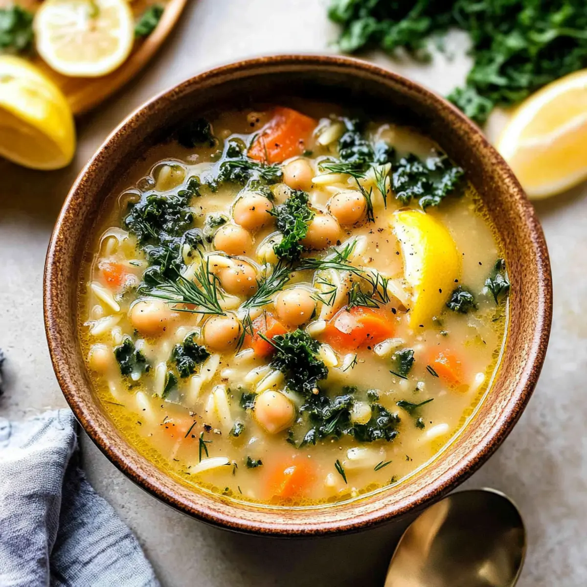 Amid the hustle and bustle of life, there’s nothing quite like the soothing ritual of cooking to bring a sense of calm and joy. Today, I’m excited to share my Lemony Greek Chickpea Soup—a vibrant, Avgolemono-inspired dish that beautifully marries quick preparation with wholesome ingredients. Packed with protein from chickpeas and enriched with the fresh flavors of lemon and dill, this vegetarian soup is not only a comfort on busy days but also an incredibly satisfying meal. In just over 30 minutes, you can serve a warm bowl of this silky broth full of colorful vegetables and orzo, perfect for a cozy night in or a nourishing lunch. Ready to elevate your soup game and embrace the delightful union of taste and nutrition? Let’s dive in! Why is Lemony Greek Chickpea Soup special? Ease of Preparation: This quick recipe allows you to whip up a delightful meal in just over 30 minutes. Perfect for those hectic days! Bright and Refreshing Flavor: The zesty lemon and fragrant dill transform humble ingredients into a refreshing, flavorful dish. Protein-Packed Goodness: With chickpeas as the star, this soup delivers a satisfying boost of plant-based protein. Versatile Ingredients: Feel free to make it your own! You can swap chickpeas for cannellini beans or add your favorite greens like spinach or Swiss Chard. Crowd-Pleasing Comfort: Whether served as a cozy lunch or dinner, this soup warms the soul and heart, making it a favorite for everyone at the table. Add a side of crusty bread and enjoy a complete meal! Lemony Greek Chickpea Soup Ingredients • A delightful mix for your cozy bowl! For the Soup Base • Extra-virgin olive oil – Adds healthy fat and richness; can substitute with avocado oil. • Finely chopped onion (1.5 cups) – Provides a base flavor; white or red onions may be used. • Finely chopped carrots (3/4 cup) – Adds sweetness and color; substitute with parsnips if desired. • Finely chopped celery (1/2 cup) – Contributes to the mirepoix base flavor; no substitutions necessary unless preferred. • Lemon peel (2 strips, 2-inch) and fresh lemon juice (1/4 cup) – Offers bright acidity; use fresh lemon for the best flavor. • Minced garlic (4 cloves) – Enhances aroma and depth; adjust to taste. • Lower-sodium vegetable broth (2 quarts) – Forms the soup base; can use chicken broth for a non-vegetarian variation. • Canned chickpeas (2 cans, 15.5 oz each) – Provides protein and texture; rinse and drain before use. • Dry orzo pasta (3/4 cup) – Adds heartiness; whole wheat or gluten-free orzo can be used as alternatives. • Kosher salt (1 tsp) and black pepper (1 tsp) – Season to taste; adjust based on broth’s saltiness. • Dried oregano (1 tsp) – Offers herbal flavor; can replace with Italian seasoning. For the Creamy Enrichment • Whole eggs (2) and egg yolks (2) – For thickening and richness; can substitute with silken tofu for a vegan version. For the Greens • Chopped kale (3 handfuls) – Adds nutrition and texture; can substitute spinach or Swiss Chard. • Chopped fresh dill (2 Tbsp) – For additional herbaceous flavor; fresh parsley is a good alternative. This hearty Lemony Greek Chickpea Soup is guaranteed to be a hit with your family and friends, combining bright flavors and wholesome nutrients in every warm bowl! Step‑by‑Step Instructions for Lemony Greek Chickpea Soup Step 1: Sauté the Vegetables In a large Dutch oven, heat 2 tablespoons of extra-virgin olive oil over medium heat. Add 1.5 cups of finely chopped onion, 3/4 cup of finely chopped carrots, and 1/2 cup of finely chopped celery. Sauté for about 10 minutes, stirring occasionally, until the vegetables are softened and fragrant, and the onions become translucent. This creates a flavorful base for your Lemony Greek Chickpea Soup. Step 2: Add Aromatics Increase the flavor profile by stirring in 4 minced garlic cloves. Cook for an additional minute until the garlic becomes aromatic and starts to lightly brown. This step enhances the overall depth of the soup, making it even more inviting. The kitchen will begin to smell delightful, foreshadowing the deliciousness to come. Step 3: Incorporate the Broth Pour in 2 quarts of lower-sodium vegetable broth, raising the heat to bring the mixture to a boil. Once boiling, stir in 2 cans of rinsed chickpeas, 3/4 cup of dry orzo, 1 teaspoon of kosher salt, 1 teaspoon of black pepper, and 1 teaspoon of dried oregano. Allow the soup to simmer for about 10 minutes, until the orzo is cooked al dente, absorbing the rich flavors of the broth. Step 4: Prepare the Egg Mixture Reduce the heat to low and reserve 3/4 cup of hot broth in a small bowl. In another bowl, whisk together 2 whole eggs, 2 egg yolks, and 1/4 cup of fresh lemon juice. Slowly incorporate the reserved hot broth into the egg mixture while whisking constantly. This step is vital to temper the eggs, preventing them from scrambling when added to the soup. Step 5: Combine and Thicken With the heat on low, stream the egg mixture back into the soup while stirring gently. The soup will begin to thicken as the eggs cook. Add in 3 handfuls of chopped kale, cooking for an additional 5 minutes, just until the greens have wilted and the soup reaches a silky consistency, showcasing the wholesome ingredients. Step 6: Final Touches Carefully remove the lemon peel strips from the soup. Stir in 2 tablespoons of chopped fresh dill and adjust the seasonings with more salt or pepper to taste. This final touch brightens the Lemony Greek Chickpea Soup and adds a fresh burst of flavor. Serve immediately, garnished with extra dill, a sprinkle of black pepper, and a drizzle of olive oil for an appealing presentation. What to Serve with Lemony Greek Chickpea Soup A comforting meal comes alive when you pair this vibrant soup with the right sides. Crusty Bread: Perfect for soaking up the savory broth, a warm baguette or sourdough adds delightful texture and rustic charm. Crisp Side Salad: A fresh sala