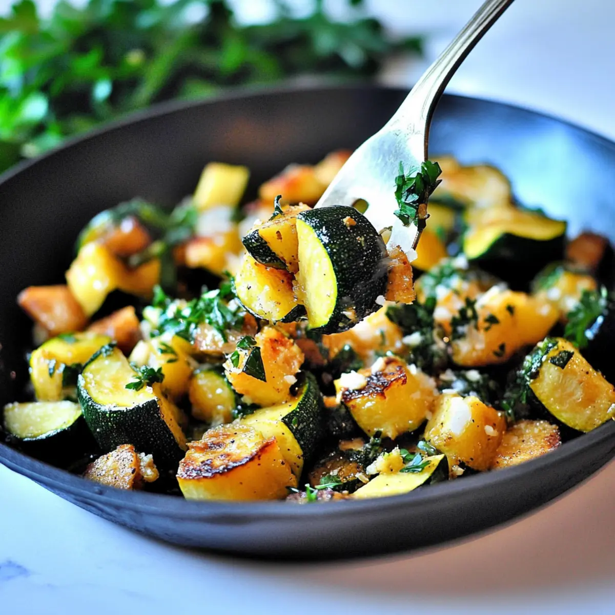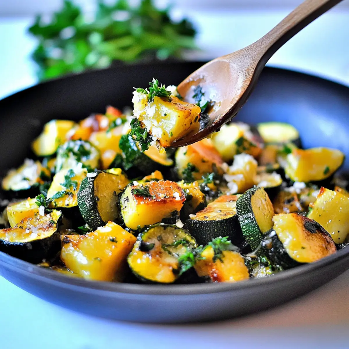 I once stumbled upon a beautiful farmers’ market bursting with vibrant zucchini and yellow squash, and I couldn’t resist bringing home a colorful bounty. It was there that I was inspired to create this Low Carb Garlic Butter Zucchini & Yellow Squash stir-fry, a dish that not only dazzles the eyes but also brings a healthy, quick twist to your dinner table. In just 10 minutes, you can whip up this tantalizing side that adds a fresh yet comforting element to any meal. With its satisfying crispiness and rich garlic aroma, this low-carb marvel has become my go-to for both family dinners and swanky gatherings alike. Curious to see how this dish can elevate your next meal? Let’s dive into the recipe! Why You’ll Love This Low Carb Dish Quick and Easy: Prepare this vibrant stir-fry in just 10 minutes—perfect for busy weeknights or spontaneous dinner guests! Flavor Explosion: The rich garlic butter blends beautifully with the zucchini and yellow squash, giving every bite a delightful twist. Healthy & Guilt-Free: With only 65 calories and 2 net carbs per serving, this dish aligns seamlessly with keto and Whole30 diets. Versatile Side: Pair it with grilled salmon or a creamy chicken dish like Garlic Parmesan Chicken for an unforgettable meal that feels indulgent yet nutritious. Crispy Goodness: Following the right cooking techniques ensures a crispy exterior while keeping the vegetables tender inside—a texture that will wow your taste buds! Colorful Presentation: The bright hues of zucchini and yellow squash make this stir-fry an eye-catching addition to any dinner table, elevating your dining experience effortlessly! Low Carb Garlic Butter Zucchini & Yellow Squash Ingredients For the Stir-Fry • Zucchini – The main vegetable that provides bulk and a mild flavor; feel free to swap in other summer squashes. • Yellow Squash – Complements zucchini with a slightly sweeter taste; can be substituted with extra zucchini or other squash varieties. • Olive Oil – Essential for sautéing, adding healthy fats; avocado oil is a suitable alternative for a different flavor profile. • Butter – Enhances flavor and helps achieve a crispy texture; ghee can be used for Whole30 compliance. • Minced Garlic – Delivers robust flavor and aroma; fresh garlic is best, but garlic powder can work if you’re in a pinch. • Salt & Pepper – Key seasonings to boost flavor; adjust to your taste, especially in consideration of dietary sodium restrictions. For Garnish • Fresh Parsley – Adds a pop of color and freshness; can be easily substituted with basil for a slightly different flavor. • Parmesan Cheese – Offers a delicious flavor boost; Asiago cheese is a great alternative for a bolder taste if desired. Experience the delightful simplicity of this Low Carb Garlic Butter Zucchini & Yellow Squash—your dinner table will thank you! Step‑by‑Step Instructions for Low Carb Garlic Butter Zucchini & Yellow Squash Step 1: Prepare the Vegetables Begin by washing the zucchini and yellow squash thoroughly. Cut both vegetables into quarters, ensuring uniform thickness for even cooking. As you chop, admire their vibrant colors—this is the foundation of your Low Carb Garlic Butter Zucchini & Yellow Squash stir-fry, which will showcase their freshness on your plate. Step 2: Heat the Oil In a large skillet, pour in about two tablespoons of olive oil and heat it over medium heat. Allow the oil to warm until it’s shimmering but not smoking, which usually takes about 1-2 minutes. This step is crucial for achieving that lovely sautéed flavor and glossy finish that makes your vegetables enticing. Step 3: Start Cooking the Squash Once the oil is hot, carefully add the chopped zucchini and yellow squash to the skillet. Spread them out in a single layer for better browning and cook undisturbed for about 3 minutes. Resist the urge to stir too much; this will help develop those delicious crispy edges that are characteristic of a great stir-fry. Step 4: Brown the Vegetables Continue cooking the vegetables, stirring occasionally, until they are tender and slightly browned on all sides—approximately 5-7 more minutes. You’ll know they’re ready when they become fork-tender yet still retain a bit of crunch. Keep an eye on them to prevent overcooking and ensure that every bite of your Low Carb Garlic Butter Zucchini & Yellow Squash offers that delightful texture. Step 5: Add Flavor Boosters Once the squash is cooked to your liking, add in two tablespoons of butter, along with minced garlic, salt, and pepper. Sauté everything together for 1-2 minutes, allowing the butter to melt and the garlic to become fragrant. This step infuses your dish with savory richness and elevates the flavor profile of the Low Carb Garlic Butter Zucchini & Yellow Squash stir-fry wonderfully. Step 6: Garnish and Serve As the final step, remove the skillet from the heat and garnish your dish with a sprinkle of fresh parsley and optional grated Parmesan cheese. This enhances the dish’s visual appeal and adds an invigorating freshness. Serve immediately for an irresistibly tasty addition to your meal that everyone will love! What to Serve with Low Carb Garlic Butter Zucchini & Yellow Squash Add layers of flavor and texture to your meal with perfect pairings for this vibrant dish. Grilled Chicken: Juicy grilled chicken enhances the dish with protein and smoky flavors, creating a satisfying balance. Savory Quinoa Salad: This nutty, protein-packed salad complements the stir-fry’s fresh veggies, making for a wholesome and filling meal. Crispy Baked Fish: The light and flaky texture of baked fish provides a delicious contrast, making each bite a delightful experience. Creamy Mashed Cauliflower: A low-carb alternative to traditional mashed potatoes, this creamy side brings richness to the table while keeping it healthy. Roasted Red Peppers: Their sweet smokiness adds depth to your meal, enhancing the zucchini and yellow squash’s nat