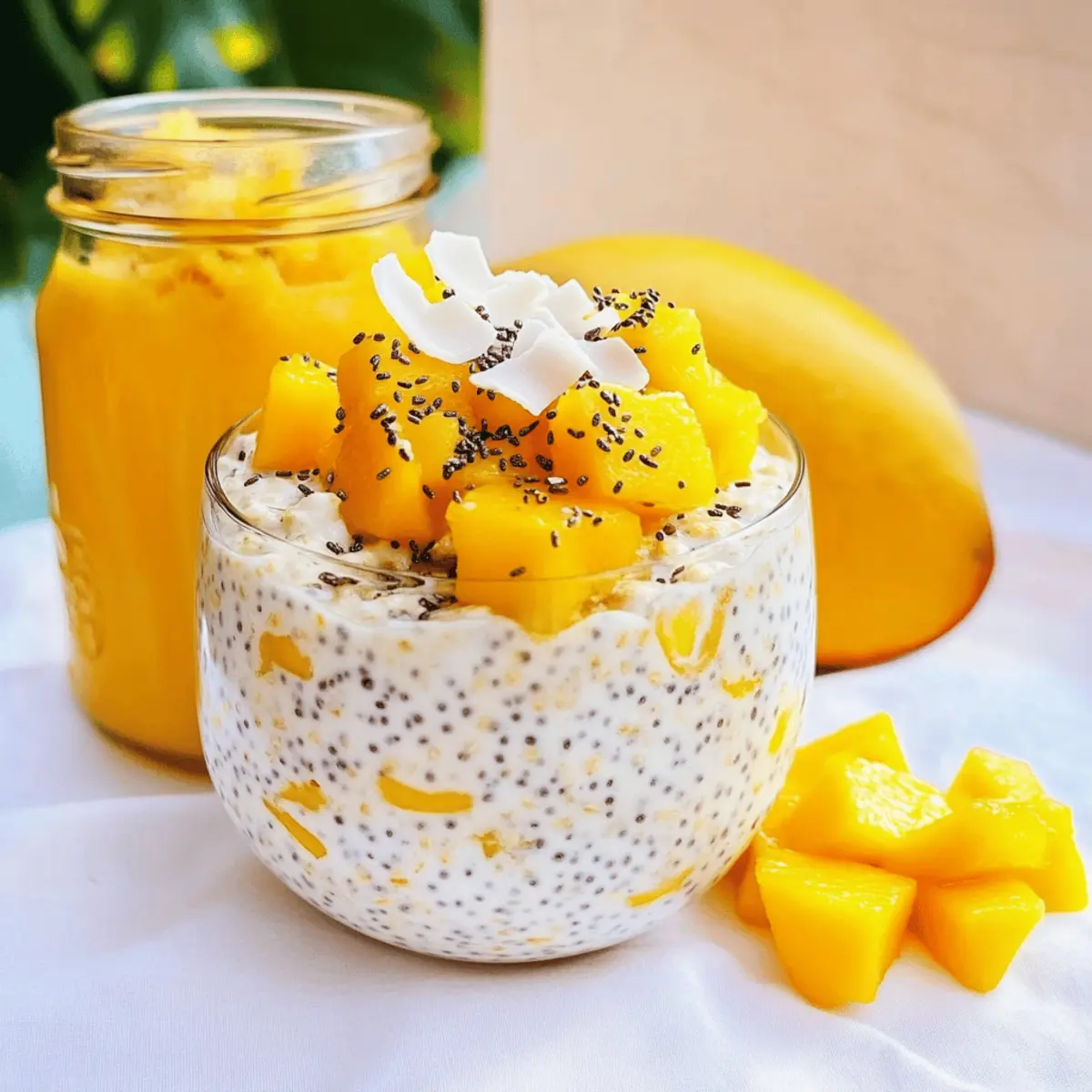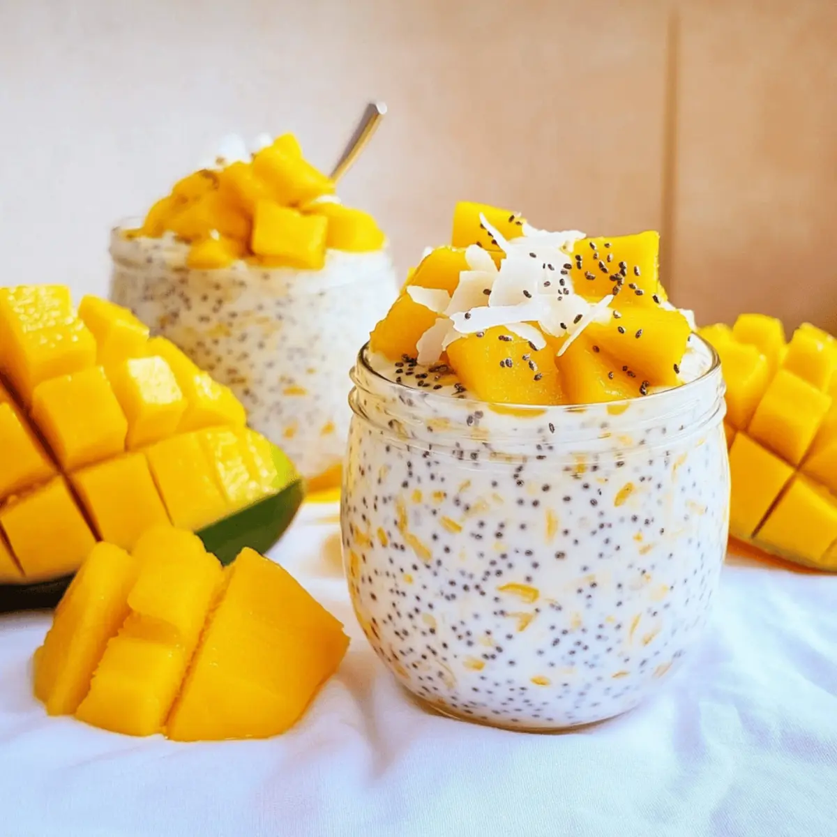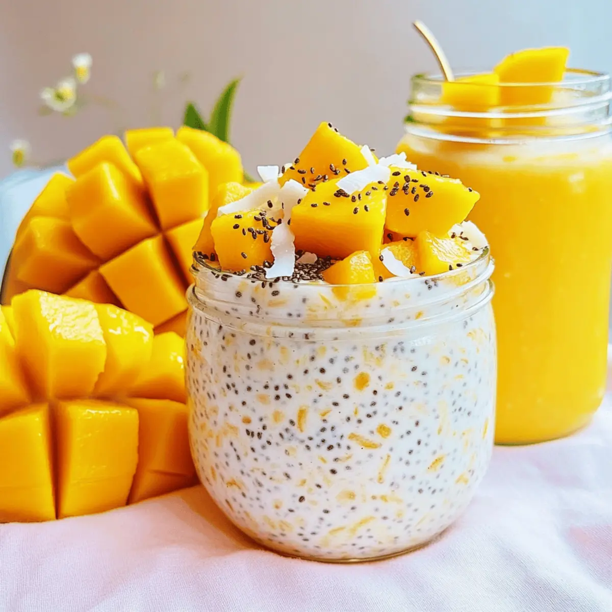 As I stood in my kitchen, the aroma of ripe mangoes wafting through the air sparked a vision of sun-soaked beaches and swaying palm trees. That’s the vibe I crave when making these mango coconut overnight oats. Not only are they a feast for your senses, but they also make busy mornings feel like a cherished escape with every bite. This gluten-free and cane sugar-free breakfast is not only a breeze to whip up—it’s also perfect for meal prep! Packed with protein, healthy fats, and fiber, these tropical oats will keep you satisfied and energized throughout your day. Ready to dive into a delightful morning routine? Let’s get started! Why do you need mango coconut overnight oats? Unmatched Flavor: These overnight oats blend creamy coconut and sweet mango, transporting your taste buds to a tropical paradise. Super Easy Prep: With no cooking required, you can prepare this delightful dish in minutes, making it an ideal choice for busy mornings. Healthy & Satisfying: Packed with protein and fiber, these gluten-free oats provide lasting energy without the guilt of traditional breakfasts. Versatile Ingredients: Get creative! Swap ingredients like nuts or different fruits to match your taste or nutritional needs. Think of adding some crunchy nuts for texture or enjoying them with a refreshing drink like iced coconut matcha! Meal Prep Friendly: Make several servings ahead of time, allowing you to grab a healthy breakfast on your way out the door. Just perfect for those packed schedules! Mango Coconut Overnight Oats Ingredients For the Base Oats – The primary structure for your oats, offering a fiber boost. You can use gluten-free oats if needed. Coconut Milk – Acts as the creamy base; substitute with almond milk for a different flavor profile. Chia Seeds – These tiny seeds thicken the mixture and add omega-3 fats; flax seeds can be used as a substitute if necessary. For the Tropical Mix Mango – Adds natural sweetness and tropical essence; both fresh and frozen work beautifully. Shredded Coconut – Enhances the tropical theme with a chewy texture; unsweetened coconut can be used for less sweetness. Greek Yogurt – Provides creaminess and protein; opt for dairy-free yogurt for a vegan version. For Sweetness Pure Honey – Naturally sweetens the dish; for a vegan option, maple syrup or agave nectar makes a great substitute. Step‑by‑Step Instructions for mango coconut overnight oats Step 1: Combine Dry Ingredients In a mixing bowl, combine 1 cup of oats, 2 tablespoons of chia seeds, and ¼ cup of shredded coconut. Stir the ingredients together using a spoon until they are evenly mixed. Ensure there are no clumps, as this helps create a uniform texture for the mango coconut overnight oats. This step only takes a couple of minutes! Step 2: Mix Wet Ingredients In a separate bowl, whisk together 1 cup of coconut milk, ½ cup of Greek yogurt, 2 tablespoons of honey, and 1 cup of diced mango. Use a fork or whisk to blend the mixture until smooth and creamy, ensuring the honey dissolves completely. This mixture will add a delightful tropical flavor to your oats, creating a satisfying breakfast experience. Step 3: Combine and Refrigerate Pour the wet mixture over the dry ingredients, and stir until everything is thoroughly combined and no dry oats remain. Use a silicone spatula to scrape down the sides of the bowl to ensure all ingredients are mixed. Divide the mixture into individual containers, seal them tightly, and place them in the refrigerator for at least 4 hours, preferably overnight to allow the flavors to meld beautifully. Step 4: Serve and Garnish In the morning, take the containers out of the refrigerator and give the mango coconut overnight oats a good stir to redistribute the ingredients. If the consistency is thicker than you prefer, add a splash of coconut milk to loosen it up. Feel free to top each serving with extra mango chunks, shredded coconut, or even a sprinkle of nuts for added texture before enjoying. Make Ahead Options These mango coconut overnight oats are perfect for meal prep! You can combine the dry ingredients (oats, chia seeds, and shredded coconut) up to 24 hours in advance, allowing you to save precious morning minutes. To ensure optimal flavor, mix the wet ingredients (coconut milk, Greek yogurt, honey, and mango) no more than 3 days ahead, as it keeps the mango fresh and prevents browning. Simply refrigerate each component separately, then when ready to serve, pour the wet mixture over the dry ingredients, stir well, and enjoy your delicious, tropical breakfast. This way, you’ll have a healthy, satisfying meal ready effortlessly on busy mornings! Mango Coconut Overnight Oats Variations Feel free to indulge your creativity and tailor these mango coconut overnight oats to fit your flavor preferences! Nutty Crunch: Add a handful of chopped nuts like almonds or walnuts for a satisfying texture boost. Creamy Fruit: Swap out the mango for sliced bananas or even pineapple for a new tropical twist and a different sweetness. Vegan Delight: Replace Greek yogurt with your favorite dairy-free yogurt and use maple syrup instead of honey for a fully vegan treat. Spiced Adventure: Incorporate a dash of cinnamon or nutmeg to warm up the flavors and take your taste buds on a cozy journey. Coconut Bliss: Amp up the coconut flavor by drizzling coconut cream on top or adding more shredded coconut for extra chewiness. Berry Medley: Mix in fresh or frozen berries like blueberries or raspberries for a tangy contrast that delights the palate. Chia Power: For even more texture and nutrition, incorporate an additional tablespoon of chia seeds to boost omega-3 goodness! Coffee Kick: Feel like a pick-me-up? Stir in a splash of cold brew coffee for a buzz that pairs beautifully with coconut and mango. These variations are not only a fun way to switch things up, but they also offer you a chance to enjoy a fresh experience with each batch! If you’re looking for something to complem