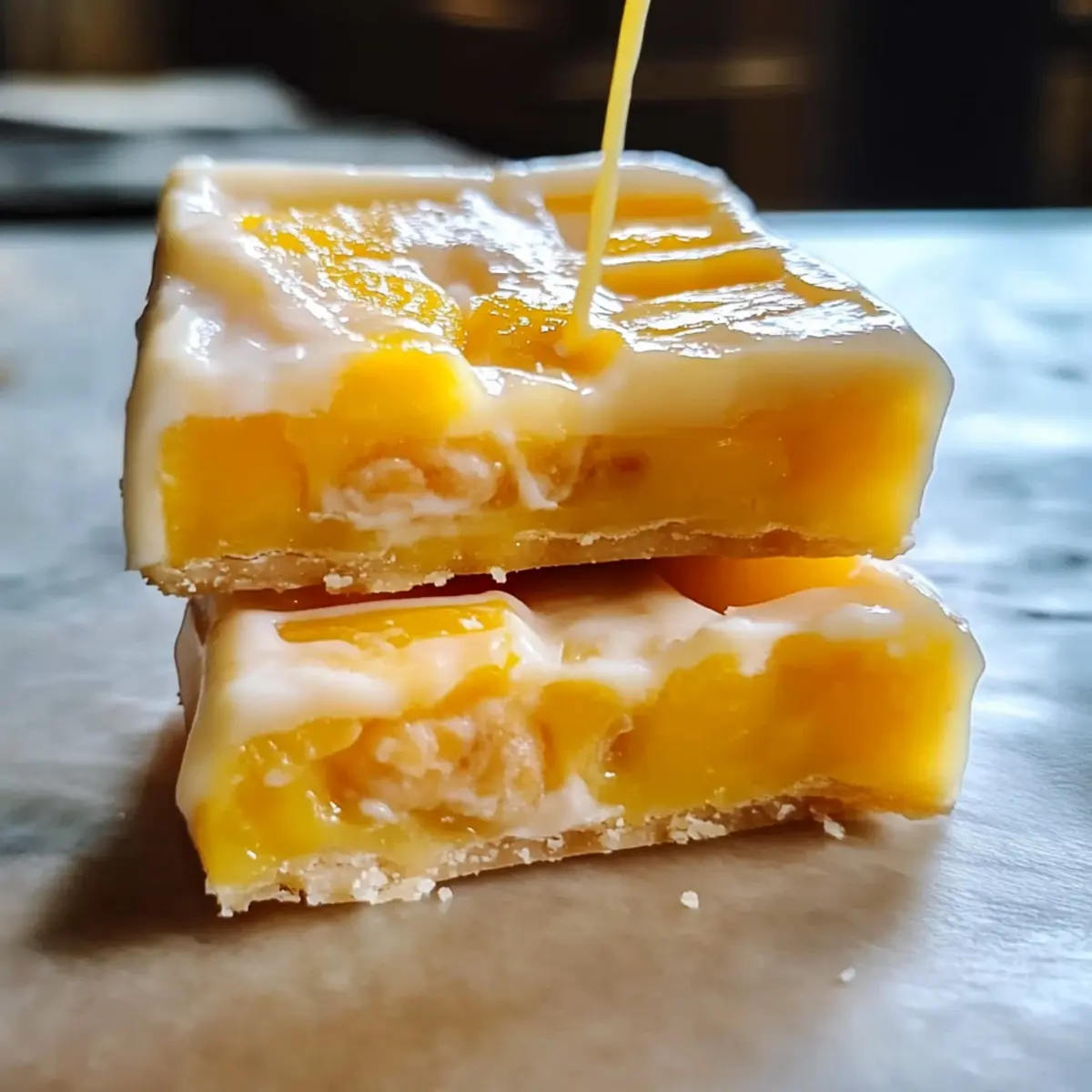 As I strolled through a local farmer’s market, a vibrant display of mangoes caught my eye, their golden hues promising a sweet escape from the mundane. That’s when the idea for Mango Dream Bars sparked in my mind—a tropical dessert that perfectly melds a buttery crust with a creamy filling for that refreshing burst of summertime joy. What I love most about these easy-to-make bars is how they embrace customization; whether you stick to the classic recipe or mix in some exotic fruit purees, they’re always a crowd-pleaser. Plus, with minimal prep time, you’ll have a delightful homemade dessert ready to impress your family or friends. So, who’s ready to dive into this stunning tropical indulgence? Why are Mango Dream Bars so irresistible? Bursting with flavor: The combination of smooth mango and buttery crust creates an explosion of taste with every bite. Customizable Delight: Feel free to experiment with different fruit purees or a hint of spice for a uniquely personal touch. Easy to Prepare: With minimal prep time, you’ll have a standout dessert without the hassle. Perfect for Sharing: These bars are a delightful crowd-pleaser, making them perfect for gatherings or casual get-togethers. Refreshing Treat: Light and zesty, they offer a great alternative to heavy desserts, leaving you feeling satisfied yet not weighed down. Enjoy them chilled by themselves, or serve alongside tropical drinks, like piña coladas, for an unforgettable sun-kissed experience! Mango Dream Bars Ingredients For the Crust • All-Purpose Flour – Provides structure for the crust; use gluten-free flour for a gluten-free option. • Unsalted Butter – Adds richness and creaminess to both crust and filling; vegan butter can be substituted for a dairy-free version. • Granulated Sugar – Sweetens the crust and balances the mango’s tartness; consider brown sugar for a deeper flavor. • Salt – Enhances all flavors throughout the dessert. • Vanilla Extract – Boosts the overall flavor profile; opt for pure vanilla for the best taste. For the Filling • Mango Puree – The star ingredient that provides that luscious tropical flavor; fresh or frozen mangoes work well, but canned puree is an alternative. • Large Eggs – Binds the filling and contributes to its texture; for an egg-free option, try a flax egg or applesauce. • Cornstarch – Essential for setting the filling and achieving the right consistency; can be swapped with arrowroot powder. • Lemon Juice – Brightens the filling; lime juice can be used for a zesty twist. Optional Toppings • Shredded Coconut – Adds delightful texture and flavor on top; feel free to omit for a simpler finish. Get ready to whip up these Mango Dream Bars! They’re not just an easy dessert; they’re a perfect base for your creative flair. Step‑by‑Step Instructions for Mango Dream Bars Step 1: Preheat Your Oven Begin by preheating your oven to 350°F (175°C). While your oven heats, prepare an 8×8-inch square baking pan by greasing it lightly or lining it with parchment paper for easy removal later. This step is crucial as a well-prepped pan ensures that your Mango Dream Bars come out perfectly. Step 2: Create the Crust Dough In a mixing bowl, combine all-purpose flour, granulated sugar, and salt. Then, add the softened unsalted butter and vanilla extract. Using your fingers or a pastry cutter, blend these ingredients together until you achieve a crumbly texture that holds together when pressed. This crust serves as a flavorful foundation for your bars. Step 3: Press and Bake the Crust Transfer the crust mixture into the prepared baking pan, pressing it evenly across the bottom. Bake in the preheated oven for 12-15 minutes, or until the edges turn a golden brown. You’ll know it’s ready when you see the slight puff and the delightful aroma fills your kitchen. Once baked, let it cool slightly while you prepare the filling. Step 4: Prepare the Mango Filling In a saucepan over medium heat, combine the mango puree, granulated sugar, cornstarch, lemon juice, and a pinch of salt. Stir continuously for about 5-7 minutes until the mixture thickens and becomes slightly glossy. This luscious filling will bring the vibrant tropical flavor to your Mango Dream Bars, so make sure to keep an eye on it! Step 5: Mix in the Eggs and Vanilla Allow the mango mixture to cool for a few minutes to prevent cooking the eggs. Once it’s slightly warm, whisk in the large eggs and vanilla extract until the filling is smooth and well combined. This step is key for creating a creamy texture that perfectly complements the crisp crust beneath. Step 6: Bake the Filling Pour the mango filling over the cooled crust, spreading it evenly with a spatula. Return the pan to the oven and bake for another 20-25 minutes. The filling should be set and slightly golden on top, which indicates that your delicious Mango Dream Bars are nearly finished. Step 7: Cool and Chill Once baked, remove the Mango Dream Bars from the oven and let them cool completely at room temperature. For optimal texture, refrigerate the bars for 1-2 hours before slicing. This resting period allows the filling to set perfectly, making cutting into delightful bars a breeze. What to Serve with Mango Dream Bars Imagine wrapping up a sun-soaked afternoon with these tropical delights, treating your taste buds to a delightful burst of flavor. Tropical Fruit Salad: A mix of juicy fruits like pineapple, kiwi, and berries adds freshness, perfectly balancing the creamy bars. Piña Colada: This classic cocktail, with its coconut and pineapple flavors, enhances the tropical experience, transporting you straight to paradise. Coconut Whipped Cream: A light and fluffy topping provides a luscious complement to the bars, accentuating their creamy filling beautifully. Lemon Sorbet: The tangy flavor of sorbet contrasts wonderfully with the sweet bars, creating a refreshing palate cleanser between bites. Grilled Peaches: Sweet, carameliz