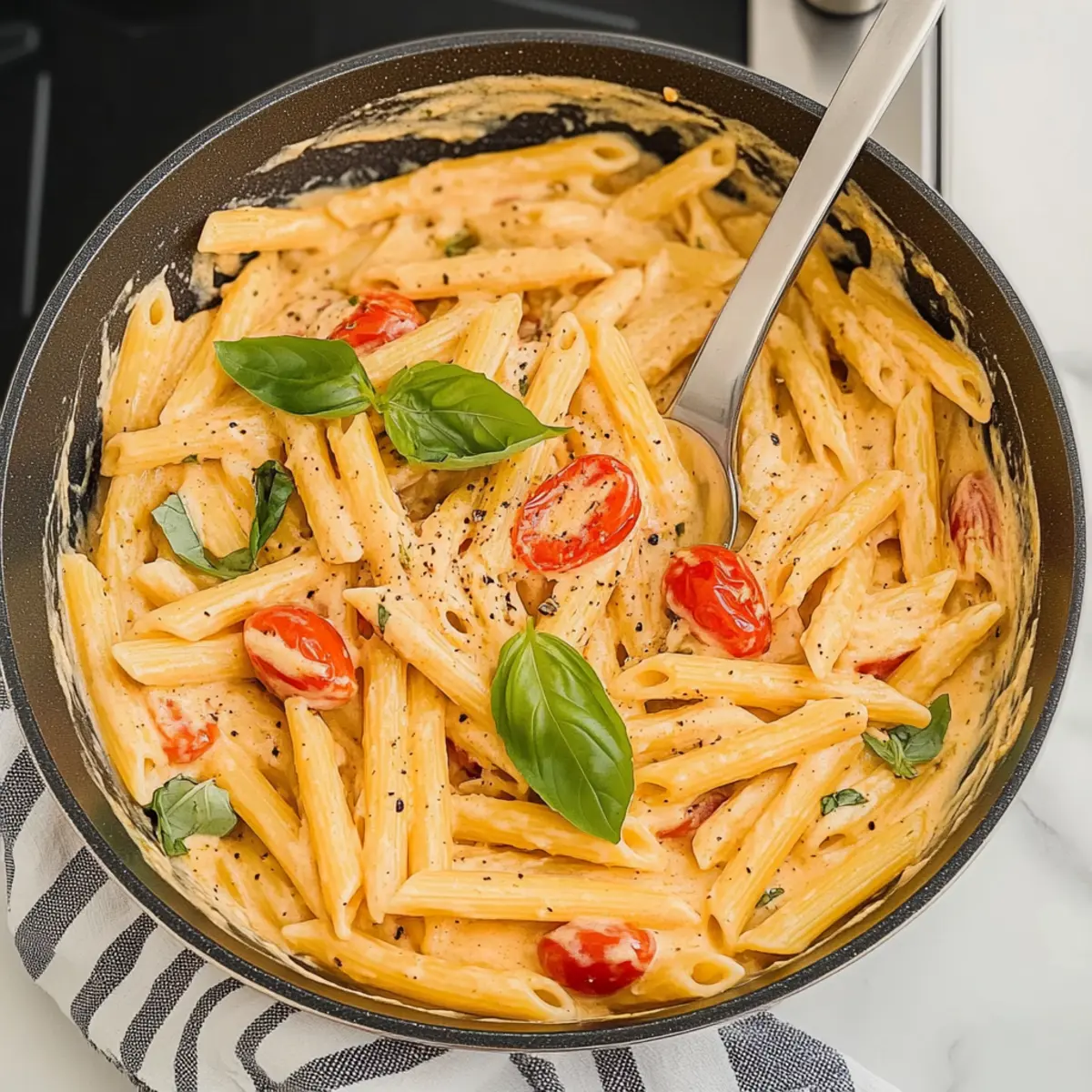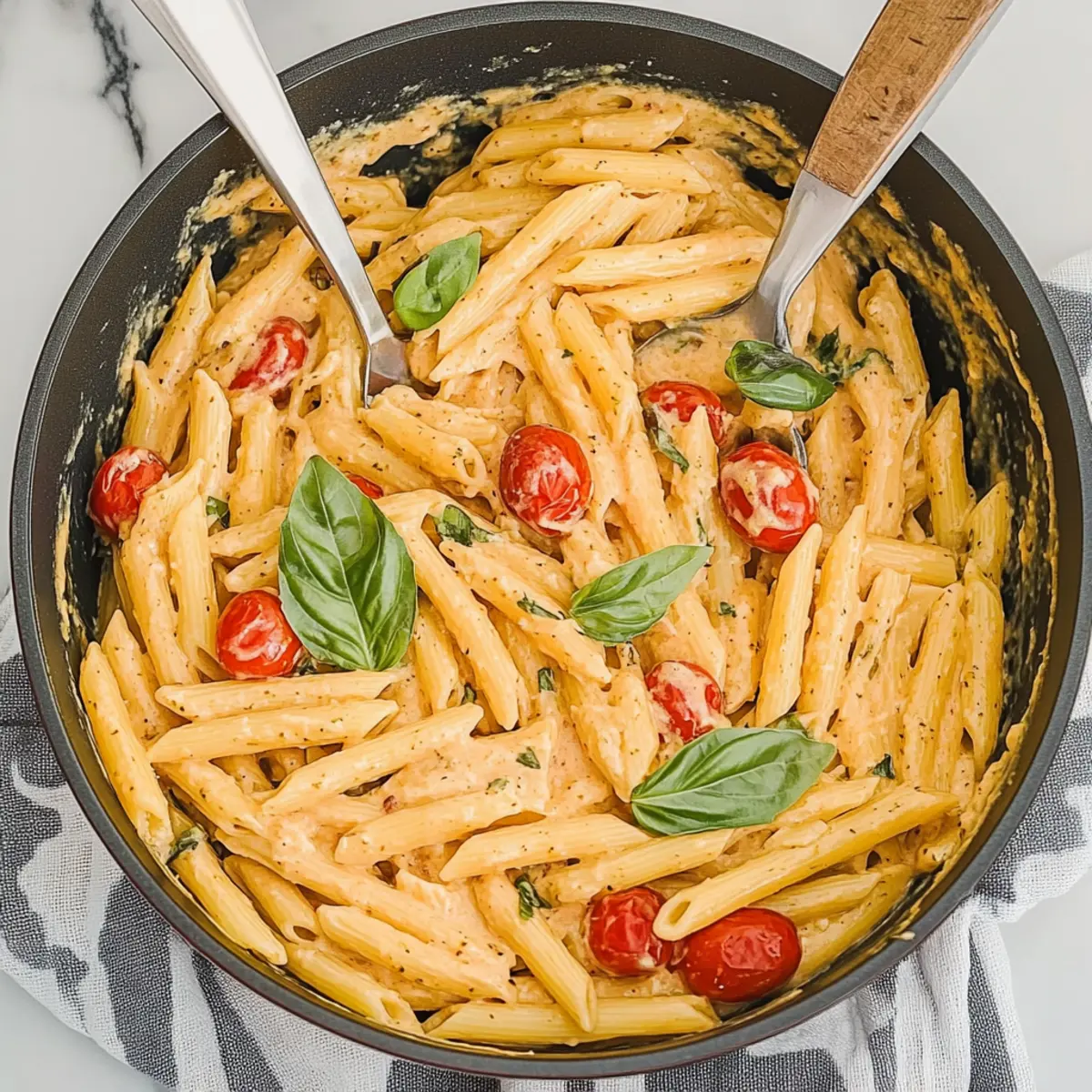As I stood in my kitchen, the enticing aroma of melting mascarpone wafted through the air, instantly whisking me away to a cozy trattoria in Italy. This Creamy Mascarpone Pasta with Cherry Tomatoes is my go-to dish for quick dinners that never compromise on flavor. In just 20 minutes, you can have a satisfying vegetarian meal that’s bursting with sweetness and comfort—perfect for busy weeknights when you crave something special without the fuss. The beauty of this creamy pasta is its versatility; it’s an ideal recipe for using up pantry staples while promising a bowlful of warmth for you and your loved ones. Curious about how to whip up this delightful dish that’s sure to impress? Keep reading! Why is Mascarpone Pasta so Special? Creamy Comfort: The mascarpone cheese forms a rich, velvety sauce that elevates your pasta experience to new levels of indulgence. Rapid Preparation: This delightful dinner can be ready in just 20 minutes, making it perfect for busy days when you need something quick yet satisfying. Versatile Ingredients: Feel free to mix and match with your pantry staples—whether swapping pasta shapes or tossing in seasonal veggies, this dish adapts to your needs. Crowd-Pleaser: It delights everyone at the table; whether you’re serving family or friends, count on rave reviews every time! Easy Variations: Want to switch it up? Check out my Chicken Fajita Pasta or Turkey Pasta with Peas for other quick and delicious ideas that can easily fit into your weeknight menus. Mascarpone Pasta Ingredients For the Pasta • Pasta – A foundational element; use your favorite shape like spaghetti or fettuccine to suit your taste. For the Sauce • Butter – Adds a layer of richness; opt for unsalted to maintain better control over seasoning. • Mascarpone cheese – The star of the dish, giving the sauce its creamy texture—substitute with cream cheese in a pinch if needed. • Cherry tomatoes – Bring freshness and sweetness; any ripe, juicy tomatoes will enhance the flavor. • Italian seasoning – A blend that elevates the overall taste; feel free to swap in any dried herbs you appreciate. • Red pepper flakes – For a touch of heat; reduce or omit for a milder flavor profile. • Garlic – Introduces aromatic depth; use fresh garlic for the best punch, as garlic powder won’t deliver the same results. • Salt and black pepper – Essential for flavor; season to taste and remember it’ll amplify the sauce. For Freshness • Fresh basil leaves – Adds a burst of aroma and color; dried basil is a fine alternative if fresh isn’t on hand. • Pasta water – This starch-rich water is vital for adjusting the creaminess of your sauce. • Basil oil (optional) – A delightful drizzle over the top for an extra flavor kick that brightens each bite. Step‑by‑Step Instructions for Creamy Mascarpone Pasta Step 1: Cook the Pasta Bring a large pot of salted water to a rolling boil over high heat. Add your chosen pasta and cook according to the package instructions until al dente, usually around 8-10 minutes. Remember to reserve ½ to ⅓ cup of the starchy pasta water before draining the pasta, which will help create a silky sauce later on. Step 2: Prepare the Sauce In a large skillet, melt two tablespoons of unsalted butter over medium heat. Once the butter is bubbling and fragrant, add in the sliced cherry tomatoes, gently seasoning with salt and pepper. Cook for about 5 minutes, stirring occasionally, until the tomatoes are soft and their juices are released, creating a flavorful base for your creamy mascarpone pasta. Step 3: Add the Aromatics Stir in the minced garlic and red pepper flakes to the skillet, cooking for an additional 30 seconds. You’ll want to enjoy the delightful aroma as the garlic softens but be cautious not to let it brown, as that can turn bitter. This boost of flavor will elevate your creamy sauce, making it irresistible for any home chef. Step 4: Incorporate the Cheeses Pour in the reserved pasta water to the skillet while stirring gently to combine all the flavors. Then mix in grated parmesan cheese, allowing it to melt and blend smoothly into the sauce. Finally, introduce the mascarpone cheese, stirring continuously until you achieve a luscious, creamy texture that envelops the tomatoes and garlic beautifully. Step 5: Combine and Serve Add your cooked pasta to the skillet, tossing gently to ensure the pasta is generously coated with the creamy mascarpone sauce. Tear fresh basil leaves into the mixture for a vibrant burst of flavor. If the sauce appears too thick, adjust the consistency with a splash more of the reserved pasta water. Serve immediately, drizzling with basil oil if using, for that extra touch of elegance. What to Serve with Creamy Mascarpone Pasta Indulging in creamy mascarpone pasta sets a beautiful stage for a cozy meal that dazzles the senses and warms the heart. Garlic Bread: Perfectly crispy on the outside and soft within, garlic bread complements the pasta’s creamy sauce, making each bite heavenly. The aromatic garlicky warmth mingles effortlessly with the pasta. Arugula Salad: A fresh, peppery salad balances the richness of the mascarpone, adding a burst of brightness. Toss it with a light vinaigrette to invigorate your palate. Grilled Vegetables: Charred bell peppers, zucchini, and eggplant provide textural contrast and earthy flavors that harmonize with the dish. These roasted goodies can elevate the overall flavor experience. Sautéed Spinach: Wilted spinach drizzled with lemon juice offers a vibrant, nutritious side that enhances the meal’s freshness without overpowering the creamy pasta. White Wine: A chilled glass of Pinot Grigio perfectly offsets the richness of the mascarpone, enhancing the meal experience with bright, fruity notes. Lemon Sorbet: End your meal on a refreshing note with a light lemon sorbet. This palate cleanser balances the creamy richness beautifully and leaves a delightful finish. Crispy Capr