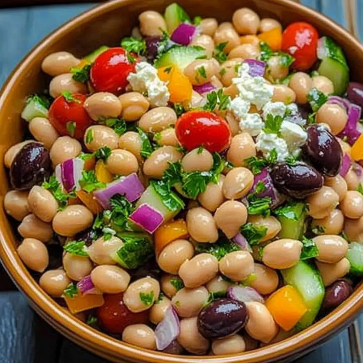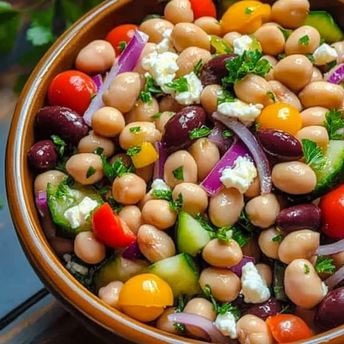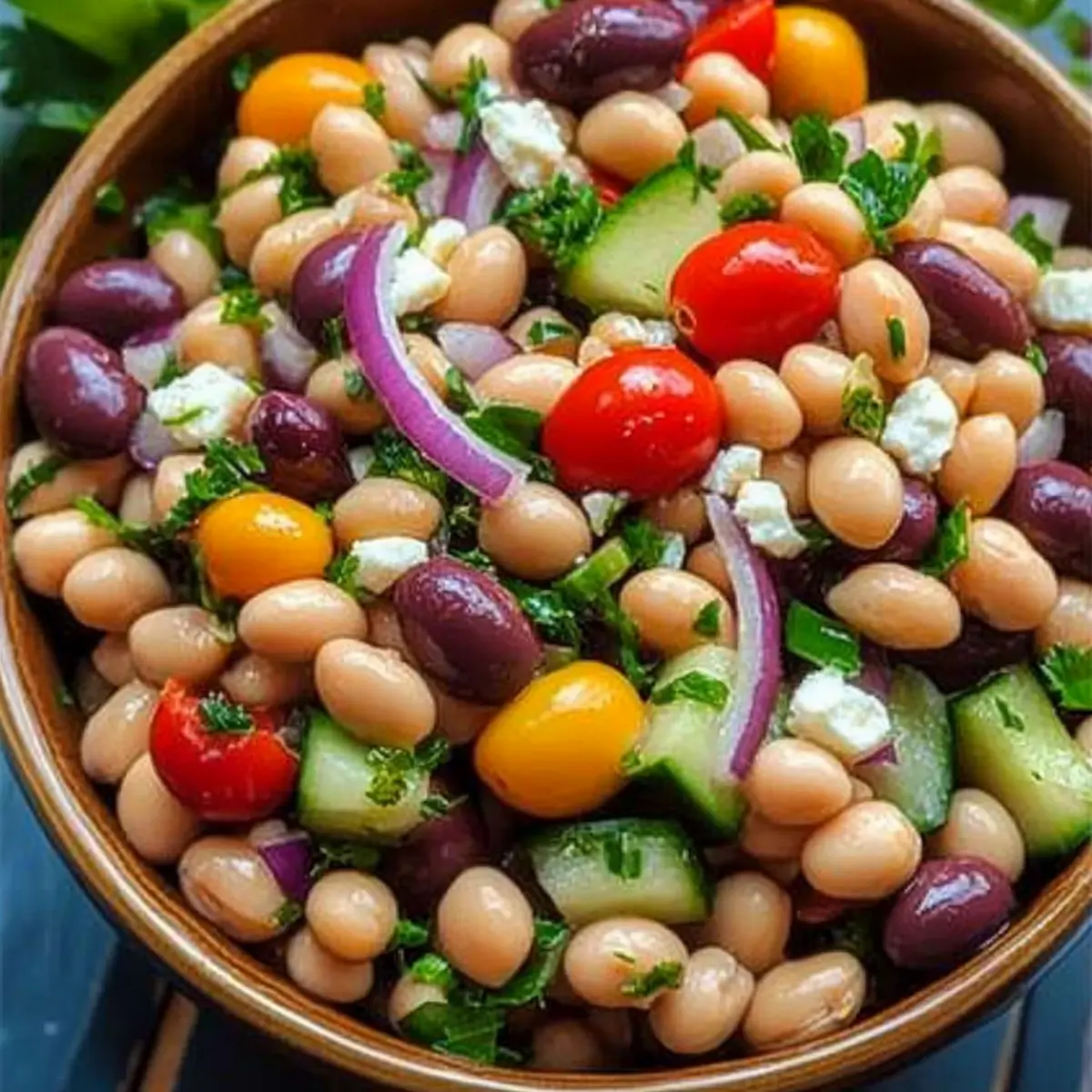 As summer approaches, I find myself dreaming of trips to coastal markets, where colorful produce and aromatic herbs beckon from every stall. This is the inspiration behind my vibrant Mediterranean Bean Salad, a dish that encapsulates the essence of sun-soaked afternoons and bustling markets while being both healthy and satisfying. With its delightful mix of protein-packed chickpeas and creamy cannellini beans, this low-effort recipe is perfect for anyone looking to swap fast food for a nourishing meal. Not only is it quick to prepare, making it an ideal option for busy weeknights, but it’s also gluten-free and vegetarian, satisfying diverse dietary needs. Want to add a little twist? I’ll share some simple variations to keep your taste buds excited! Why Choose Mediterranean Bean Salad? Vibrant flavors shine through every bite, bringing the essence of the Mediterranean to your table. Protein-packed chickpeas and cannellini beans ensure you feel full and satisfied. Quick to prepare, this dish makes healthy eating a breeze, perfect for busy lifestyles. Customizable with veggies and herbs, it’s a great way to use seasonal produce. Craving something light? Enjoy it as a side with grilled chicken or serve it as a light meal with some pita bread. For more fresh ideas, check out my recipes for Quinoa Chickpea Salad or Spring Confetti Salad! Mediterranean Bean Salad Ingredients • A rainbow of flavors awaits! For the Salad Chickpeas – A protein-packed staple that adds bulk and fiber; using canned is super convenient. Cannellini Beans – Adds a creamy texture; feel free to swap with any other white beans you prefer. Cherry Tomatoes – Bring a burst of sweetness; grape tomatoes work too if you have them on hand. Cucumber – Offers a refreshing crunch; zucchini can be a great substitute for a twist. Red Onion – Delivers a tangy punch; use green onions for a milder flavor if you like. Bell Pepper – Provides vibrant color and crunch; mix it up with radishes for something unique. Olives (Kalamata) – Infuses authentic Mediterranean flavor; optional but highly recommended. Parsley – Adds freshness and bright notes; cilantro can be a fun swap for a different taste. Feta Cheese – Creamy and salty, it’s essential for flavor; omit for a vegan version or use a plant-based alternative. For the Dressing Olive Oil – The heart of your dressing, imparting richness; avocado oil is a nice alternative if you prefer. Red Wine Vinegar – Offers a zesty acidity; lemon juice can brighten things up even more as a substitute. Garlic – Adds a punch of flavor; adjust to your taste—more for that bold hit or less for subtlety. Oregano – Brings authentic Mediterranean vibes; thyme can step in if you’re out of oregano. Salt & Pepper – Essential seasonings to enhance the flavors—tweak to taste for the perfect balance. This Mediterranean Bean Salad is not just about eating; it’s about embracing a healthy lifestyle and enjoying every vibrant, delightful bite! Step‑by‑Step Instructions for Mediterranean Bean Salad Step 1: Prepare the Base Ingredients Begin by gathering a large mixing bowl to create your Mediterranean Bean Salad. Drain and rinse one can each of chickpeas and cannellini beans under cool water to remove excess sodium. Chop the cherry tomatoes, cucumber, red onion, and bell pepper into bite-sized pieces, allowing those vibrant colors to shine. Add all these fresh ingredients into the bowl, creating a beautiful medley. Step 2: Whisk the Dressing In a separate small bowl or jar, combine ¼ cup of olive oil and 2 tablespoons of red wine vinegar to form the base of your dressing. Mince one clove of garlic and add it to the mixture along with 1 teaspoon of dried oregano, salt, and pepper to taste. Whisk everything together vigorously for about 30 seconds until it is well combined and emulsified, inviting those Mediterranean flavors to meld. Step 3: Combine Salad and Dressing Carefully pour the freshly whisked dressing over the bean and vegetable mixture in the larger bowl. Gently toss all the ingredients together using a spatula or large spoon, ensuring that the vegetables and beans are evenly coated with the zesty dressing. Look for a delightful balance of colors and textures that will elevate your Mediterranean Bean Salad. Step 4: Add Feta Cheese Next, crumble approximately ½ cup of feta cheese over the top of the salad. The creamy, salty feta will enhance the dish’s flavor profile and contribute a lovely texture. Use your spoon to mix it in slightly, but be cautious not to break it down too much. This addition brings a rich depth to your already colorful Mediterranean Bean Salad. Step 5: Chill Before Serving Cover the bowl with plastic wrap or transfer the salad into an airtight container and place it in the refrigerator. Allow it to chill for at least 30 minutes. This resting time is crucial as it lets the flavors meld together beautifully, creating a refreshing and well-integrated Mediterranean Bean Salad ready for serving. Make Ahead Options These Mediterranean Bean Salad preparations are a lifesaver for busy weeknights! You can rinse and chop all the vegetables (cherry tomatoes, cucumber, red onion, and bell pepper) and refrigerate them in an airtight container up to 3 days in advance. Additionally, you can prepare the dressing by whisking together olive oil, red wine vinegar, minced garlic, and oregano, then store it separately for up to 24 hours for maximum freshness. When you’re ready to enjoy, simply combine the prepped veggies with the dressing and crumbled feta cheese, tossing gently to ensure everything is beautifully coated. This method not only saves you time but also keeps your Mediterranean Bean Salad just as delicious, waiting for you to savor that vibrant taste at any moment! What to Serve with Mediterranean Bean Salad As you prepare this delightful salad, think of the perfect companions that will elevate your meal to new heights. Creamy Hummus: A velvety d