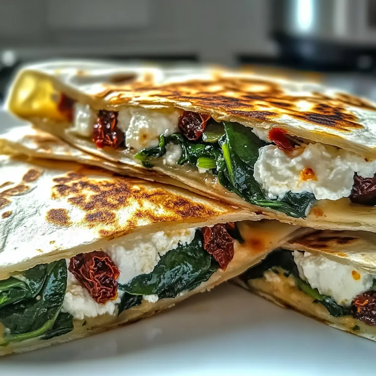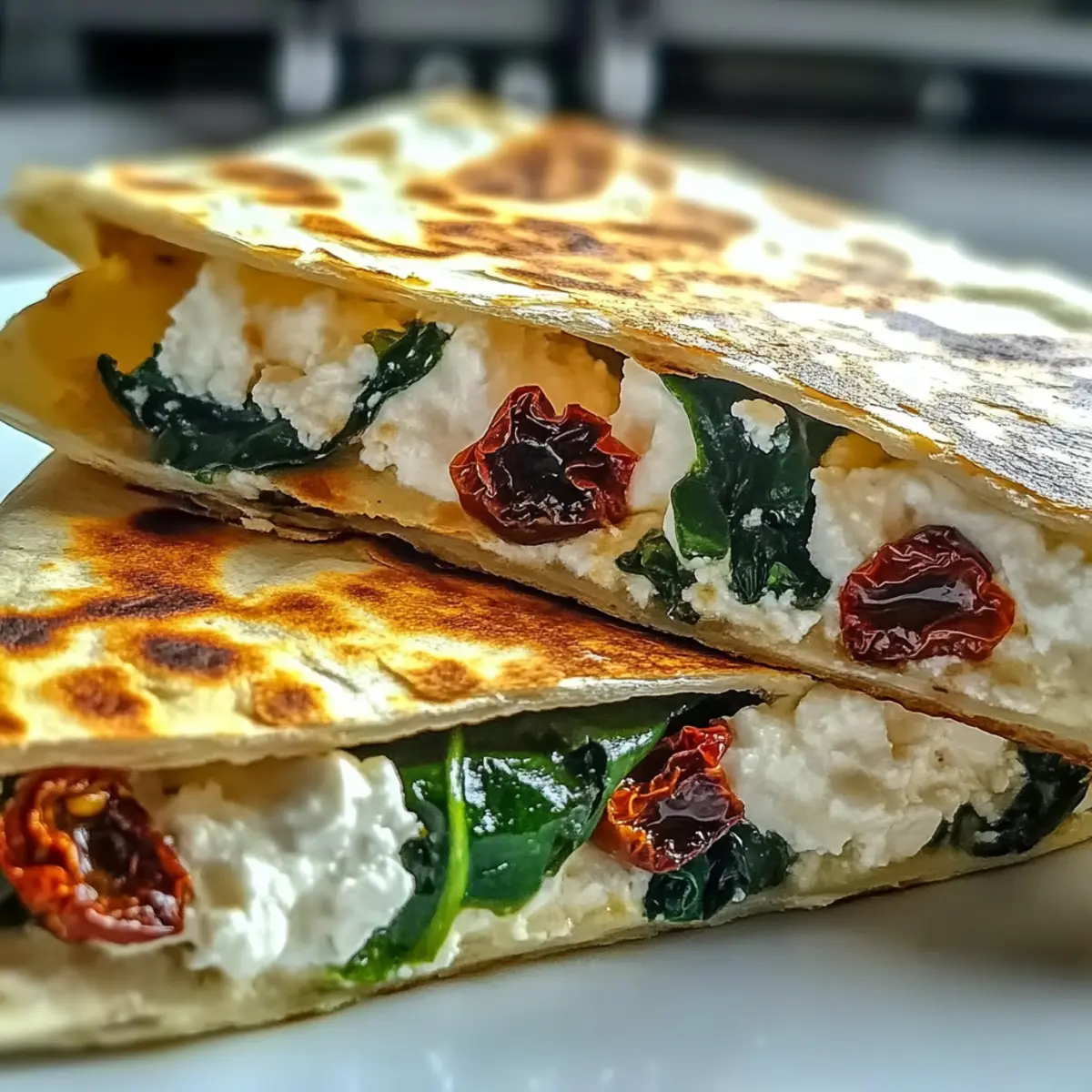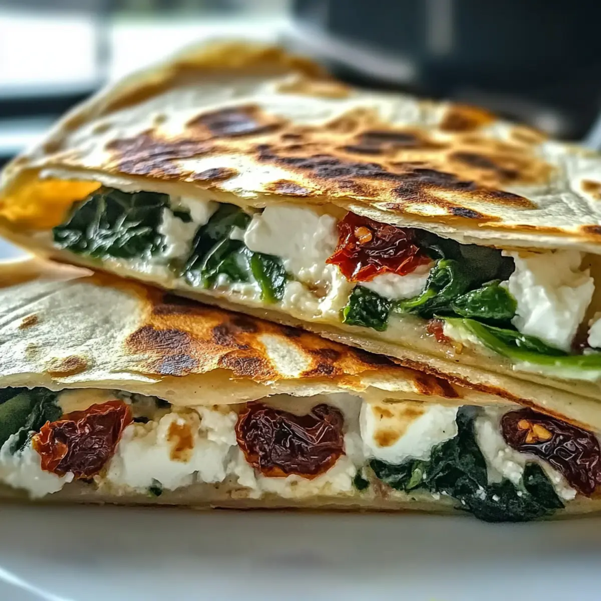 A delightful aroma wafts through the kitchen as I sauté fresh spinach, and suddenly, I’m transported to a sun-drenched Mediterranean seaside. These Mediterranean Quesadillas with Spinach and Feta come together in just 25 minutes, creating a vibrant dish that celebrates wholesome ingredients. Perfect for those busy weeknights or to impress unexpected guests, this recipe is as flexible as it is delicious, inviting you to customize with your favorite veggies or cheeses. Just imagine the crispy golden exterior giving way to a gooey, cheesy interior bursting with flavor! Are you ready to elevate your quesadilla game and bring a taste of the Mediterranean home? Why Are Mediterranean Quesadillas a Must-Try? Bold flavors: These quesadillas bring the sun-kissed essence of Mediterranean cuisine right to your table. Quick & easy: With just 25 minutes required, they’re perfect for busy weeknights or spontaneous gatherings! Customizable: Swap in your favorite veggies or cheese to make each quesadilla uniquely yours. Consider adding some freshly sautéed bell peppers or artichokes for an extra punch! Deliciously satisfying: The combination of creamy feta and melted mozzarella creates a delightful balance of flavors and textures. Crowd-pleaser: Serve these crispy delights with a side of tzatziki or hummus and watch them disappear at your next get-together! Enjoy a unique twist by pairing them with a refreshing Mediterranean Salmon Bowl for a complete meal experience! Mediterranean Quesadillas Ingredients Elevate your dish with these vibrant components! For the Filling • Chopped Spinach – Provides freshness and nutrition; fresh or frozen works well, just thaw and drain frozen spinach. • Feta Cheese – Adds creaminess and tang; can be substituted with goat cheese or mozzarella for a different flavor profile. • Shredded Mozzarella – Melts beautifully for gooey texture; swap with provolone or pepper jack for variations in taste. • Chopped Sun-Dried Tomatoes – Contributes sweetness and richness; fresh tomatoes can be used in season for a juicy touch. • Sliced Olives – Adds a briny flavor; any variety, such as Kalamata or green olives, fits perfectly. For the Tortillas • Whole Tortillas (4) – The base for your quesadilla; opt for whole wheat for added health benefits. • Olive Oil (1 tbsp) – Ensures a crispy exterior when cooking; neutral vegetable oils can also be used if preferred. For Seasoning • Salt and Pepper – Essential for enhancing overall flavor; adjust to taste for a delicious finish. Turn these Mediterranean Quesadillas into a family favorite with your personal touch! Step‑by‑Step Instructions for Mediterranean Quesadillas Step 1: Prep Skillet Begin by heating a tablespoon of olive oil in a non-stick skillet over medium heat. Allow the oil to shimmer for about 1-2 minutes, signaling that it’s ready for cooking. This will ensure your Mediterranean Quesadillas achieve that perfect crispy exterior as you sauté the vegetables. Step 2: Sauté Spinach Add the chopped spinach to the skillet and sauté it for 2-3 minutes, stirring occasionally, until it wilts and turns a vibrant green. This process enhances the flavors and reduces moisture, setting a solid foundation for your filling. Once the spinach is cooked, remove it from the heat. Step 3: Mix Filling In a mixing bowl, combine the wilted spinach with crumbled feta cheese, shredded mozzarella, chopped sun-dried tomatoes, and sliced olives. Season the mixture with salt and pepper to taste, then stir well until all ingredients are evenly combined. This delicious filling will elevate your Mediterranean Quesadillas to new heights. Step 4: Assemble Quesadilla Return the skillet to medium heat and place a tortilla in it. Spoon half of the filling mixture onto one half of the tortilla, then fold the other half over. Gently press down to seal the quesadilla. This step is crucial for keeping the filling secure while cooking. Step 5: Cook Fry the quesadilla for 3-4 minutes or until the bottom is golden brown and crispy. Carefully flip it over with a spatula, and cook the other side for another 3-4 minutes until it reaches the same golden perfection. Keep an eye on it to avoid burning. Step 6: Serve Once both sides are crispy and the cheese is melted, remove the quesadilla from the skillet and let it cool for a minute on a cutting board. Cut it into wedges and serve warm, showcasing the gooey, flavorful filling of your Mediterranean Quesadilla for everyone to enjoy. Storage Tips for Mediterranean Quesadillas Fridge: Store leftovers in an airtight container for up to 3 days. This will keep your Mediterranean Quesadillas fresh and flavorful for quick snacks or meals. Freezer: Freeze cooked quesadillas in a single layer, wrapped tightly, for up to 2 months. When ready to eat, simply thaw and reheat for a crispy finish. Reheating: For the best texture, reheat quesadillas in a skillet over medium heat for 5-7 minutes, flipping halfway through to achieve a golden crust. Make-Ahead: Prepare the filling up to 3 days in advance. This makes assembling your Mediterranean Quesadillas quick and easy on busy days while letting the flavors meld beautifully. Make Ahead Options These Mediterranean Quesadillas are perfect for meal prep enthusiasts! You can prepare the filling (sautéed spinach, feta, mozzarella, sun-dried tomatoes, and olives) up to 3 days in advance. Simply mix all the ingredients in a bowl, cover, and refrigerate until you’re ready to use them. This not only saves time but also allows the flavors to meld together beautifully. When you’re ready to cook, simply assemble the quesadilla by placing a tortilla in a hot skillet, adding the prepped filling, and frying until golden brown on both sides. The quesadillas will be just as delicious, allowing you to enjoy a quick and satisfying meal even on the busiest weeknights! Expert Tips for Mediterranean Quesadillas Preheat Skillet: Ensure your skillet is hot before adding 