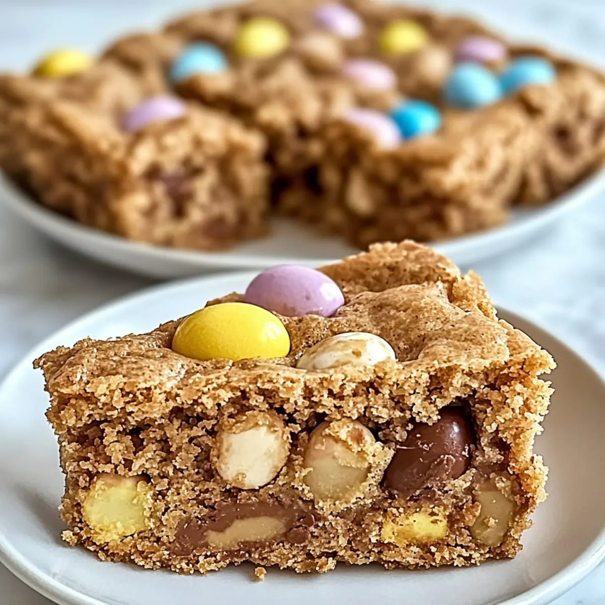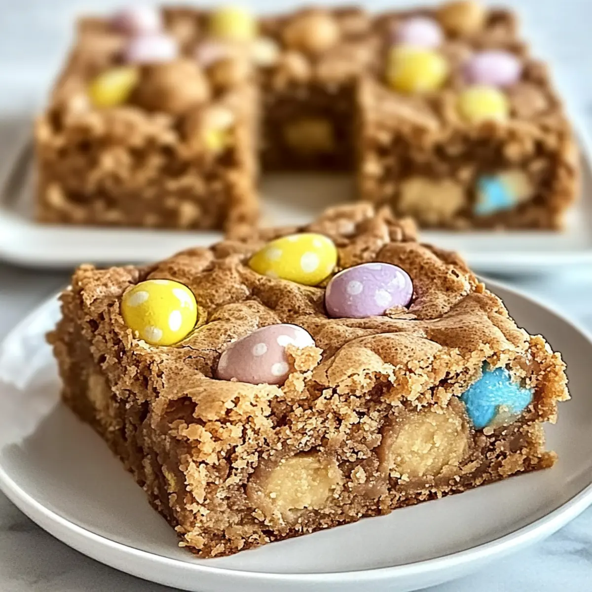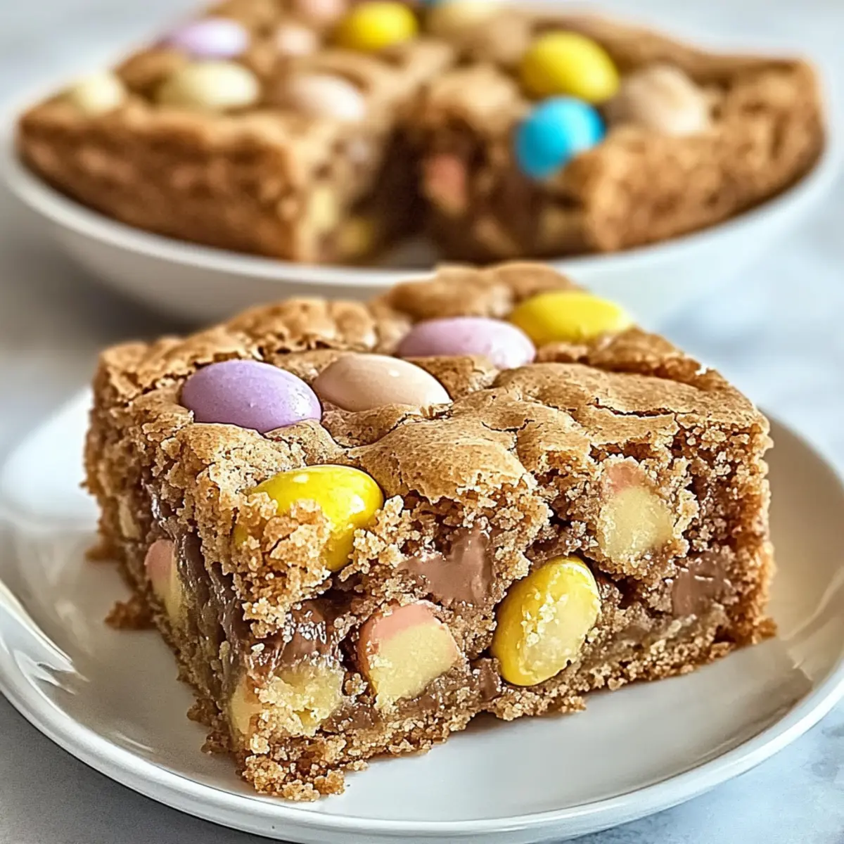 As I stood in my kitchen, the sweet scent of melting butter mingling with brown sugar filled the air, instantly whisking me away to my childhood days of baking with my mom. It was in these moments that I discovered the joy of creating treats from scratch, which is why I’m thrilled to share my recipe for Mini Cadbury Easter Egg Blondies. These delightful treats are not only quick to make—coming together in under an hour—but they’re also wonderfully customizable. Picture gooey squares packed with crunchy Cadbury eggs that can easily transform your Easter celebrations or satisfy your sweet tooth any day of the year. Whether you’re gathering family for this festive occasion or just treating yourself, these blondies are sure to impress. Which special twist will you put on this classic recipe? Why are Mini Cadbury Easter Egg Blondies special? Unforgettable Flavor: Each blondie is bursting with a rich chocolatey taste and the colorful crunch of Cadbury eggs, making them a true delight for chocolate lovers. Quick to Make: With just under an hour from start to finish, this recipe is perfect for those spontaneous dessert cravings or last-minute gatherings. Customizable: Swap out the Mini Cadbury Eggs for your favorite candies or nuts to create a unique twist that suits your taste. Perfect for Celebrations: These blondies aren’t just desserts; they’re a way to elevate your Easter celebrations or any special occasion! Irresistibly Gooey: The texture is a heavenly balance of soft and chewy that will have everyone coming back for seconds. Dive into this delightful treat and consider serving them warm with a scoop of vanilla ice cream for an extra special touch or learn about variation ideas to keep the fun going! Mini Cadbury Easter Egg Blondies Ingredients For the Blondies Unsalted Butter (½ cup) – Provides richness and moisture; substitute with salted butter if needed, reducing added salt. Light Brown Sugar (¾ cup) – Adds sweetness and a chewy texture; dark brown sugar can enhance the molasses flavor. Granulated Sugar (½ cup) – Sweetens the blondies and contributes to the tender texture; can swap with more brown sugar for added chewiness. Eggs (2 large, room temperature) – Binds the ingredients together and affects texture; ensure they’re at room temperature for better incorporation. Pure Vanilla Extract (1 teaspoon) – Adds a lovely flavor foundation; almond extract can be used for a twist. All-Purpose Flour (1 ½ cups) – Provides structure; for a gluten-free option, use a gluten-free flour blend. Baking Powder (1 teaspoon) – Leavening agent; check the expiration date for effectiveness. Salt (½ teaspoon) – Enhances overall flavor; a touch of sea salt on top adds contrast. Chopped Mini Cadbury Eggs (1 cup) – Key mix-in for chocolatey bursts; can substitute with favorite candies or nuts for a different texture. Embrace the sweetness of Mini Cadbury Easter Egg Blondies with these ingredients that promise a festive treat for any occasion! Step‑by‑Step Instructions for Mini Cadbury Easter Egg Blondies Step 1: Preheat and Prepare Begin by preheating your oven to 350°F (175°C). While the oven warms up, take an 8×8-inch baking pan and grease it lightly with unsalted butter or line it with parchment paper. This will prevent your Mini Cadbury Easter Egg Blondies from sticking and help you achieve perfectly baked treats. Step 2: Melt the Butter In a medium saucepan, melt ½ cup of unsalted butter over low heat, stirring occasionally to ensure it becomes a liquid and glossy texture without browning. This process will take about 3-5 minutes. Once melted, remove the saucepan from the heat and let it cool for a minute, ready to blend in the sugars. Step 3: Combine the Sugars Add ¾ cup of light brown sugar and ½ cup of granulated sugar to the melted butter, stirring until the mixture is smooth and fully combined. This step should take about 2 minutes. The blend will have a rich aroma that sets the stage for these delectable Mini Cadbury Easter Egg Blondies. Step 4: Mix in the Eggs and Vanilla With the saucepan off the heat, whisk in 2 large room-temperature eggs, one at a time, ensuring each is fully incorporated before adding the next. Afterward, mix in 1 teaspoon of pure vanilla extract. The mixture should look creamy and glossy for the perfect base, which will take another 2-3 minutes. Step 5: Sift the Dry Ingredients In a separate bowl, sift together 1 ½ cups of all-purpose flour, 1 teaspoon of baking powder, and ½ teaspoon of salt. This helps to aerate the dry ingredients and ensure even distribution. Set this mixture aside as you prepare to combine it with the wet mixture for your blondies. Step 6: Combine Wet and Dry Ingredients Gently fold the dry ingredient mixture into the wet ingredients using a spatula or wooden spoon. Be careful to mix just until everything is combined; overmixing can result in denser blondies. The batter should be thick and slightly lumpy, showcasing the start of your delightful Mini Cadbury Easter Egg Blondies. Step 7: Add the Cadbury Eggs Now it’s time to add in 1 cup of chopped Mini Cadbury Eggs. Carefully fold them into the batter until evenly distributed, making sure not to break the pieces too much. This added step will create those chocolatey bursts throughout your blondies, adding visual appeal and flavor to each bite. Step 8: Bake the Blondies Pour the batter into your prepared baking pan and spread it evenly. Bake in the preheated oven for 25-30 minutes, until the edges are lightly golden and a toothpick inserted into the center comes out with a few moist crumbs. Keep an eye on the time to avoid over-baking these gooey treats. Step 9: Cool and Slice Once baked, remove the pan from the oven and allow the blondies to cool in the pan for about 15-20 minutes. This crucial cooling period makes them easier to slice. After cooling, lift them out using the parchment paper (if used), and cut into squares to serve your delicious Mini 