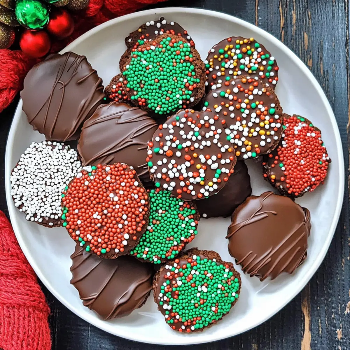 In the cozy chaos of holiday preparations, I discovered an unexpected champion: Mocha Nonpareil Cookies. This delightful treat melds the richness of chocolate with a whisper of coffee, delivering a firm yet tender texture that practically melts in your mouth. They’re not just delicious but also a visual feast, thanks to their glossy chocolate dip and vibrant sprinkles. These cookies are a fantastic quick addition to any Christmas cookie platter, making them perfect for gifting or sharing at festive gatherings. Plus, they can easily be personalized with your favorite toppings, ensuring they fit any festive theme. So, are you ready to sprinkle a little magic into your holiday baking? Let’s dive in! Why Are Mocha Nonpareil Cookies Irresistible? Indulgent Flavor: The enchanting blend of chocolate and coffee brings a gourmet touch to your holiday treats. Eye-Catching Presentation: Glossy chocolate dips and colorful nonpareils make these cookies a delightful addition to any holiday platter. Versatile Toppings: Personalize them with your favorite sprinkles or even chocolate-covered espresso beans for a unique twist! Quick to Bake: With straightforward steps, you can whip up a batch without spending hours in the kitchen—perfect for busy festive days. Crowd Favorite: These cookies are sure to impress friends and family alike, making them ideal for sharing or gifting during the holiday season. In a rush? Try serving your Mocha Nonpareil Cookies with a cup of coffee to elevate the experience, just like how I’d pair them with my favorite Brown Butter Cookies! Mocha Nonpareil Cookies Ingredients For the Cookie Dough Salted Butter – Provides fat for richness and moisture; you can substitute with unsalted butter and add a pinch of salt if desired. Sugar – Adds sweetness and contributes to the cookie’s texture; brown sugar can be used for a deeper flavor. Large Egg – Binds the ingredients together, adding moisture; an egg replacer can be used for a vegan option. Coffee Extract – Enhances the chocolate flavor without imparting strong coffee notes; coffee liqueur or ground espresso can be used as alternatives. All-Purpose Flour – Provides structure; swap for gluten-free flour for a gluten-free version. Dark Cocoa Powder – Gives a deep chocolate flavor; unsweetened cocoa powder can be substituted if needed. Baking Powder – Helps cookies rise for a light texture; baking soda can be used as a substitute in equal amounts. Milk Chocolate Chips – Adds sweetness and a creamy texture; dark chocolate chips can be used for a richer flavor. For the Decoration Nonpareils – Used for decoration to add a festive touch; consider other sprinkles or chopped chocolate-covered espresso beans as alternatives. Embrace the magic of Mocha Nonpareil Cookies this holiday season and let each bite transport you to a blissful world of flavor! Step-by-Step Instructions for Mocha Nonpareil Cookies Step 1: Prepare Dough In a mixing bowl, beat 1 cup of softened salted butter at medium speed until fluffy, about 2-3 minutes. Gradually mix in 1 cup of sugar until well combined. Add a large egg and 1 teaspoon of coffee extract, blending until the mixture is smooth and creamy, setting the stage for your Mocha Nonpareil Cookies. Step 2: Combine Dry Ingredients In a separate bowl, whisk together 2 cups of all-purpose flour, ¼ cup of dark cocoa powder, and 1 teaspoon of baking powder. Gradually add this dry mixture to the wet ingredients, mixing on low speed until just incorporated. Be careful not to overmix; the dough should be soft and slightly sticky, perfect for shaping your cookies. Step 3: Chill Dough Divide the cookie dough in half and wrap each portion tightly in plastic wrap. Refrigerate the wrapped dough for at least 1 hour, allowing it to firm up. This chilling step is crucial for the Mocha Nonpareil Cookies, as it helps the cookies hold their shape while baking. Step 4: Preheat Oven & Roll Out While the dough chills, preheat your oven to 350°F (175°C). Once chilled, roll out one portion of the dough between two sheets of parchment paper to a thickness of about ¼ inch. This thinness will ensure a crispy texture on the outside while remaining tender inside. Step 5: Cut Cookies Using your favorite cookie cutters, cut out shapes from the rolled dough. Carefully transfer each cookie to a parchment-lined baking sheet, leaving some space between them to allow for spreading. You should be able to fit several Mocha Nonpareil Cookies on each tray, ready for baking. Step 6: Bake Place the baking sheets in the preheated oven and bake for 12 minutes. The cookies should look set, with slightly puffed edges. Once done, allow them to cool on the baking sheet for 10 minutes before carefully transferring them to a wire rack to cool completely. Step 7: Chocolate Dip In a microwave-safe bowl, melt 1 cup of milk chocolate chips in 30-second intervals, stirring between each until smooth and fully melted. Once the cookies are completely cool, dip the tops into the melted chocolate, letting any excess drip off before coating them liberally with colorful nonpareils for that festive touch. Set each decorated cookie on a drying rack to allow the chocolate to set. How to Store and Freeze Mocha Nonpareil Cookies Room Temperature: Store cookies in an airtight container at room temperature, where they’ll stay fresh for up to 3-5 days. Fridge: For extended freshness, place cookies in the fridge, but note that they may lose some of their original texture. Enjoy within one week for best results. Freezer: Freeze Mocha Nonpareil Cookies individually wrapped in plastic wrap, then place them in a freezer-safe bag for up to three months. Reheating: To enjoy cookies warm, simply thaw at room temperature. You can also microwave them for a few seconds for that freshly baked feel! What to Serve with Mocha Nonpareil Cookies Create the perfect cozy gathering by pairing these delightful cookies with equally comforting accompaniments. Rich Hot Co