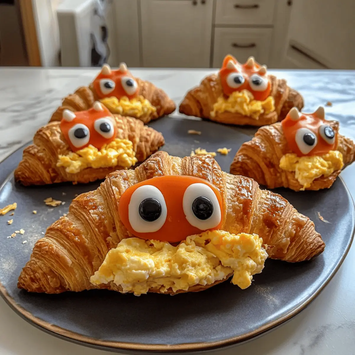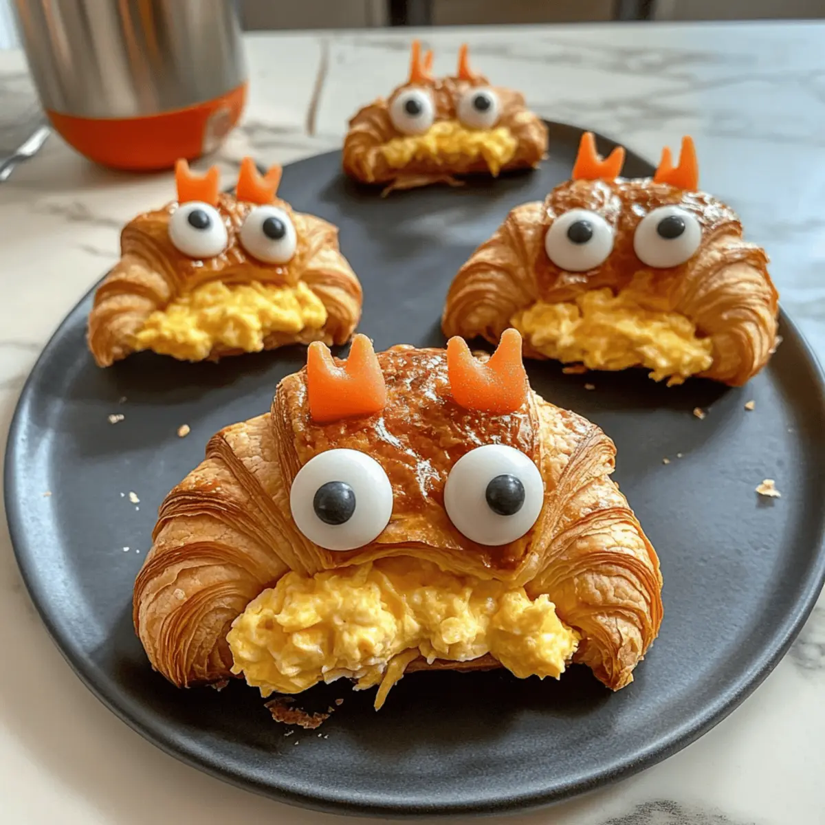Every Saturday morning, I find myself diving into a world of whimsy and flavor, especially when it comes to breakfast! That’s when I whip up my favorite playful treat: the Monster Croissant. This creation transforms an ordinary croissant into a delightful creature, complete with cheesy fangs and adorable candy eyes. Not only does it put a smile on everyone’s face, but it’s also a customizable dish that’s perfect for kids and adults alike. The beauty of the Monster Croissant lies in its simplicity—easy to make and utterly delicious. Whether you’re aiming for a fun family breakfast or trying to impress guests, this playful treat ensures everyone starts their day with joy and creativity. Are you ready to unleash your culinary imagination and make breakfast a whimsical adventure? Why is the Monster Croissant so special? Customizable Fun: The Monster Croissant can be tailored to suit any palate! Add your favorite fillings like veggies or swap cheese varieties for unique flavors. Eye-Catching Presentation: With its quirky candy eyes and chewable features, this breakfast treat is sure to excite both kids and adults, making it a hit at brunch or themed breakfasts. Simplicity Meets Whimsy: This recipe is straightforward, making it accessible even for beginner cooks. A delightful way to introduce cooking to older kids while having fun in the kitchen. High-Protein Delight: With wholesome eggs and cheese, this dish packs a nutritional punch, perfect for fueling your day. Crowd-Pleaser: Whether it’s a lazy weekend or a lively gathering, everyone will love digging into these playful croissants. For a refreshing side, consider serving with some fresh fruit or a yogurt parfait. Monster Croissant Ingredients For the Croissant Base Croissants – The flaky foundation of our whimsical creation; always use fresh for the best results. For the Filling Eggs – A protein powerhouse; you can easily substitute with plant-based egg options for a vegan twist. Milk – Ensures fluffy scrambled eggs; opt for non-dairy milk in vegan versions. Cheddar Cheese – Brings a creamy and sharp flavor; feel free to experiment with mozzarella or pepper jack for different tastes. For the Fun Decorations Edible Candy Eyes – These add a playful touch; if unavailable, chocolate chips make a delightful alternative. Ketchup or Hot Sauce – Use for extra flavor and fun; it’s perfect for dipping or adding a spicy kick. With these Monster Croissant ingredients, you’ll be well on your way to creating a unique breakfast experience that everyone will love! Step‑by‑Step Instructions for Monster Croissant Step 1: Whisk the Egg Mixture In a medium mixing bowl, whisk together 4 eggs, ¼ cup of milk, and a pinch of salt and pepper until well blended, about 1-2 minutes. The mixture should appear light and frothy. This creamy filling is the heart of your Monster Croissant, so ensure it’s well combined for fluffy scrambled eggs. Step 2: Prepare the Croissants Preheat your oven to 350°F (175°C). Take fresh croissants and carefully slice each one in half lengthwise, creating a pocket for the filling. You want to avoid cutting all the way through, so keep the back hinge intact. Arrange them on a baking sheet lined with parchment paper to catch any drips. Step 3: Scramble the Eggs In a non-stick skillet over medium heat, add a small pat of butter and pour in your whisked egg mixture. Stir frequently with a spatula, allowing the eggs to form soft curds, about 3-5 minutes. Cook just until fluffy and slightly undercooked, as they’ll finish cooking in the oven. Step 4: Fill the Croissants Remove the scrambled eggs from the heat and transfer spoonfuls of this fluffy filling generously into each croissant pocket. Be sure to add shredded cheddar cheese to each one, allowing the warmth to start melting it into a cheesy delight. Step 5: Bake to Golden Perfection Place your filled croissants in the preheated oven and bake for 8-10 minutes, until the croissants are golden brown and the cheese is melted and bubbly. Keep an eye on them to ensure they don’t brown too much. The aroma will be irresistible! Step 6: Add the Fun Decorations Once baked, take the croissants out of the oven and allow them to cool slightly. Using edible candy eyes, create playful faces on each croissant, giving them personality. You can even add a playful squiggle of ketchup or hot sauce for the monster’s mouth! Step 7: Serve Warm and Enjoy Serve the Monster Croissants warm on a platter, inviting everyone to dig in. Pair with a side of fresh fruit or a yogurt parfait for a balanced breakfast experience. With their whimsical charm, these croissants turn breakfast into a delightful event! What to Serve with Monster Croissant Kick off a delicious morning experience with creative sides that elevate your Monster Croissant breakfast. Fresh Fruit Salad: A vibrant mix of juicy fruits adds a refreshing contrast to the flaky, cheesy croissants, balancing the meal beautifully. Think strawberries, blueberries, and citrus for a pop of color and sweetness! Yogurt Parfait: Layer creamy yogurt with granola and fresh berries for a delightful crunch. The tangy yogurt perfectly complements the savory flavors of the croissant while offering a nutritious boost. Crispy Bacon or Sausage: The salty, savory richness of crispy bacon or sausage makes for a hearty pairing with the lightness of the Monster Croissant, ensuring a satisfying morning feast. Smoothies: Whip up a fruit smoothie using bananas, spinach, and almond milk for a delicious, nutrient-packed drink. This refreshing beverage provides a creamy, nutritious balance to your breakfast. Herbal Tea or Coffee: Brighten your morning with a warm cup of herbal tea or your favorite coffee blend. The comforting warmth enhances the cozy experience of enjoying whimsical croissants. Sweet Maple Syrup: A drizzle of maple syrup can bring a touch of sweetness to the table. Use it as a dip alongside your Monster Croissant for a delight