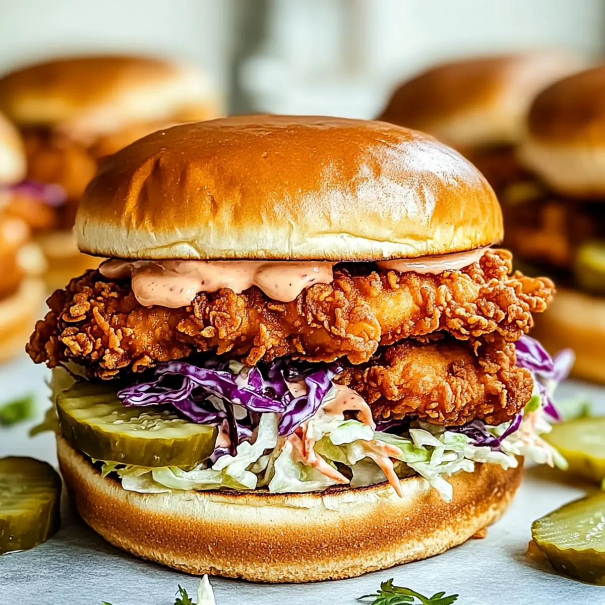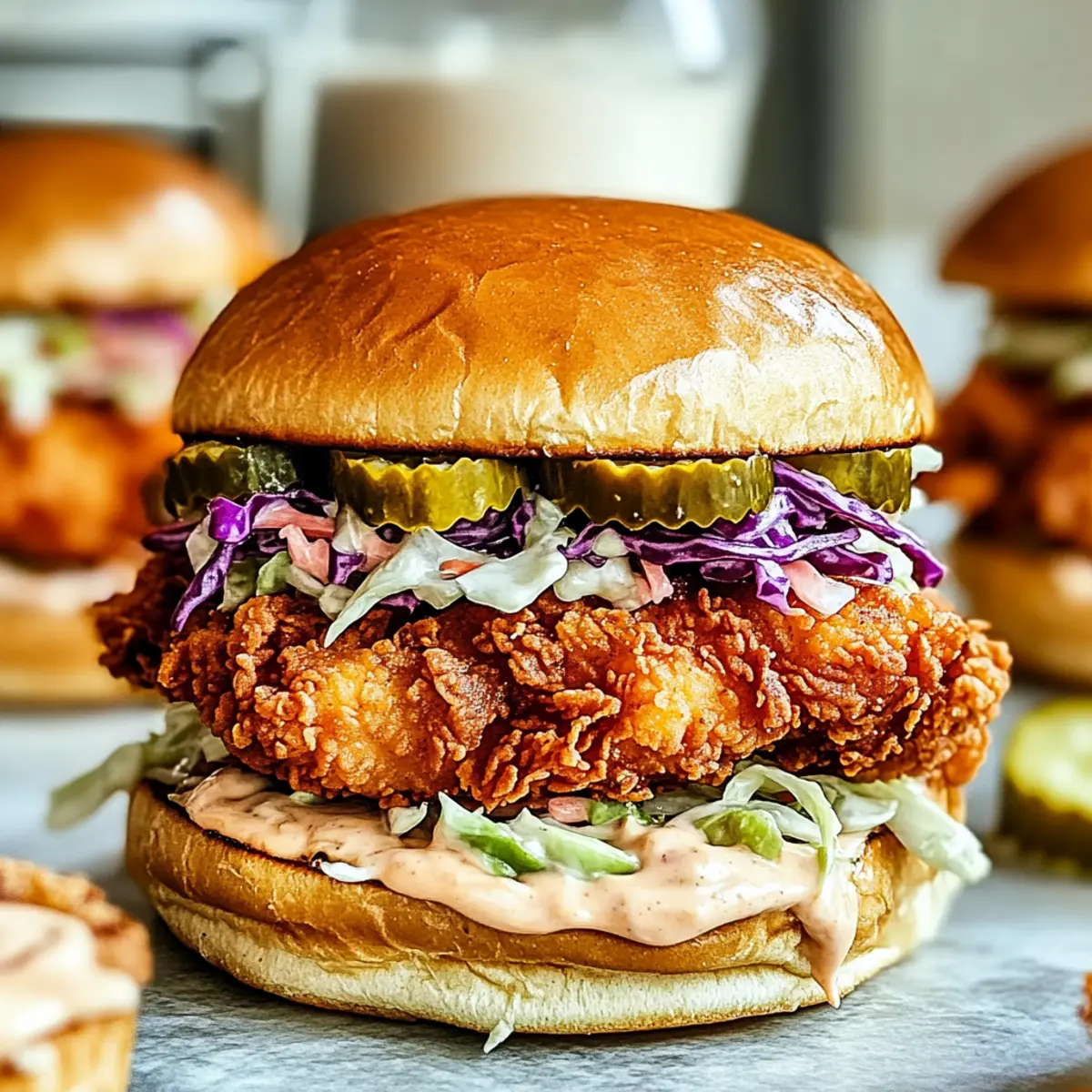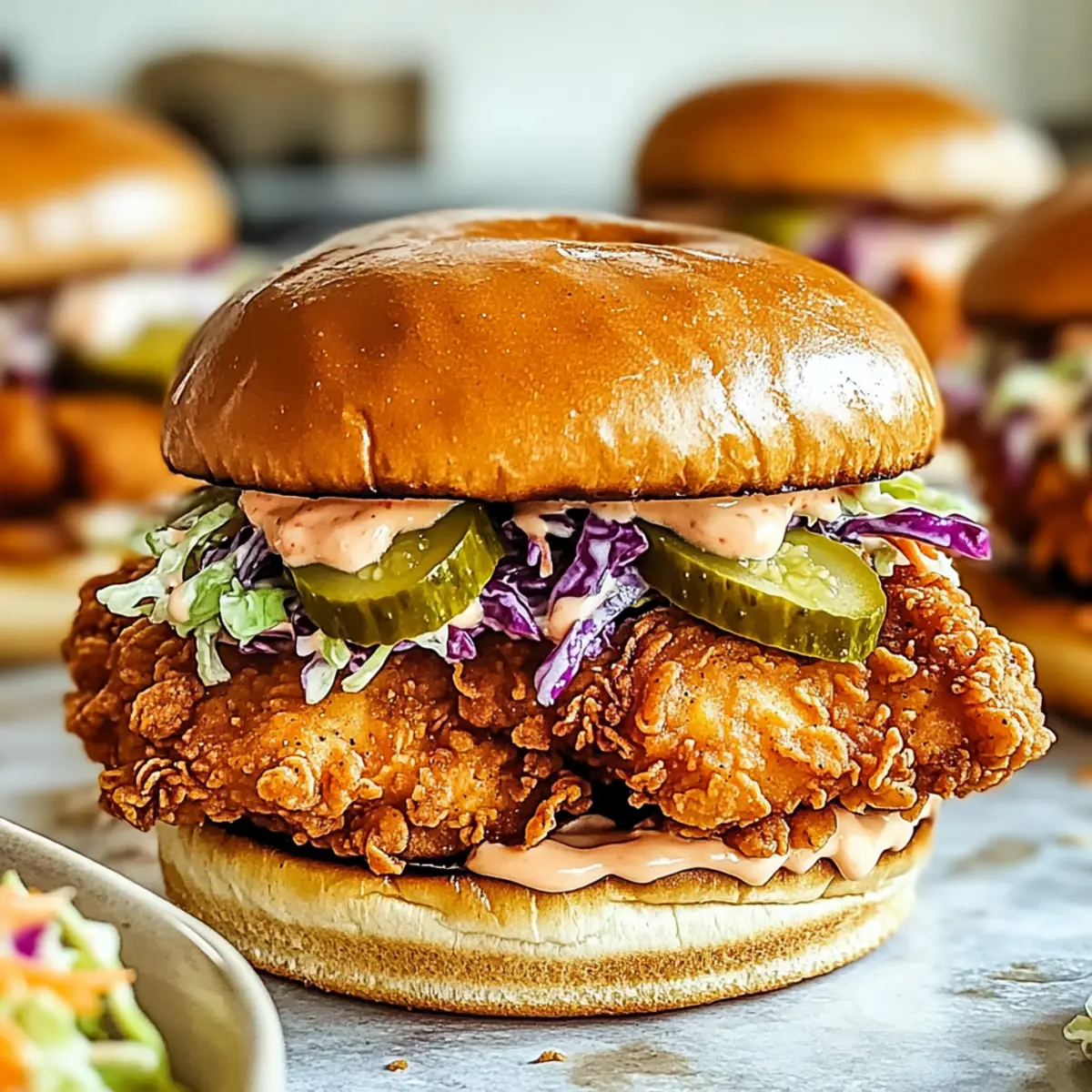 As I nestled into my cozy kitchen one rainy afternoon, the rich aroma of spices began to fill the air. This was the perfect moment to whip up something special: Nashville Hot Chicken Sandwiches. Crispy and spicy, each sandwich is not just a meal but an experience that transforms any ordinary day into a flavorful adventure. With just a few quick steps, you’ll create a dish that’s easily customizable—from the heat level to delicious toppings—making it perfect for family dinners or casual gatherings. Plus, these sandwiches can cater to gluten-free diets with simple substitutions, ensuring everyone can join in on the fun. Are you ready to bring a taste of the South to your kitchen? Let’s dive in! Why are Nashville Hot Chicken Sandwiches a must-try? Bold Flavors: These sandwiches are an explosion of taste, balancing spicy and savory elements that elevate every bite. Quick and Easy: With a straightforward prep and cook time, you can indulge in this delicious comfort food without spending hours in the kitchen. Endless Customization: Whether you prefer the heat dialed up or toned down, this recipe allows you to play with spice levels and toppings like creamy coleslaw or dill pickles. Perfect for Gatherings: They’re great for casual picnics or dinner parties, guaranteed to wow your guests while being easy to serve. Diet-Friendly Options: You can easily swap in gluten-free ingredients, catering to diverse dietary needs without sacrificing flavor. Why not pair these spicy sandwiches with a side of Cream Cheese Chicken Taquitos for a full spread? Enjoy the possibilities! Nashville Hot Chicken Sandwiches Ingredients • Here’s everything you need to kickstart your cooking adventure! For the Chicken Chicken Breasts – Lean protein that can be substituted with chicken thighs for juicier goodness. Buttermilk – Essential for marinating, ensuring moisture; yogurt or non-dairy milk mixed with vinegar serves as a great dairy-free option. Hot Sauce – Infuses the chicken with its signature spiciness; feel free to adjust based on your taste preference. For the Dredging All-Purpose Flour – Creates a crispy outer layer; gluten-free flour works as an easy substitute. Cornstarch (Optional) – Enhances the crispiness; more flour can also be used if cornstarch isn’t on hand. Spices (Cayenne, Garlic Powder, Salt, Black Pepper) – Key to seasoning the chicken; adjust to your desired heat level! For Frying Frying Oil – Use high smoke point oil like vegetable or peanut oil; melted butter adds a lovely richness too. For the Sauce Brown Sugar – Balances the heat in the hot sauce; can be omitted if you prefer less sweetness. Chili Powder, Smoked Paprika – Optional spices that enhance the flavor complexity of the sauce. For Assembly Burger Buns – Enclose your delicious chicken; gluten-free or whole grain buns are fantastic alternatives. Coleslaw, Mayonnaise, Pickles – Toppings that bring the sandwich to life, adding crunch and creaminess. Get ready to create unforgettable Nashville Hot Chicken Sandwiches that will delight everyone at your table! Step‑by‑Step Instructions for Nashville Hot Chicken Sandwiches Step 1: Prep Chicken Begin by slicing the chicken breasts horizontally to create even cutlets, ensuring they’ll cook evenly. Season each side generously with salt and pepper, then set the chicken aside on a clean plate while you prepare the marinade. This initial step is crucial for creating flavorful Nashville Hot Chicken Sandwiches that will be bursting with taste! Step 2: Marinate In a medium bowl, combine the buttermilk and your favorite hot sauce, stirring well to mix. Submerge the seasoned chicken cutlets in this spicy marinade, making sure they are fully coated. Cover the bowl with plastic wrap and refrigerate for at least 30 minutes, allowing the flavors to infuse deeply into the chicken while keeping it moist during cooking. Step 3: Dredge Set up a dredging station by placing the all-purpose flour, cornstarch, and spices in shallow bowls. Remove the marinated chicken from the refrigerator and let the excess marinade drip off. Carefully coat each cutlet in the flour mixture, ensuring every inch is covered, then shake off any excess. This creates a beautiful, crispy crust crucial for your Nashville Hot Chicken Sandwiches. Step 4: Fry Heat a large pot or deep skillet over medium-high heat, adding enough frying oil to reach about 2 inches deep. Once the oil reaches 350°F (175°C), gently lower in the chicken cutlets without overcrowding the pan. Fry each cutlet for about 3 minutes per side, or until golden brown and the internal temperature reaches 165°F. Aim for a perfectly crispy surface that gives way to tender chicken inside. Step 5: Make Sauce While the chicken fries, prepare the spicy sauce. In a heatproof bowl, combine some of the hot frying oil with brown sugar and your selected spices, whisking until smooth and glossy. This sauce is what brings the Nashville Hot Chicken Sandwiches to life, creating a deliciously sticky coating. Once the chicken is done, coat each piece generously with this fiery mixture. Step 6: Assemble To assemble your Nashville Hot Chicken Sandwiches, begin by toasting your burger buns until lightly golden. Spread a layer of mayonnaise on the bottom half of each bun for added creaminess. Place a piece of the spicy fried chicken on top, followed by a serving of crunchy coleslaw and a few tangy pickles. Cap with the top half of the bun and serve immediately for an unforgettable sandwich experience. Expert Tips for Nashville Hot Chicken Sandwiches Monitor Oil Temperature: Keeping the oil at a consistent 350°F (175°C) ensures your chicken turns out perfectly crispy without being greasy. Avoid Sogginess: Customizing your toppings is key—add coleslaw just before serving to keep it fresh and crunchy, and avoid any soggy sandwiches later. Adjust Spice Gradually: If you’re unsure about the heat, start with less cayenne and hot sauce. You can always