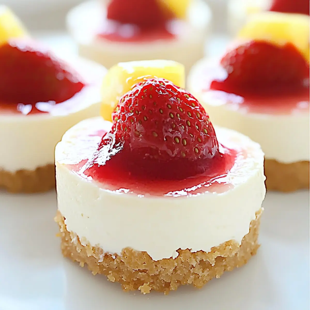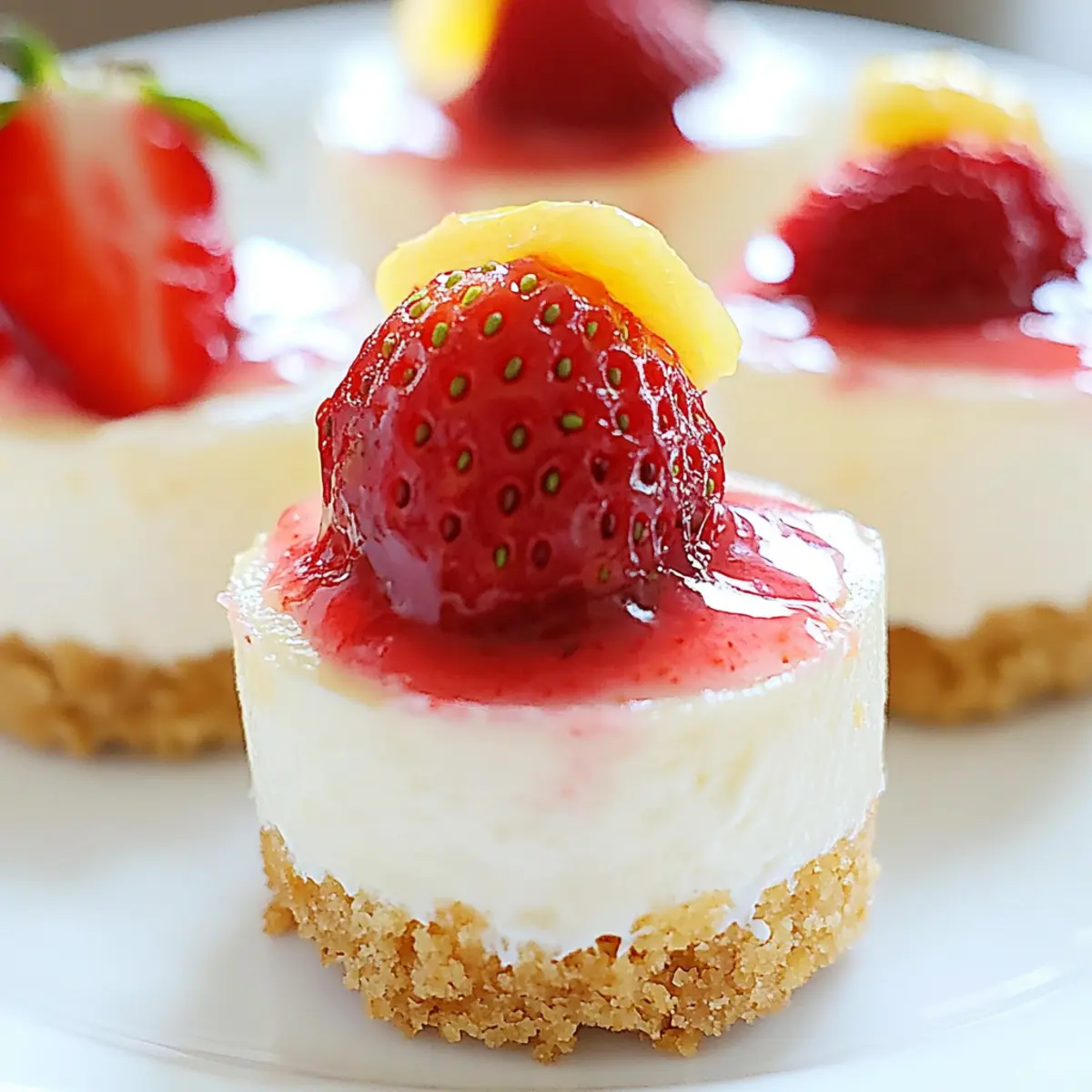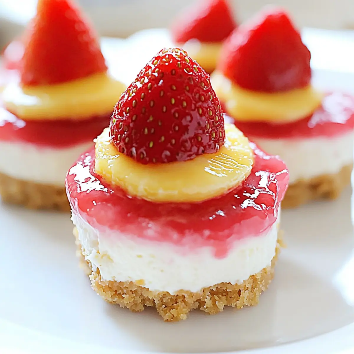 The air is filled with laughter, sunshine, and a craving for something sweet—it’s the perfect setting for my No Bake Strawberry Lemonade Mini Cheesecakes! These charming little delights are not just a visual treat; they embody the essence of summer with each creamy, refreshing bite. One of the best perks? They’re incredibly easy to prepare without ever turning on the oven, making them a go-to for those hot days. Plus, their unique twist on classic flavors will impress friends and family alike, ensuring they’re a hit at your next get-together. Ready to whip up a dessert that’s as delightful to make as it is to devour? Let’s dive in! Why Try No Bake Cheesecakes? Ease of Preparation: With no baking required, you’ll save time and effort while still delivering delicious results. Bright, Refreshing Flavor: The combination of strawberry and lemonade creates a tangy sweetness that’s perfect for warm days. Charming Presentation: These mini cheesecakes are not just tasty; they look stunning on any dessert table, adding a touch of elegance. Customizable Delight: Feel free to swap strawberries for blueberries or raspberries, making it easy to adapt for any occasion! For more bright flavors, check out my Watermelon Lemonade Beat. Crowd-Pleaser: Perfect for summer gatherings, these treats are bound to impress friends and family, making them a highlight of any event. Make Ahead Magic: Prepare them a day in advance, ensuring you have a delicious dessert ready without stress on the day of your gathering! No Bake Strawberry Lemonade Mini Cheesecakes Ingredients For the Crust • Graham Crackers – These provide the perfect structure for your crust; feel free to use gluten-free graham crackers if needed. • Unsalted Butter – This binds the crust together; you can swap it for coconut oil for a dairy-free option. For the Cheesecake Filling • Cream Cheese – A key player for that rich, creamy filling; ensure it’s at room temperature for smooth mixing. • Granulated Sugar – Sweetens the filling to balance the tart strawberry and lemon flavors; a sugar alternative can be used for a lower-calorie option. • Heavy Cream – Whipped to create a fluffy texture; remember to whip it separately for better volume. • Lemon Zest – Adds a bright citrus note to enhance flavor. • Lemon Juice – This boosts acidity and flavor balance; fresh lemons work best for this recipe. For the Strawberry Topping • Strawberries – Fresh berries are ideal for topping and flavor; you can substitute with other berries if desired. • Granulated Sugar (for strawberries) – This sweetens the strawberry puree perfectly. Enjoy your journey in creating these delightful No Bake Strawberry Lemonade Mini Cheesecakes! Step‑by‑Step Instructions for No Bake Strawberry Lemonade Mini Cheesecakes Step 1: Prepare the Crust In a medium bowl, combine crushed graham crackers and melted unsalted butter, mixing until well combined. The mixture should resemble wet sand. Press this mixture firmly into the bottom of a greased mini cheesecake pan, creating an even layer. Aim for about ¼ inch thickness. Chill in the refrigerator for 15 minutes to set. Step 2: Make the Cheesecake Filling In a large mixing bowl, beat the room temperature cream cheese and granulated sugar together using an electric mixer until smooth and creamy. This should take around 2-3 minutes. Next, add in the lemon zest and lemon juice, and mix until fully combined, ensuring no lumps remain for your No Bake Strawberry Lemonade Mini Cheesecakes. Step 3: Whip Heavy Cream In a separate medium bowl, whip the heavy cream using an electric mixer until stiff peaks form, which usually takes about 3-5 minutes. The whipped cream should hold its shape perfectly when the mixer is lifted. This adds a light, fluffy texture to the filling. Step 4: Combine Cream Cheese and Whipped Cream Gently fold the whipped cream into the cream cheese mixture using a spatula. Be careful to maintain the airiness, as this is crucial for a light filling. Continue folding until just combined, ensuring no white streaks remain, creating a beautifully rich filling for your No Bake Strawberry Lemonade Mini Cheesecakes. Step 5: Fill the Crusts Spoon the cheesecake filling into each cooled crust, filling them to the very top and smoothing the surface with a spatula. This will give a neat presentation. Tap the pan lightly on the counter to remove any air bubbles trapped in the filling. Step 6: Chill Cover the cheesecake pan with plastic wrap and place it in the refrigerator. Chill for at least 4 hours, but for the best results, leave them overnight. The filling should be firm to the touch, ensuring your No Bake Strawberry Lemonade Mini Cheesecakes are set perfectly before serving. Step 7: Prepare Strawberry Topping Meanwhile, take fresh strawberries and blend them with granulated sugar and a bit of lemon juice until smooth. This mixture will be your delightful topping. Adjust the sweetness to your taste, using more sugar if necessary. Step 8: Serve Once set, gently remove the mini cheesecakes from the pan. Top each with a spoonful of the strawberry topping right before serving, and enjoy the refreshing flavors of these No Bake Strawberry Lemonade Mini Cheesecakes! Expert Tips for No Bake Strawberry Lemonade Mini Cheesecakes Room Temperature Cheese: Ensure your cream cheese is at room temperature before mixing to achieve a smooth, lump-free filling. Whipping Cream Wisely: Whipping the heavy cream in a separate bowl helps maintain its volume. Gently fold it into the cream cheese mixture for a light texture. Chilling Time Matters: Allow the cheesecakes to chill for at least 4 hours, ideally overnight; this ensures they set beautifully and hold their shape. Avoid Soggy Crust: Make sure to press the graham cracker crust firmly and chill it well to prevent it from becoming soggy once the filling is added. Fresh Ingredients: Use fresh lemon juice and zest, and ripe strawberries for the best flavor 
