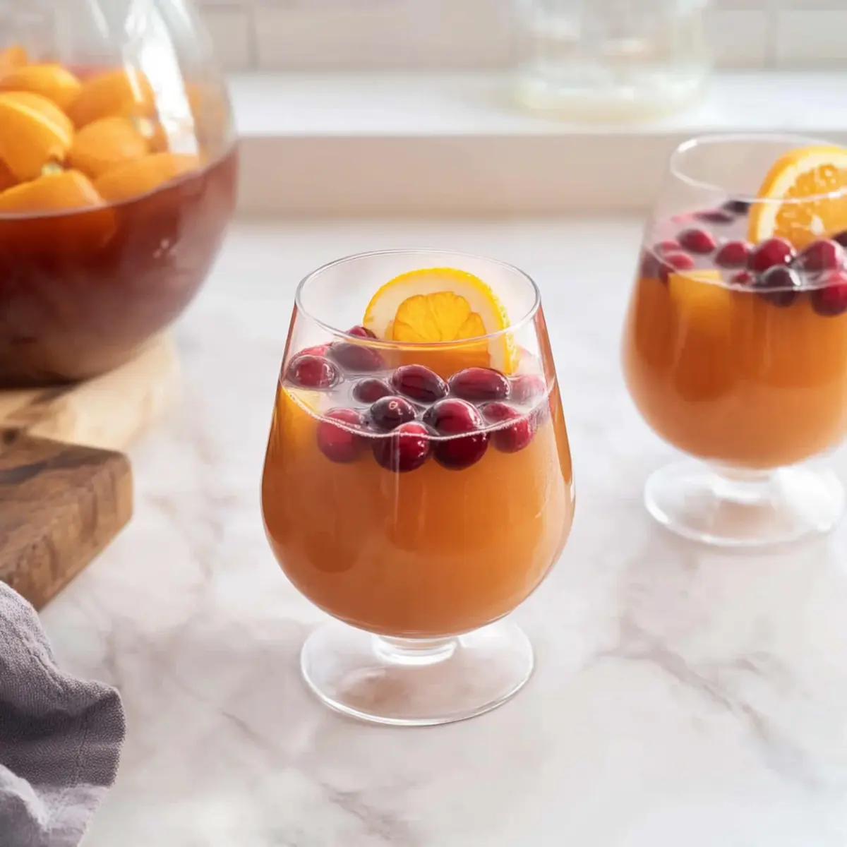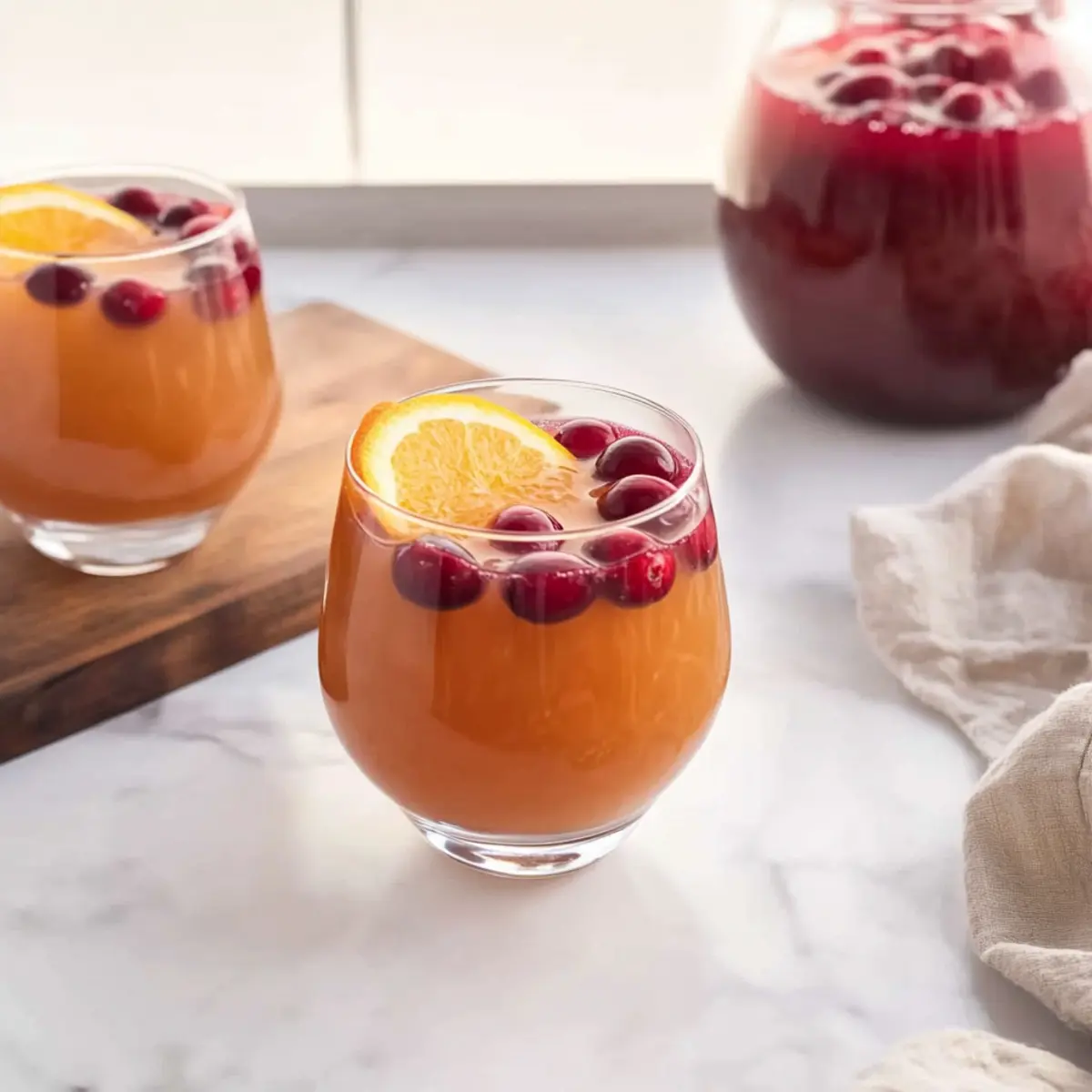 As I watched the first leaves of fall twirl to the ground, the craving for something warm and inviting took hold of me. That’s when I remembered my favorite homemade Orange Cranberry Tea recipe—a delightful blend that perfectly captures the cozy essence of the season. This easy drink can be pulled together in just 15 minutes and is incredibly versatile; enjoy it warm to wrap your hands around a comforting mug, or chill it for a refreshing sip on a sunny day. Plus, you can make it ahead of time, allowing the flavors of tart cranberries and bright oranges to meld into a delightful brew that’s always ready to serve. Curious about how to bring this seasonal favorite to your kitchen? Let’s dive in! Why is This Orange Cranberry Tea Special? Simplicity: This Orange Cranberry Tea recipe comes together in just 15 minutes, making it perfect for busy days or spontaneous gatherings! Versatile Enjoyment: Whether you prefer it warm or cold, this drink can adapt to any occasion. Crowd-Pleasing Flavor: With its delightful blend of tart cranberry and refreshing orange, it’s a surefire hit for anyone who loves homemade beverages. Make-Ahead Convenience: Prepare a batch ahead of time, allowing the flavors to meld beautifully and be ready whenever you need a cozy drink! Unique Spices: The addition of cinnamon and cloves adds a comforting warmth that evokes the essence of fall and winter holidays, perfect for festive gatherings. If you’re looking for more delicious drinks, try out my easy recipe for Cranberry Chicken Savory for a delightful meal, or explore refreshing variations in my Chinese Orange Chicken. Enjoy! Orange Cranberry Tea Ingredients For the Base Cranberry Juice – Use 100% juice for the best flavor and authentic tartness. Boiling Water – Activates the tea and spices, enhancing their flavors. Tea Bags – Choose black tea or herbal blends based on your taste preference. For the Zesty Flavor Frozen Orange Juice Concentrate – Provides sweetness and citrus notes; fresh alternatives can be used but adjust for sweetness. Lemon Juice – Adds brightness; fresh is ideal, but bottled works in a pinch. For the Spices Whole Cloves – Infuses a warm, spicy note; ground cloves can substitute (use less for potency). Ground Cinnamon – Essential for that warming spice element; don’t substitute as it plays a key flavor role. For Sweetening Granulated Sugar – Sweetens the beverage; can be replaced with honey or alternative sweeteners to your taste. Garnish Fresh/Frozen Cranberries – Optional but adds visual appeal and a touch of extra tartness to the drink. This Orange Cranberry Tea Recipe is not only quick to make, but it brings the delightful flavors of the season right into your home! Enjoy preparing this comforting beverage! Step‑by‑Step Instructions for Orange Cranberry Tea Recipe Step 1: Steep the Tea and Spices In a small saucepan, bring 4 cups of water to a boil on medium-high heat. Once boiling, remove it from the heat and steep 2 tea bags along with a spice ball containing whole cloves and ground cinnamon for about 5 minutes. You’ll know it’s ready when the liquid is fragrant and nicely infused. Step 2: Sweeten the Brew After 5 minutes, carefully remove the tea bags and spice ball from the saucepan. While the brewed tea is still warm, whisk in 1 cup of granulated sugar until fully dissolved, ensuring a sweet base for your Orange Cranberry Tea. The mixture should feel warm to the touch but not scalding. Step 3: Combine Juices with Brewed Tea In a large pitcher, combine 3 cups of 100% cranberry juice, the thawed contents of a 12-ounce can of frozen orange juice concentrate, and the juice of one fresh lemon. Pour in the sweetened tea mixture, stirring gently but thoroughly until all the flavors meld together beautifully, creating a vibrant and fruity beverage. Step 4: Chill or Serve Warm You can choose to serve your Orange Cranberry Tea warm or chilled. If you prefer it chilled, refrigerate the tea for at least 30 minutes. For a warm rendition, simply heat the combined mixture gently on the stovetop or in a microwave until warm, stirring occasionally to prevent overheating. Step 5: Garnish and Present To elevate your Orange Cranberry Tea, garnish each serving with a few fresh or frozen cranberries before pouring into glasses or mugs. The bright bursts of color introduce a festive touch, making it perfect for cozy gatherings or holiday celebrations, enhancing the appeal of this homemade drink. How to Store and Freeze Orange Cranberry Tea Fridge: Store your Orange Cranberry Tea in an airtight container for up to 1 week. Make sure to give it a good stir before serving, as ingredients may settle. Freezer: To enjoy this delightful beverage later, freeze the tea concentrate in ice cube trays or Souper Cubes for up to 1 year. Thaw in the fridge and dilute with water before serving. Reheating: For a warm drink, gently reheat the chilled tea in a saucepan over low heat or in the microwave. Be careful not to overheat, as it can lose its comforting flavors. Make-Ahead: Preparing the concentrate ahead of time is ideal; it’ll allow flavors to meld beautifully and be ready for quick sips throughout the week! Orange Cranberry Tea Variations Feel free to explore these exciting variations to create your own perfect cup of Orange Cranberry Tea! Pomegranate Twist: Swap out cranberries for vibrant pomegranate seeds to enhance the drink’s tartness and texture. A colorful addition that’s festive, perfect for holiday gatherings! Chai Infusion: Use chai tea bags instead of standard black tea for a warm, spiced flavor that elevates the overall experience. This twist brings comfort and warmth to every sip. Citrus Burst: Replace frozen orange juice concentrate with fresh-squeezed orange juice for a brighter, more complex flavor. The freshness truly enhances this cozy beverage. Herbal Refreshment: Add in fresh mint leaves while steeping the tea for a refreshing herbal note. It’s a delightfu